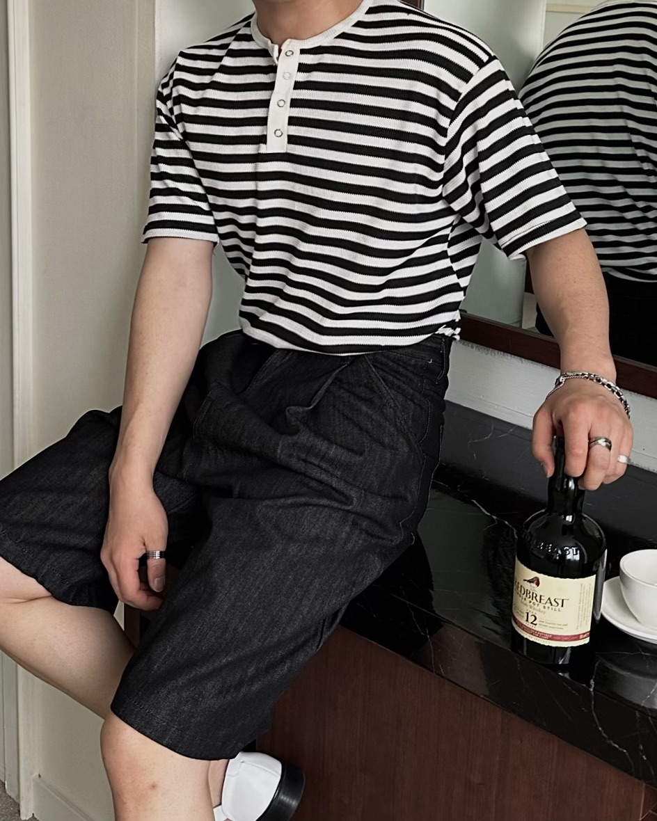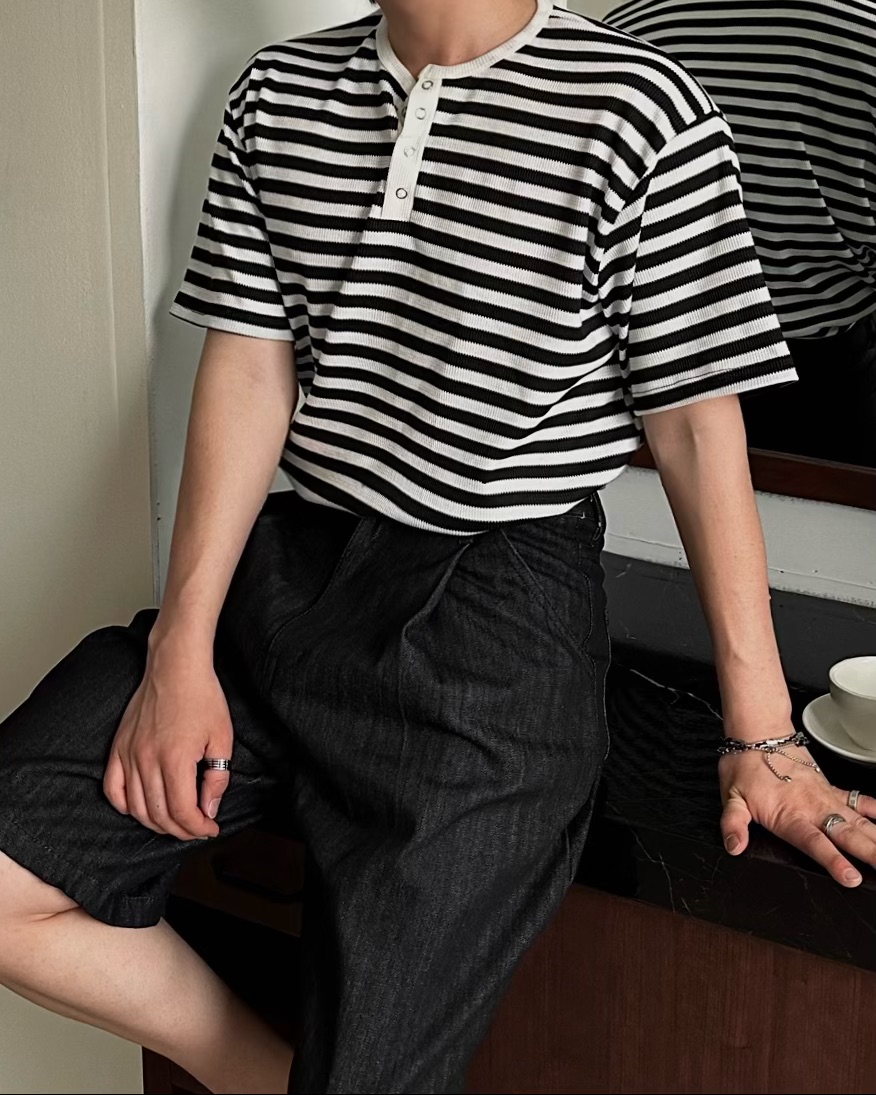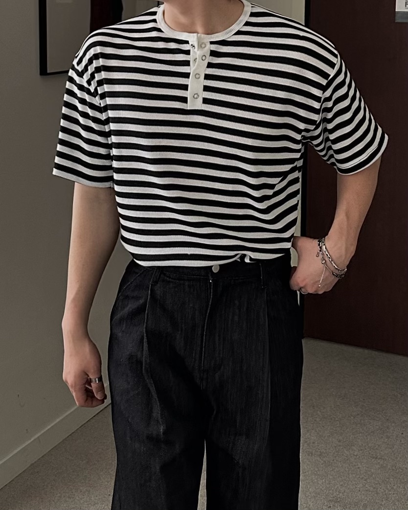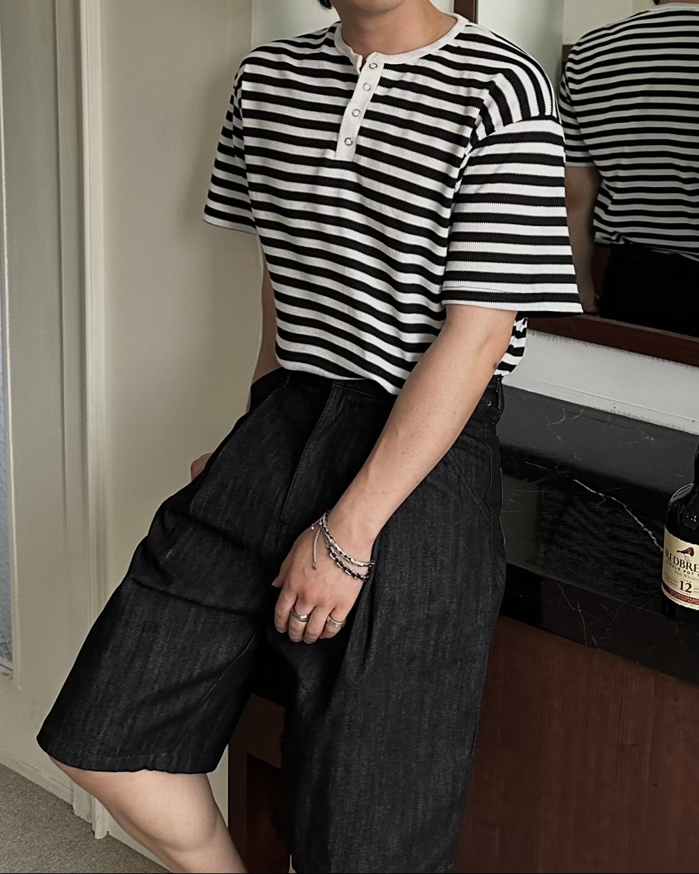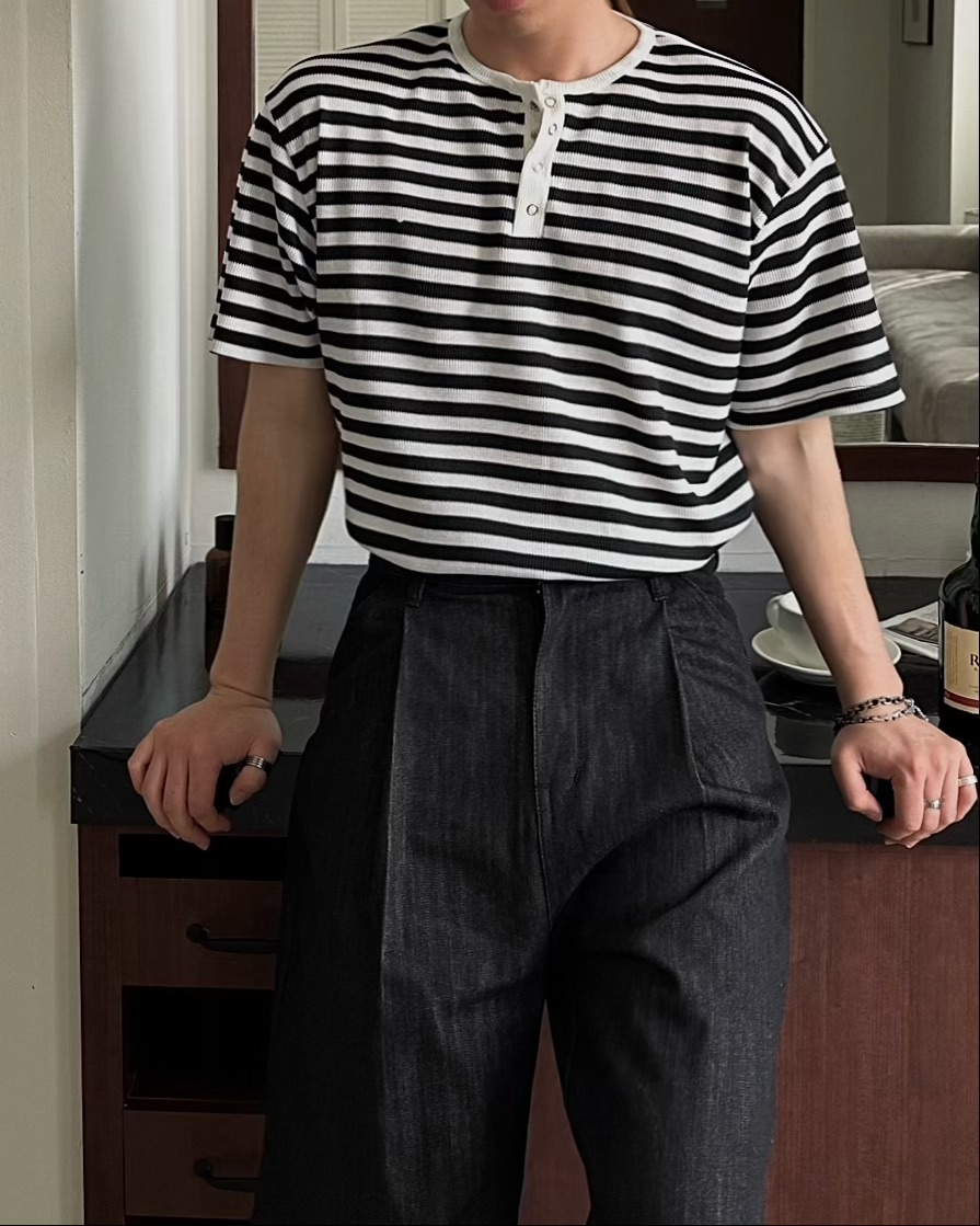 -캐주얼하게 즐길 수 있는 와플 헨리넥 티셔츠