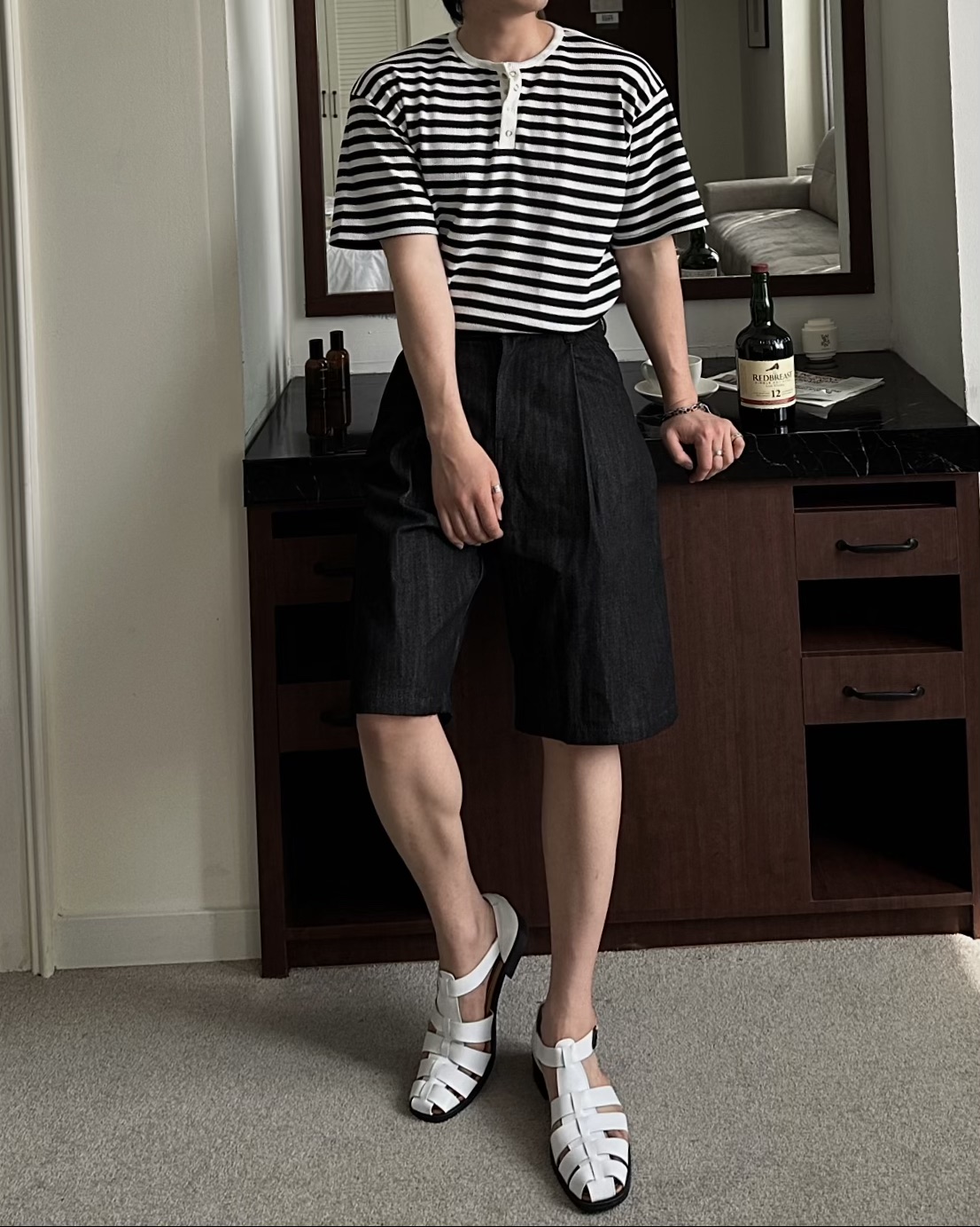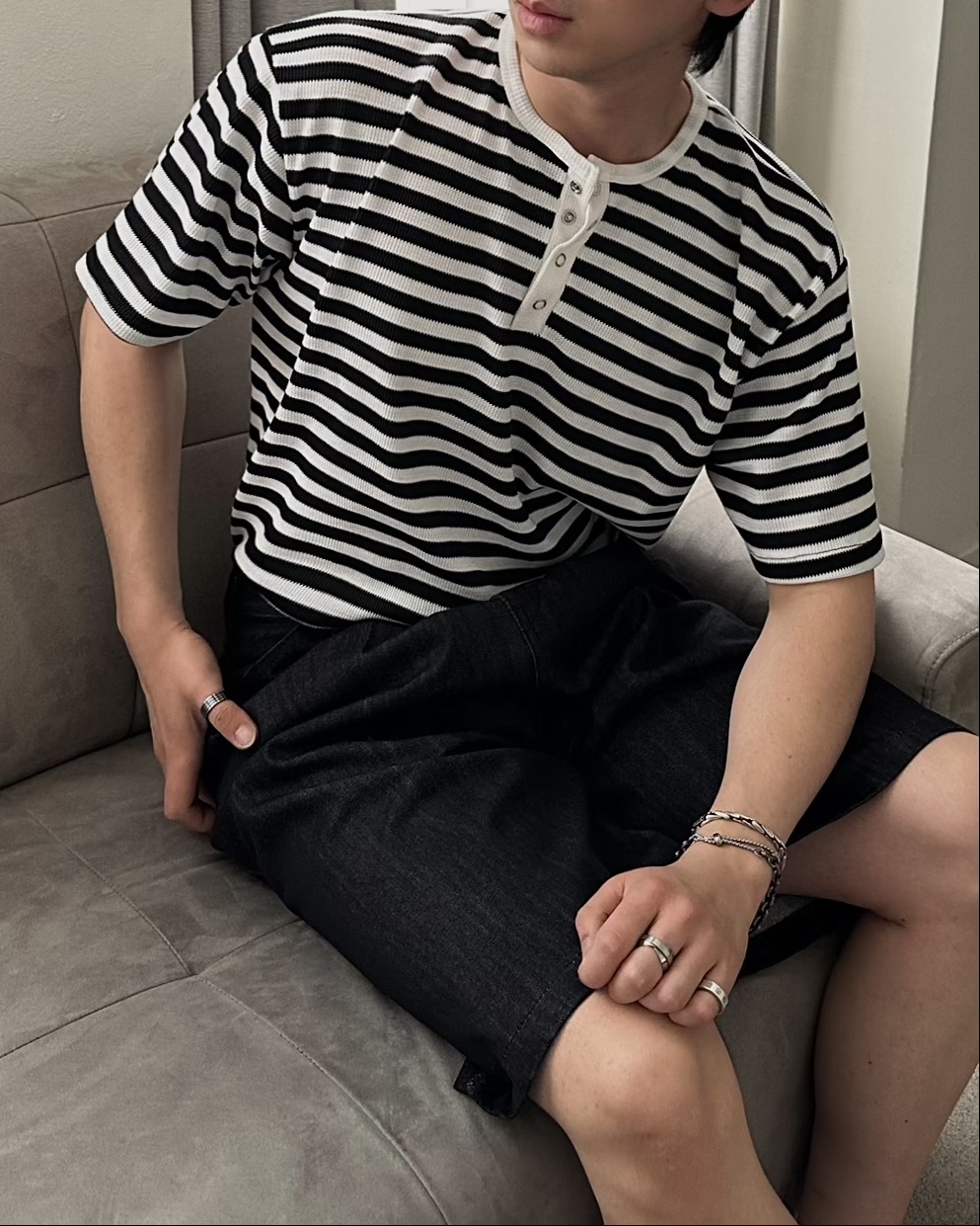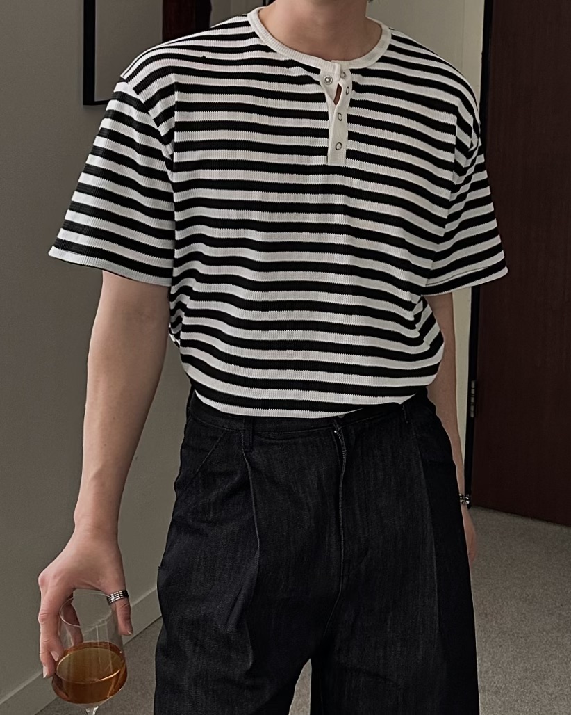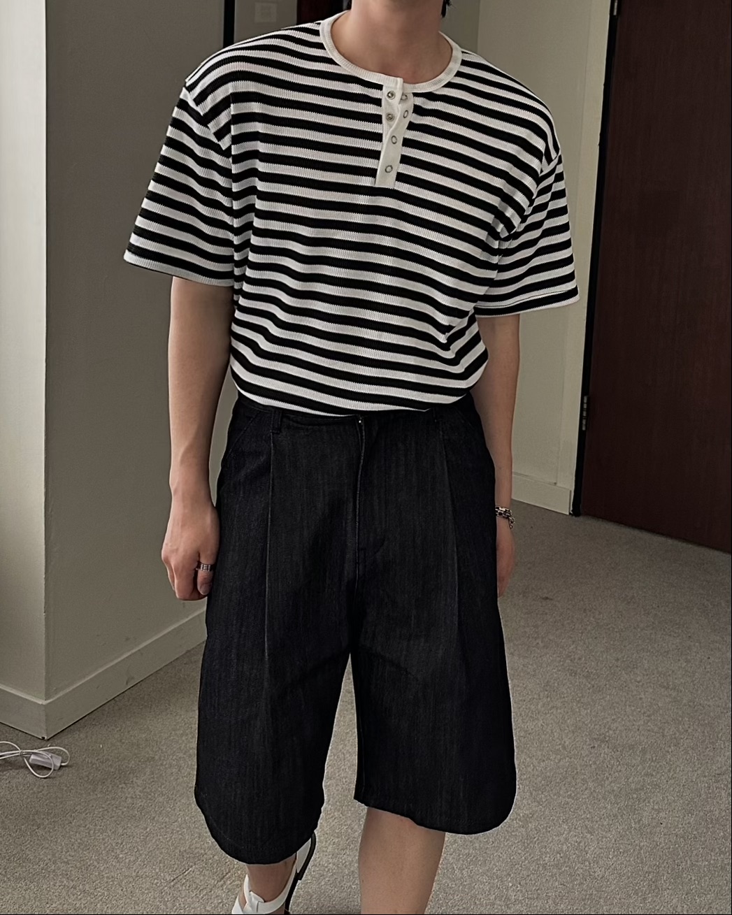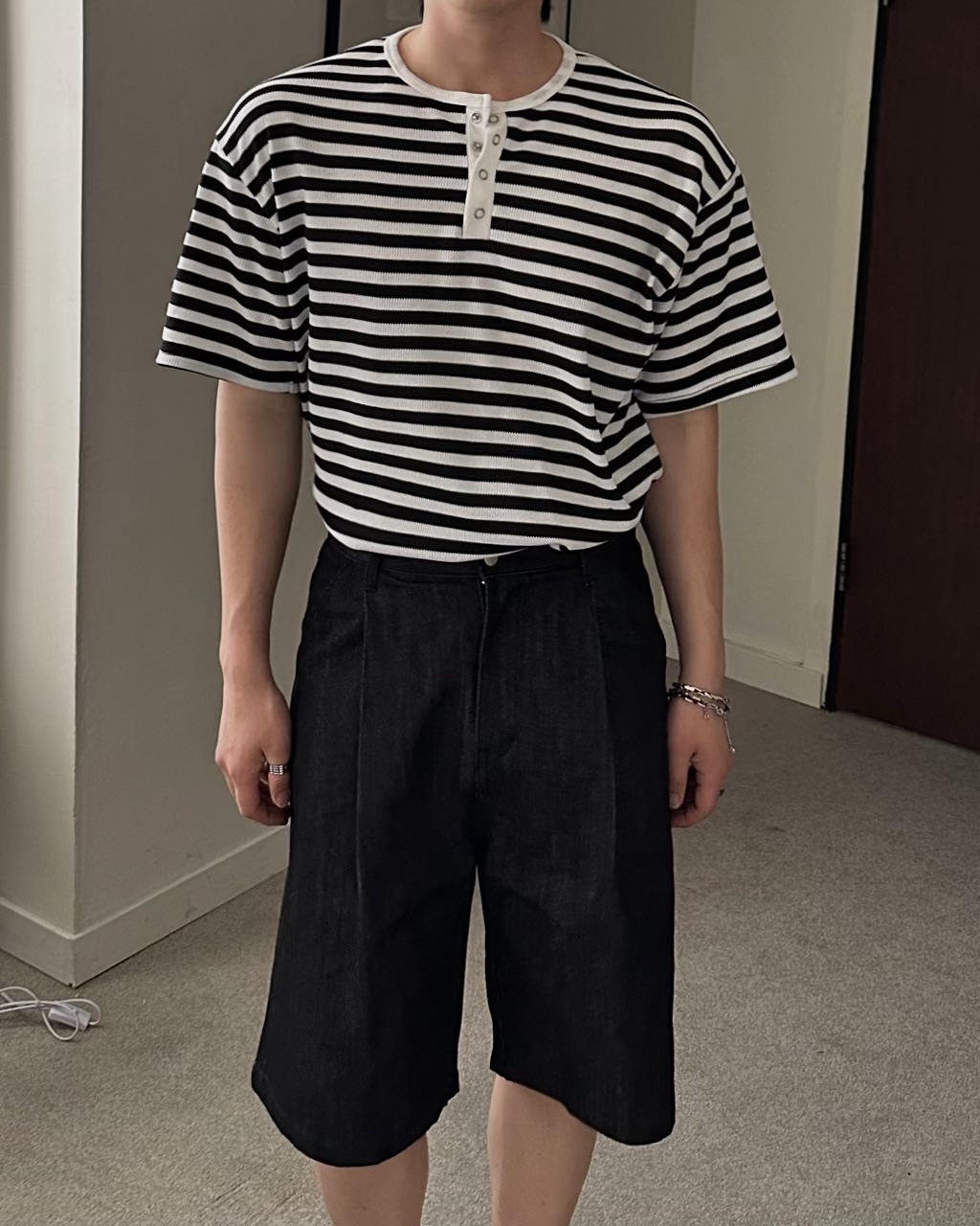 -캐주얼하게 즐길 수 있는 와플 헨리넥 티셔츠