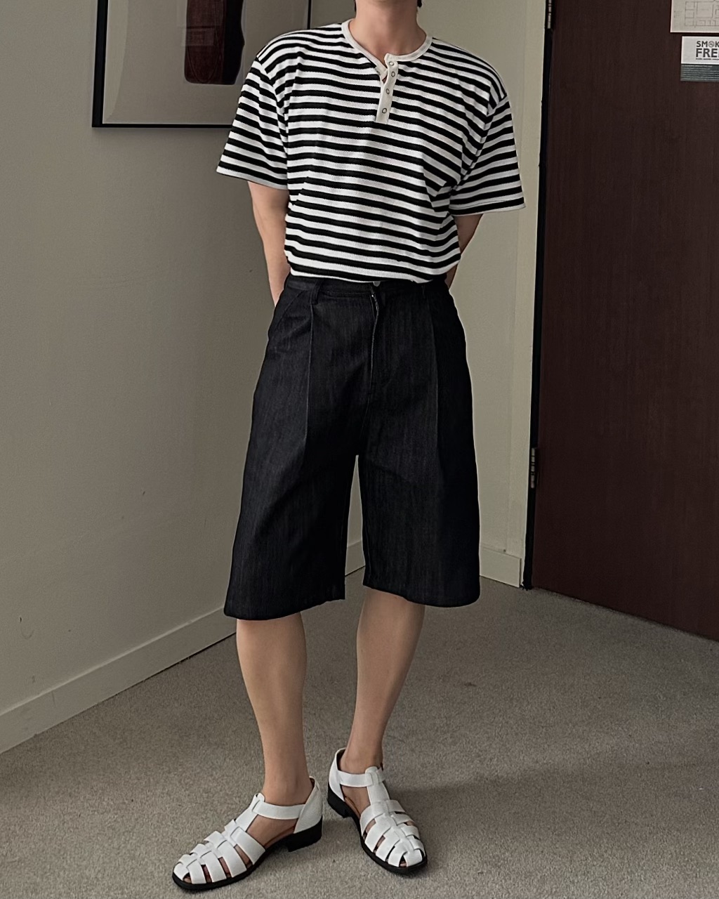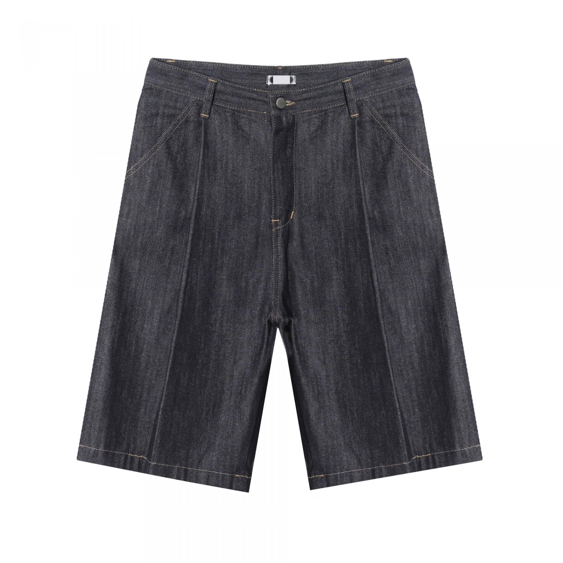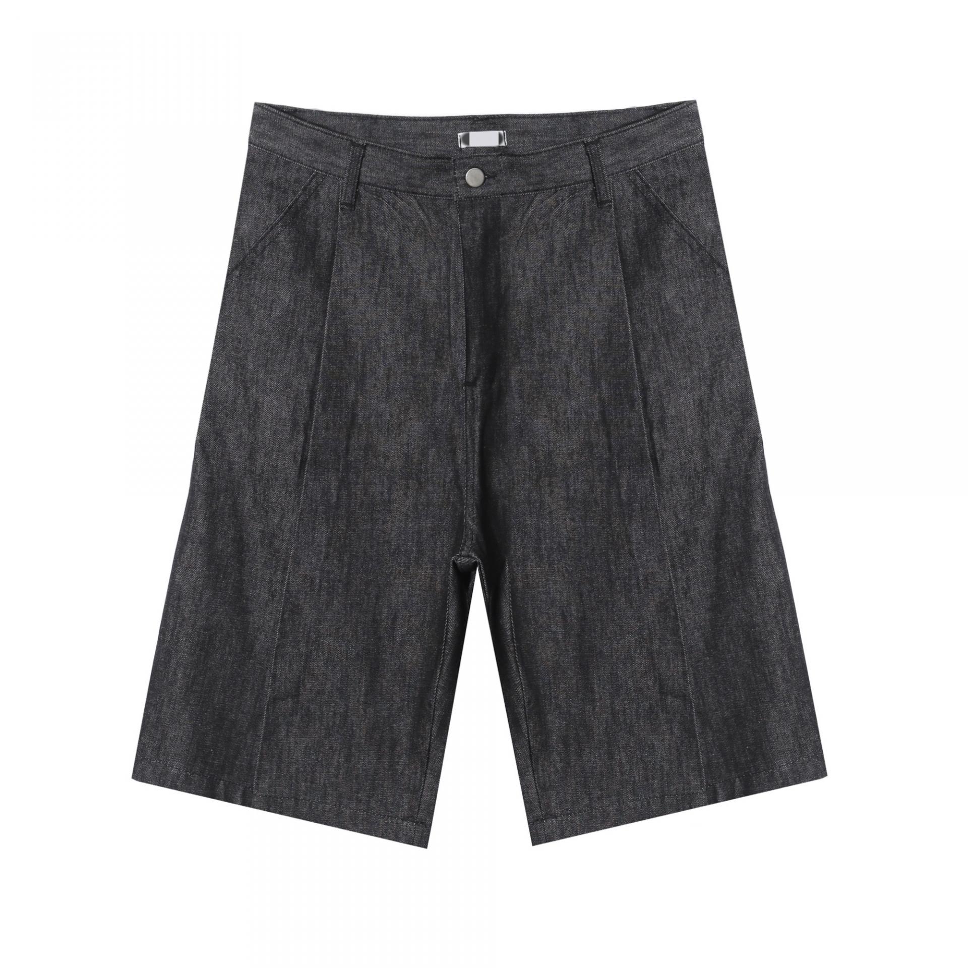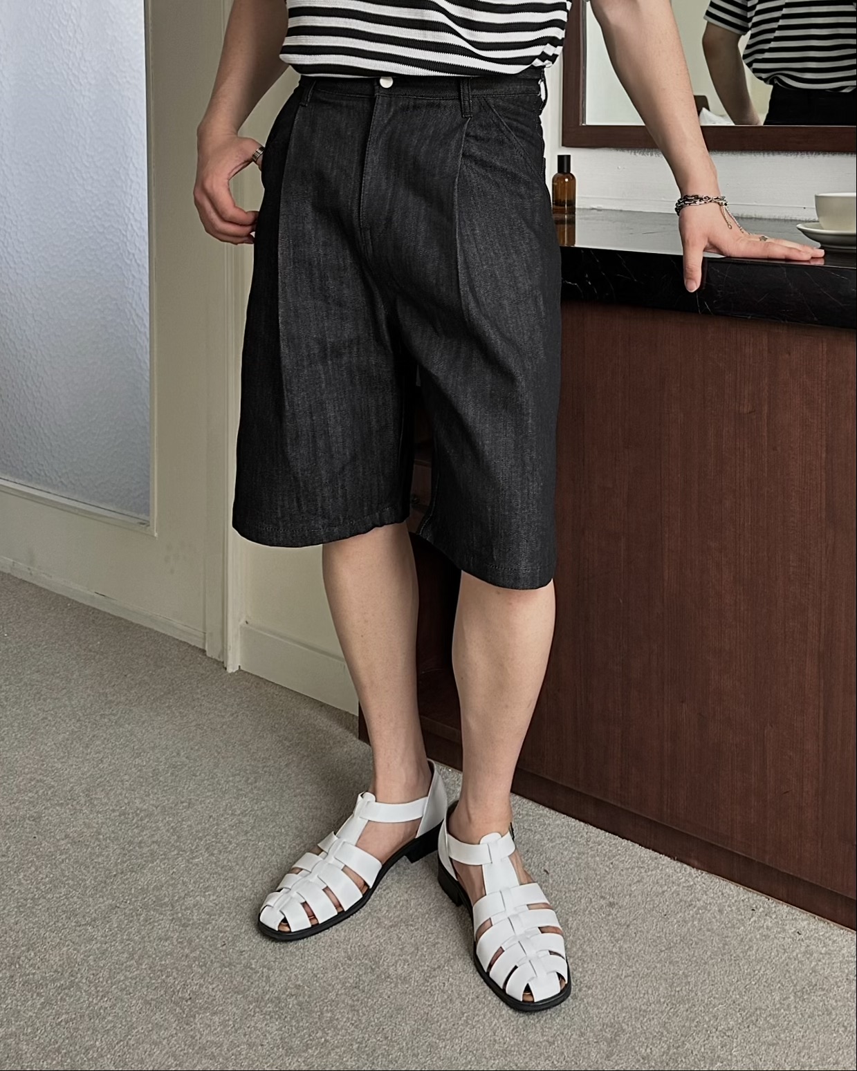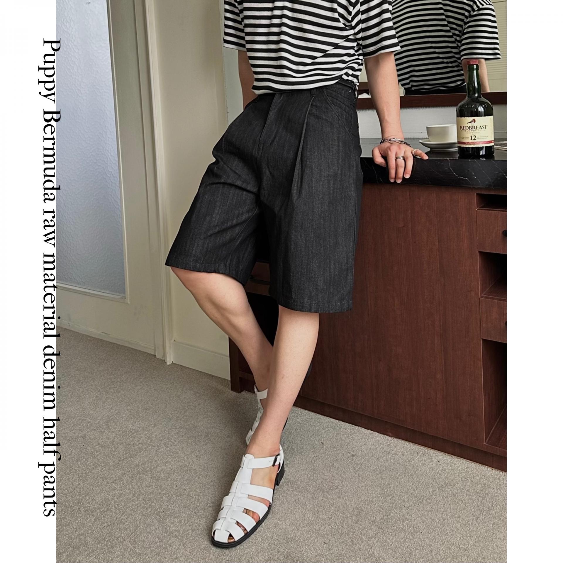 -탄탄한 데님 원단으로 제작된 하프 팬츠
