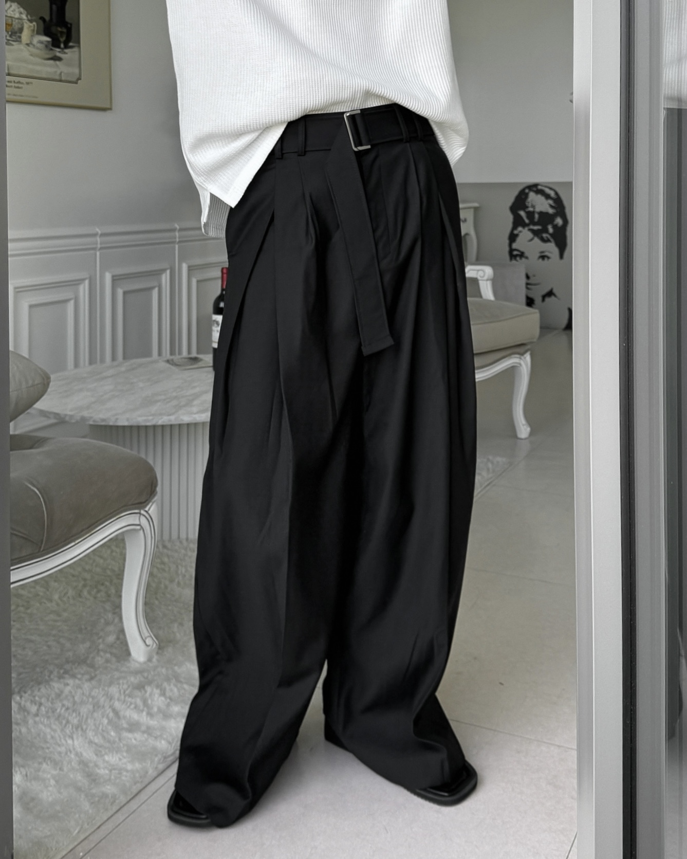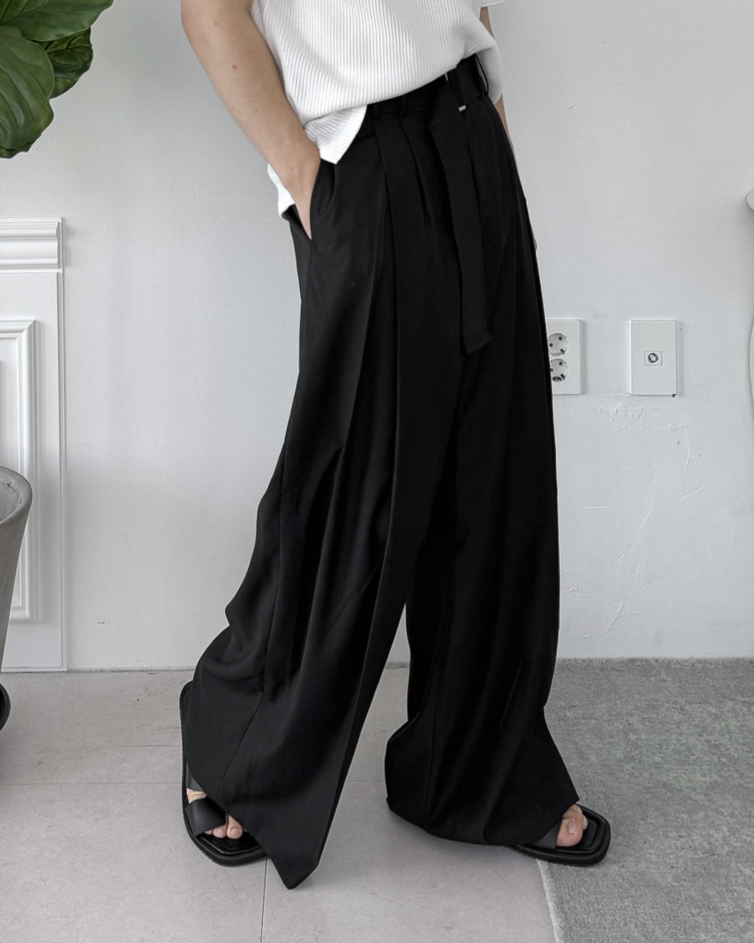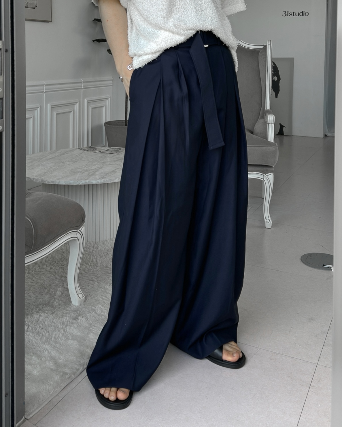 -겹주름 트윈 디테일 디자인의 슬랙스