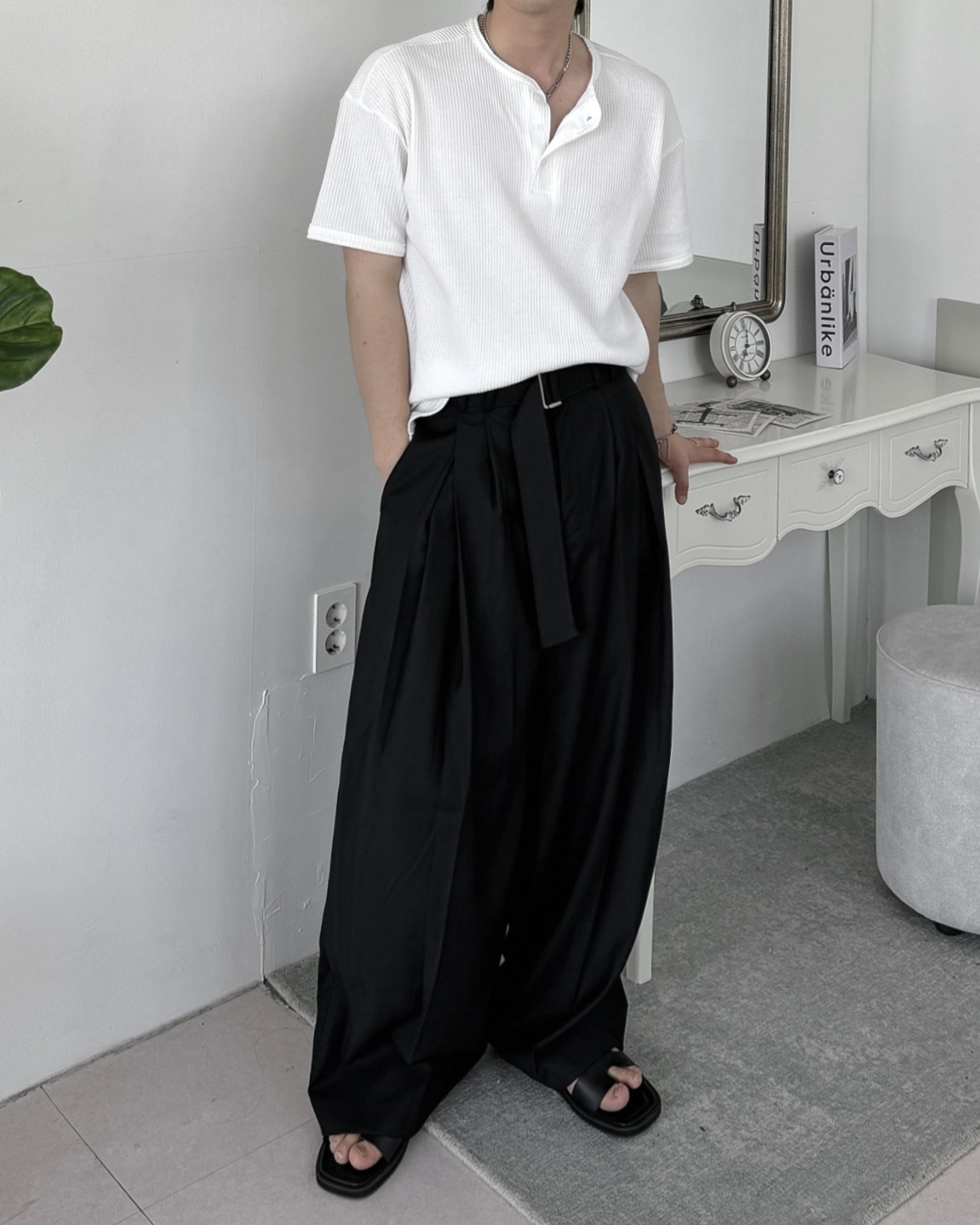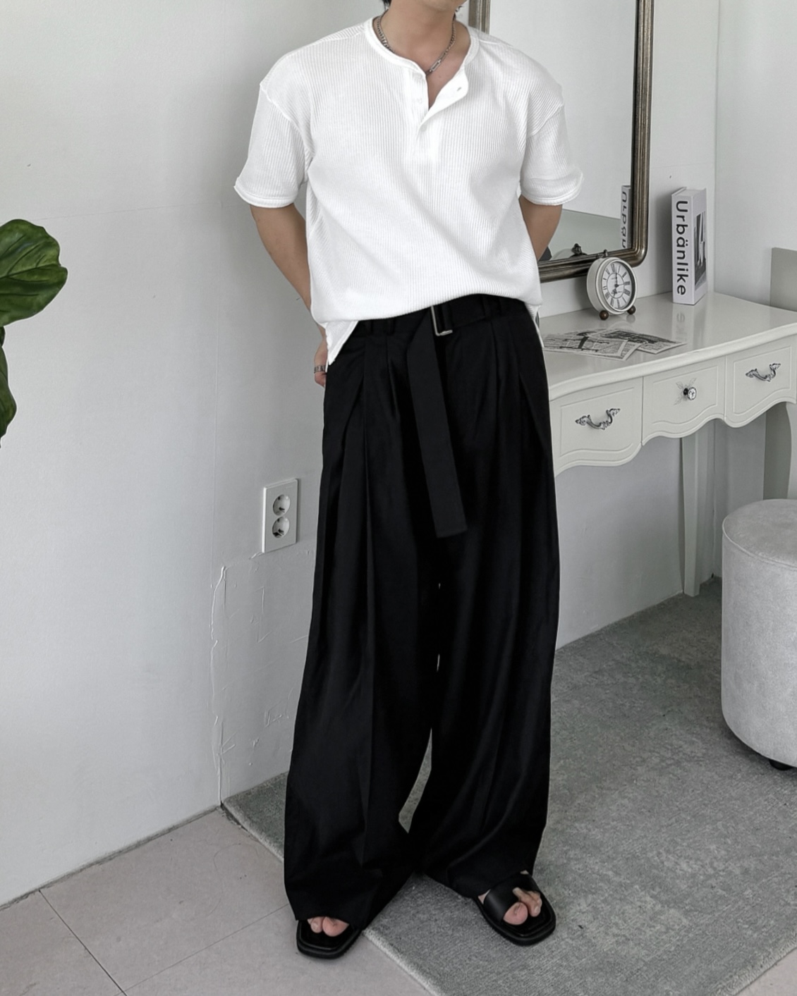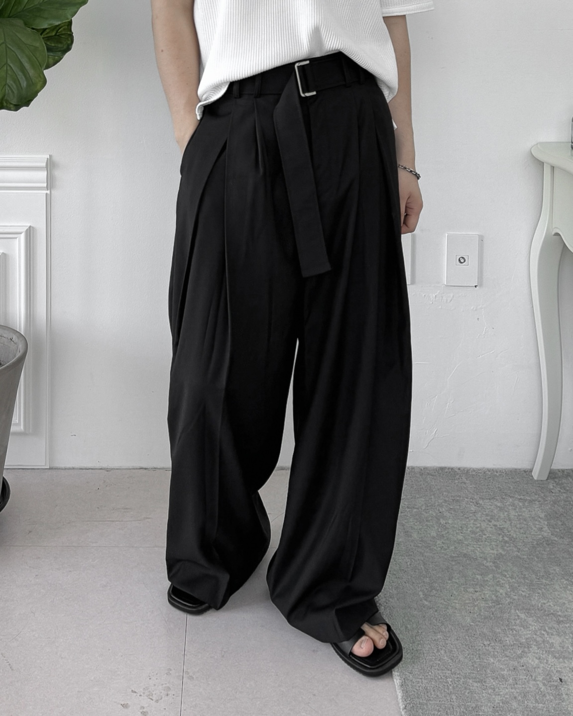 -겹주름 트윈 디테일 디자인의 슬랙스