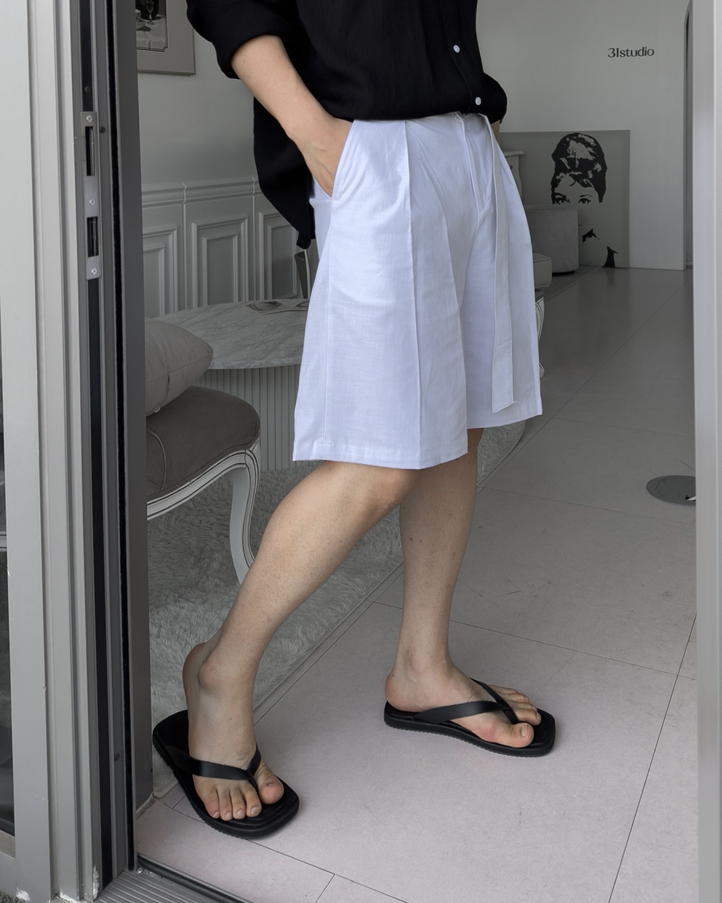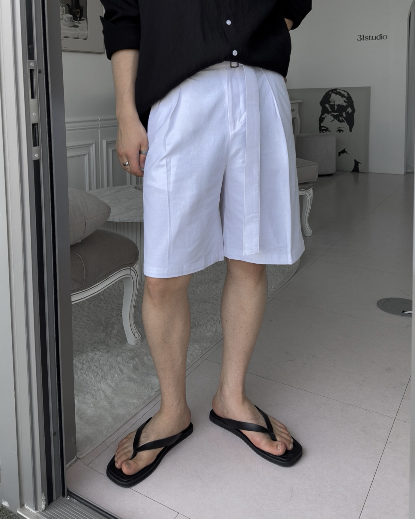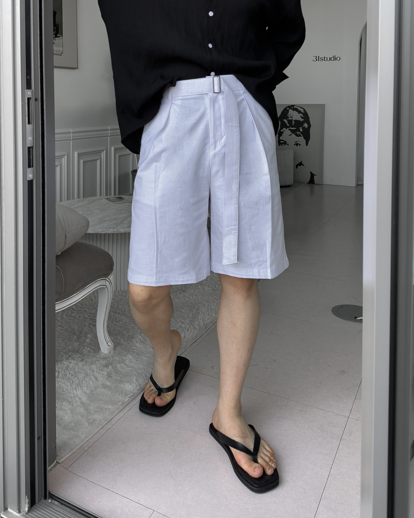 -린넨 원단으로 제작된 버뮤다 슬랙스