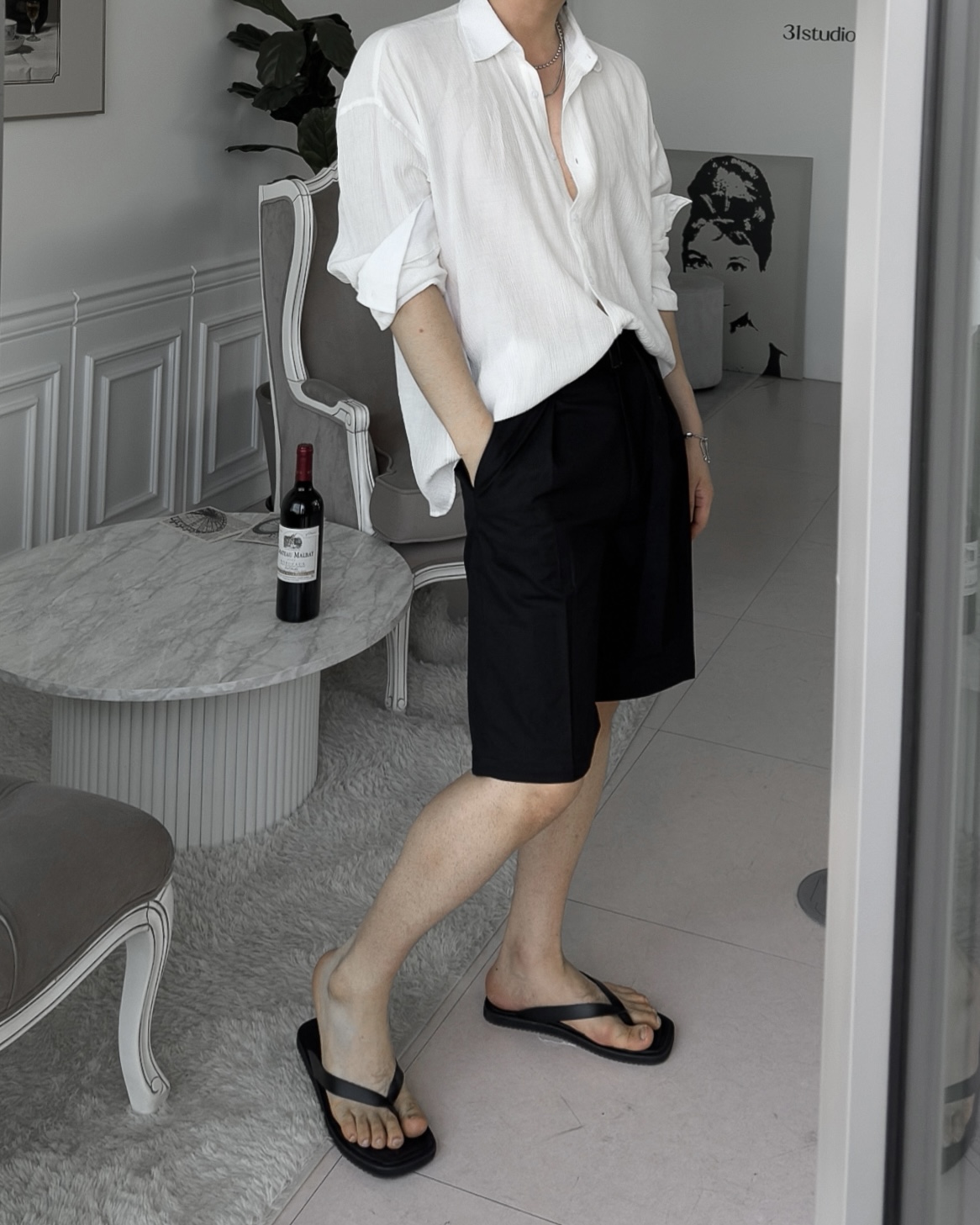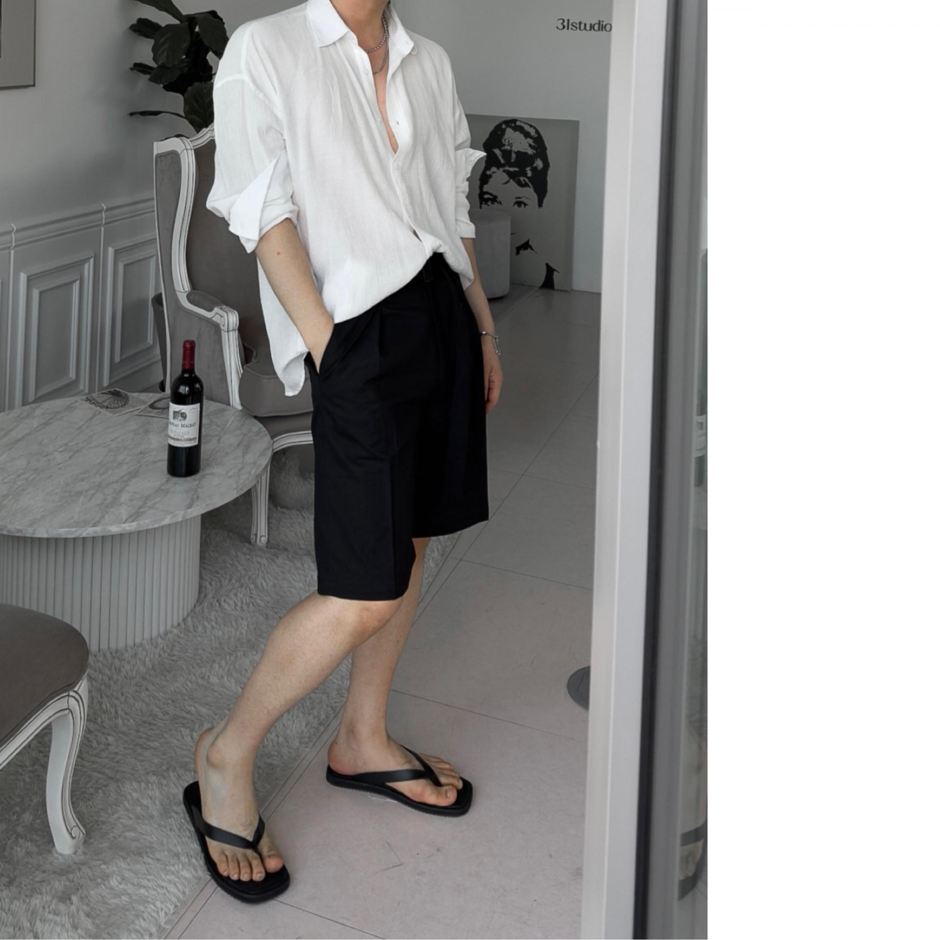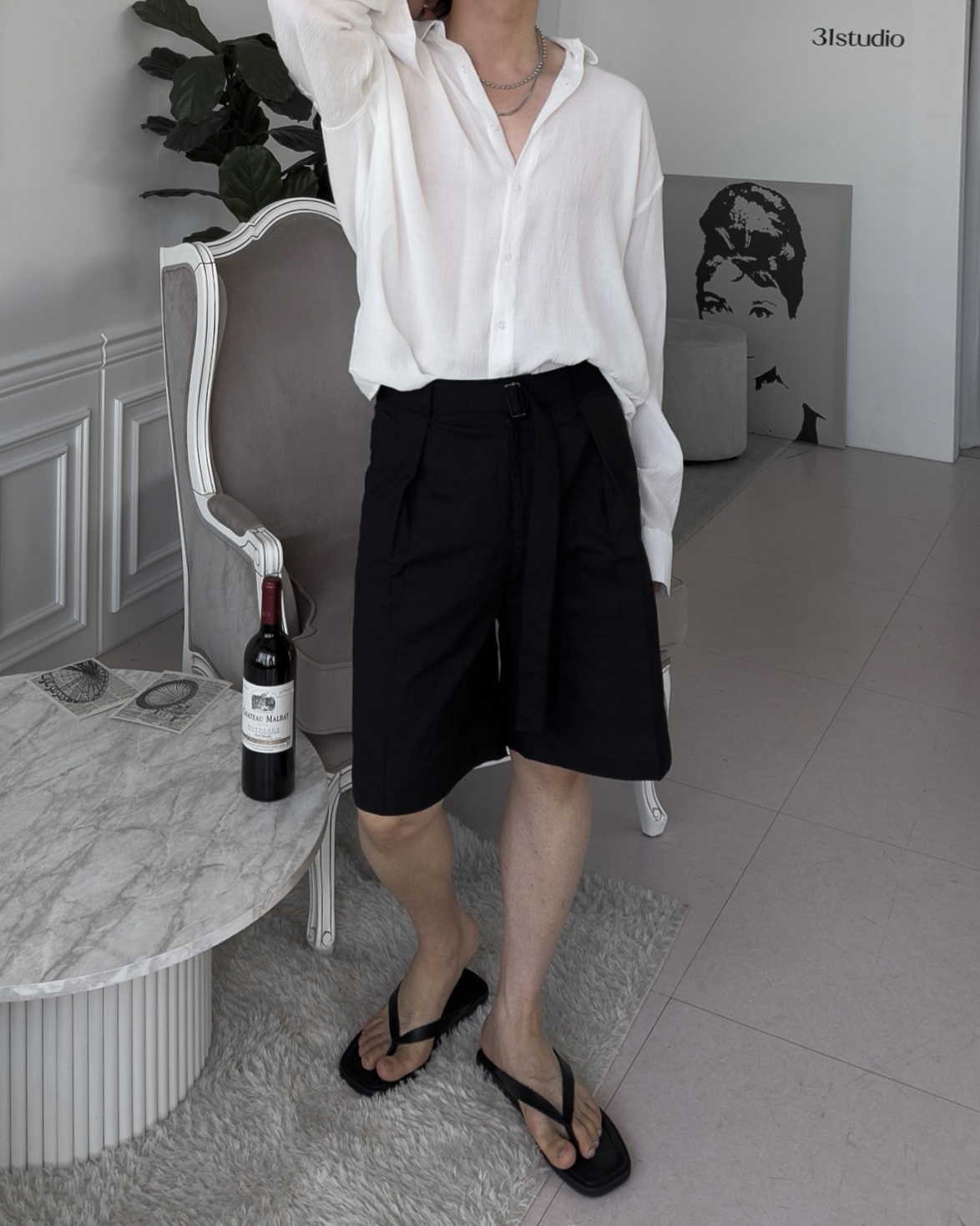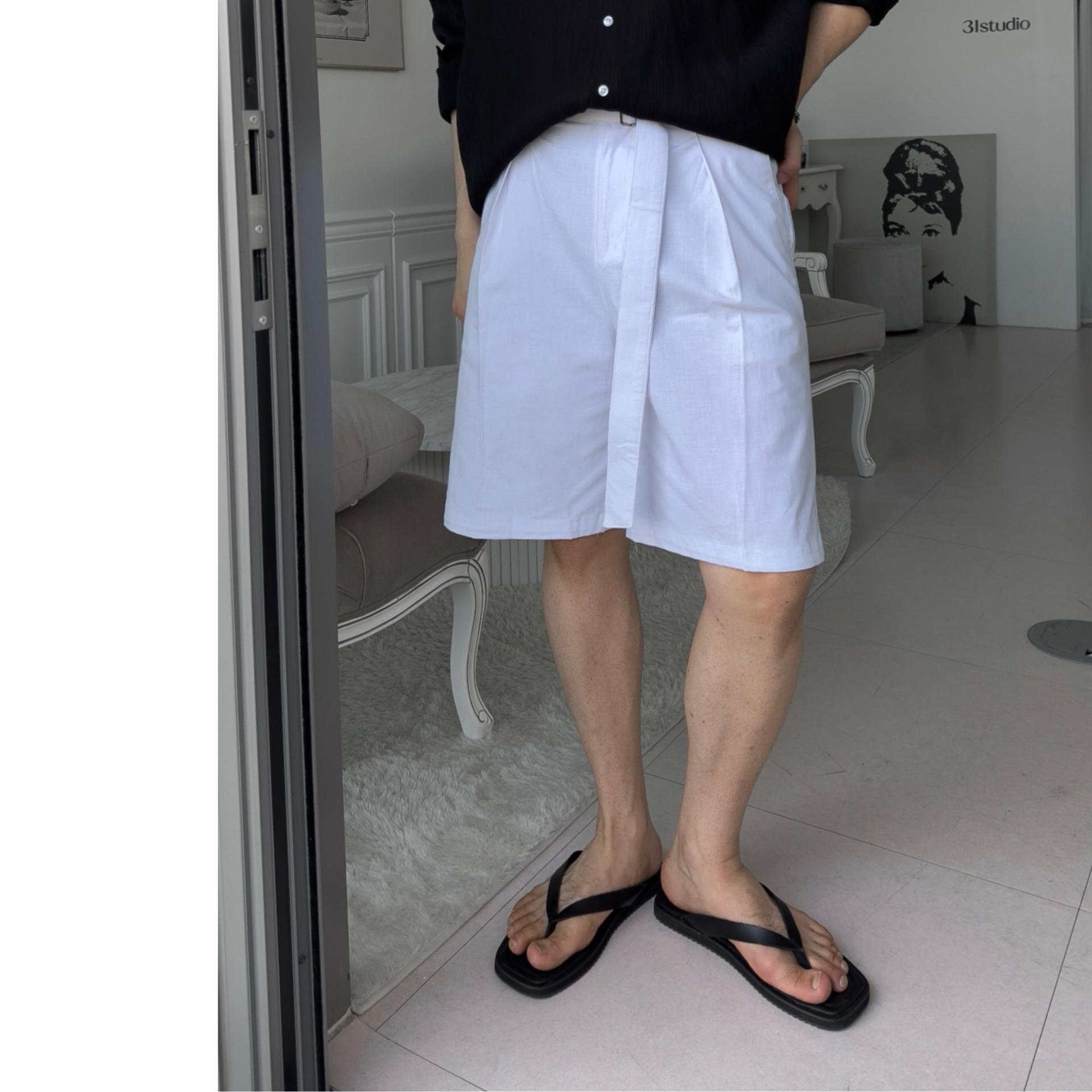 -린넨 원단으로 제작된 버뮤다 슬랙스
