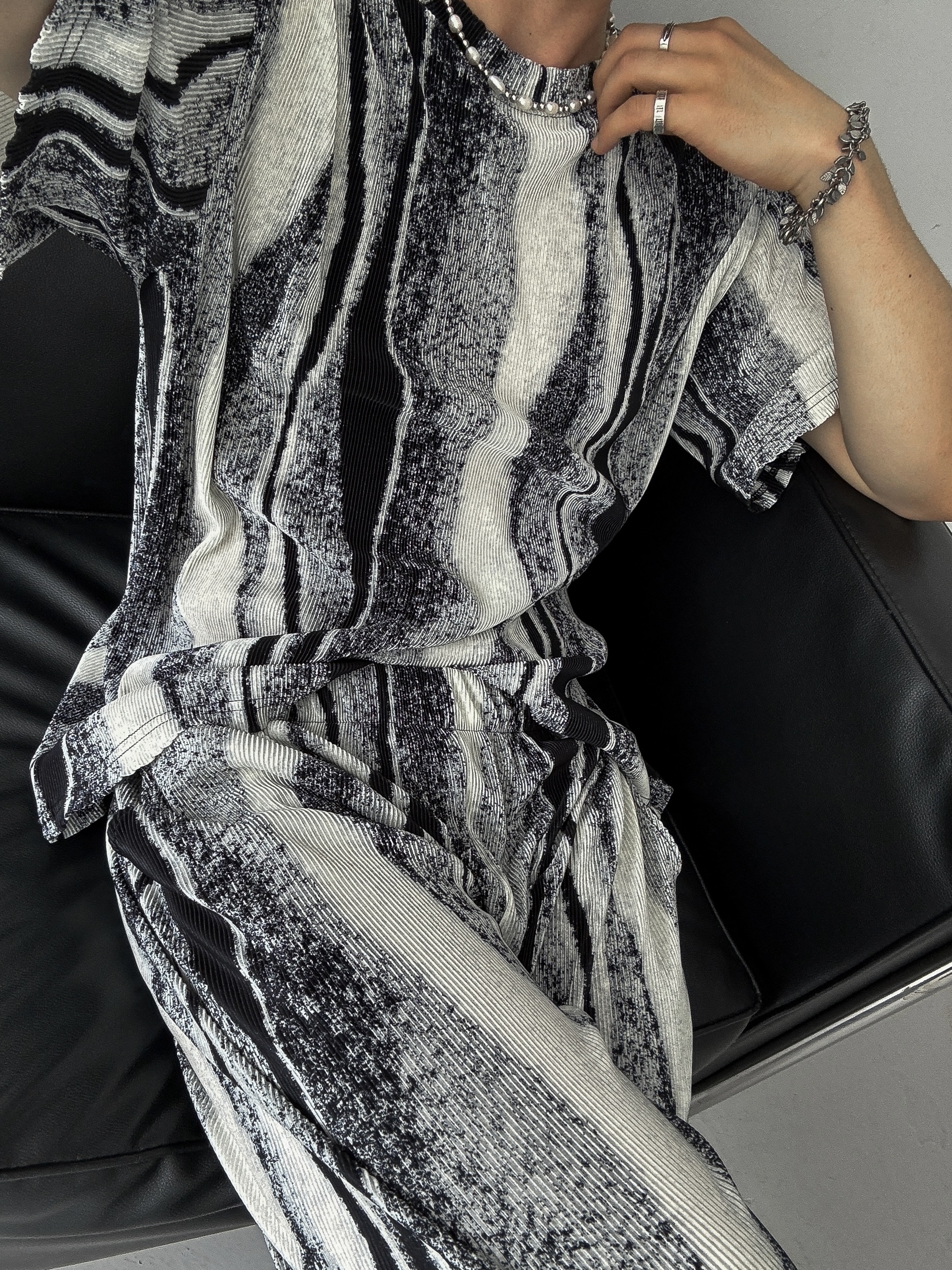 -통기성이 우수한 플리츠 반팔 티셔츠