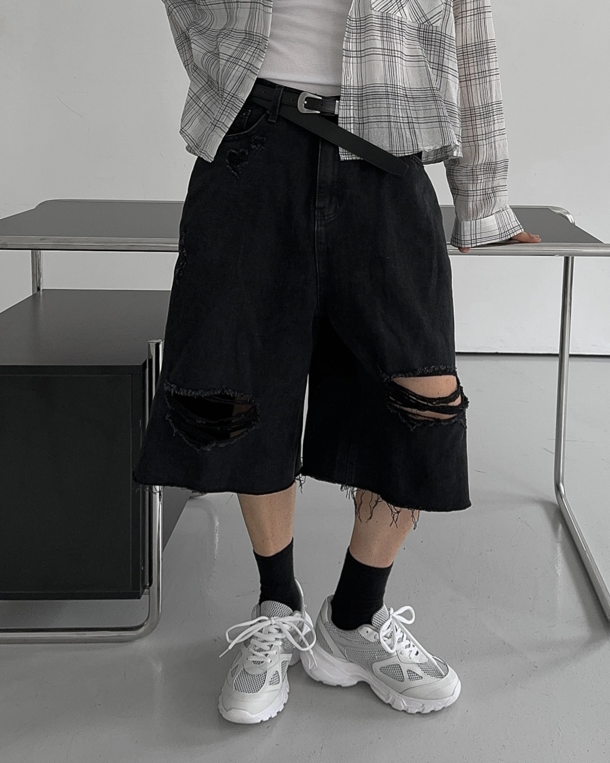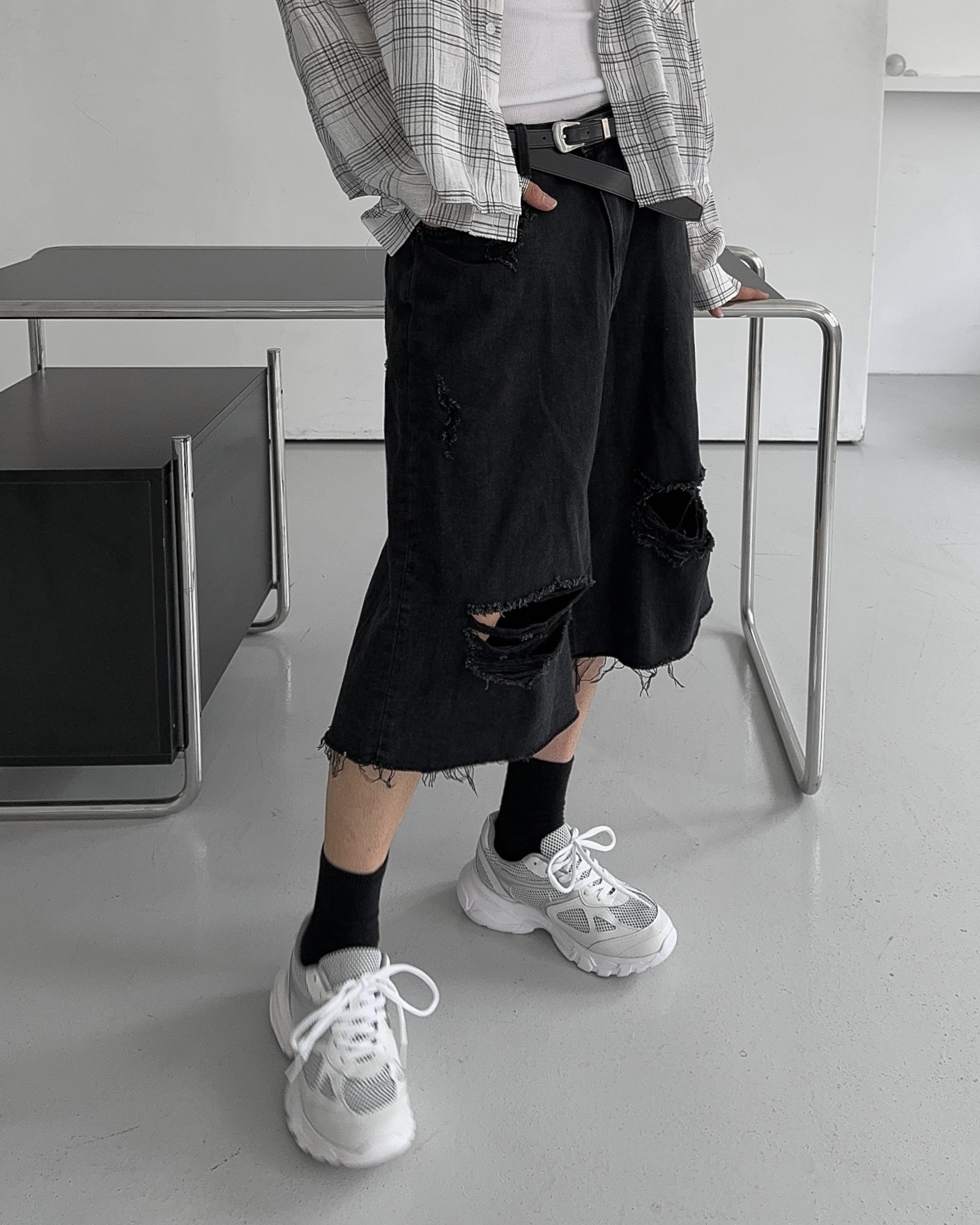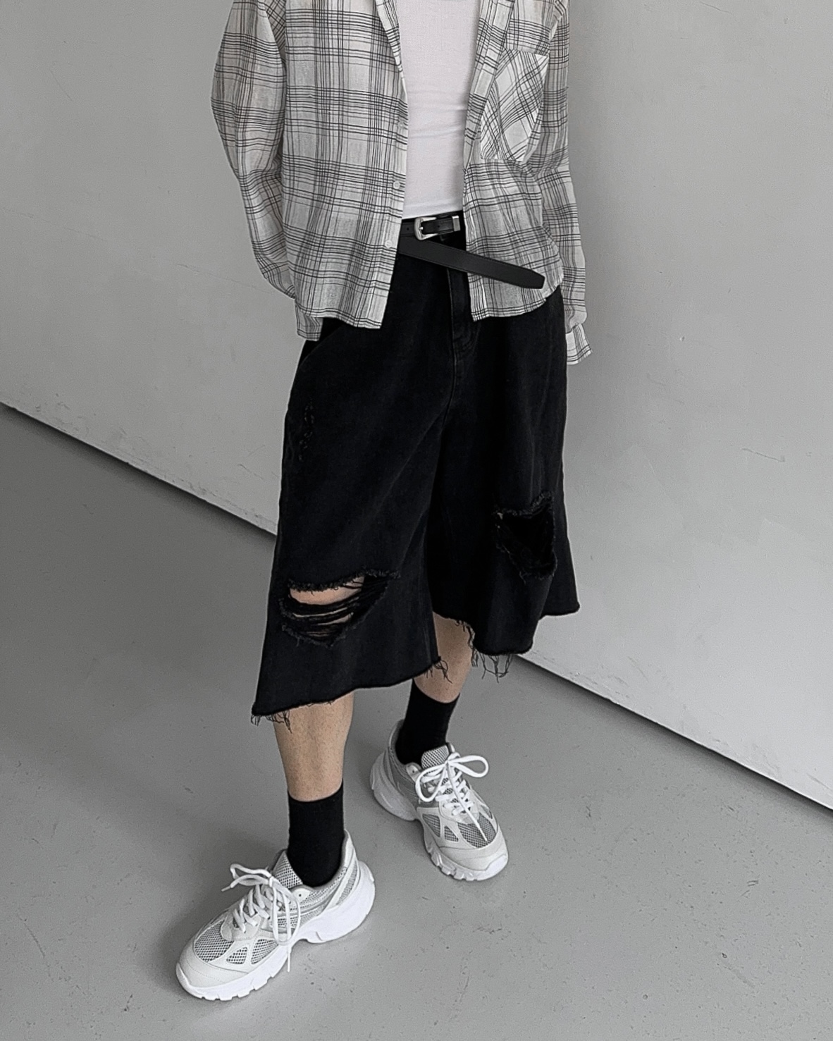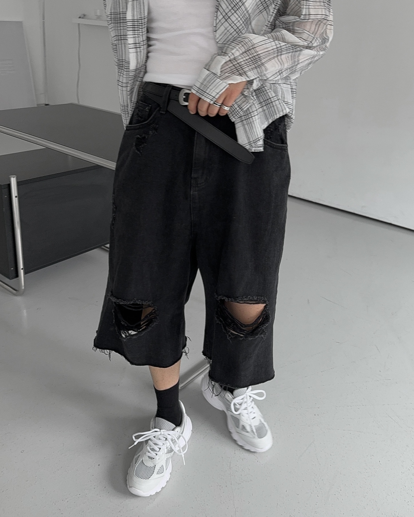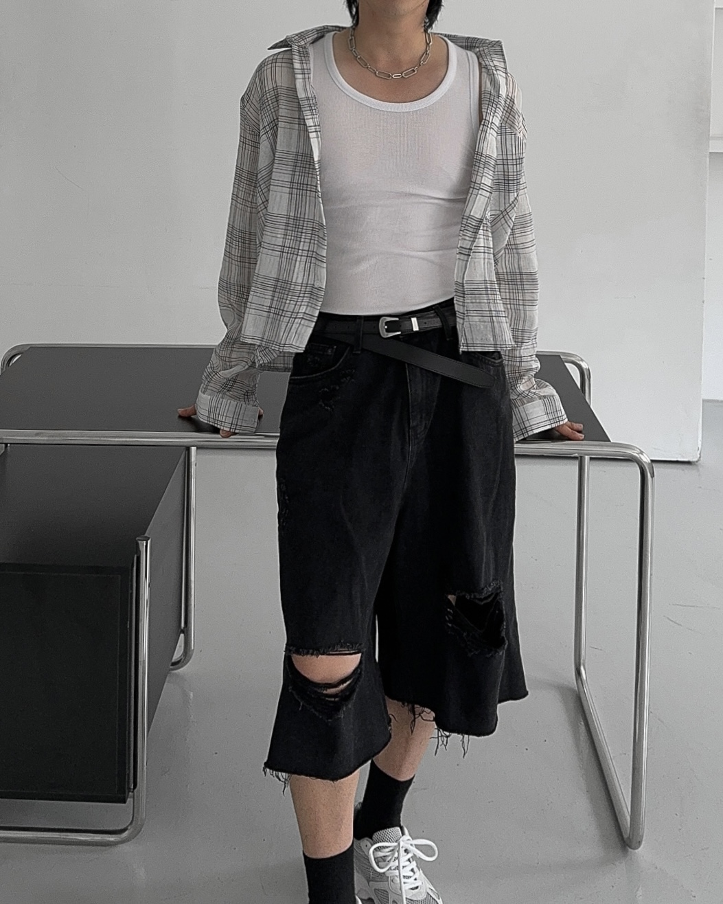 -밑단 , 무릎 데미지 디테일