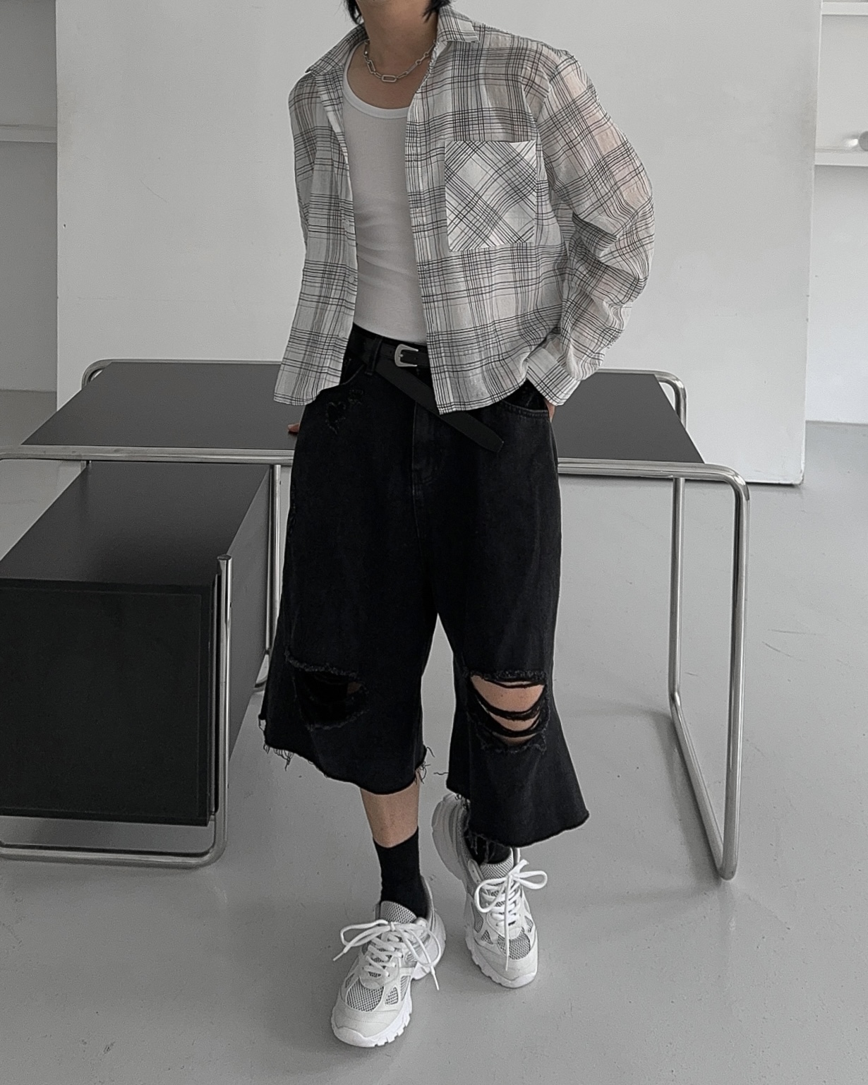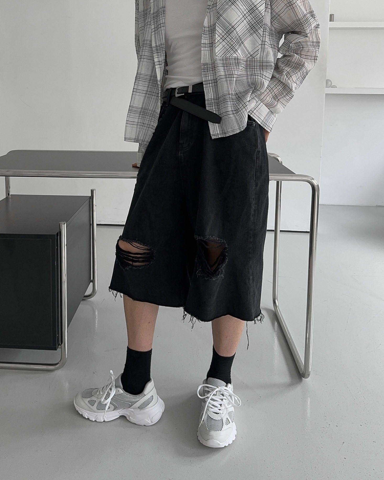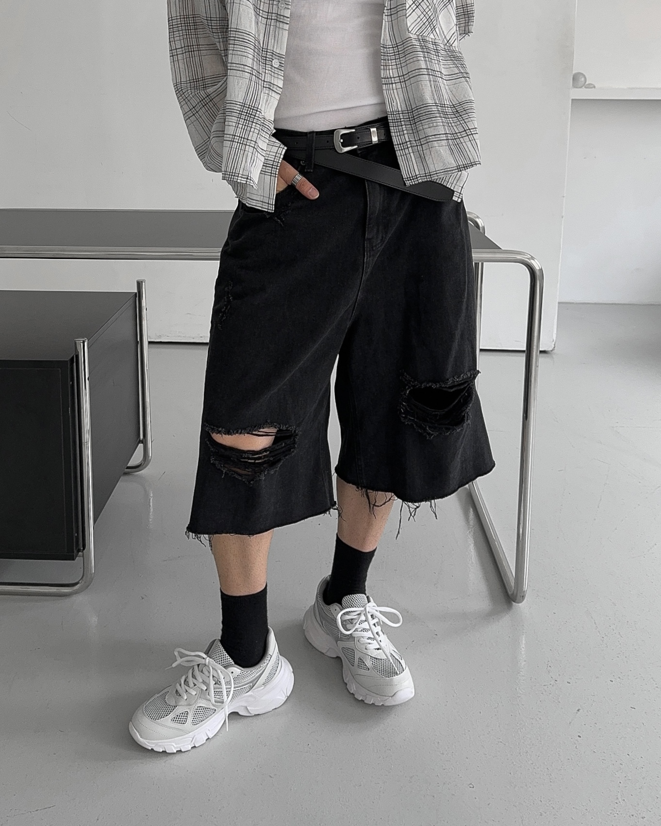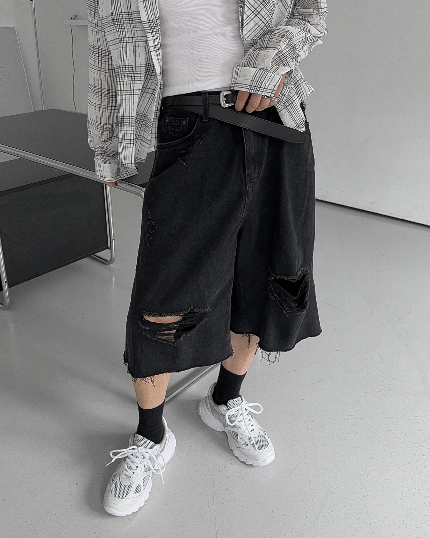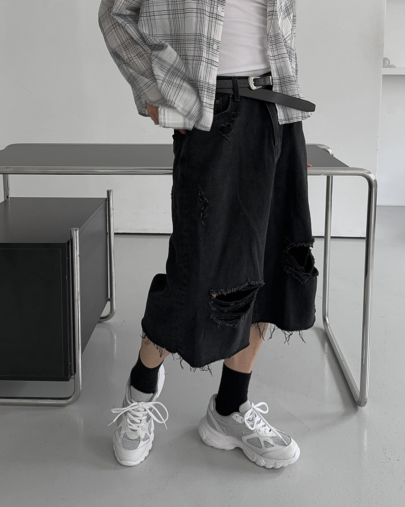 -밑단 , 무릎 데미지 디테일