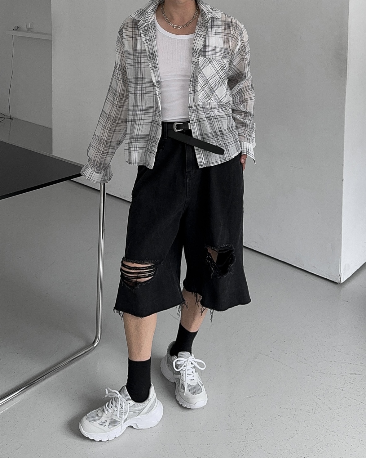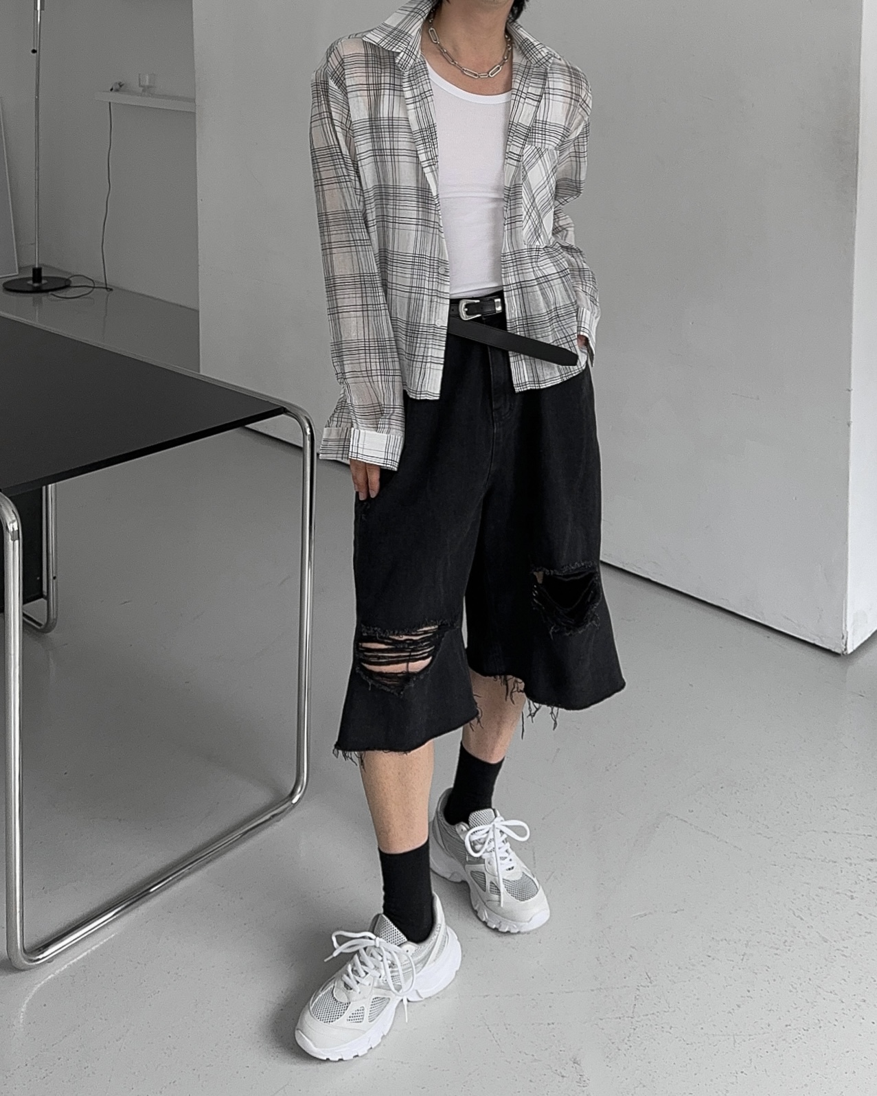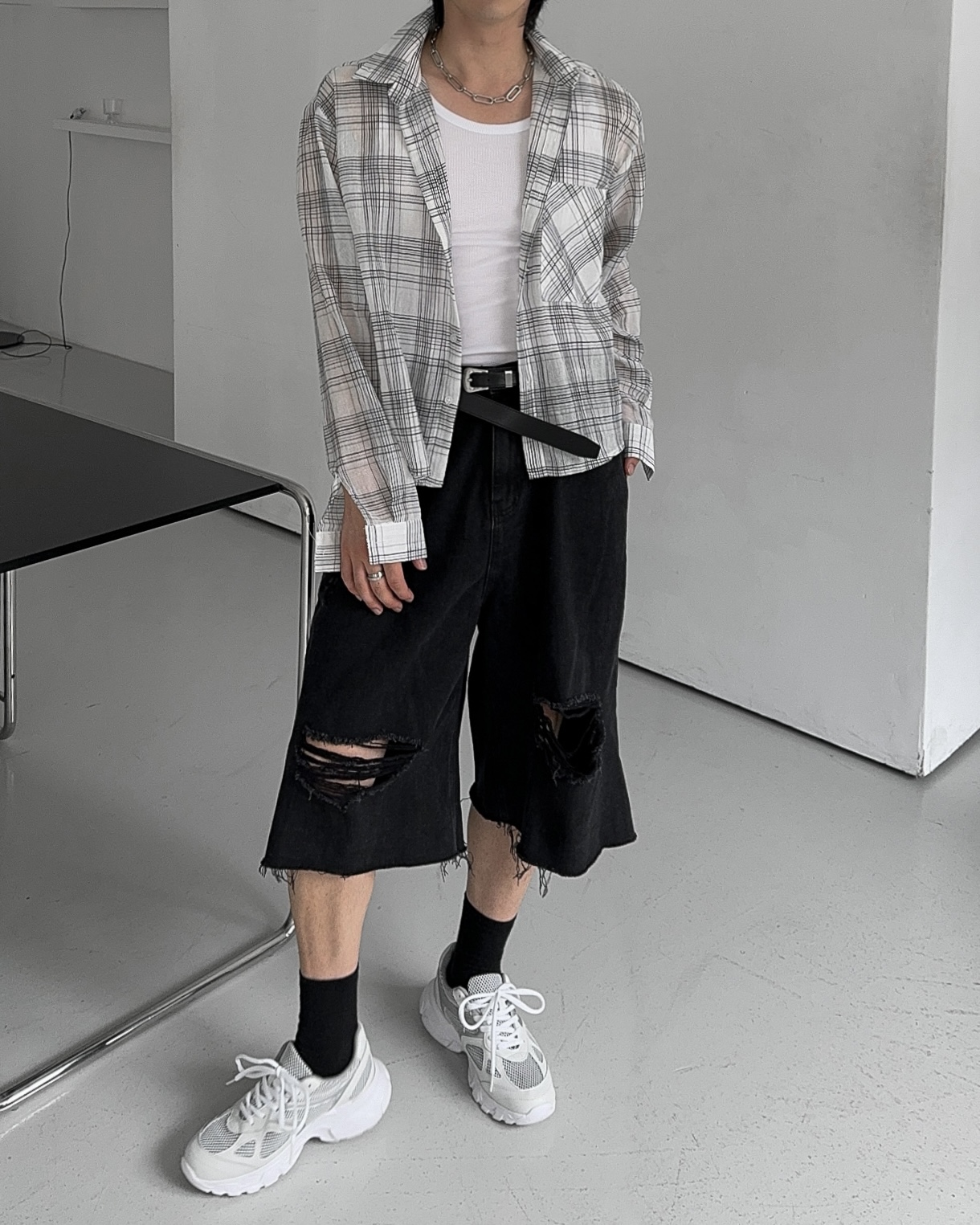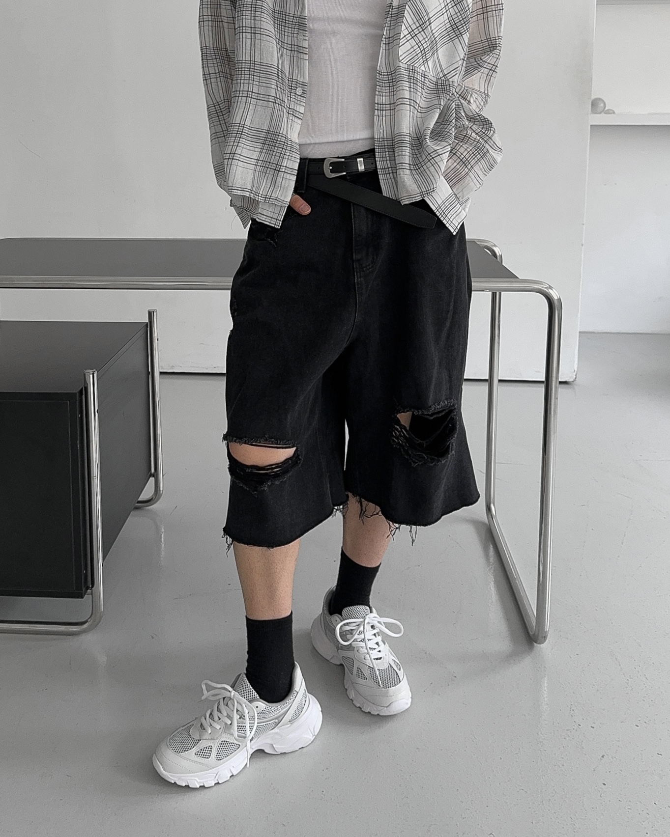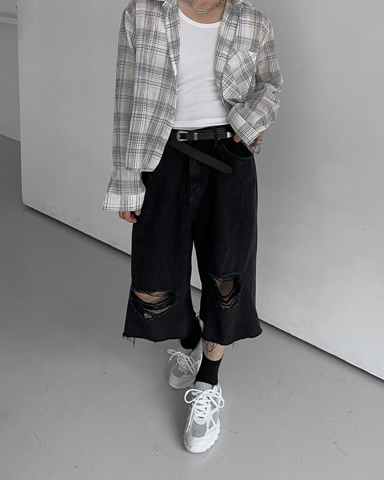 -밑단 , 무릎 데미지 디테일