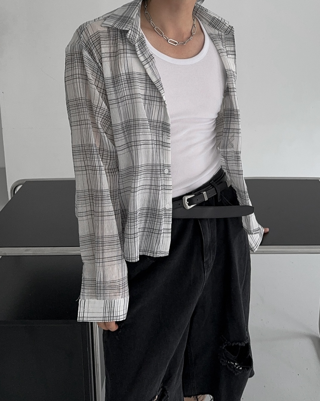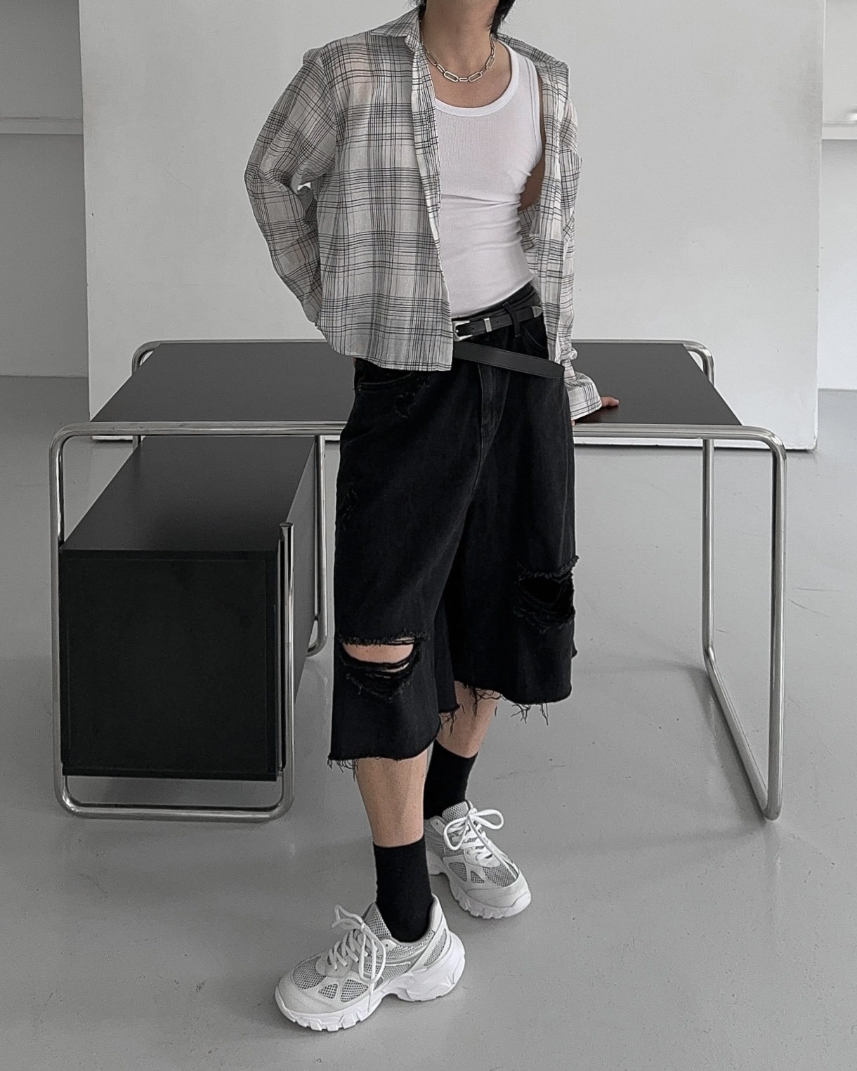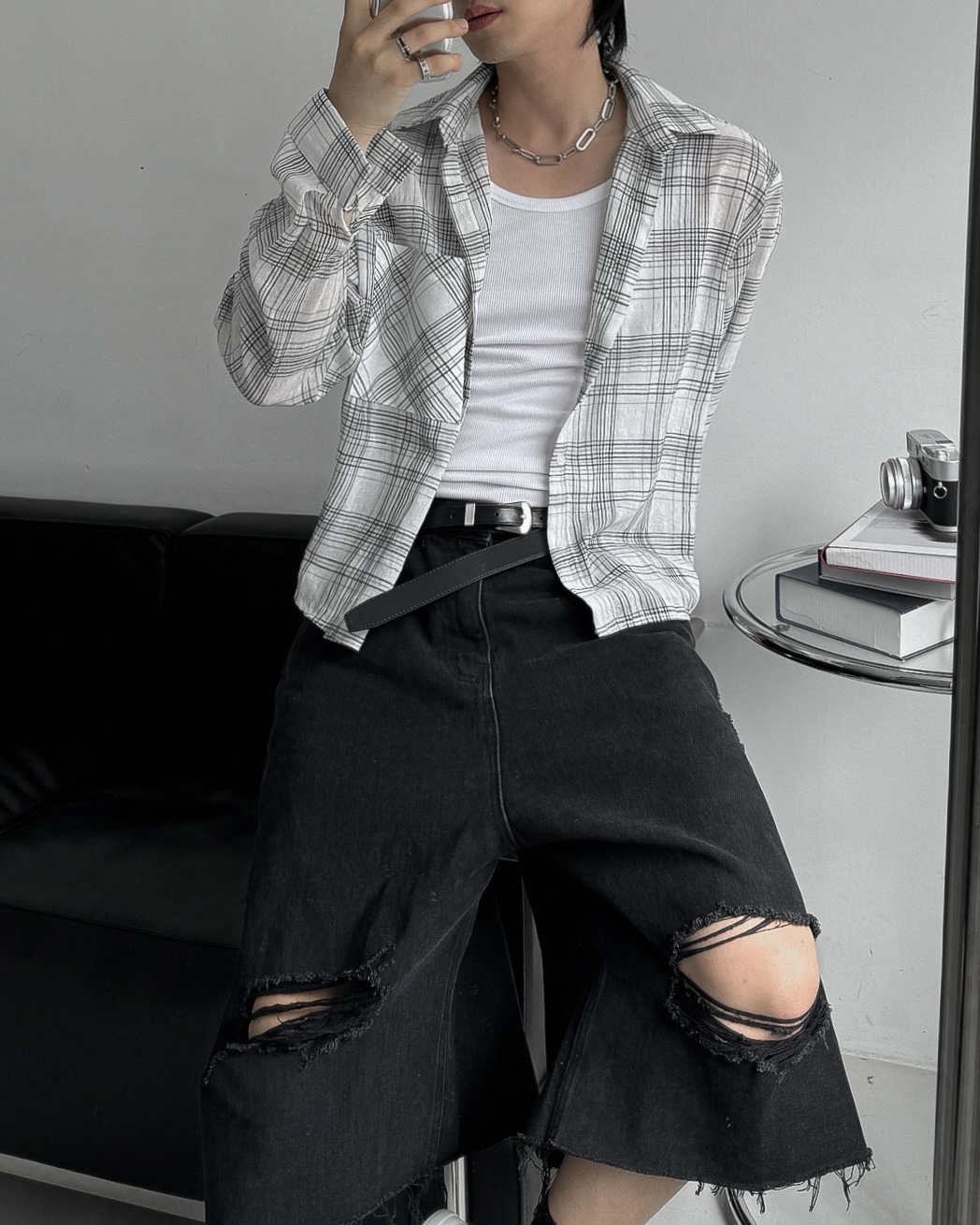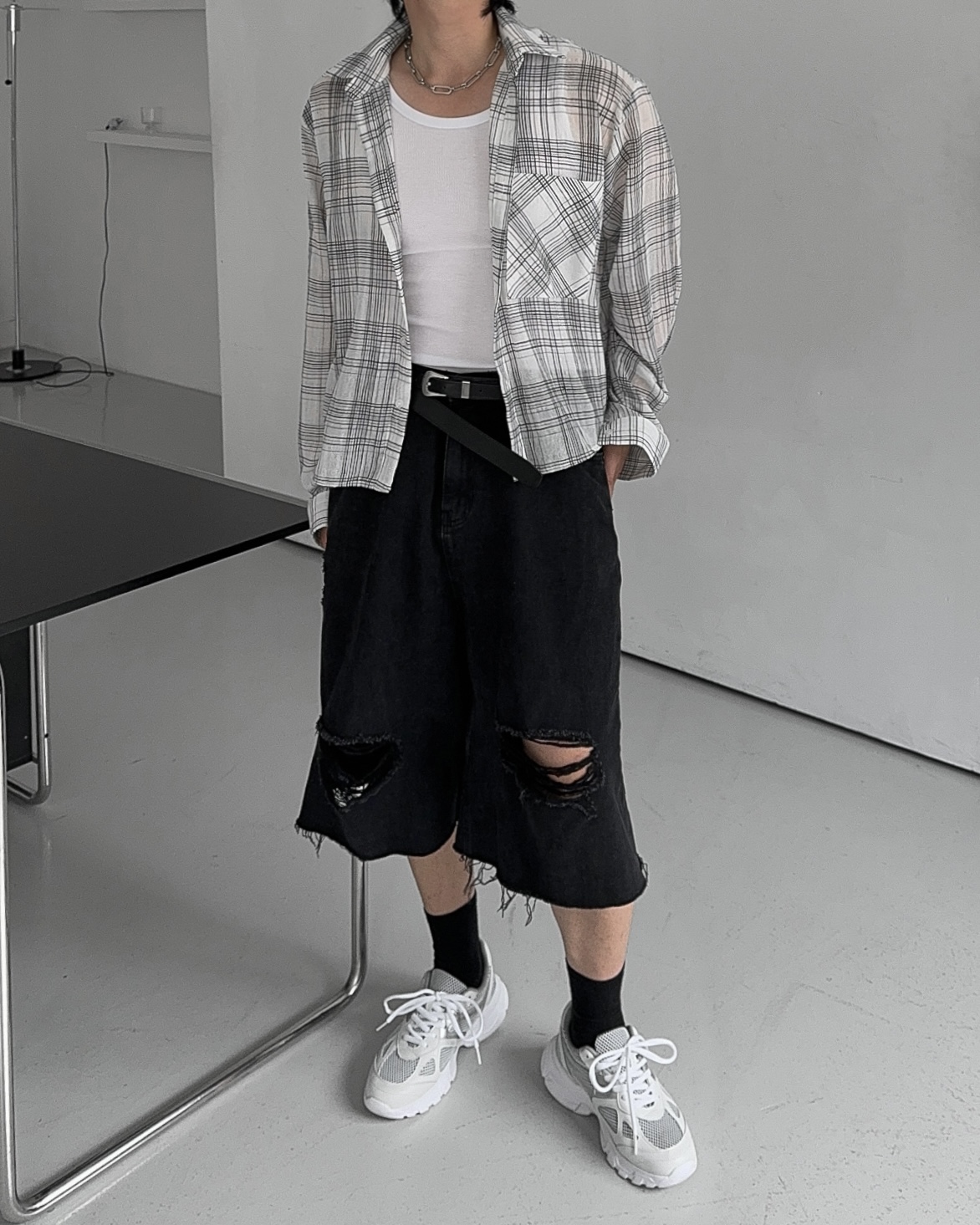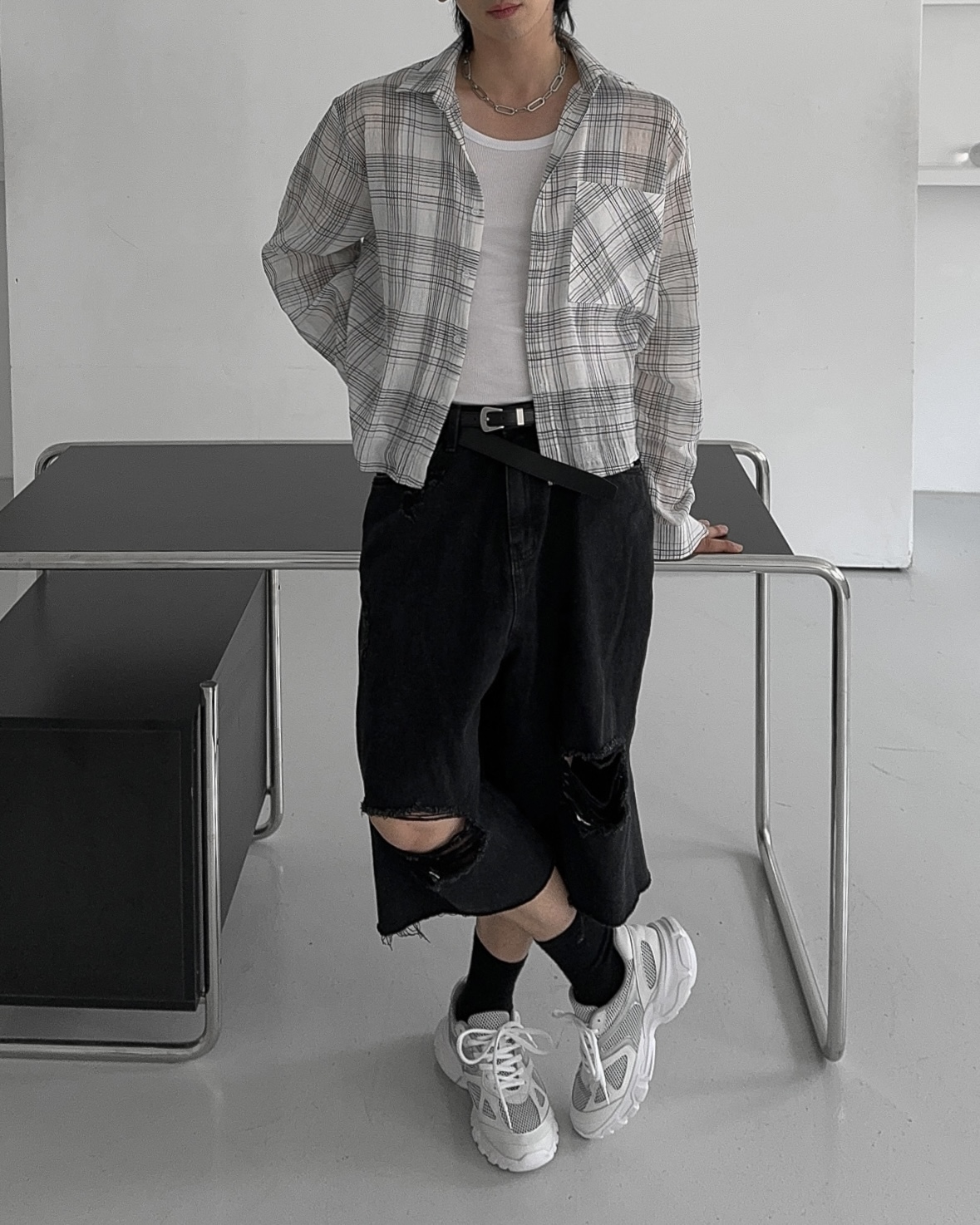 -밑단 , 무릎 데미지 디테일