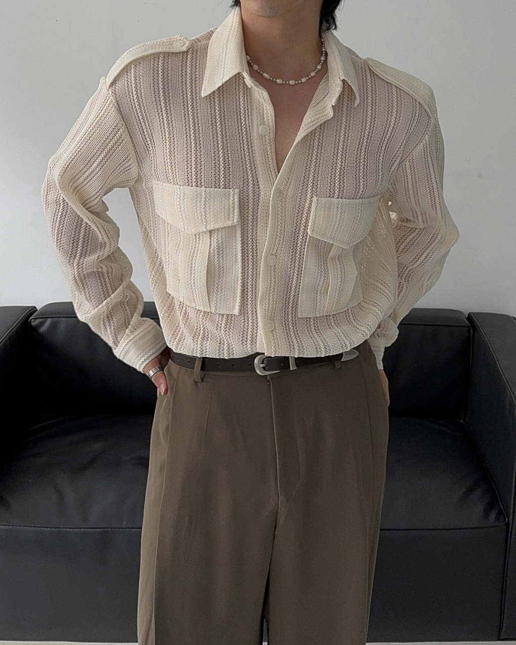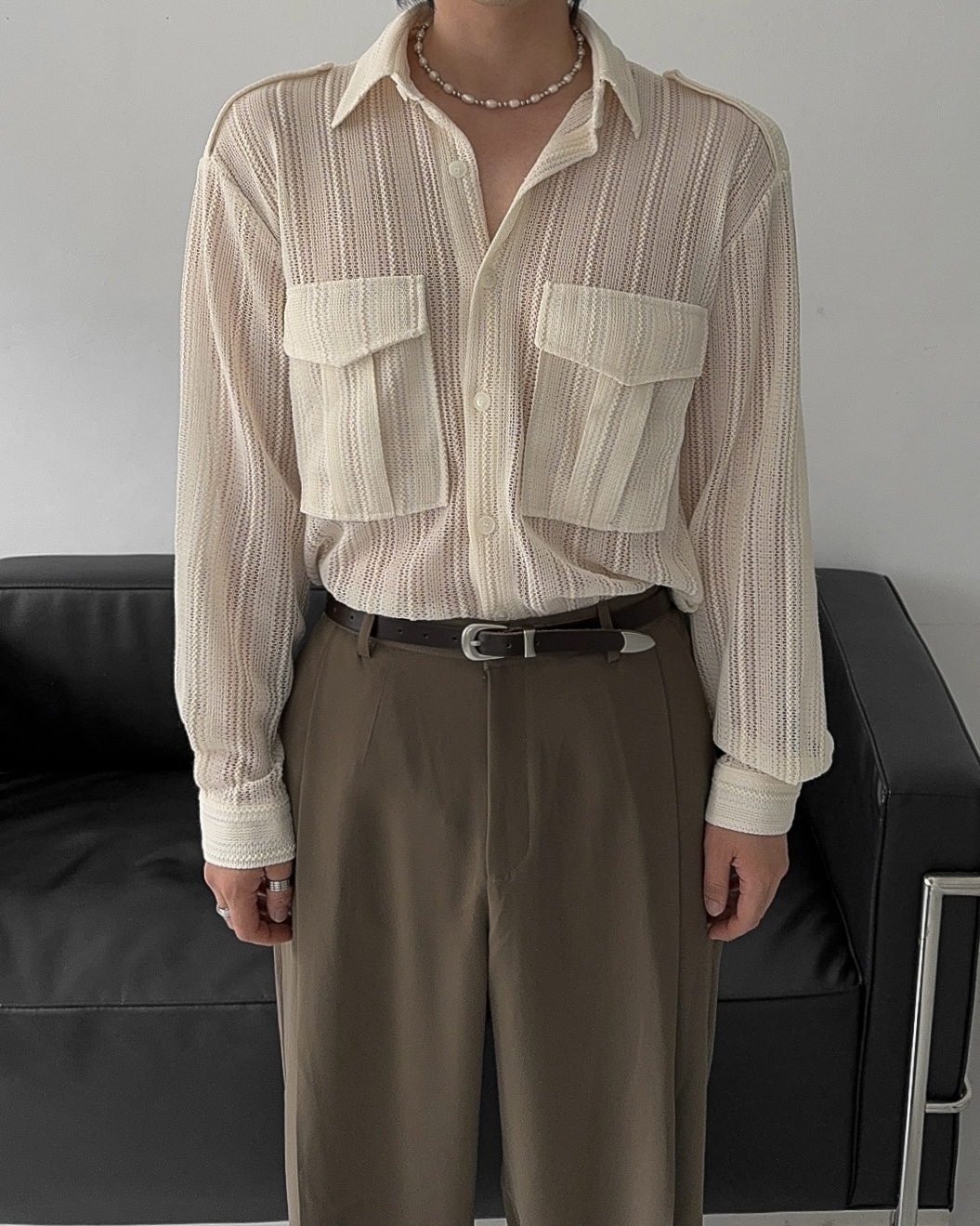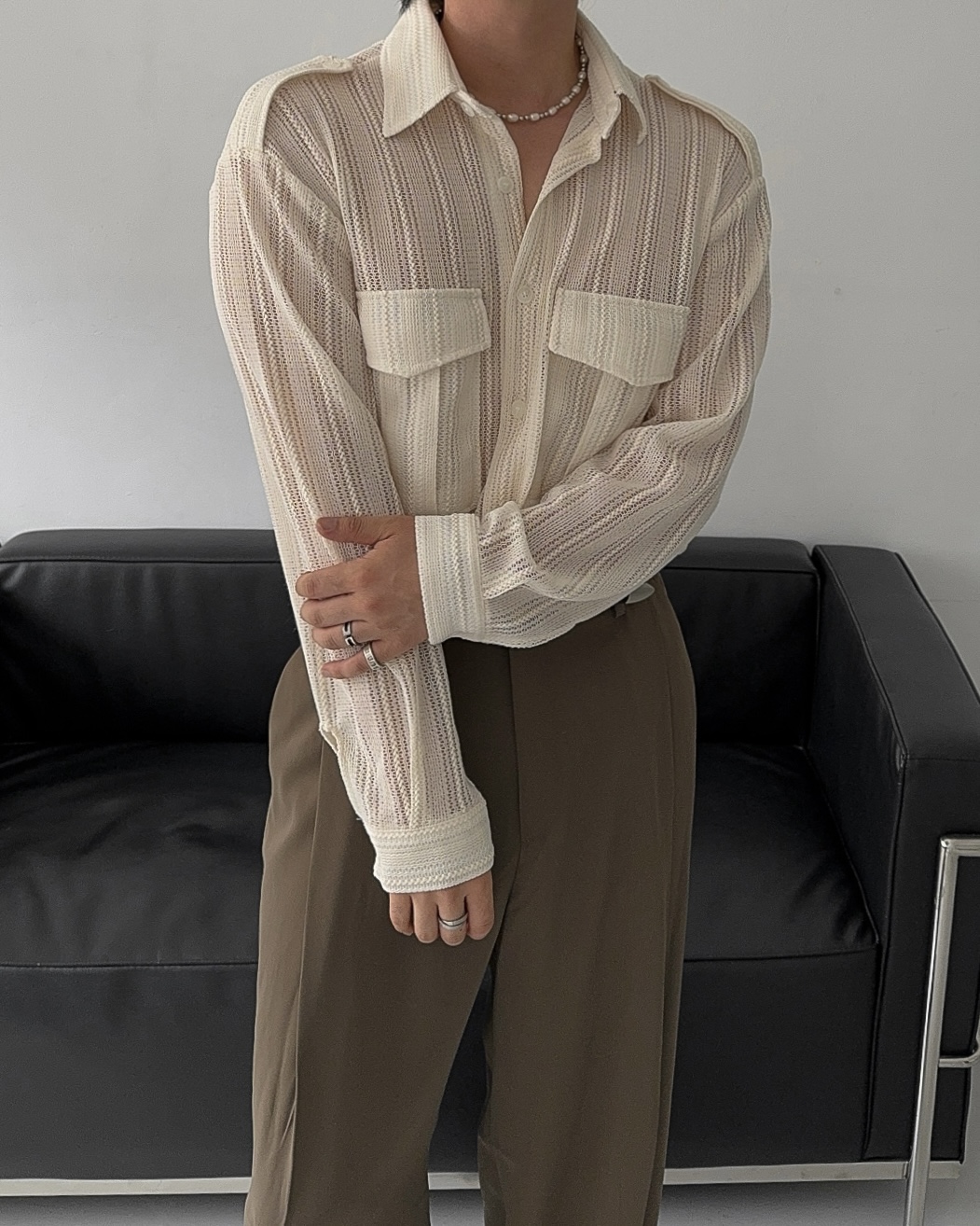 -니트 짜임 형식으로 제작된 셔츠