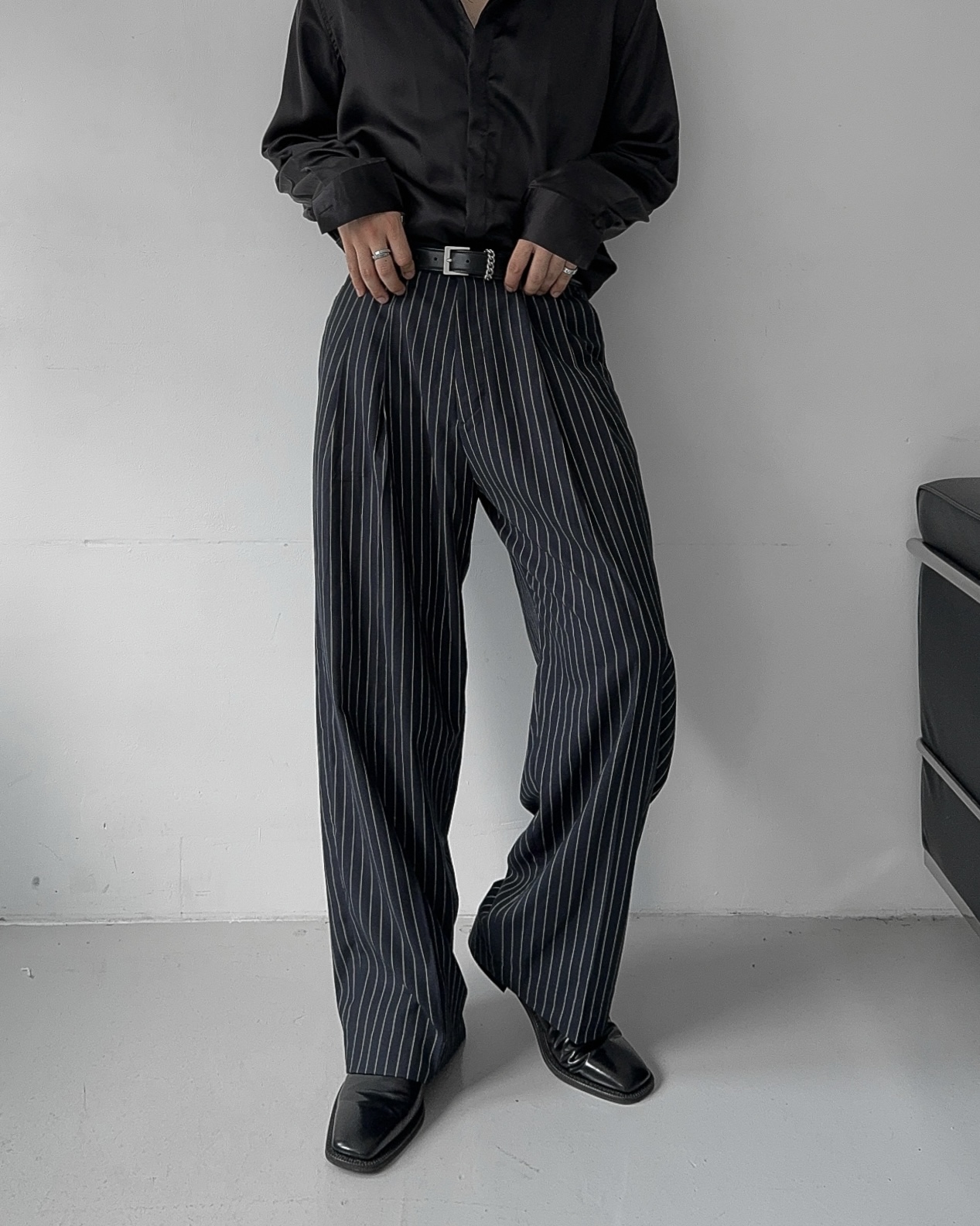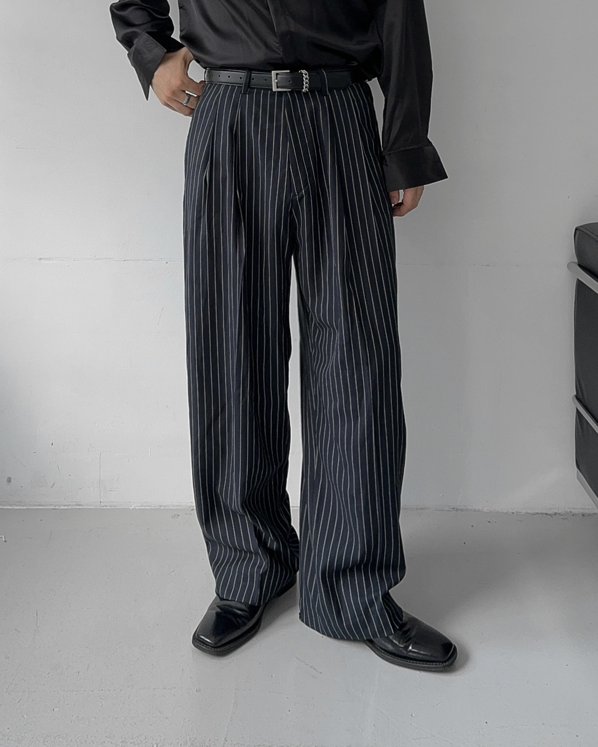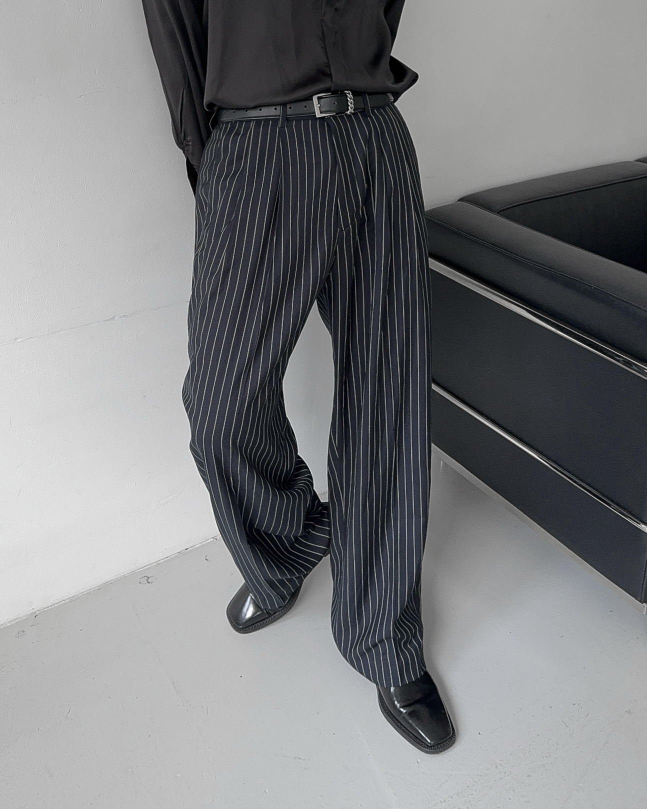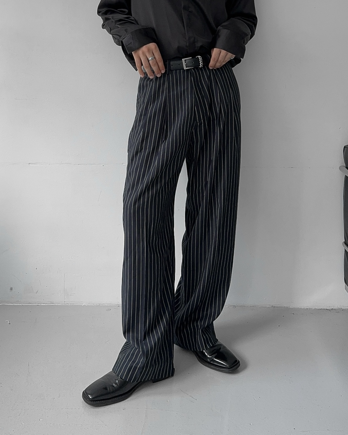 -웨이스트 핀턱으로 흐트러짐 없는 실루엣