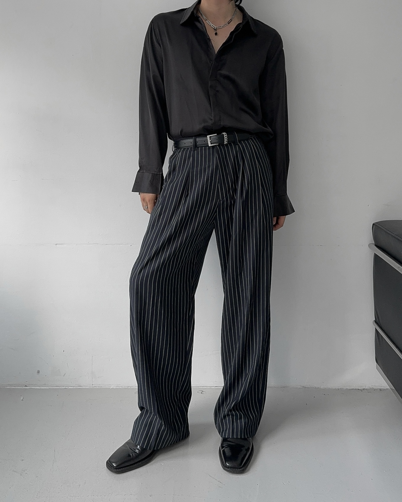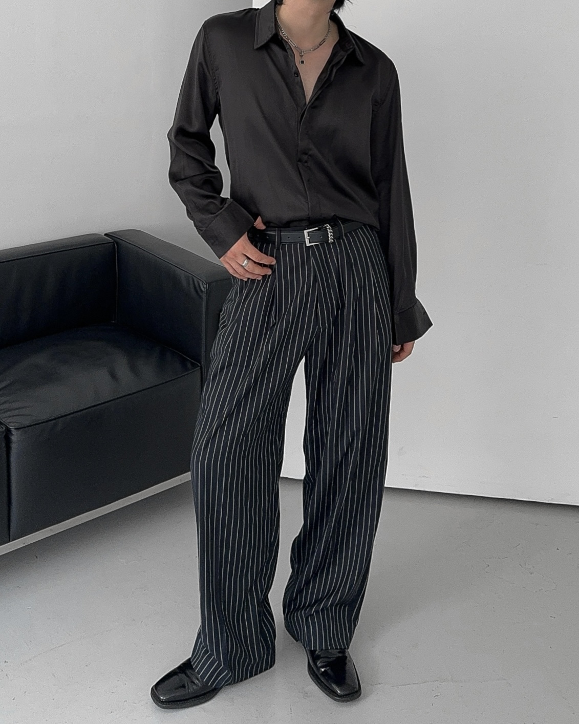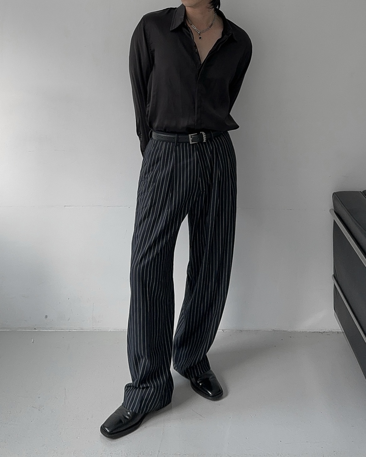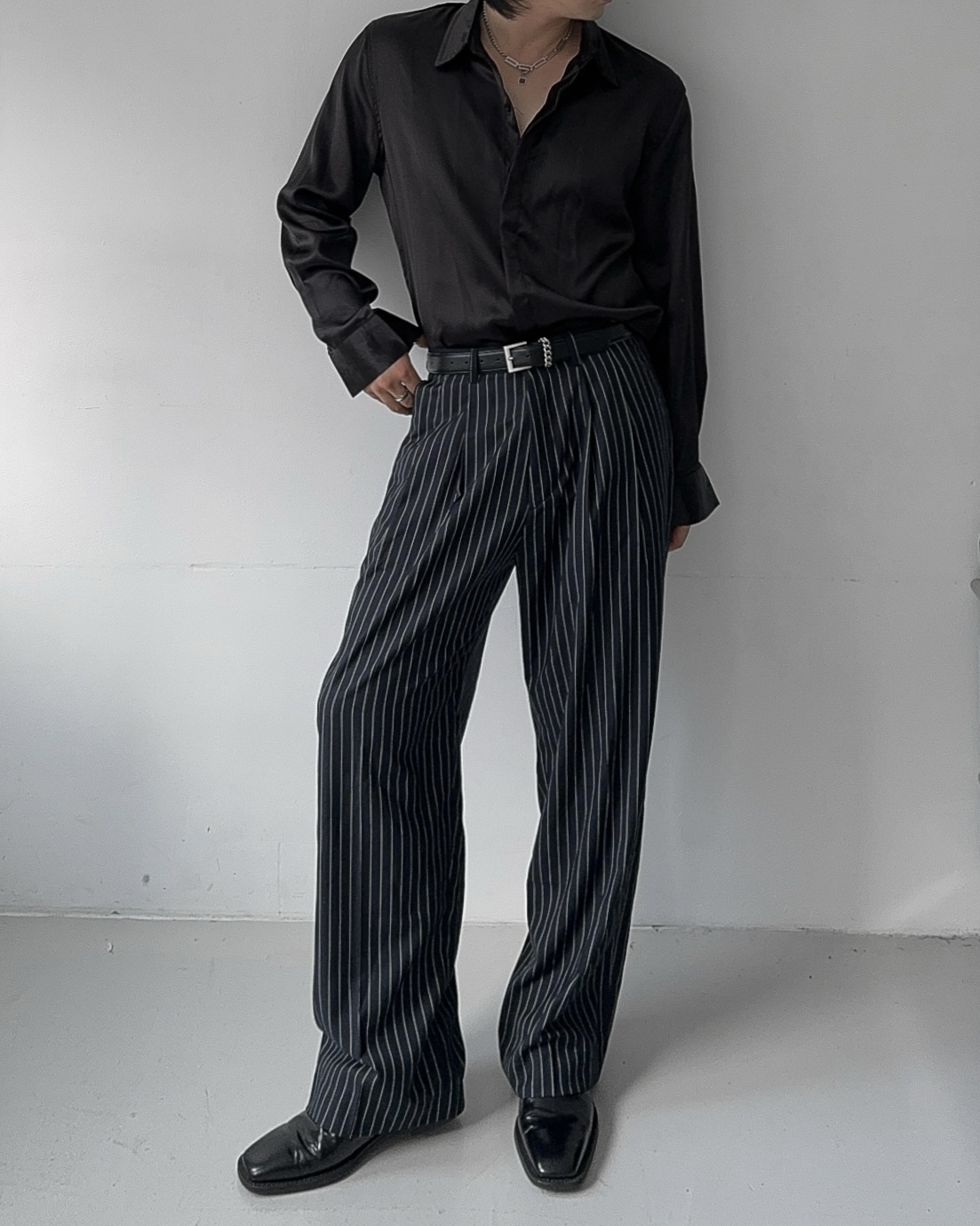-웨이스트 핀턱으로 흐트러짐 없는 실루엣