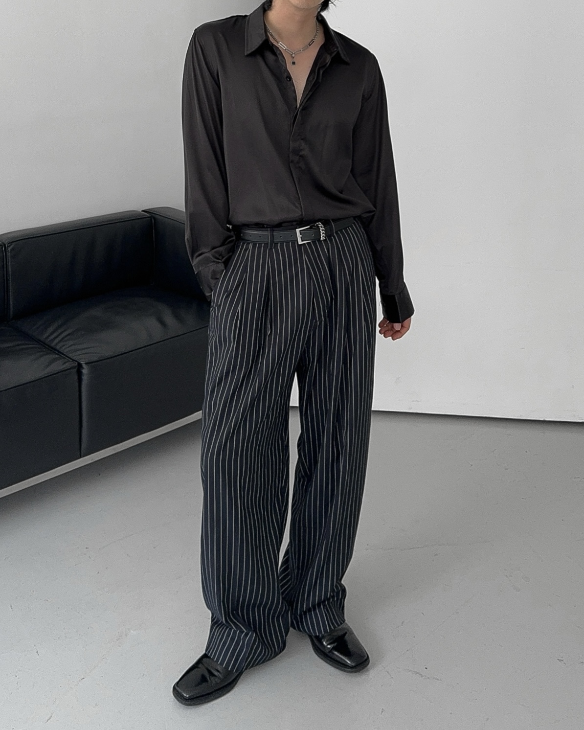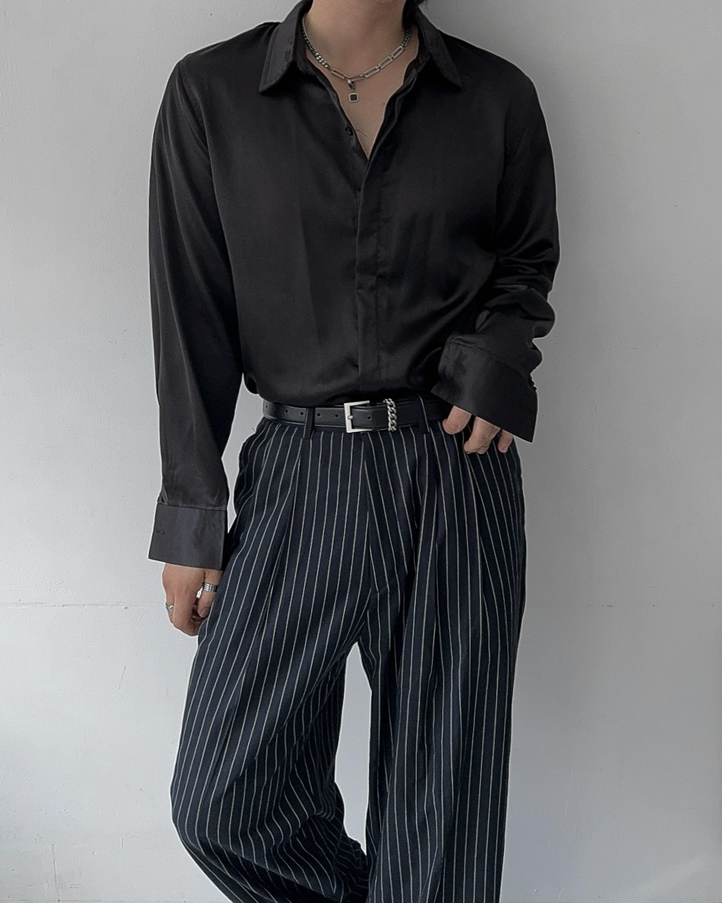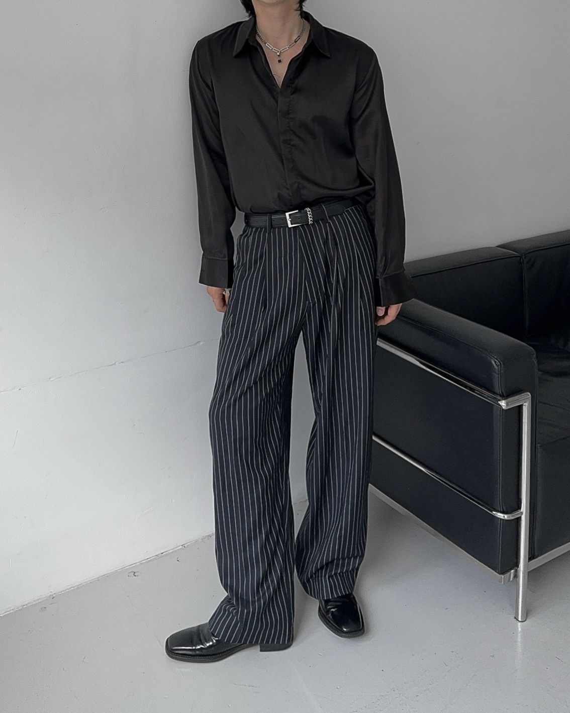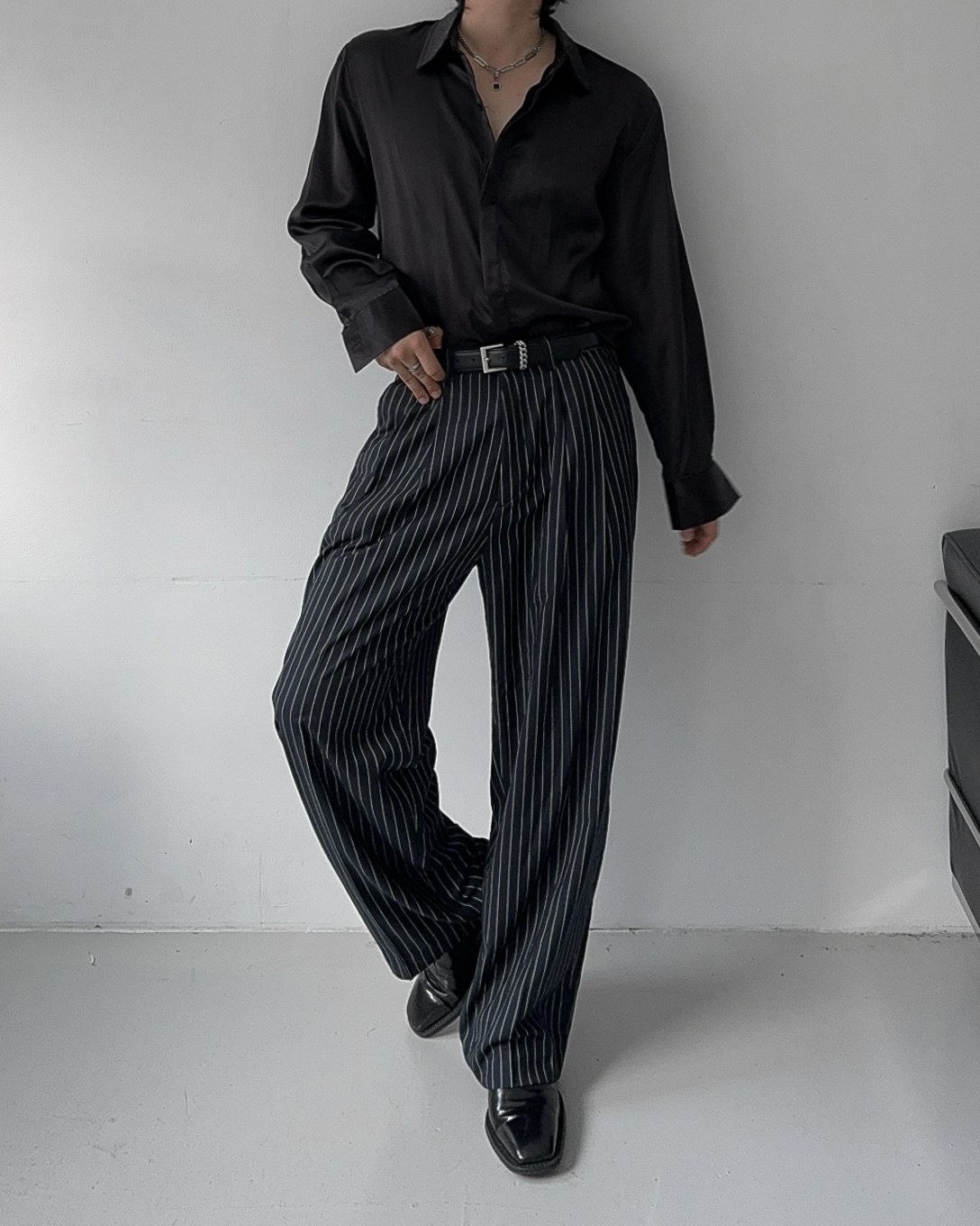 -웨이스트 핀턱으로 흐트러짐 없는 실루엣