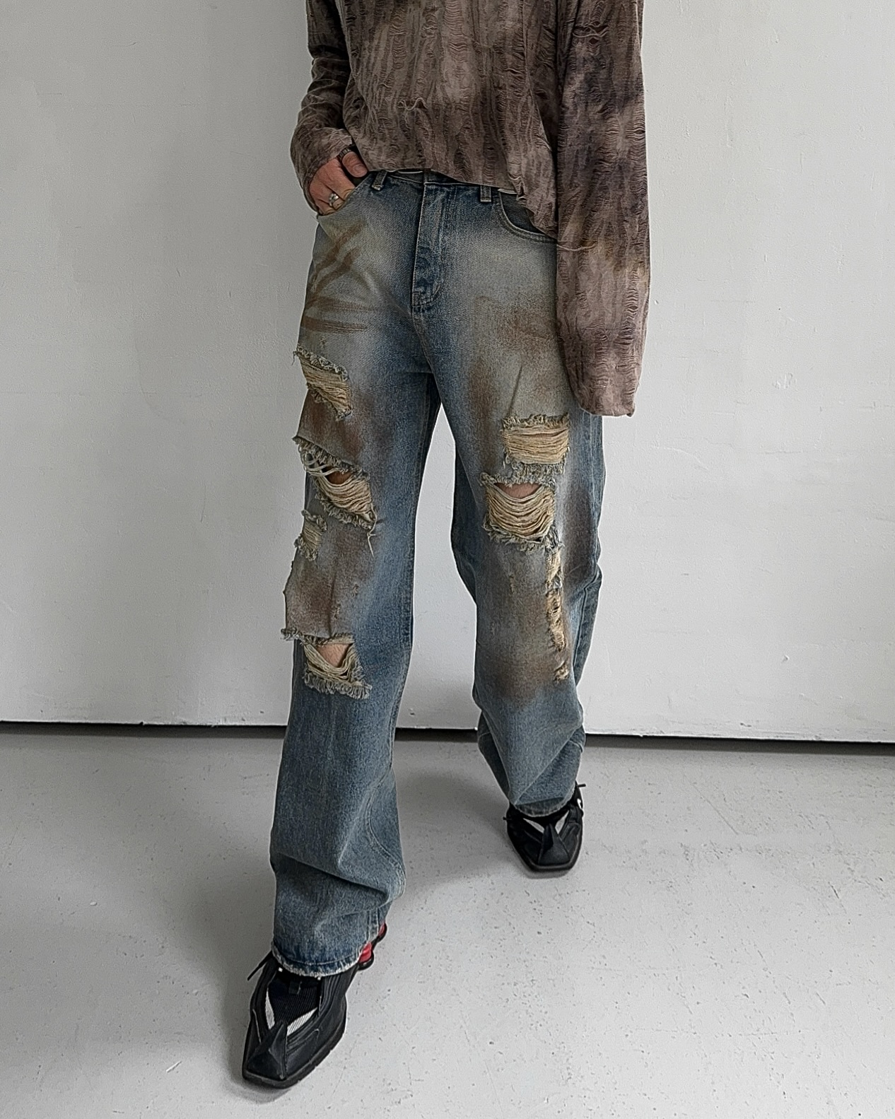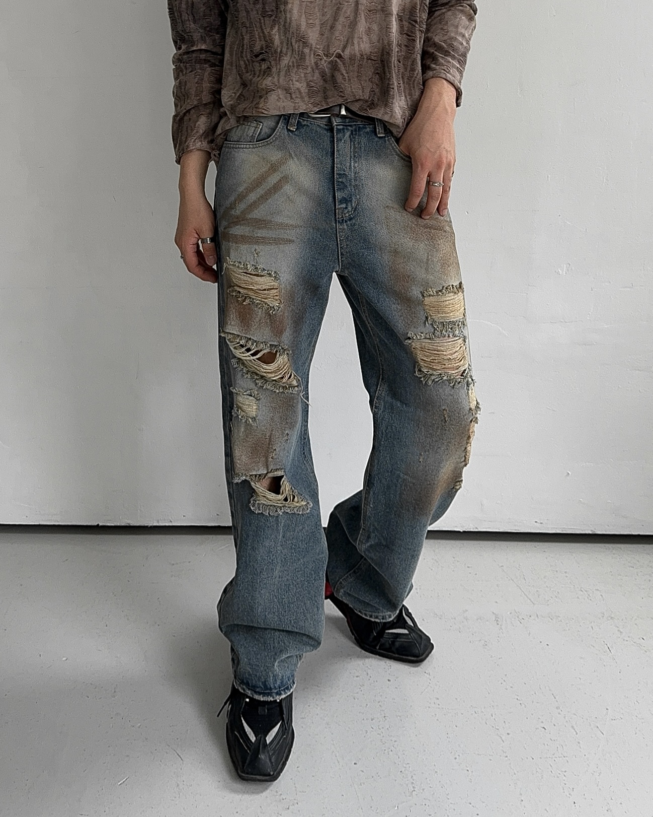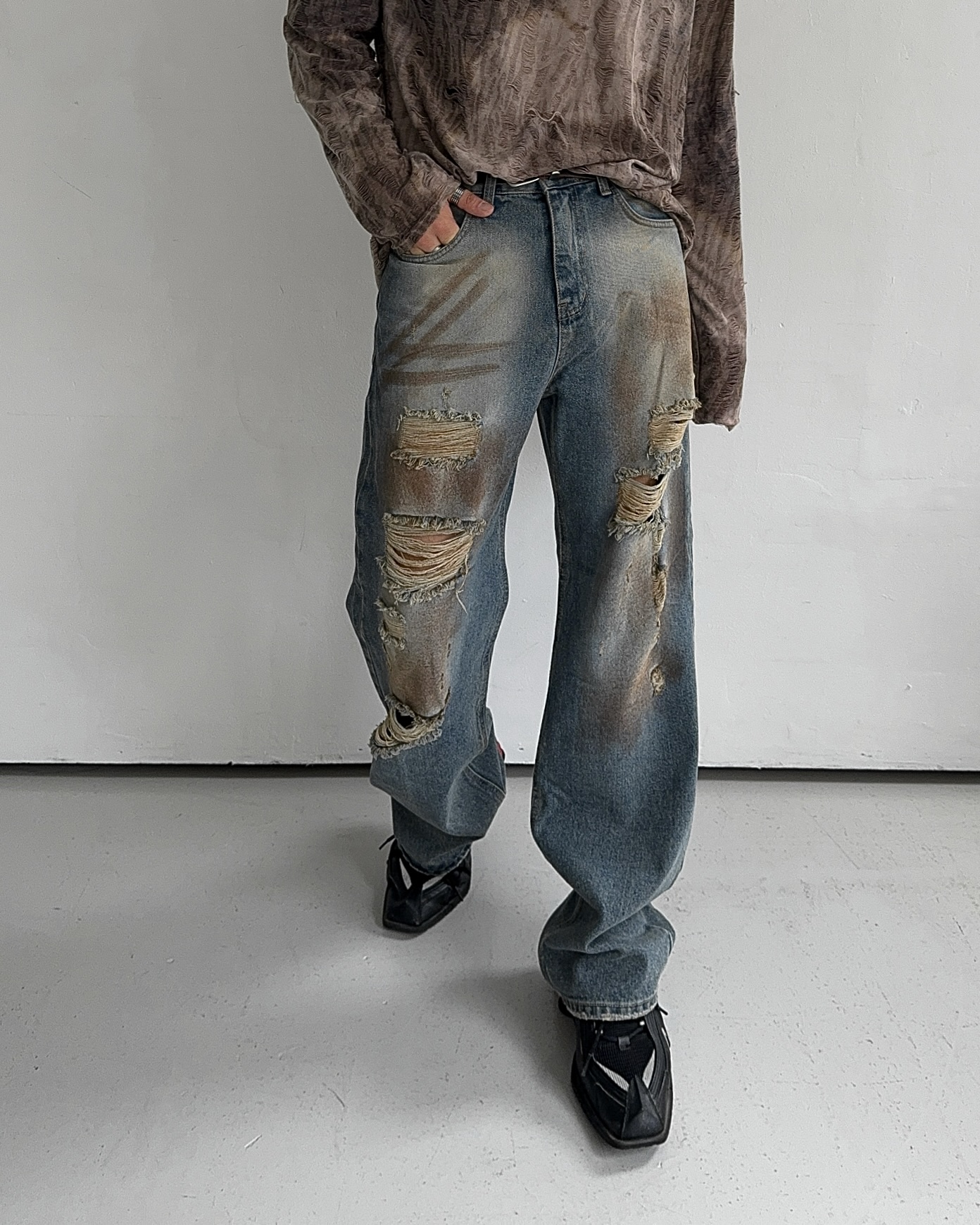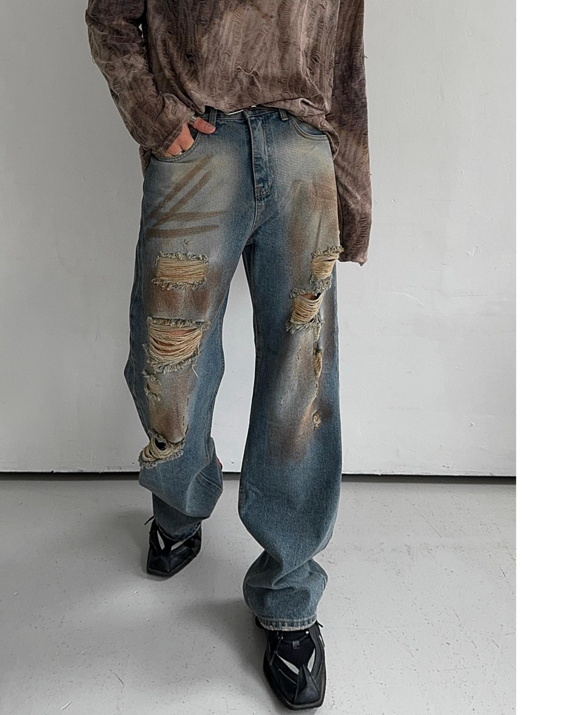 -유니크한 페인팅 워싱과 디스트로이드 데미지 디자인
