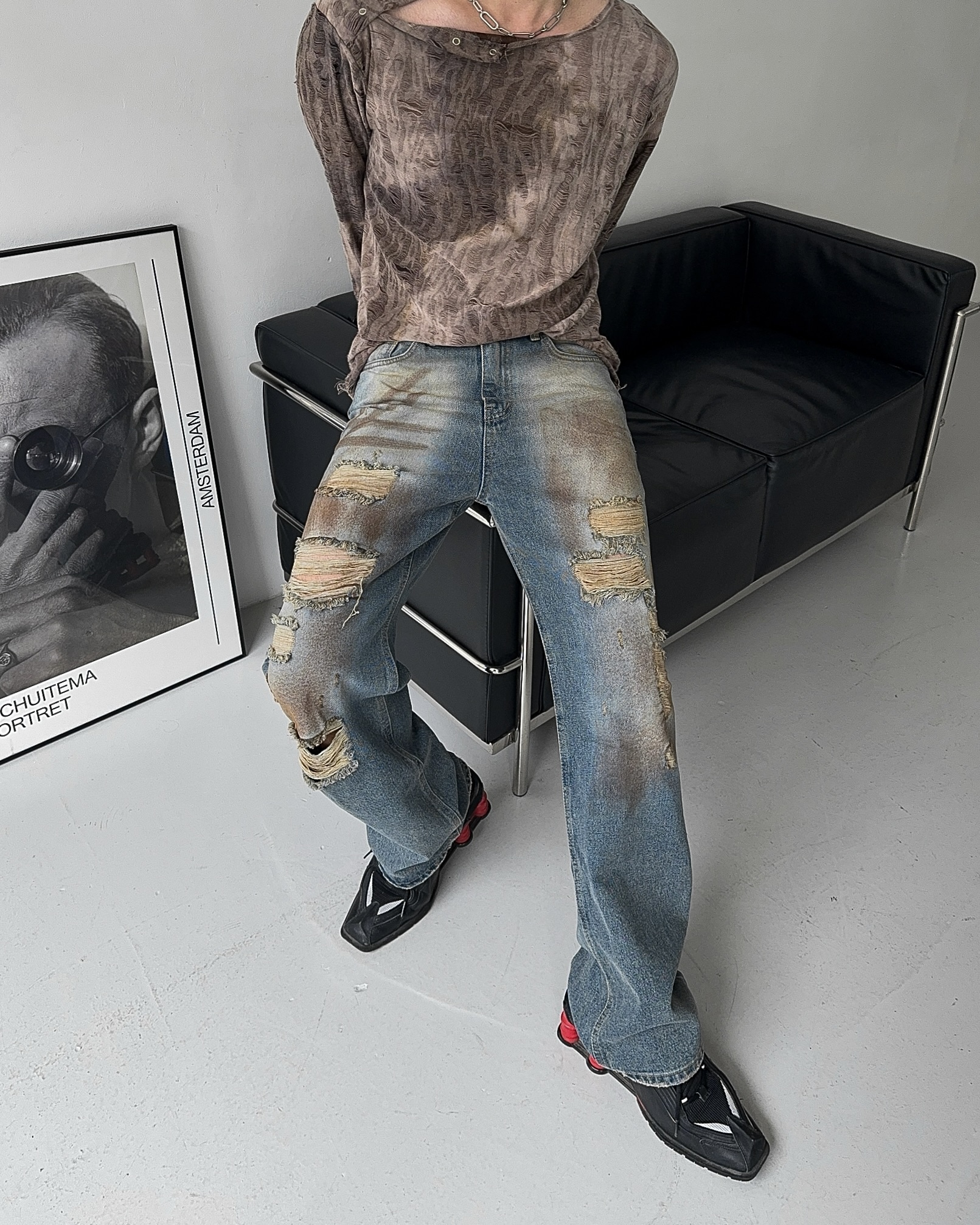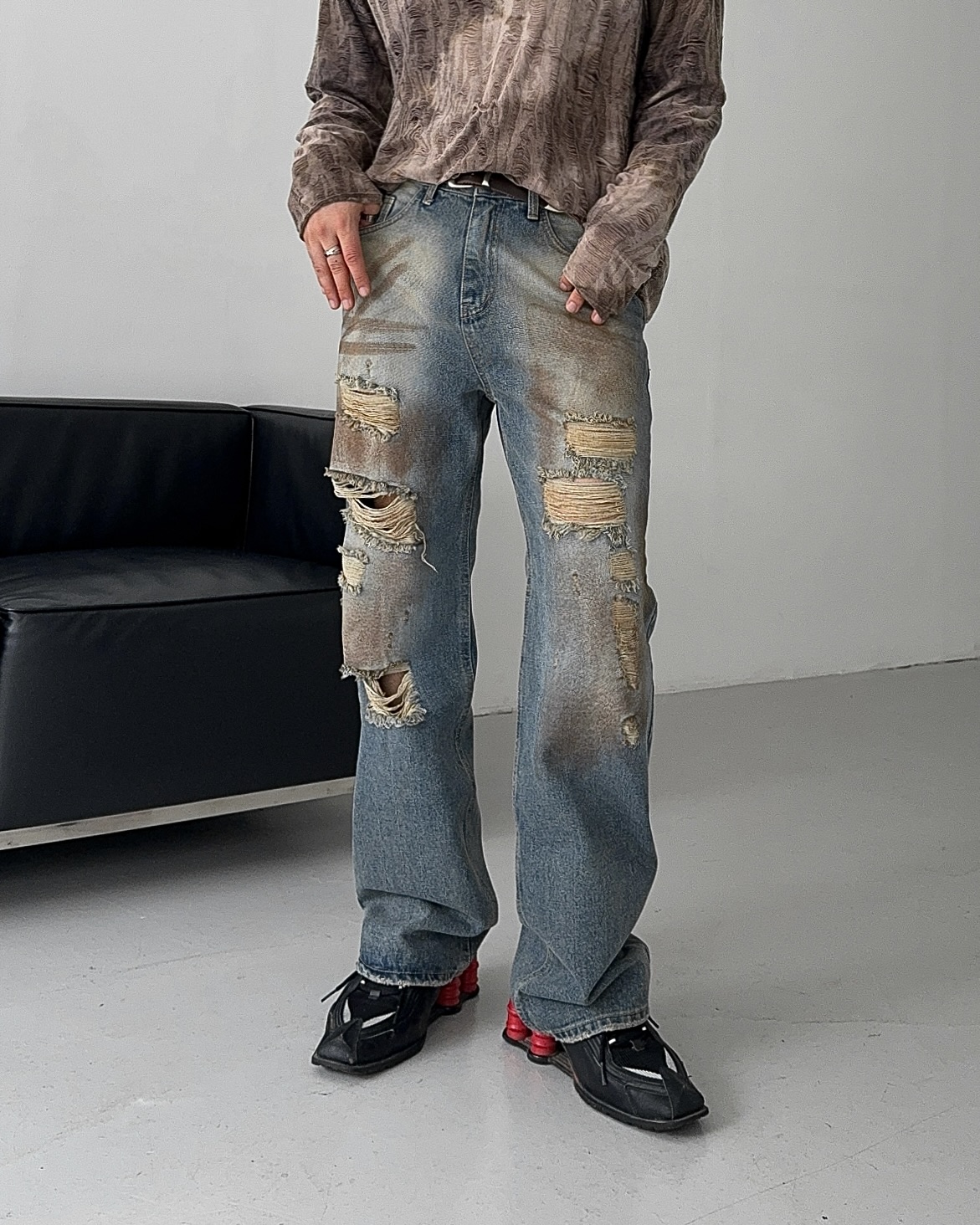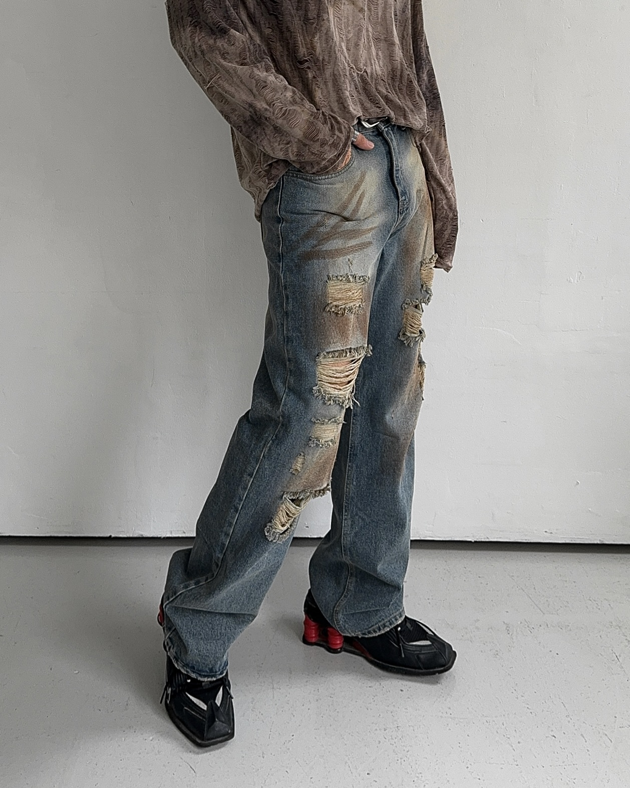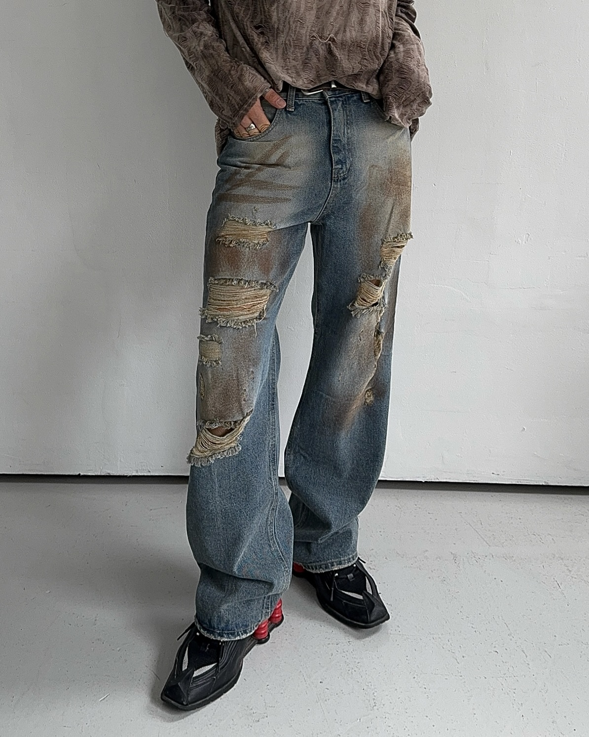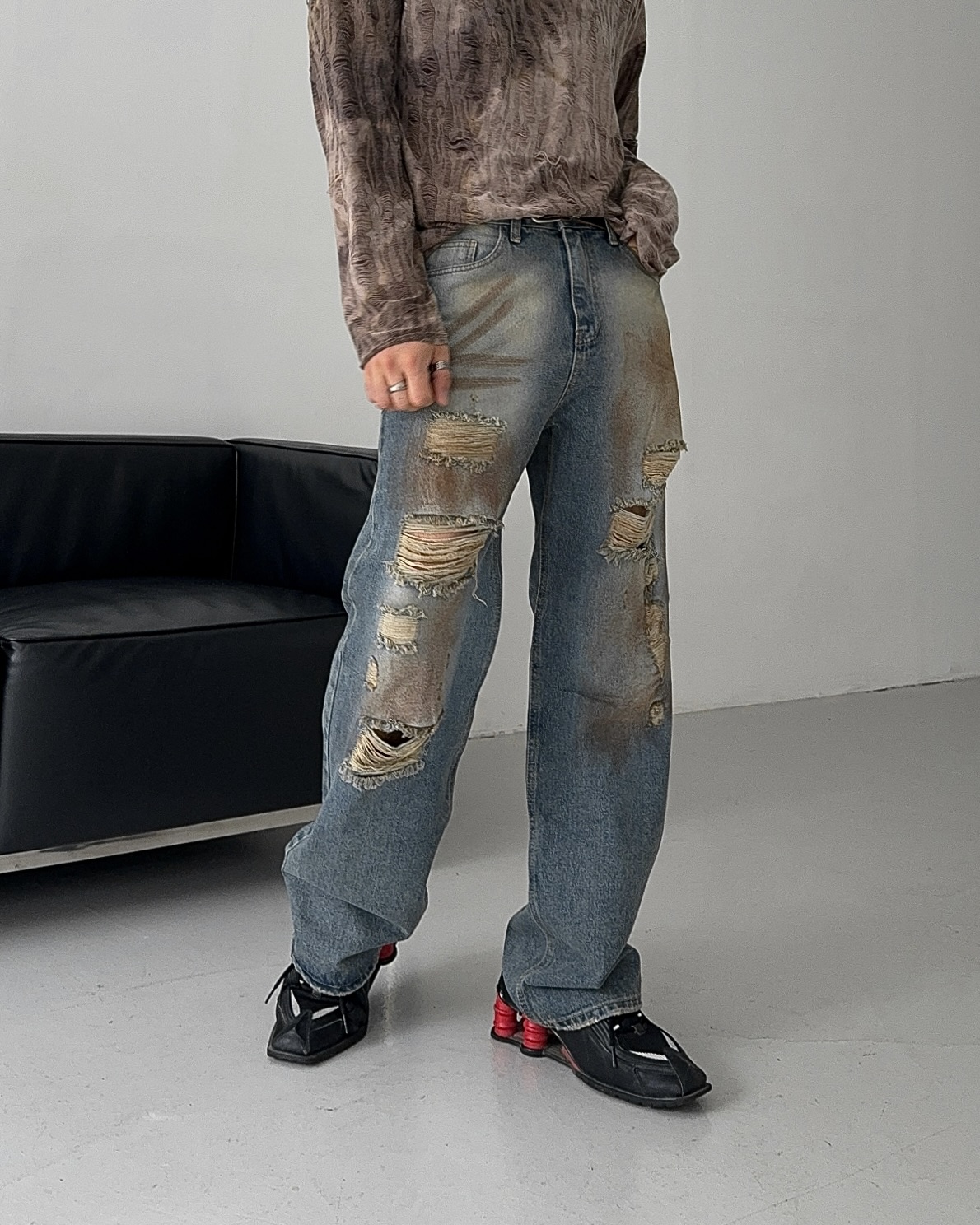 -유니크한 페인팅 워싱과 디스트로이드 데미지 디자인