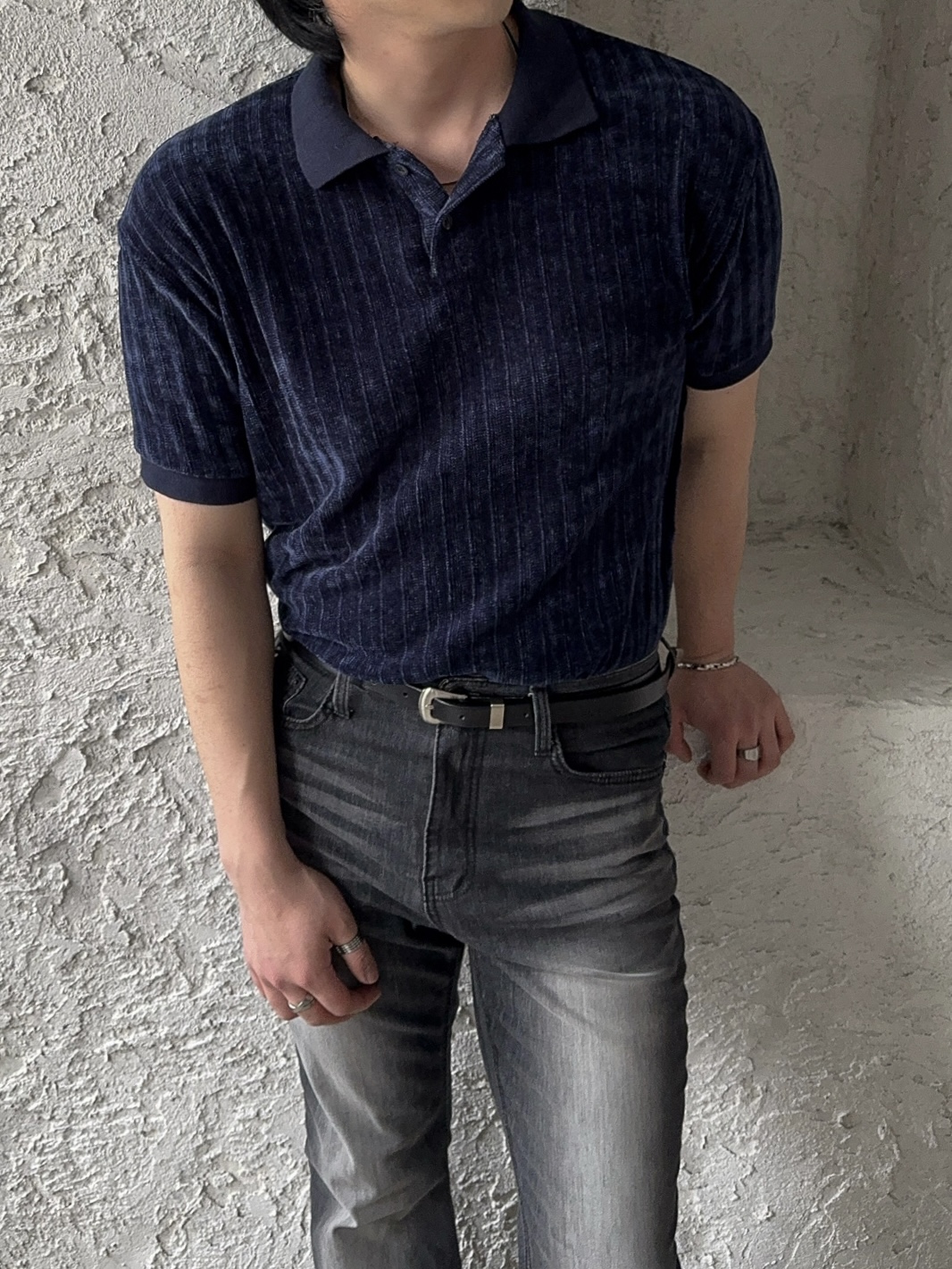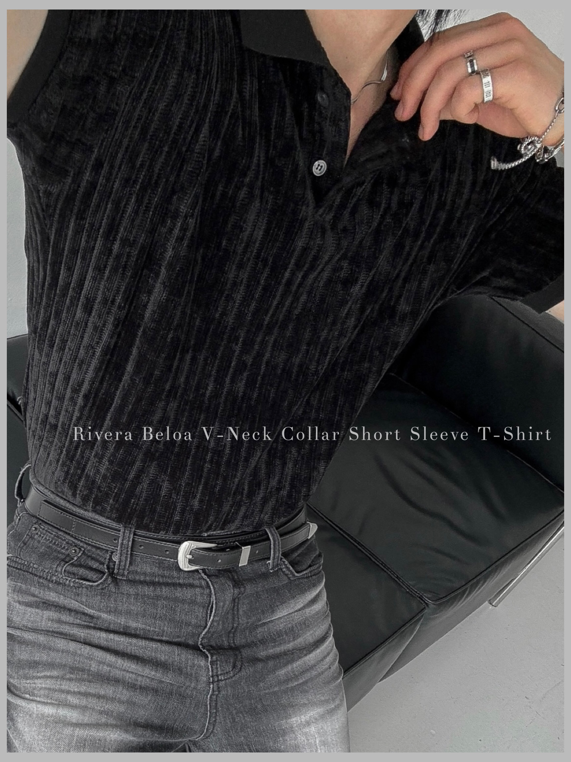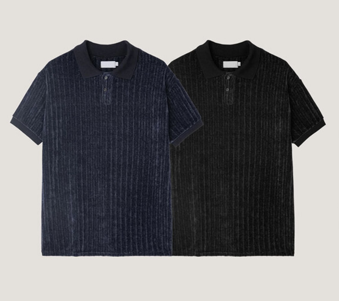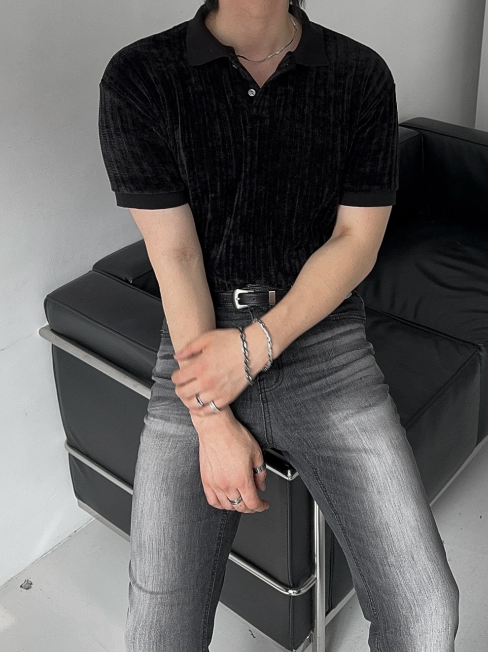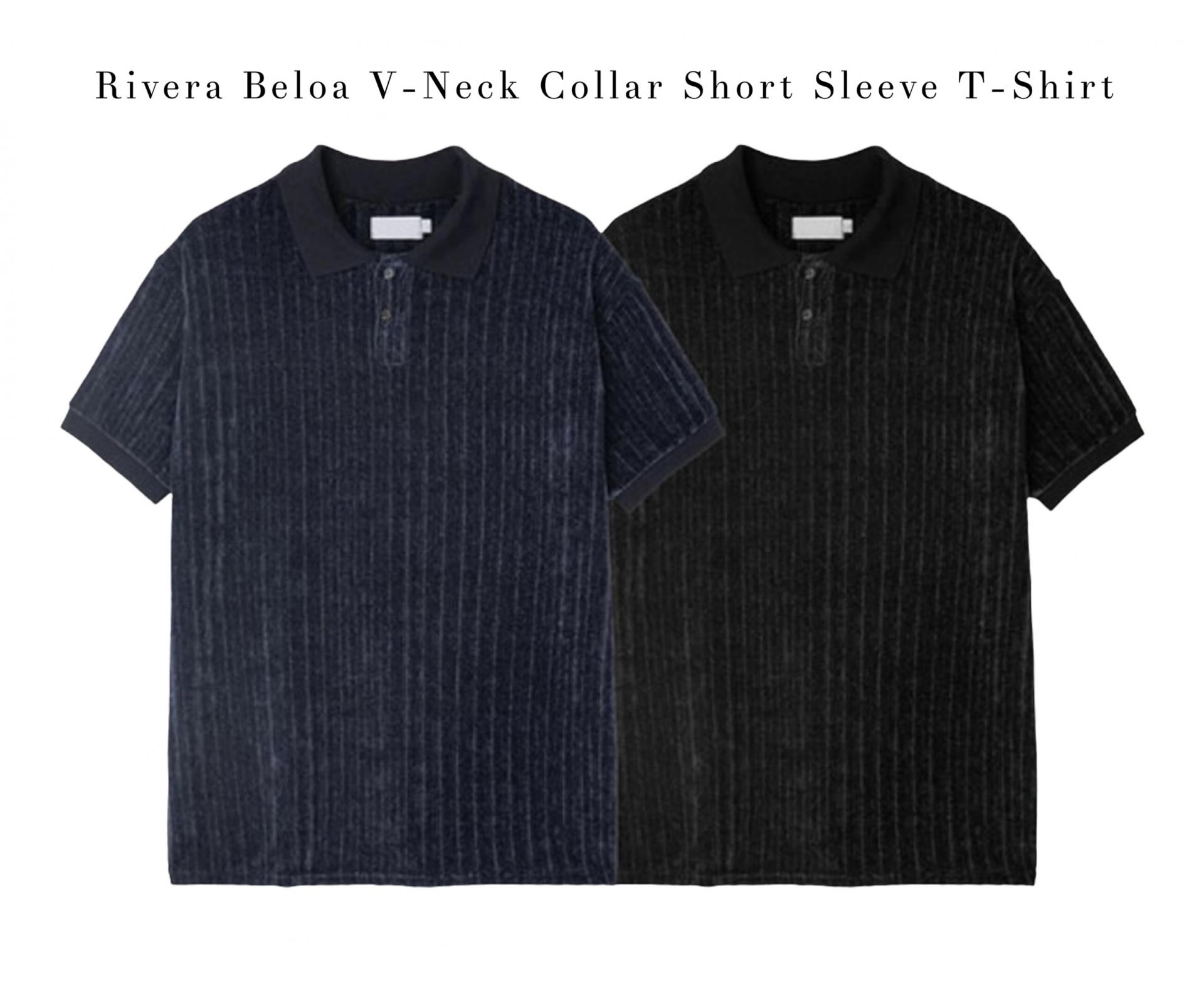 -소재감이 돋보이는 벨로아 소재의 카라 니트 티셔츠