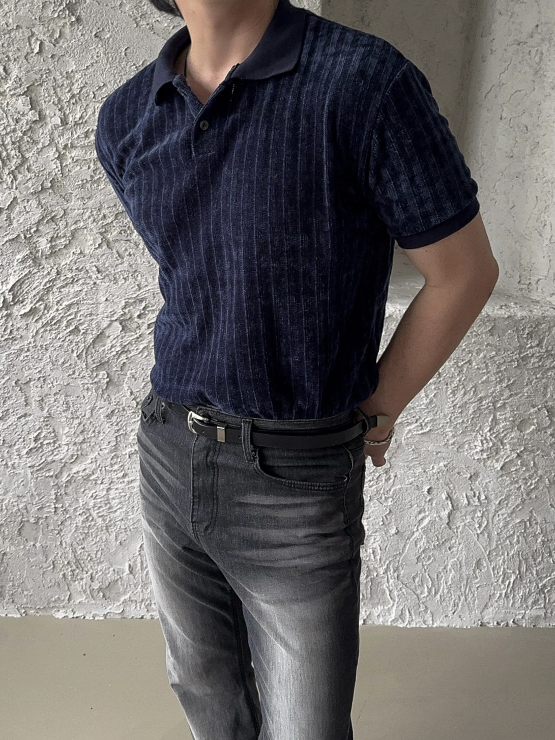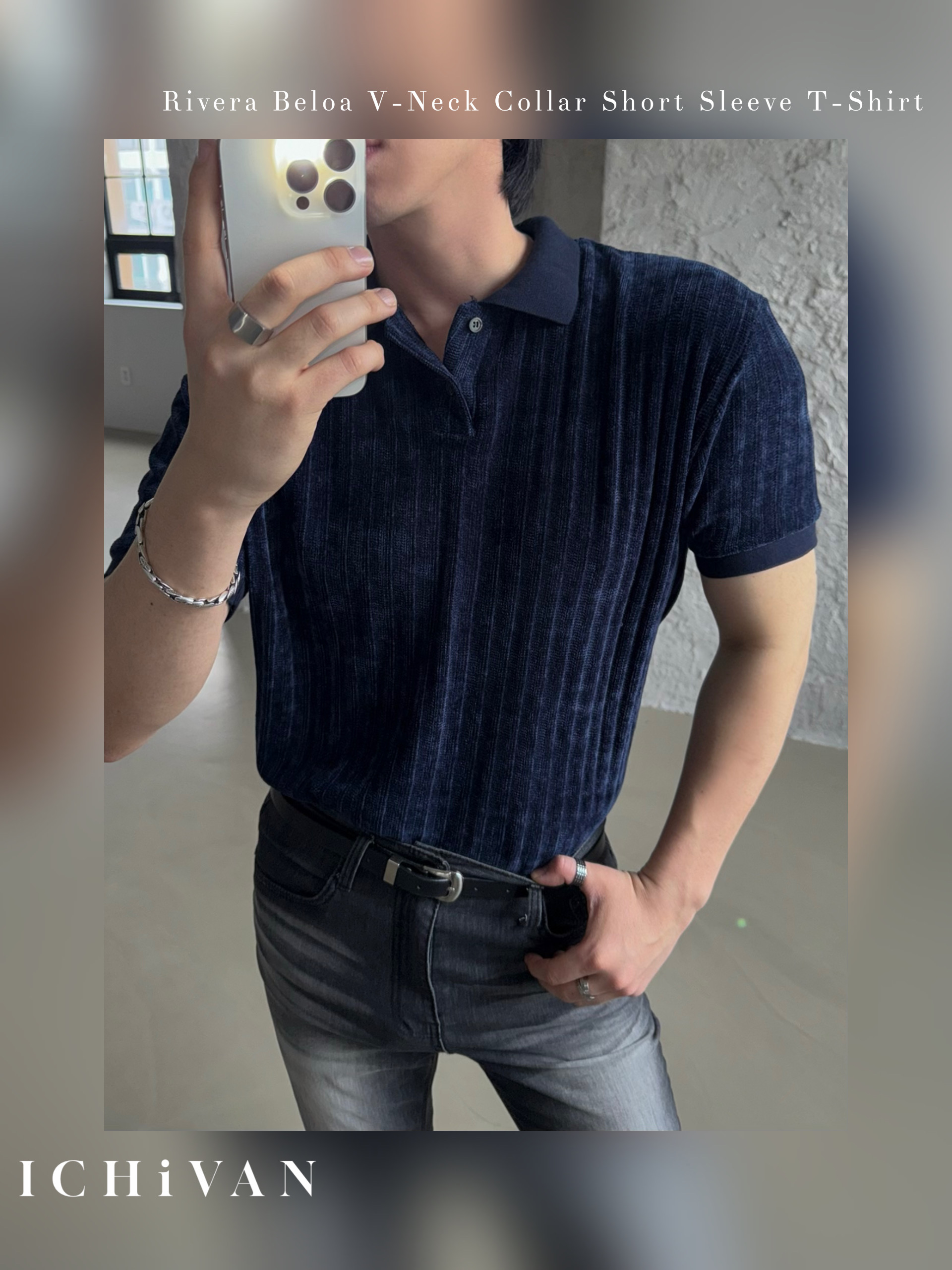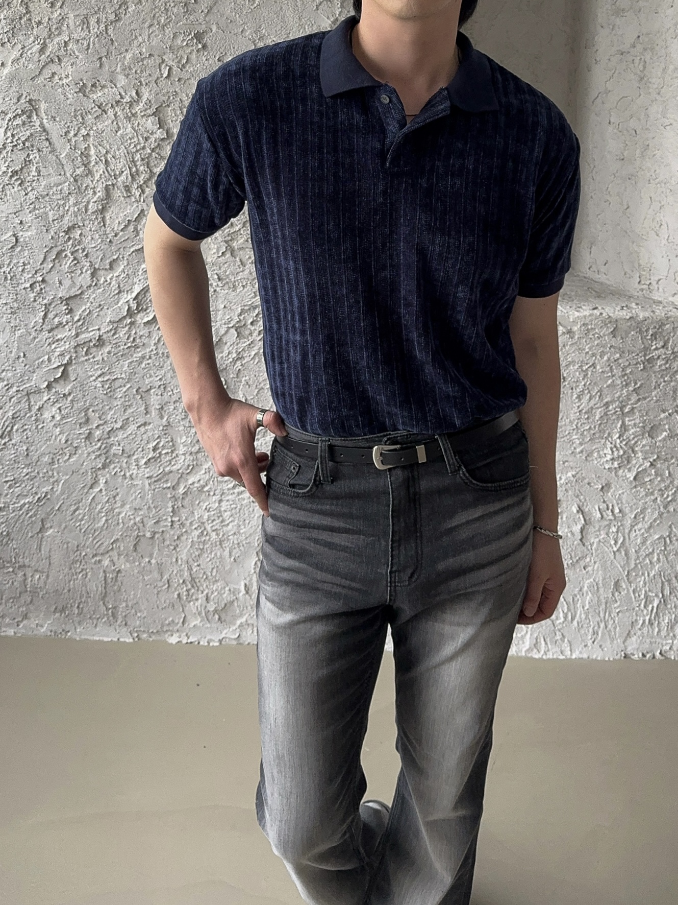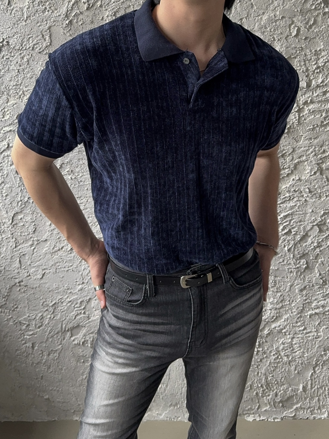 -소재감이 돋보이는 벨로아 소재의 카라 니트 티셔츠