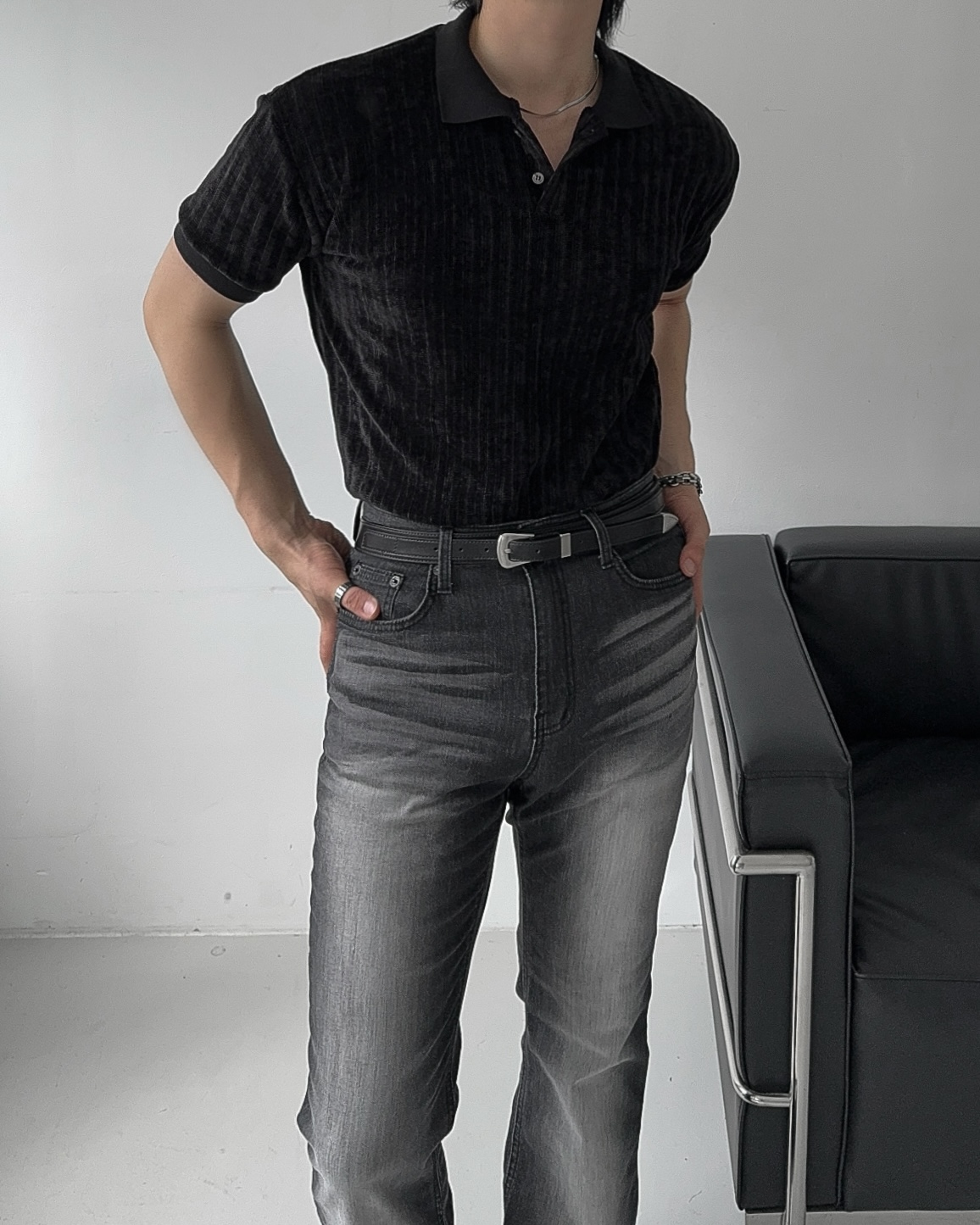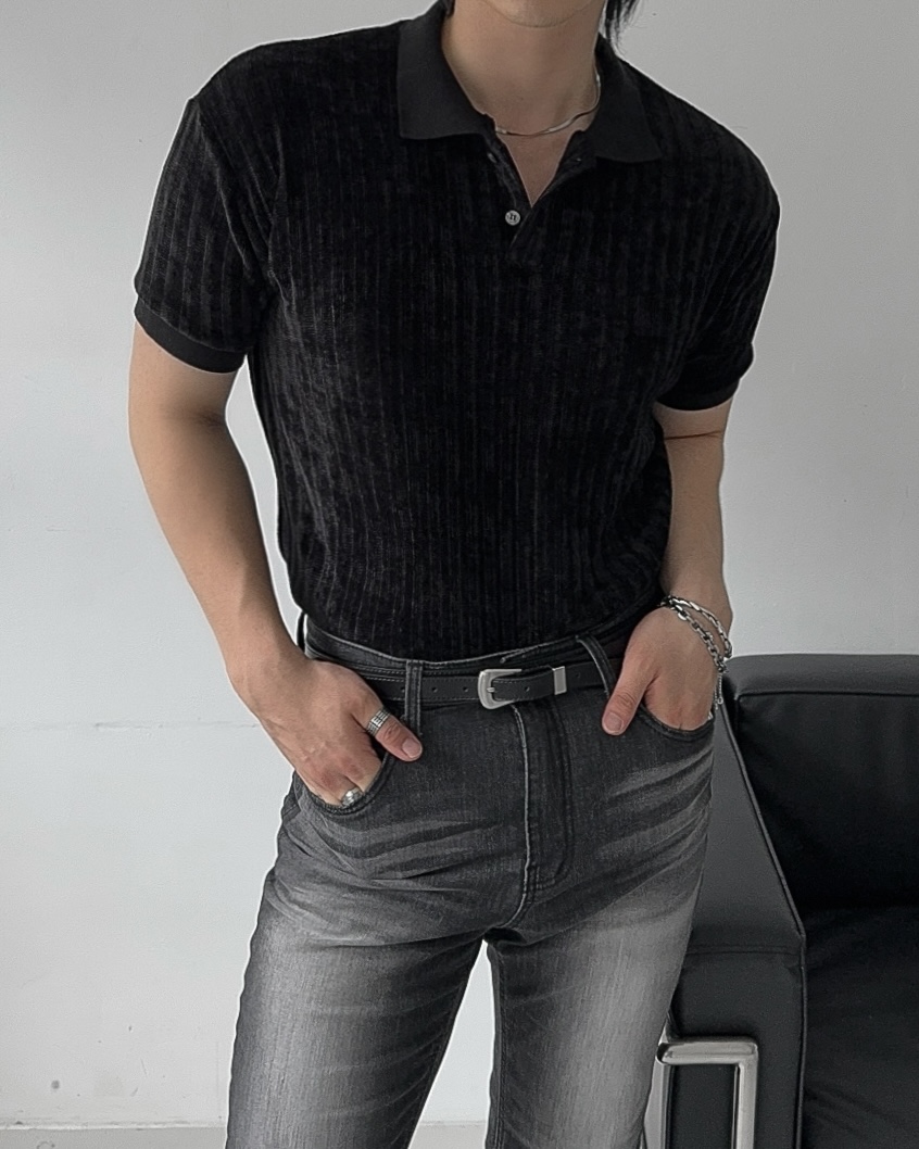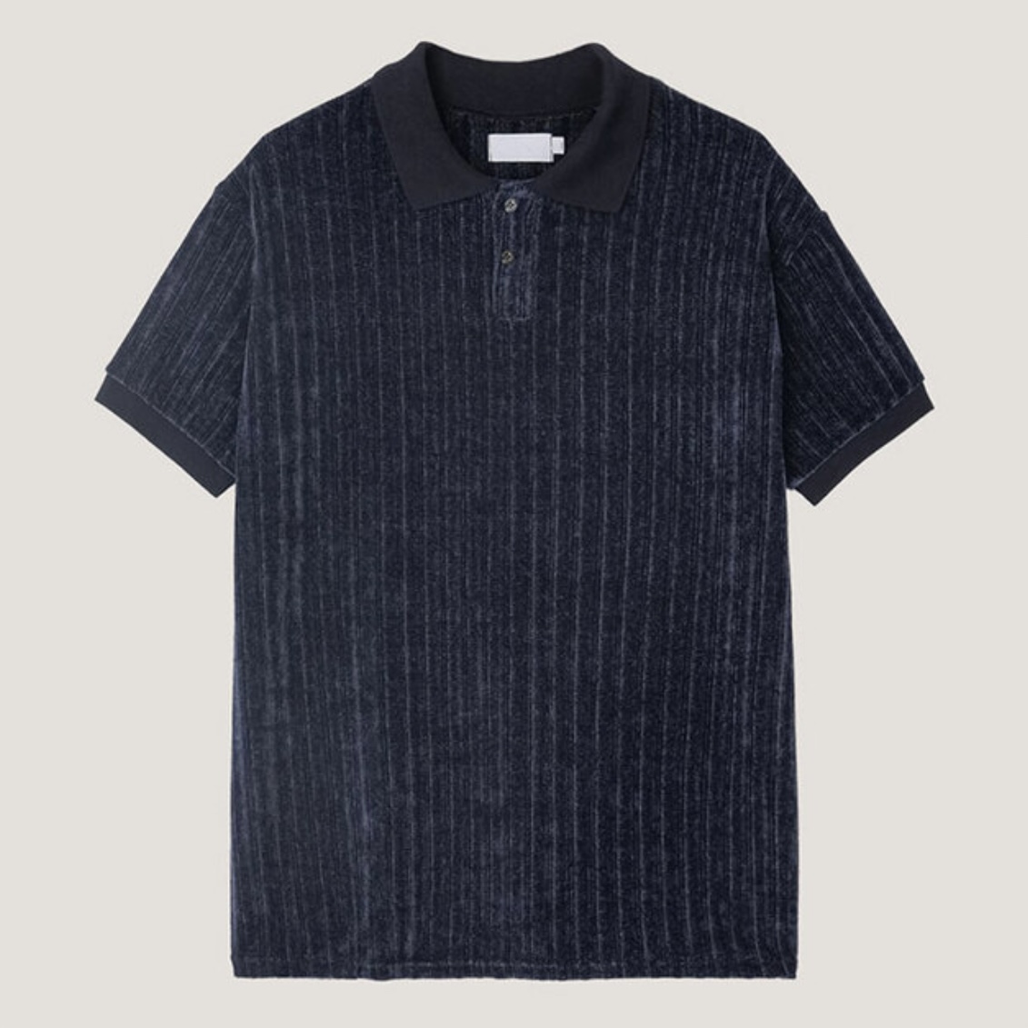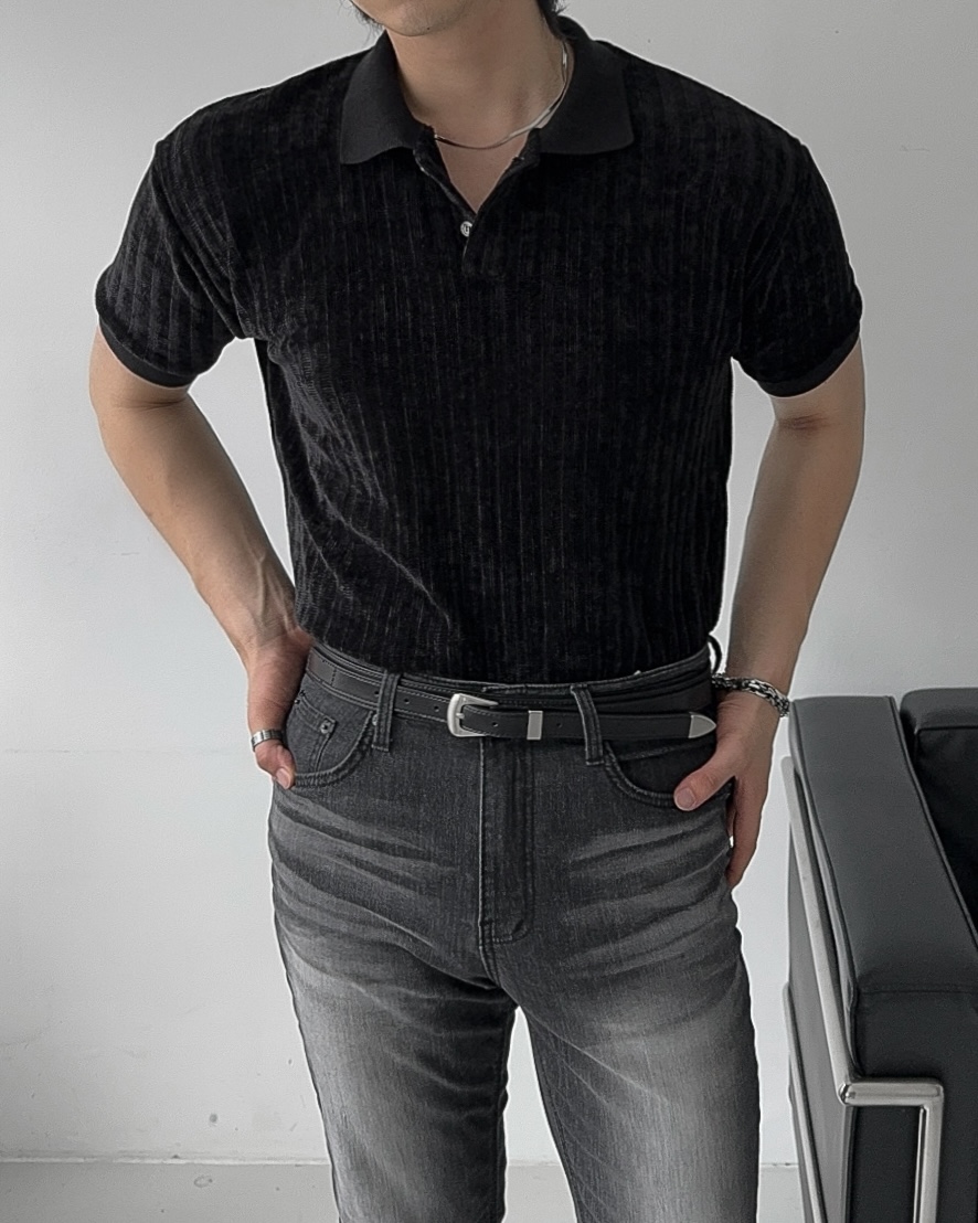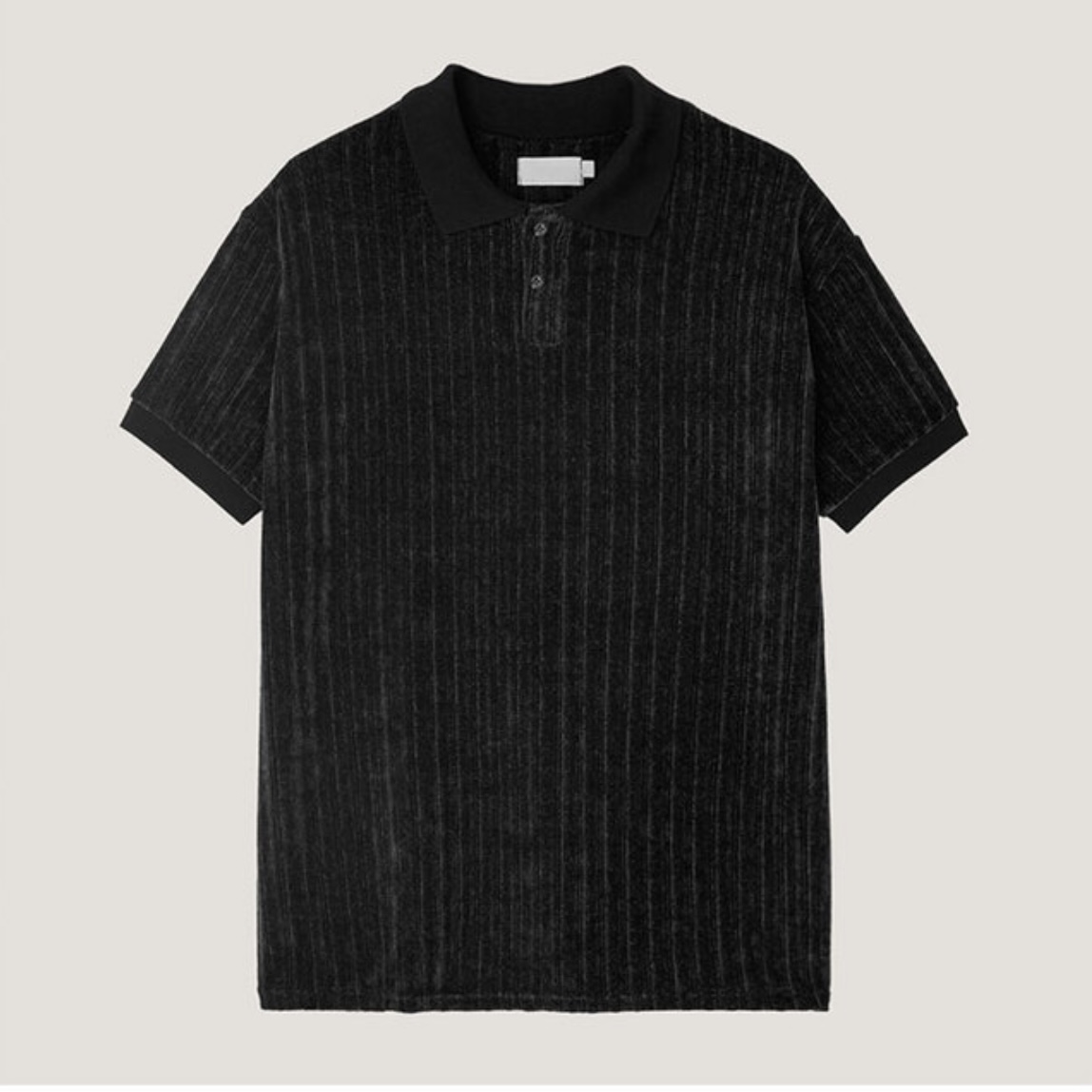 -소재감이 돋보이는 벨로아 소재의 카라 니트 티셔츠