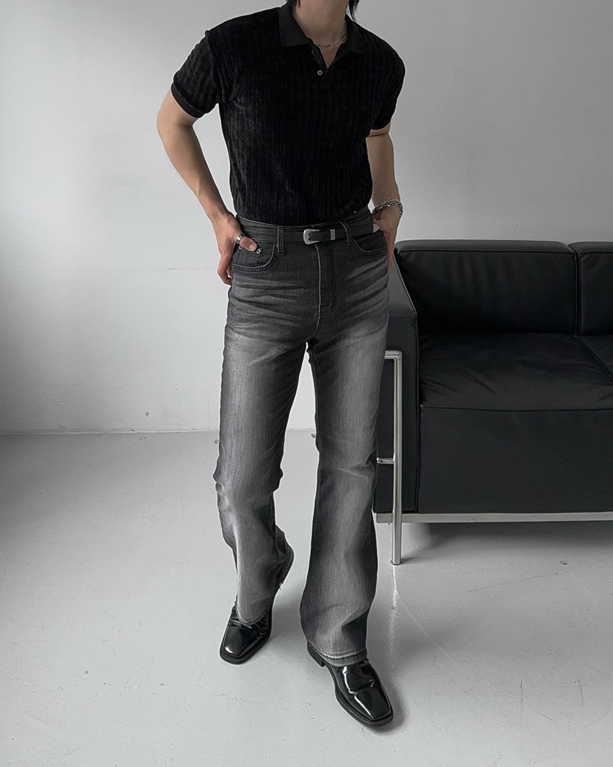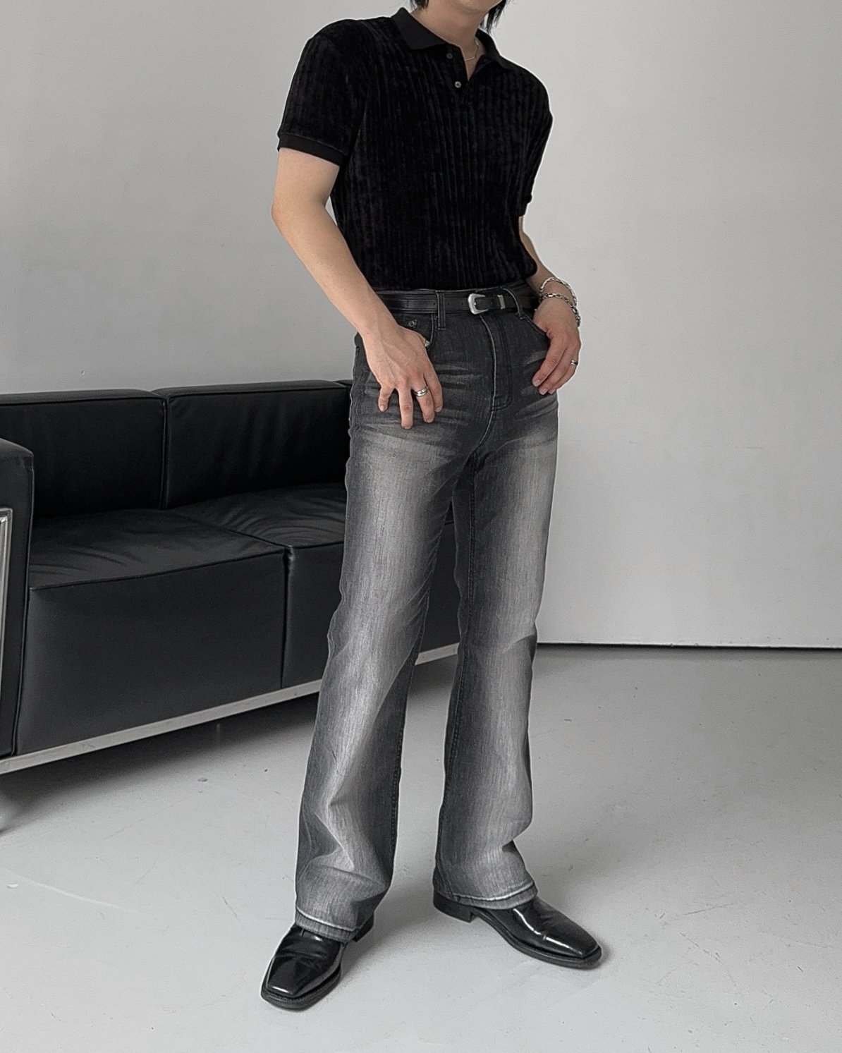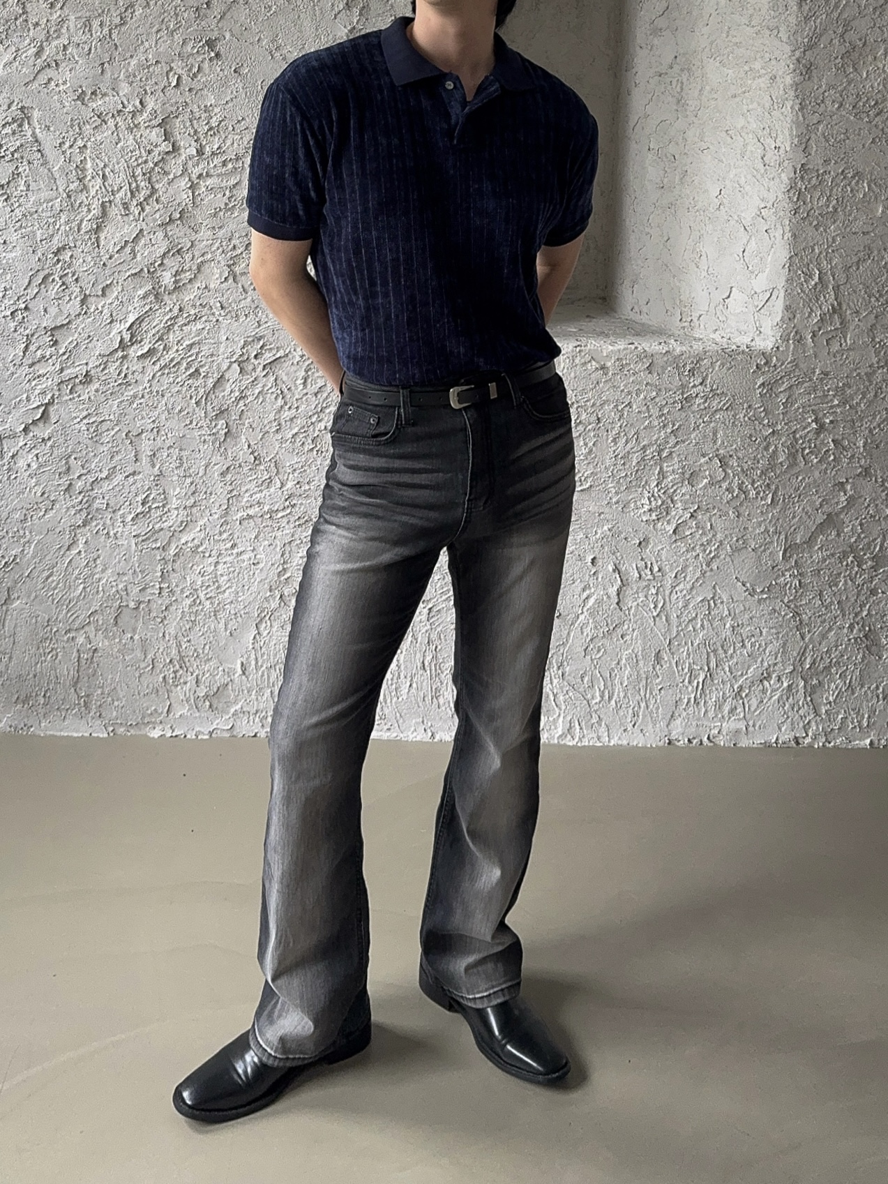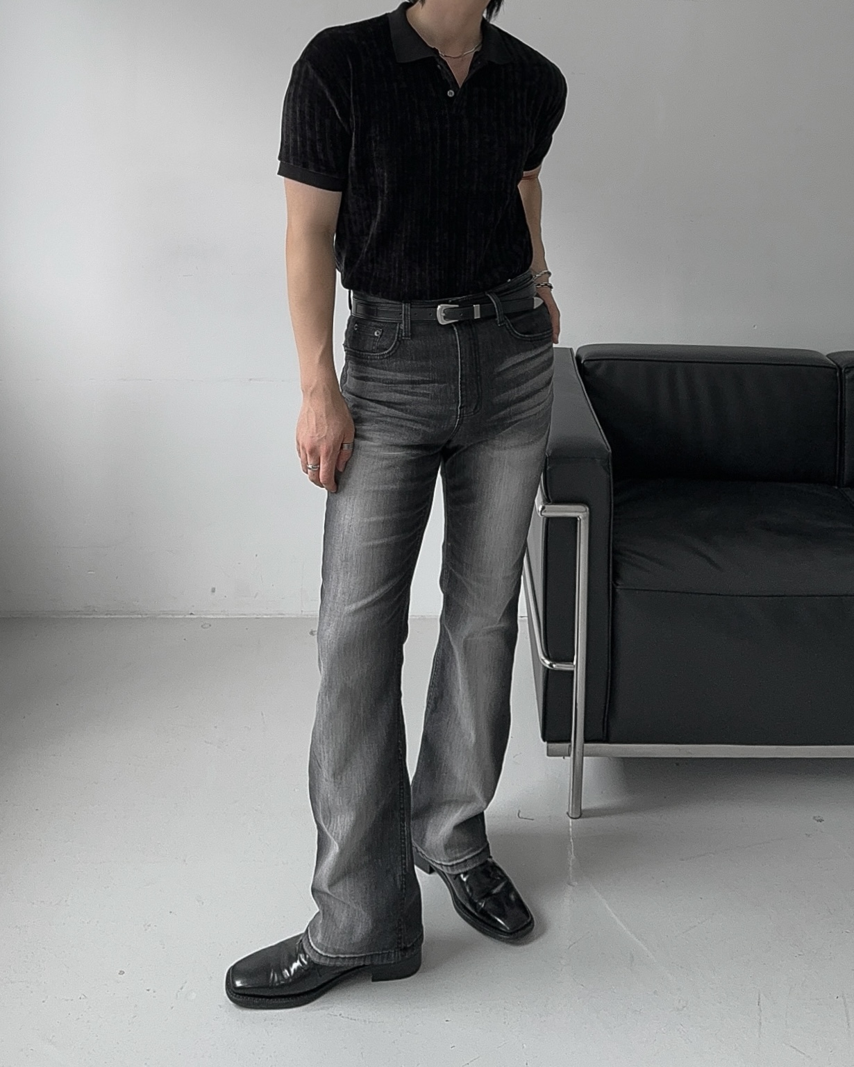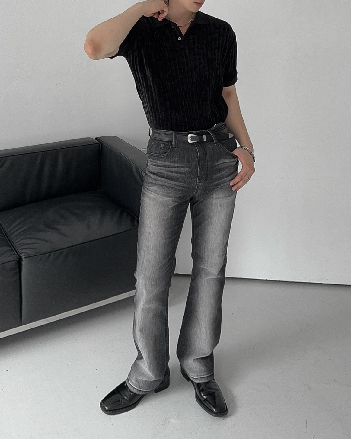 -소재감이 돋보이는 벨로아 소재의 카라 니트 티셔츠