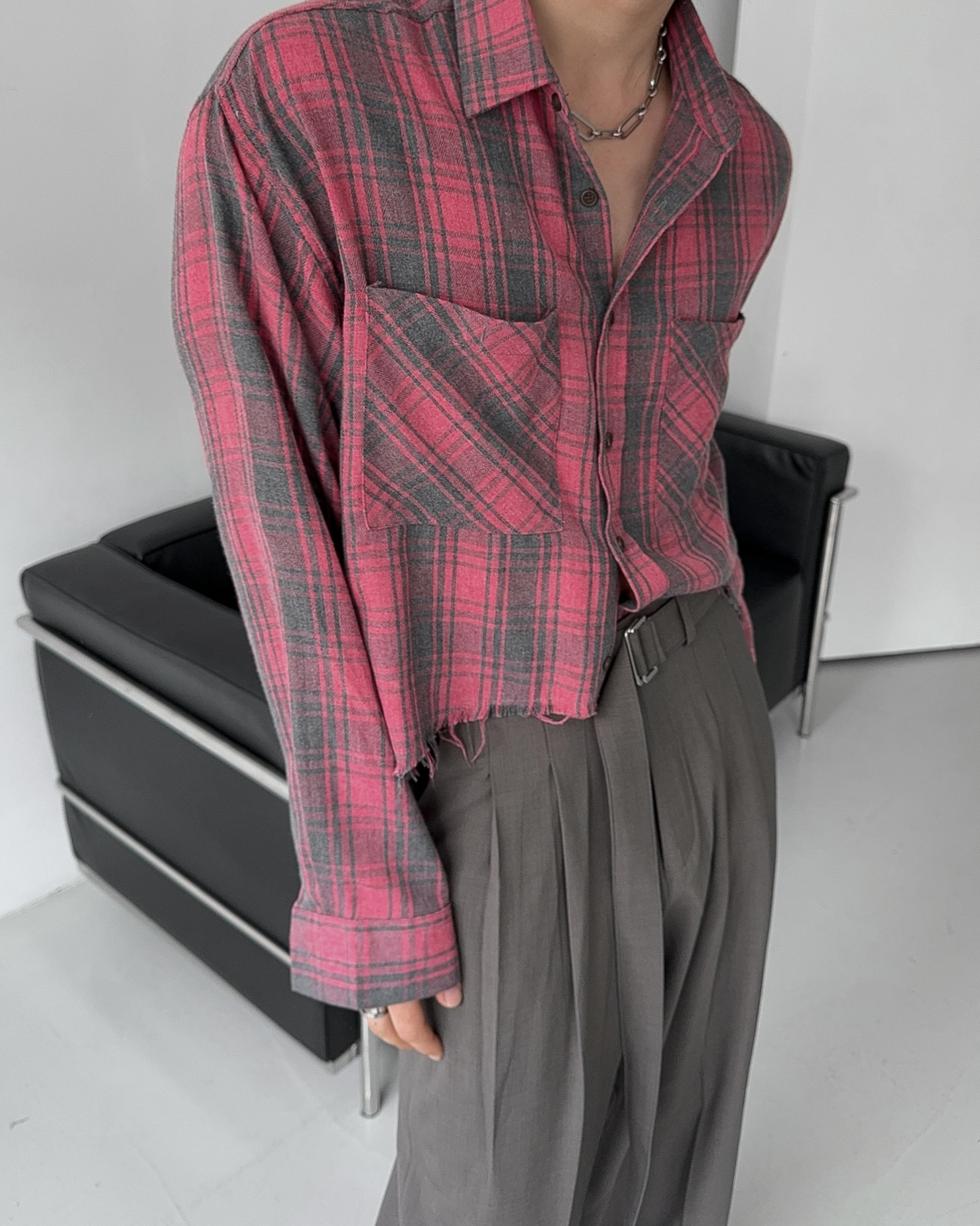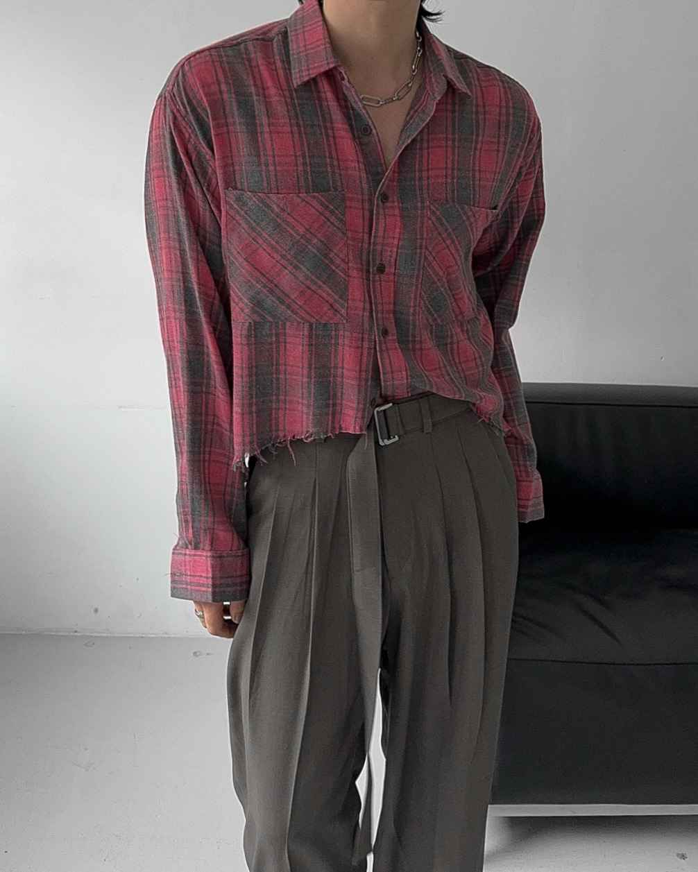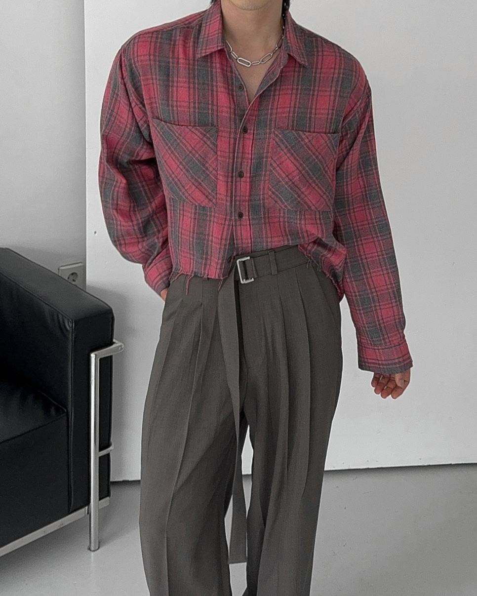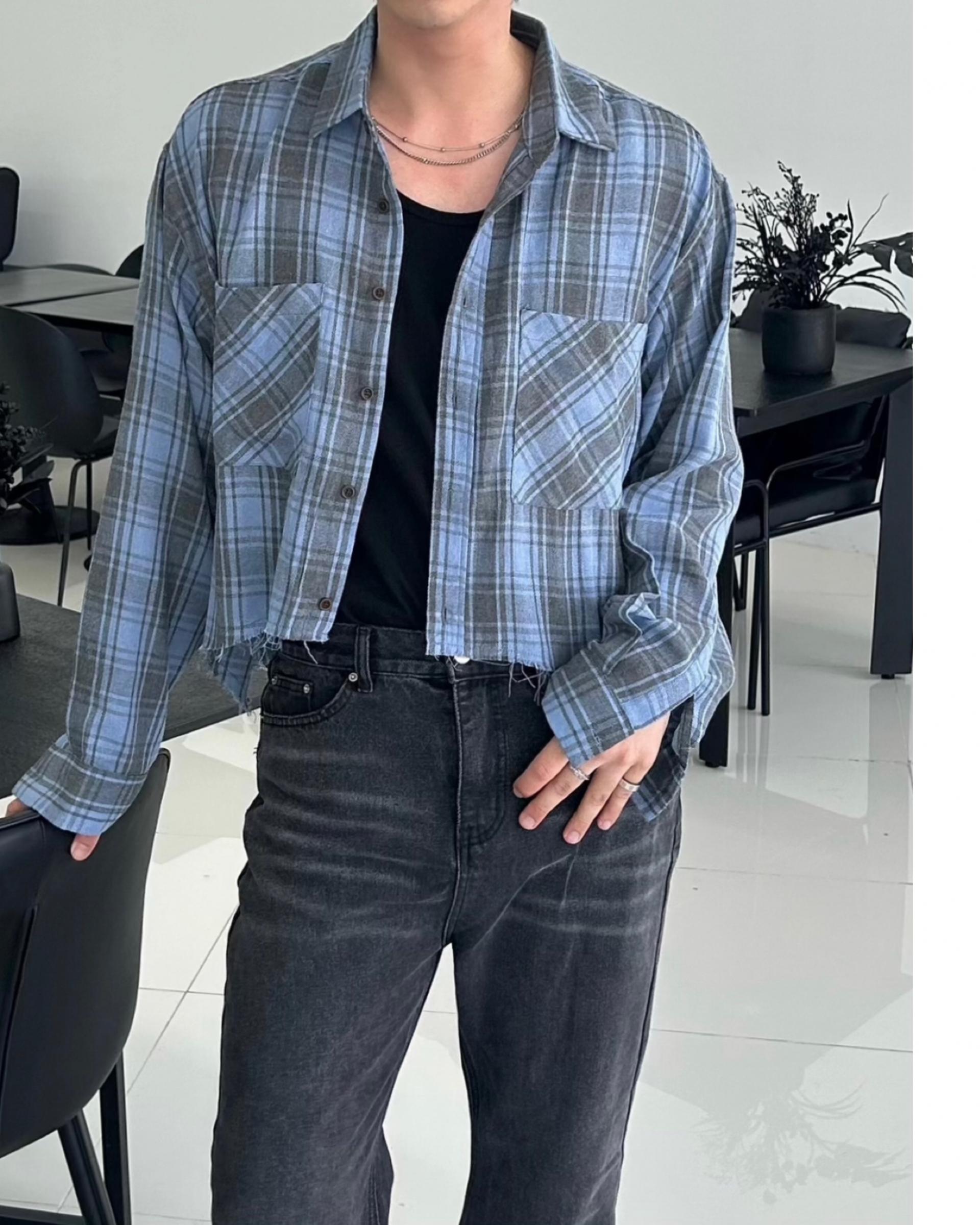 -크롭한 기장감의 체크 셔츠