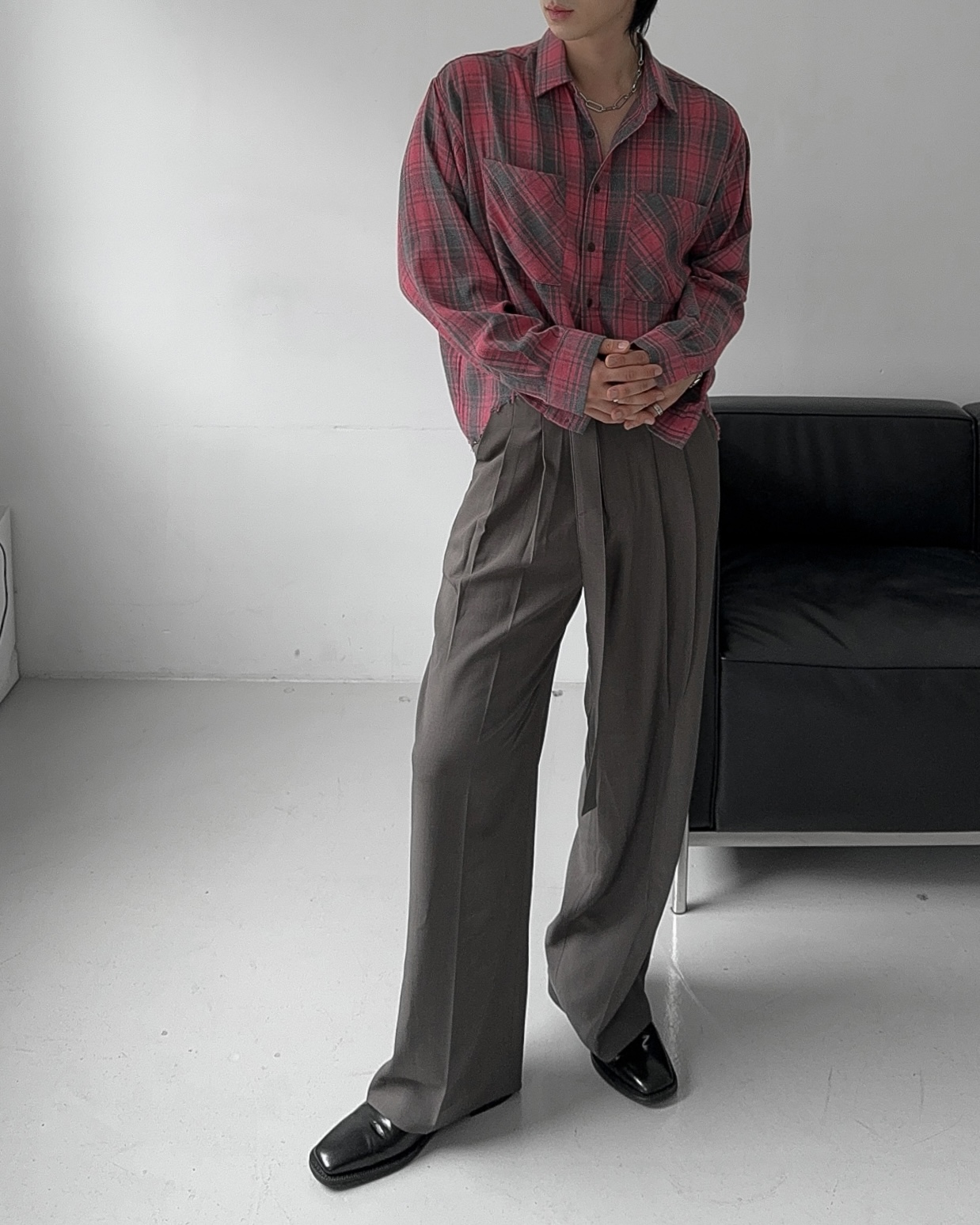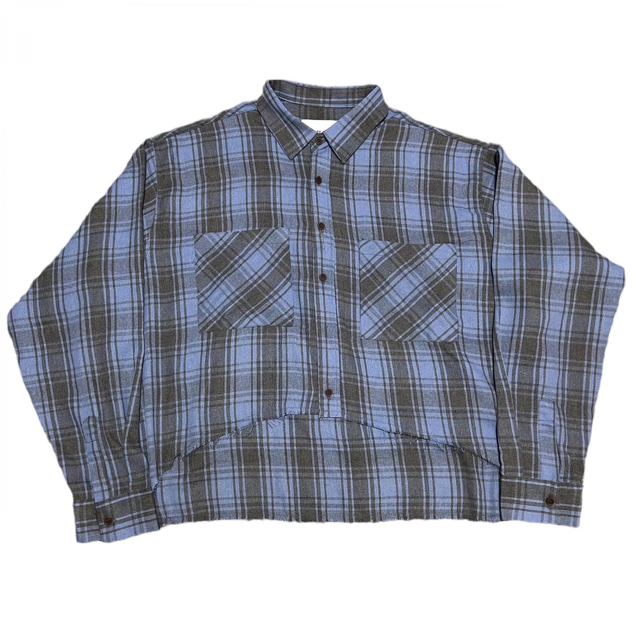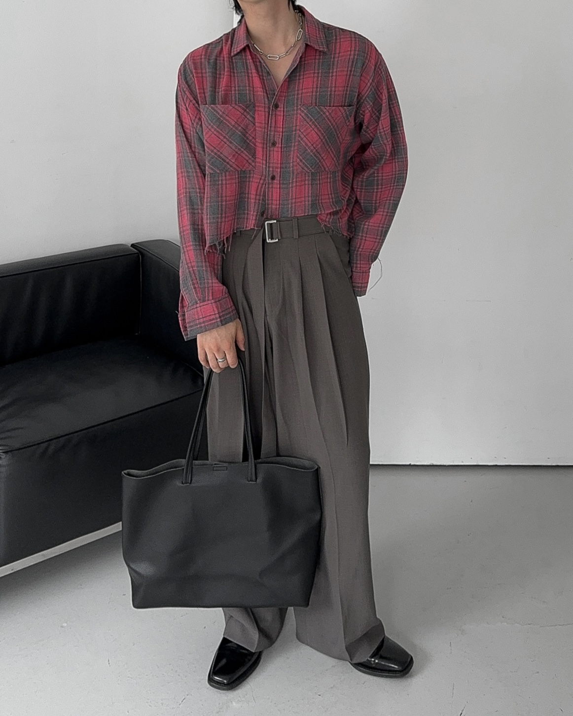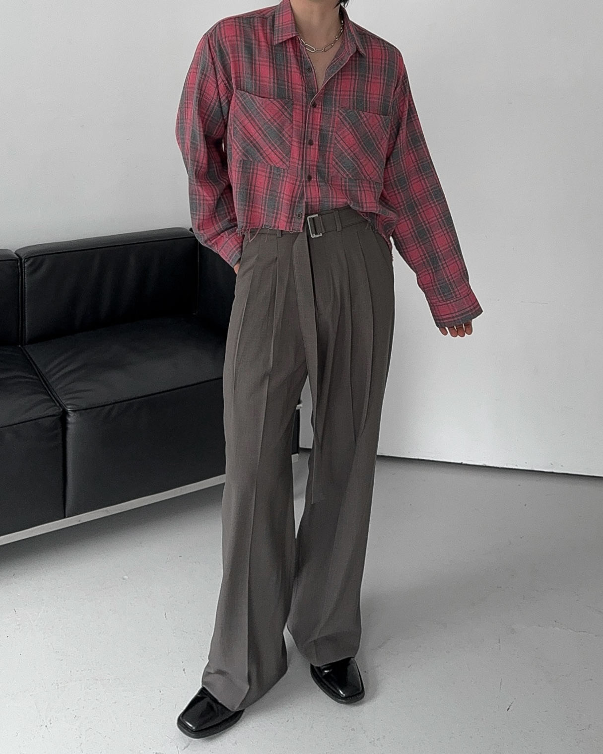 -크롭한 기장감의 체크 셔츠