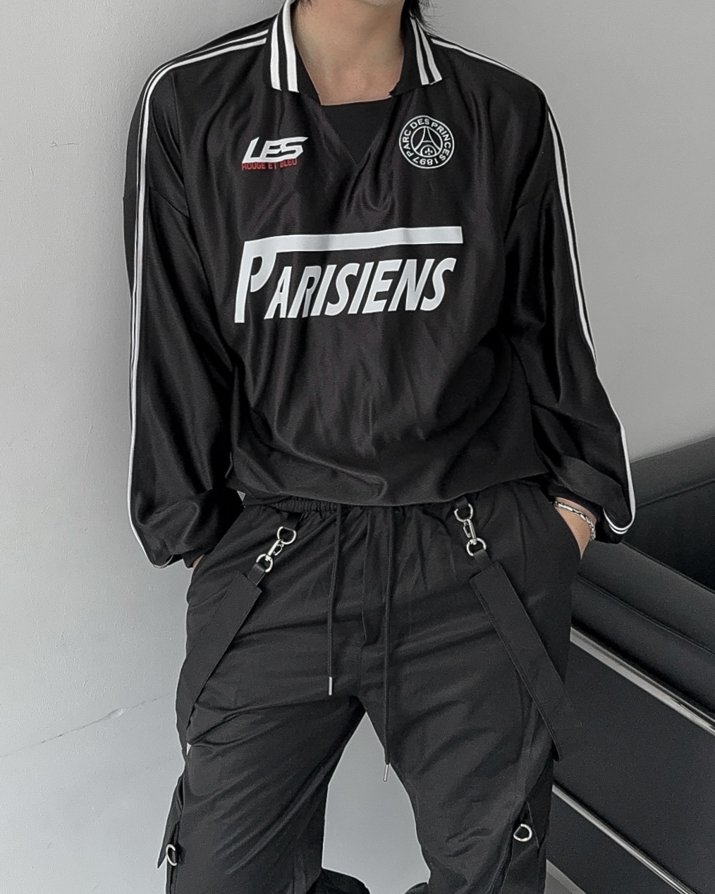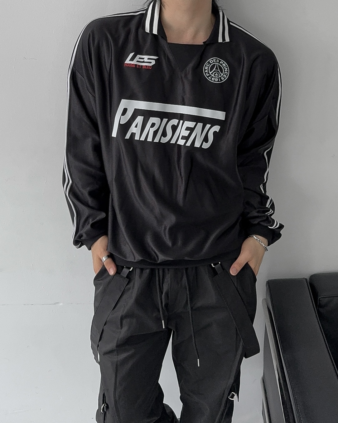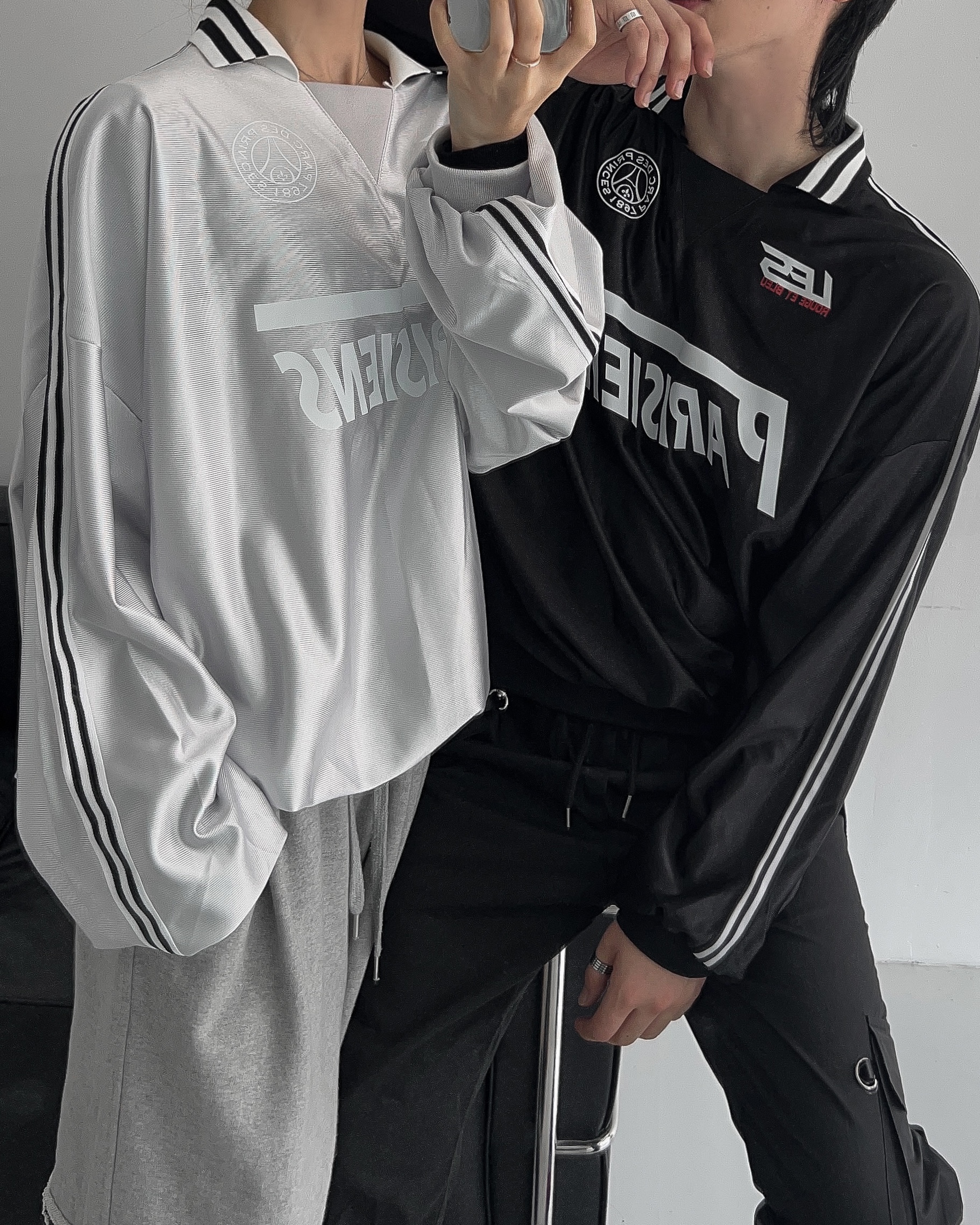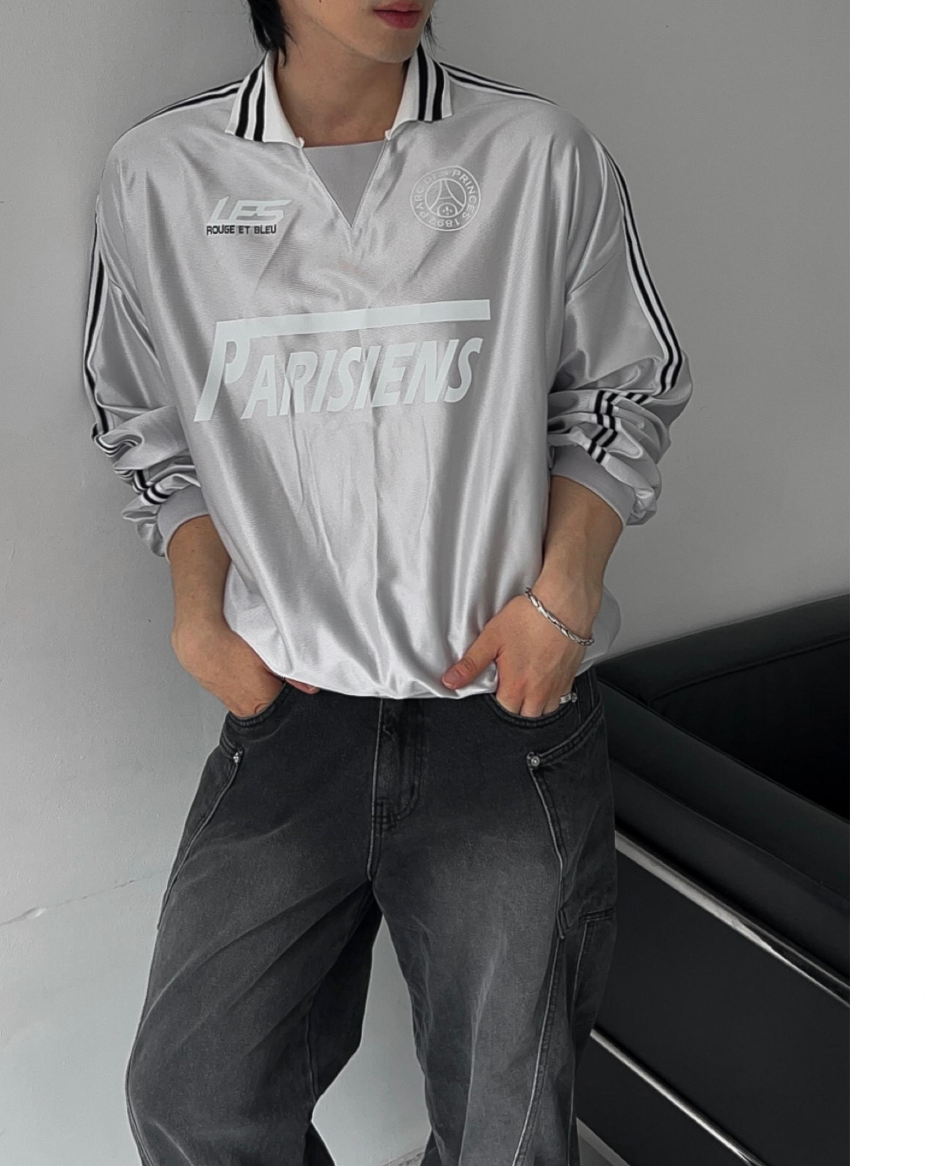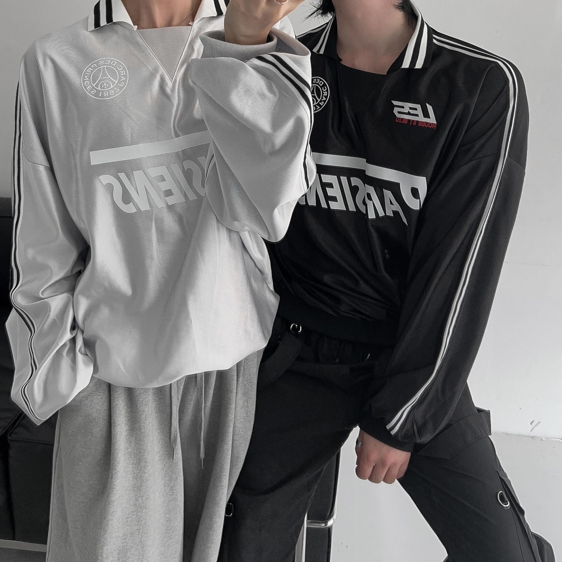 -블록코어룩의 트랙 티셔츠