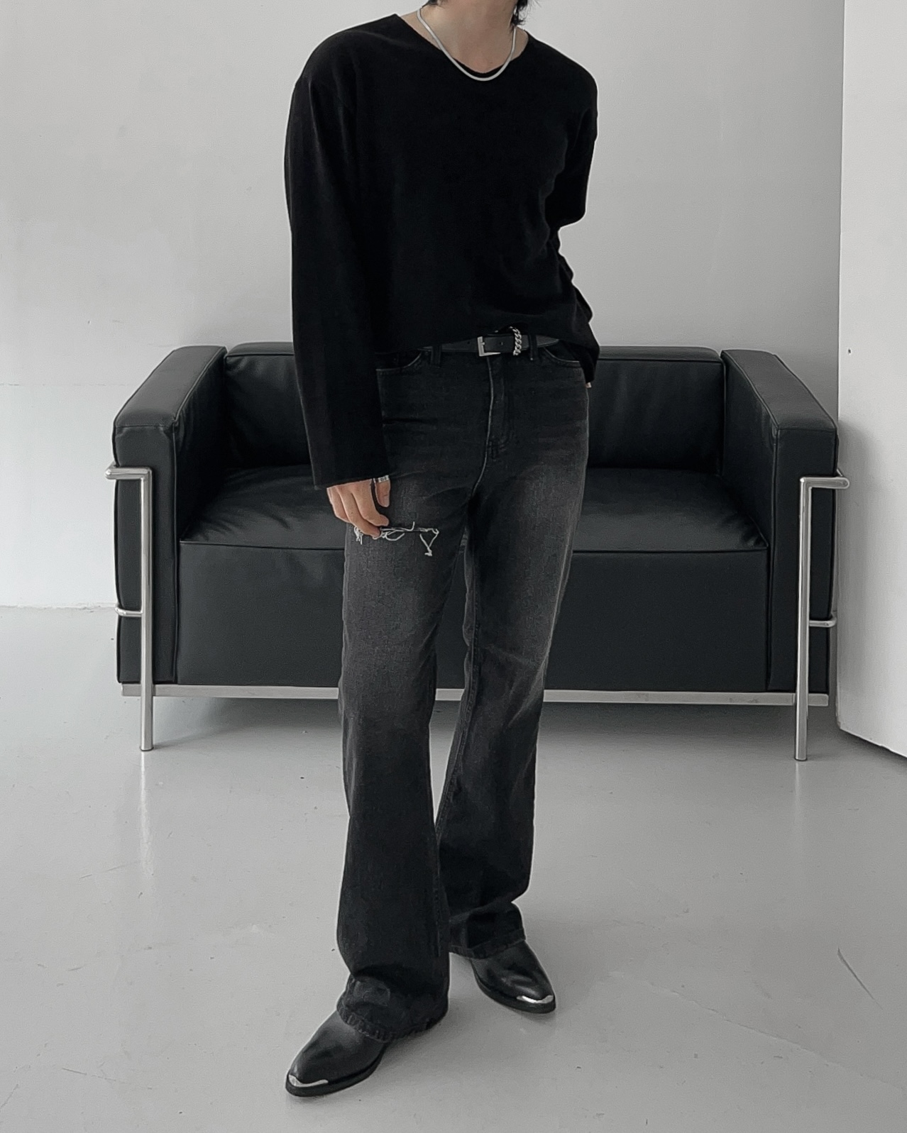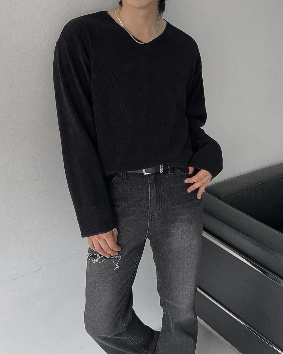 -드롭 숄더 디자인으로 센슈얼한 무드