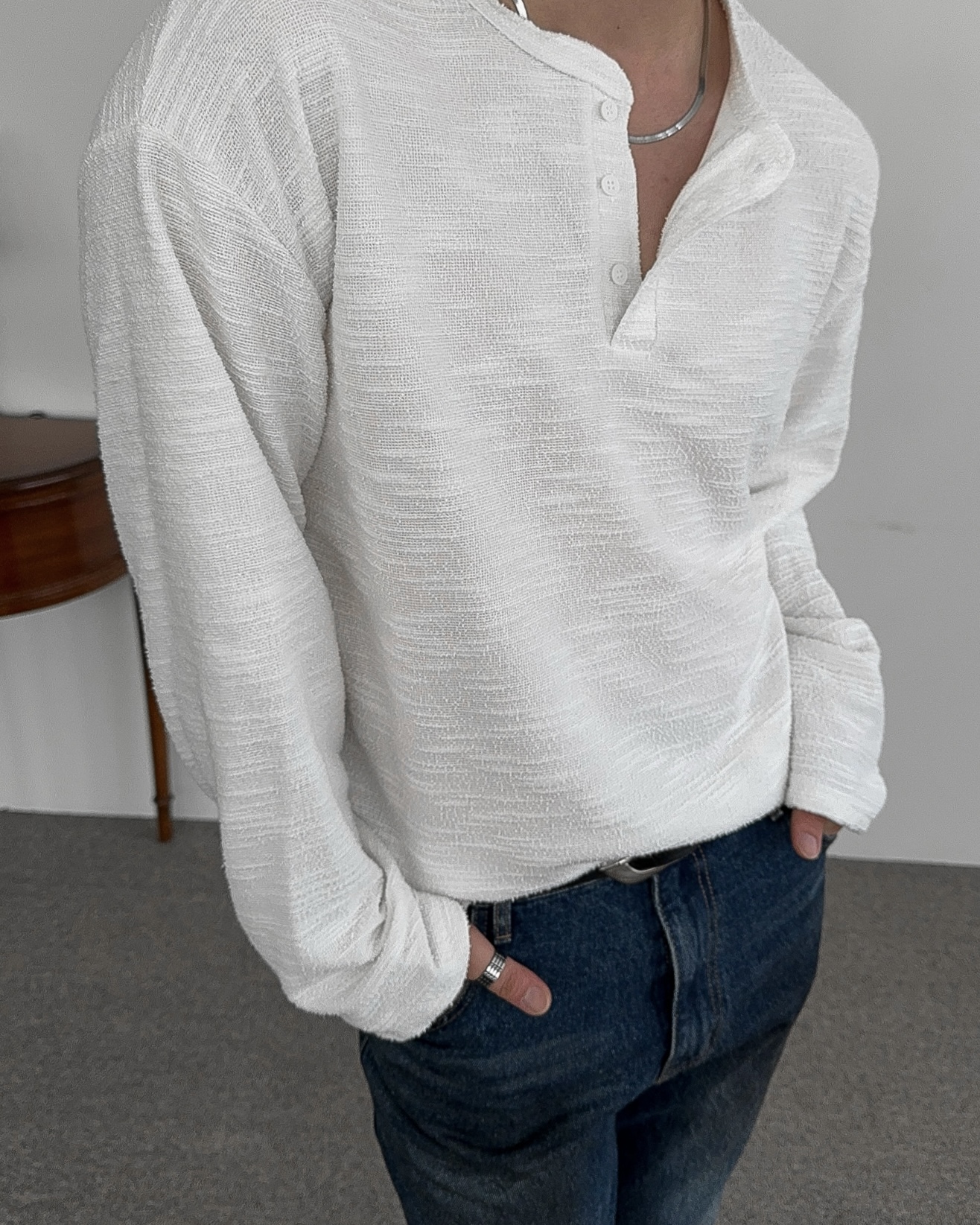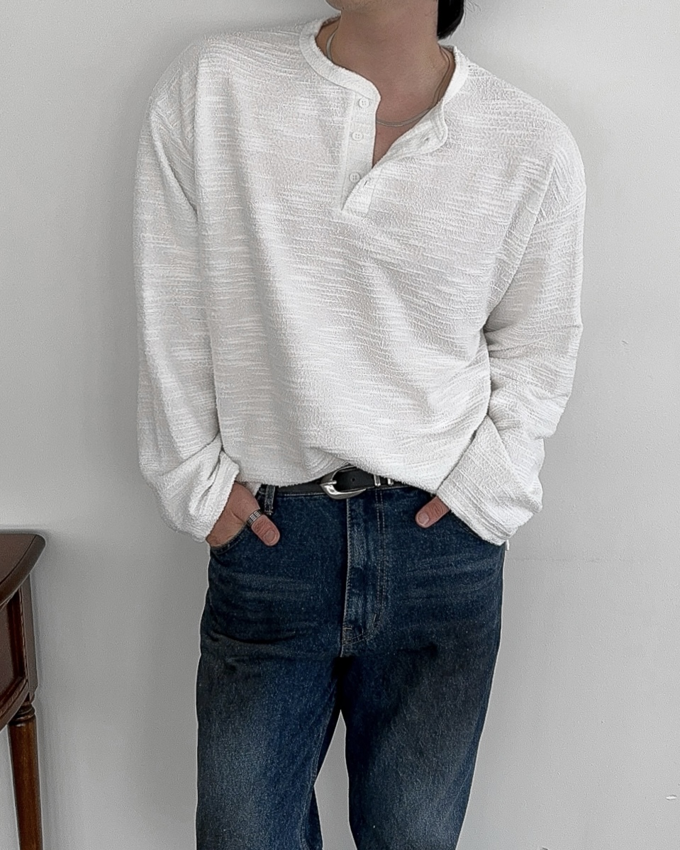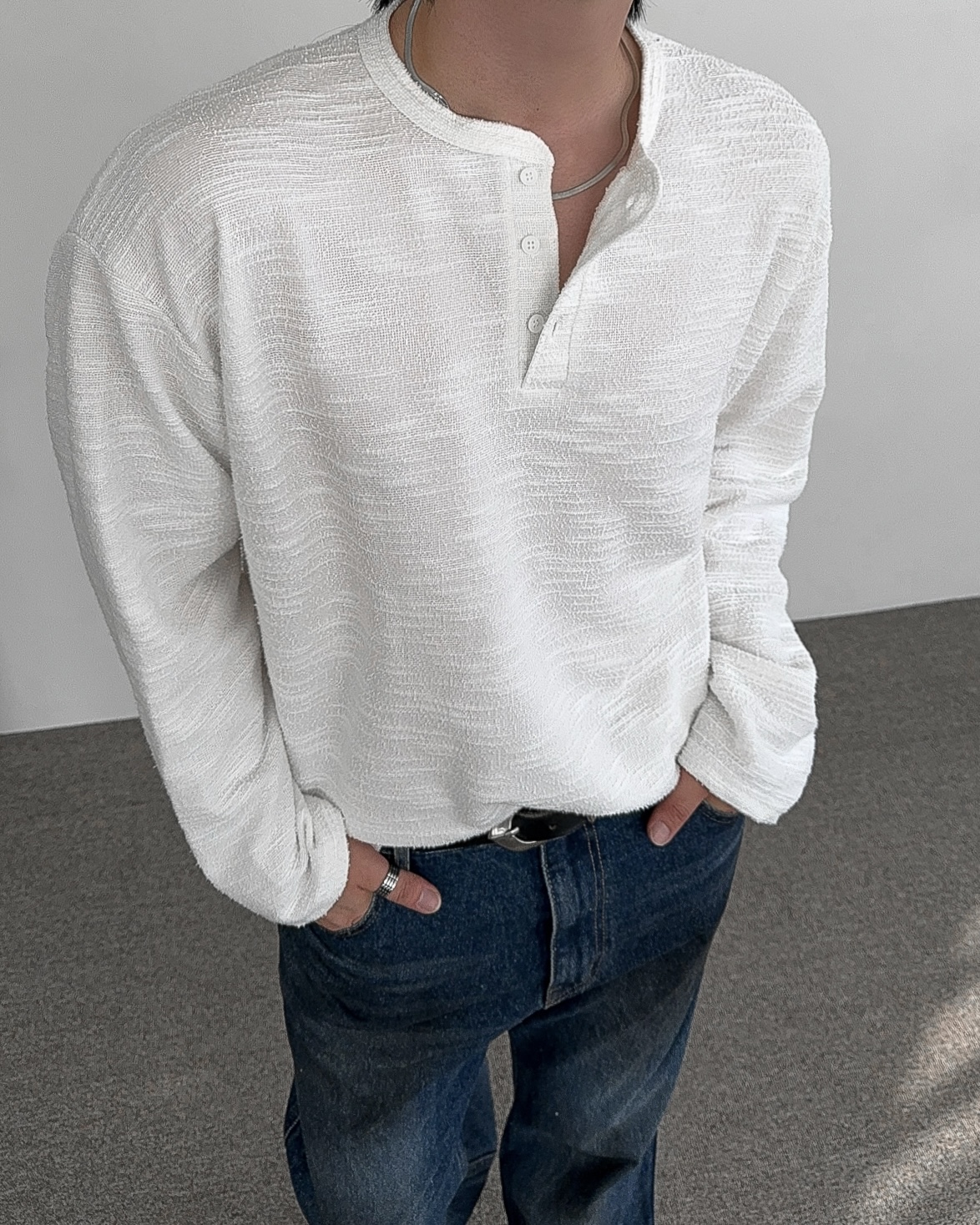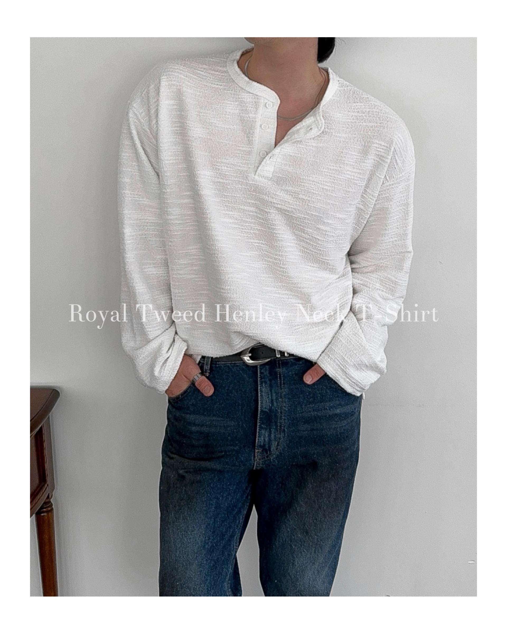 -트위드 소재로 제작된 헨리넥 티셔츠