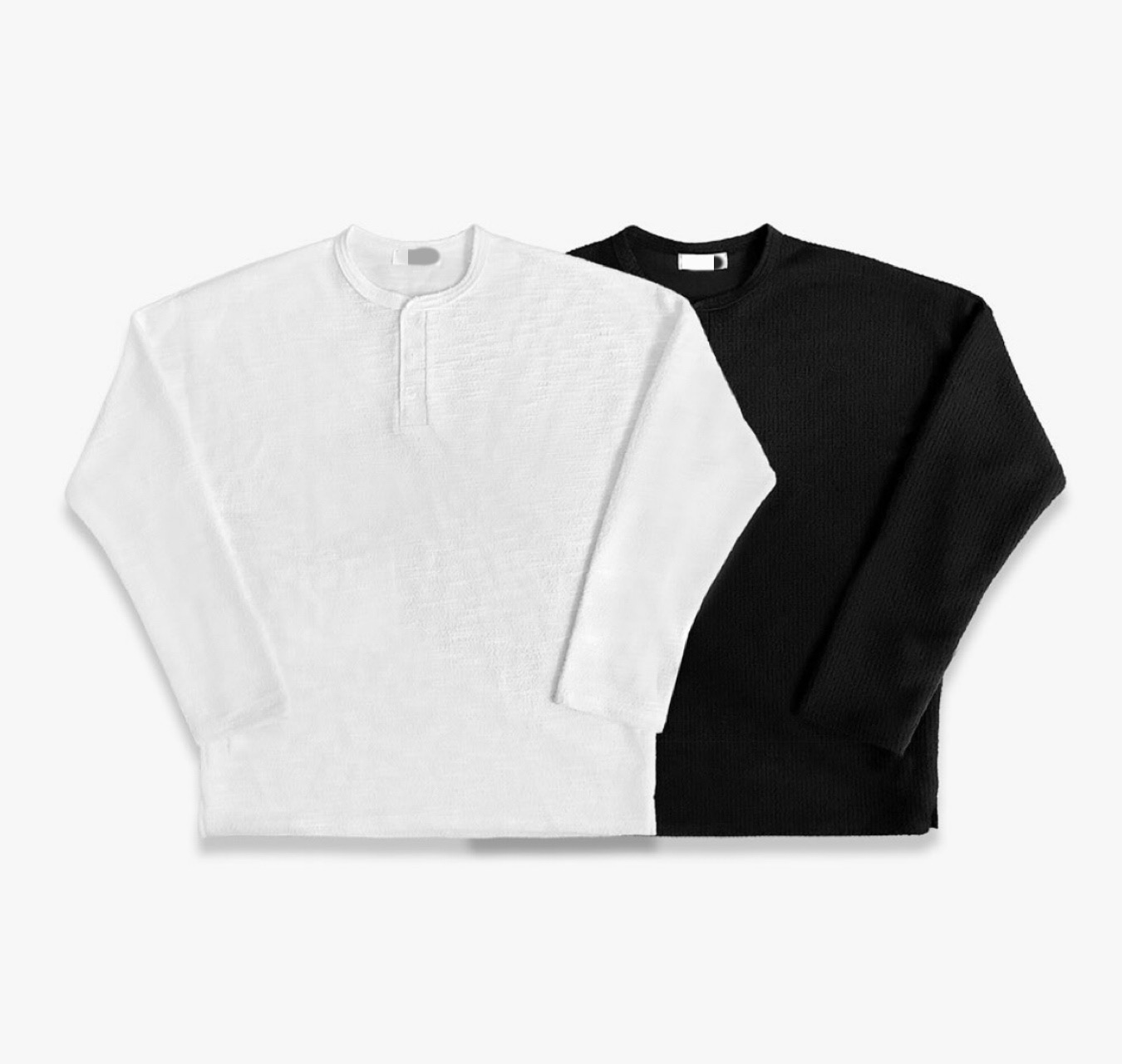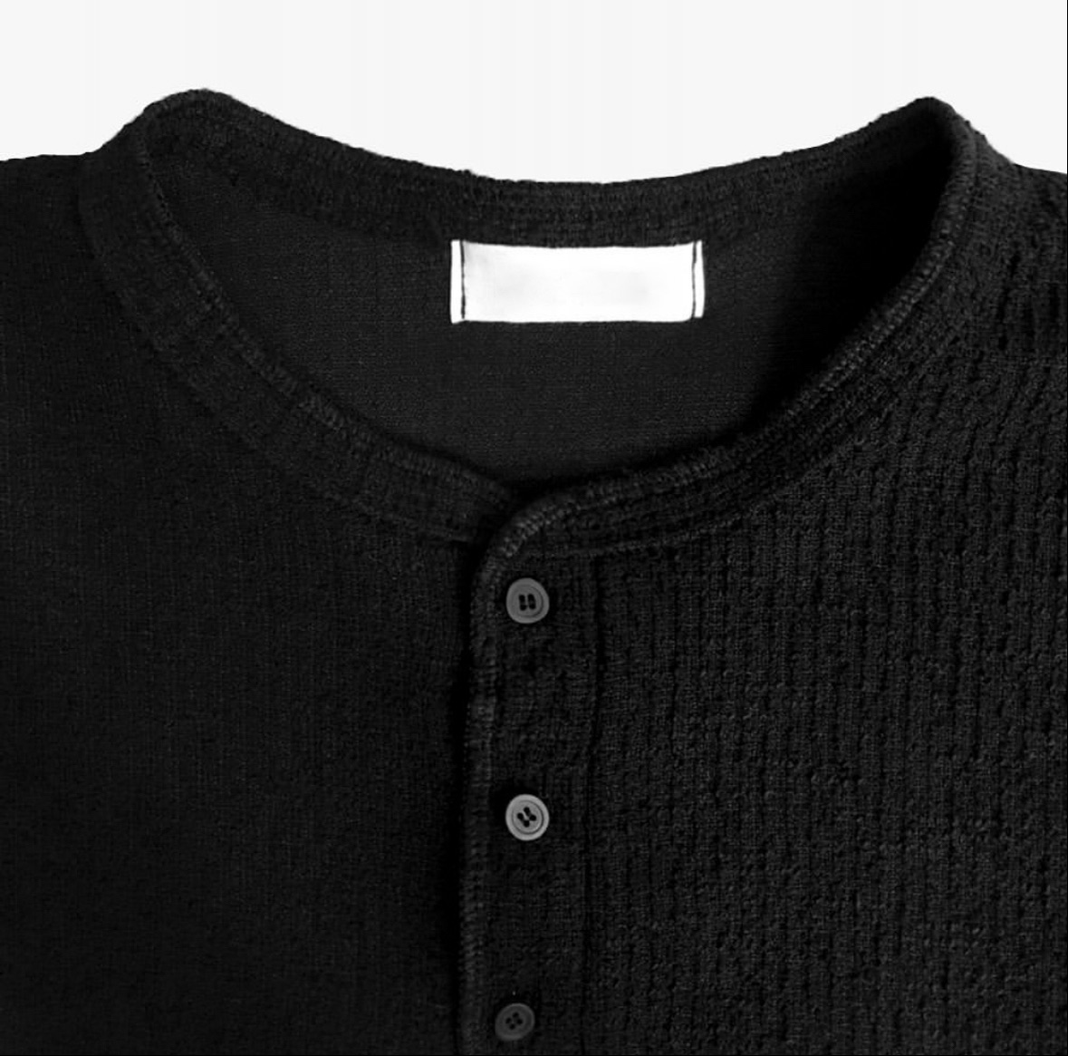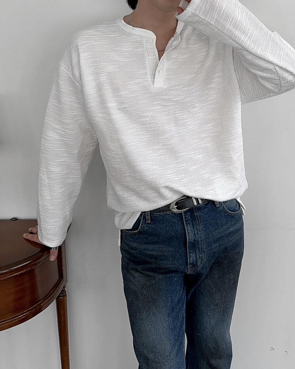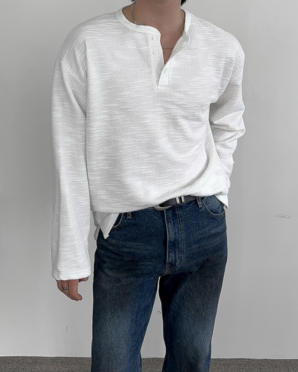 -트위드 소재로 제작된 헨리넥 티셔츠