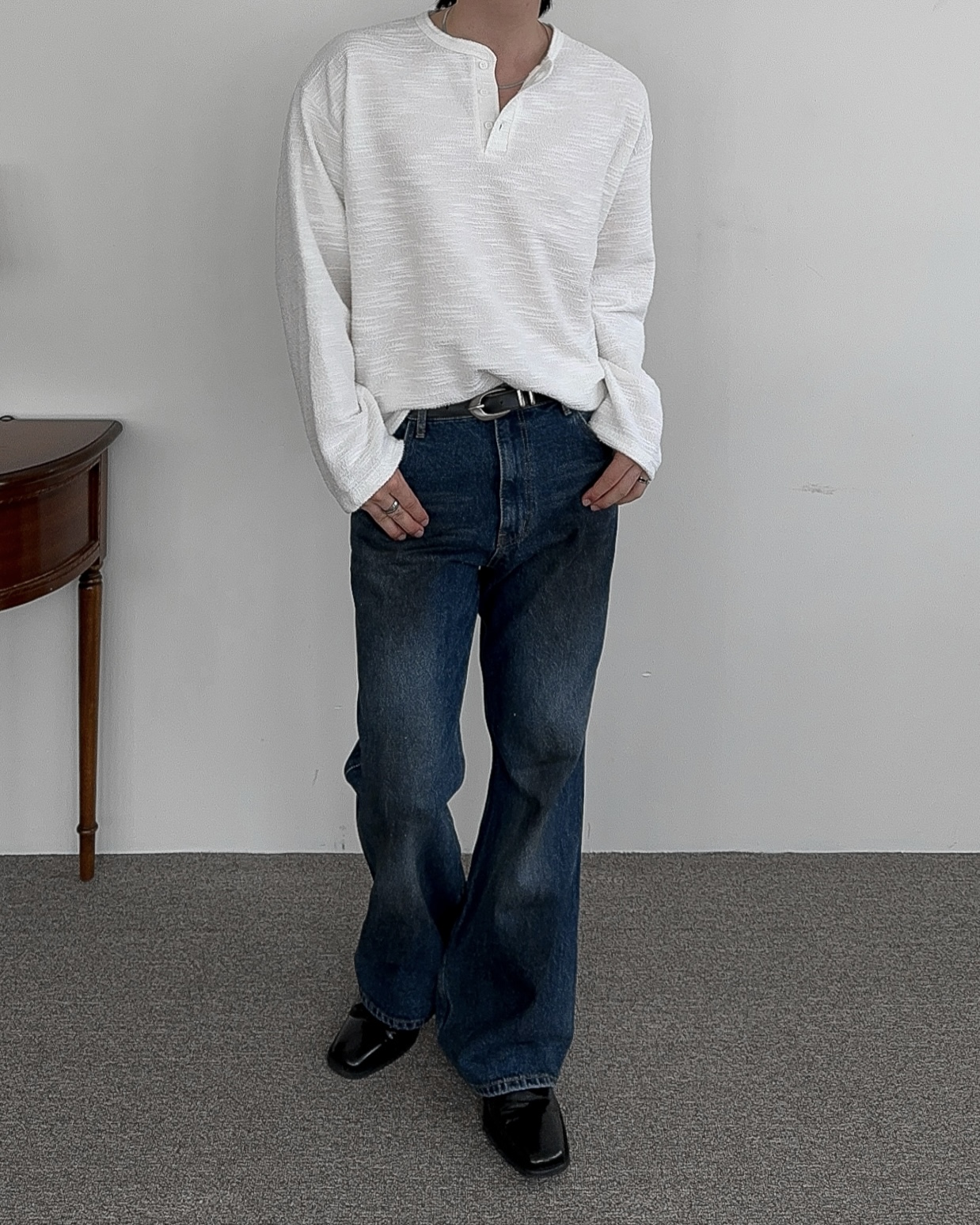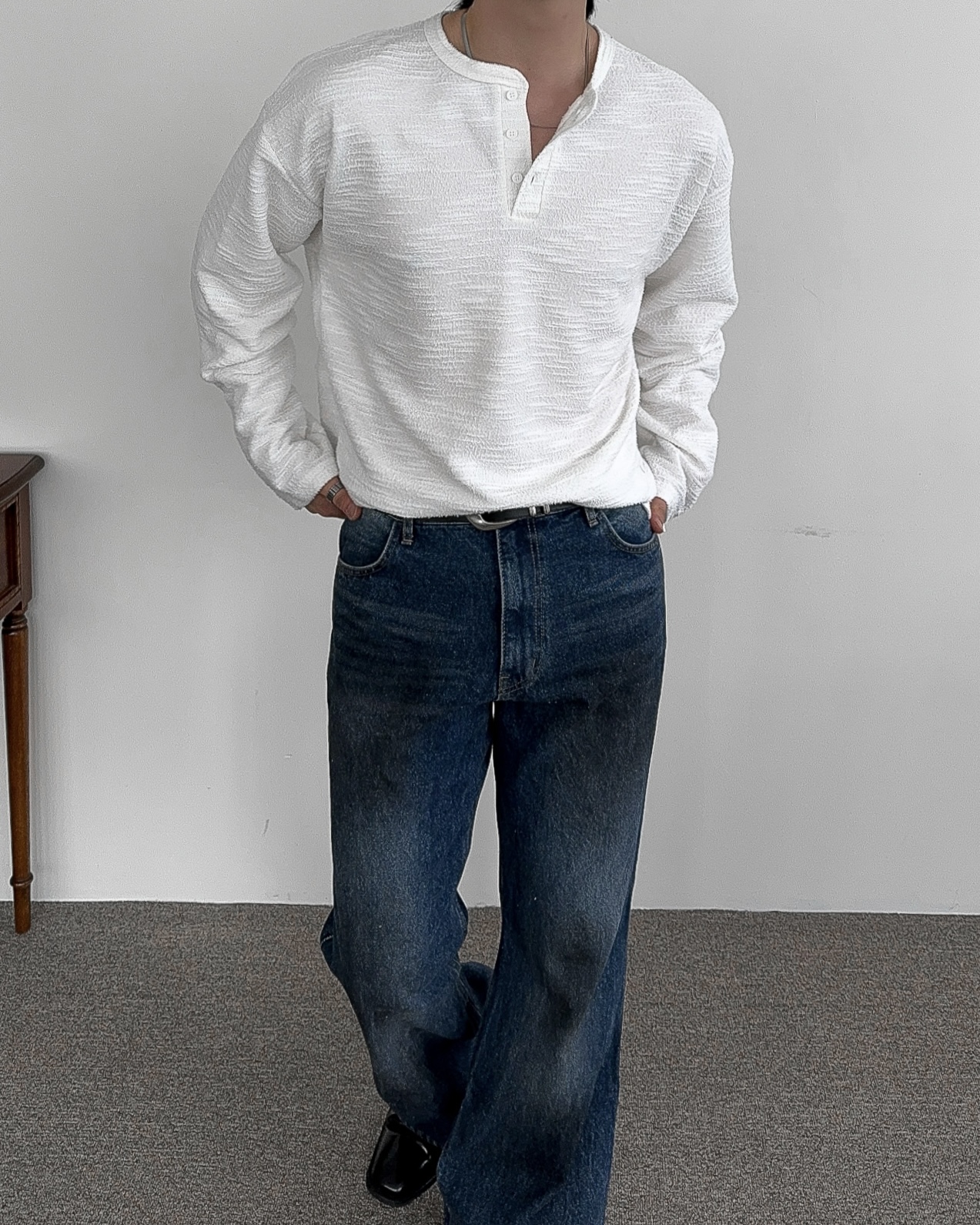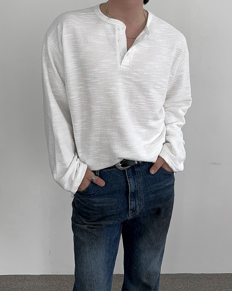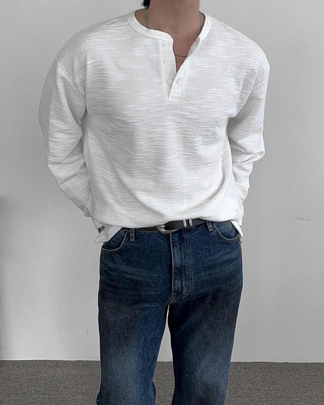 -트위드 소재로 제작된 헨리넥 티셔츠