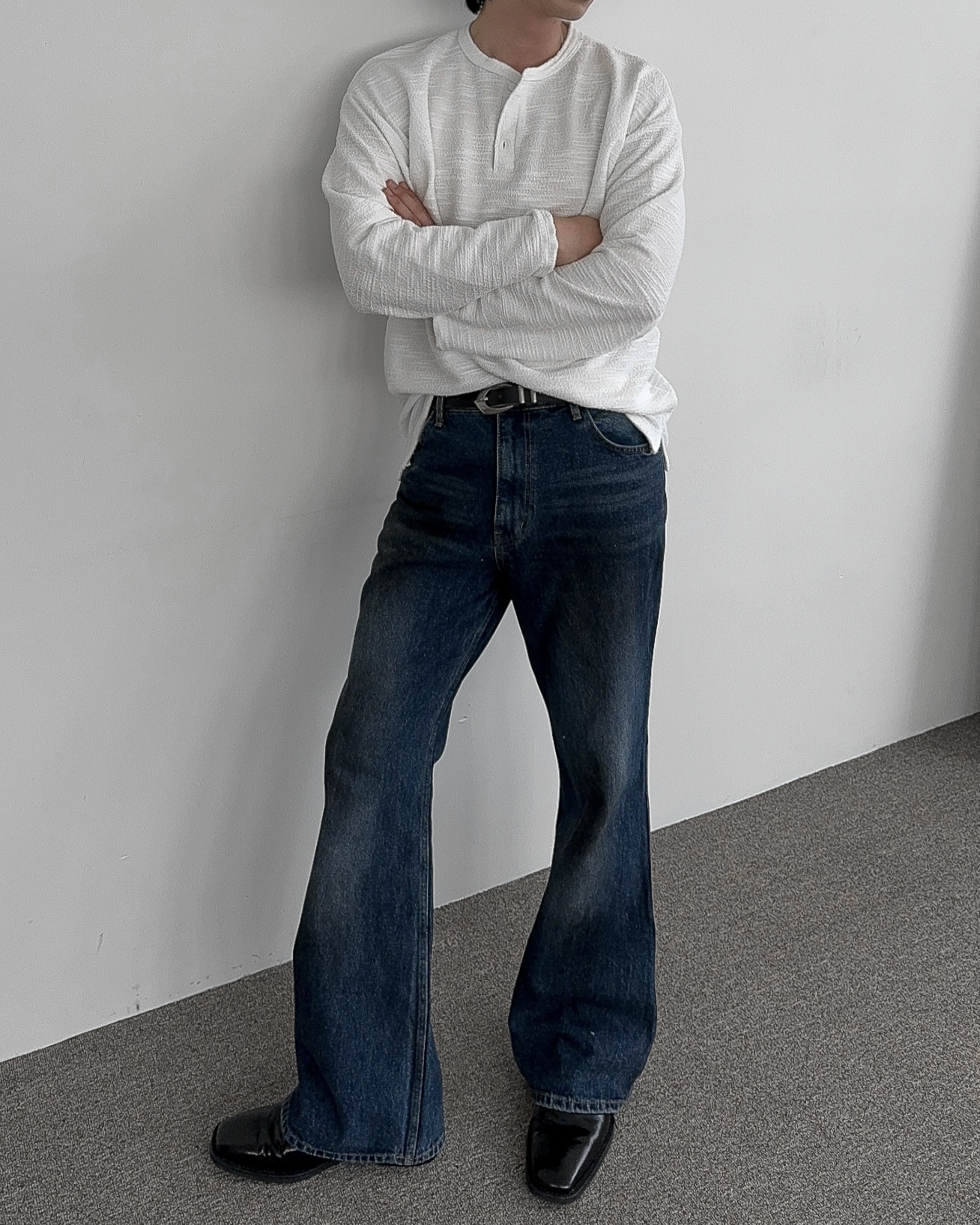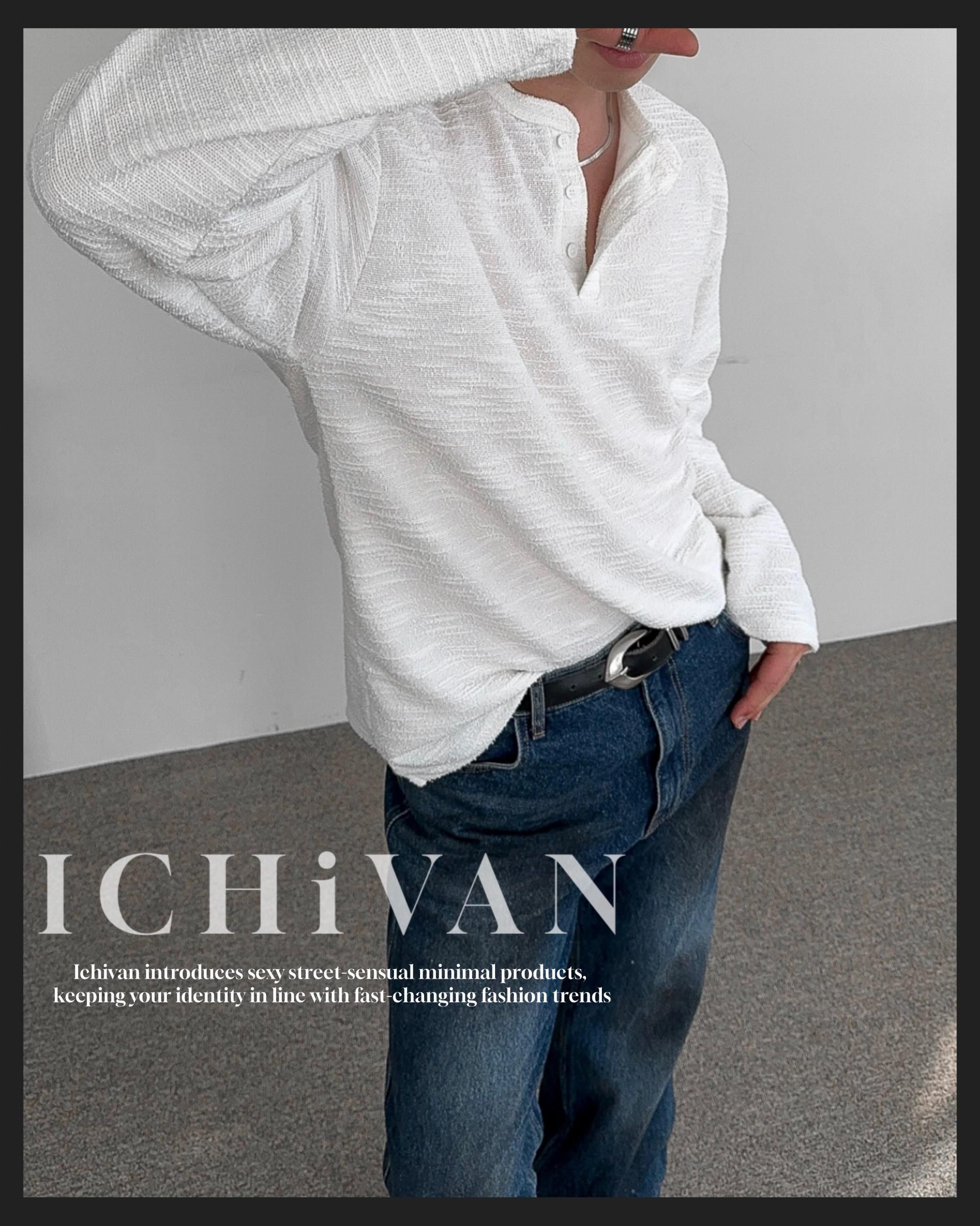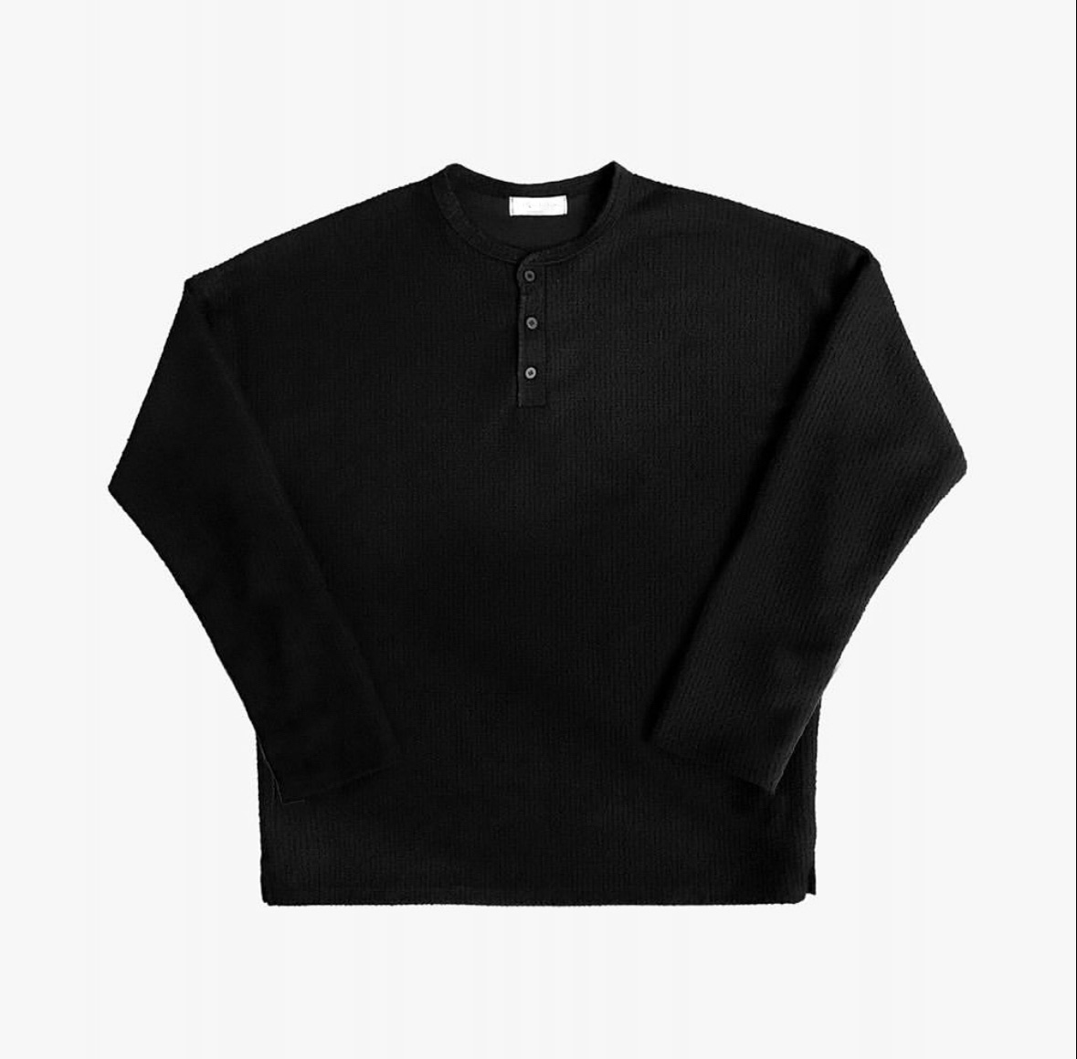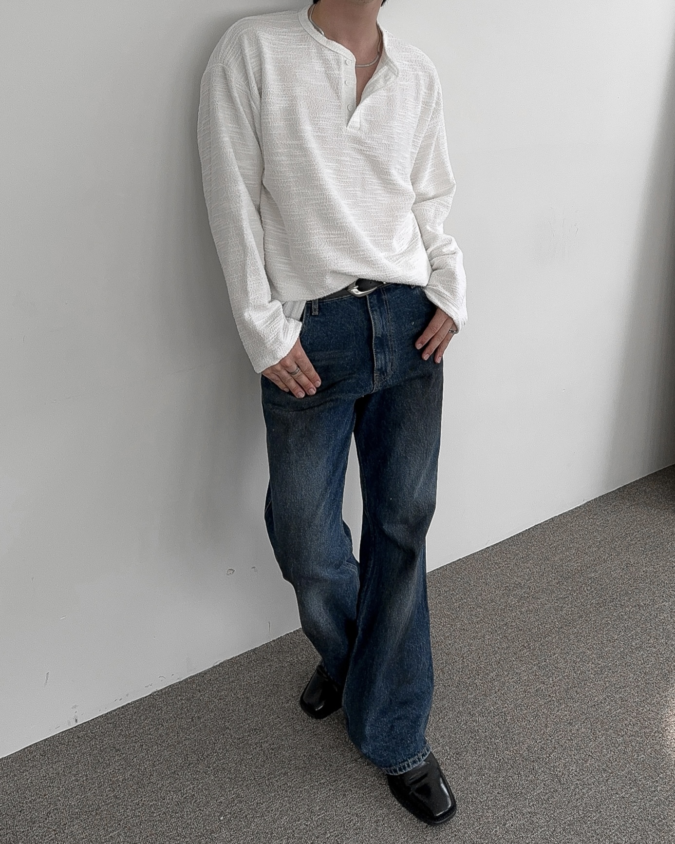 -트위드 소재로 제작된 헨리넥 티셔츠