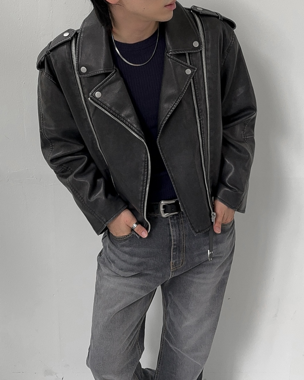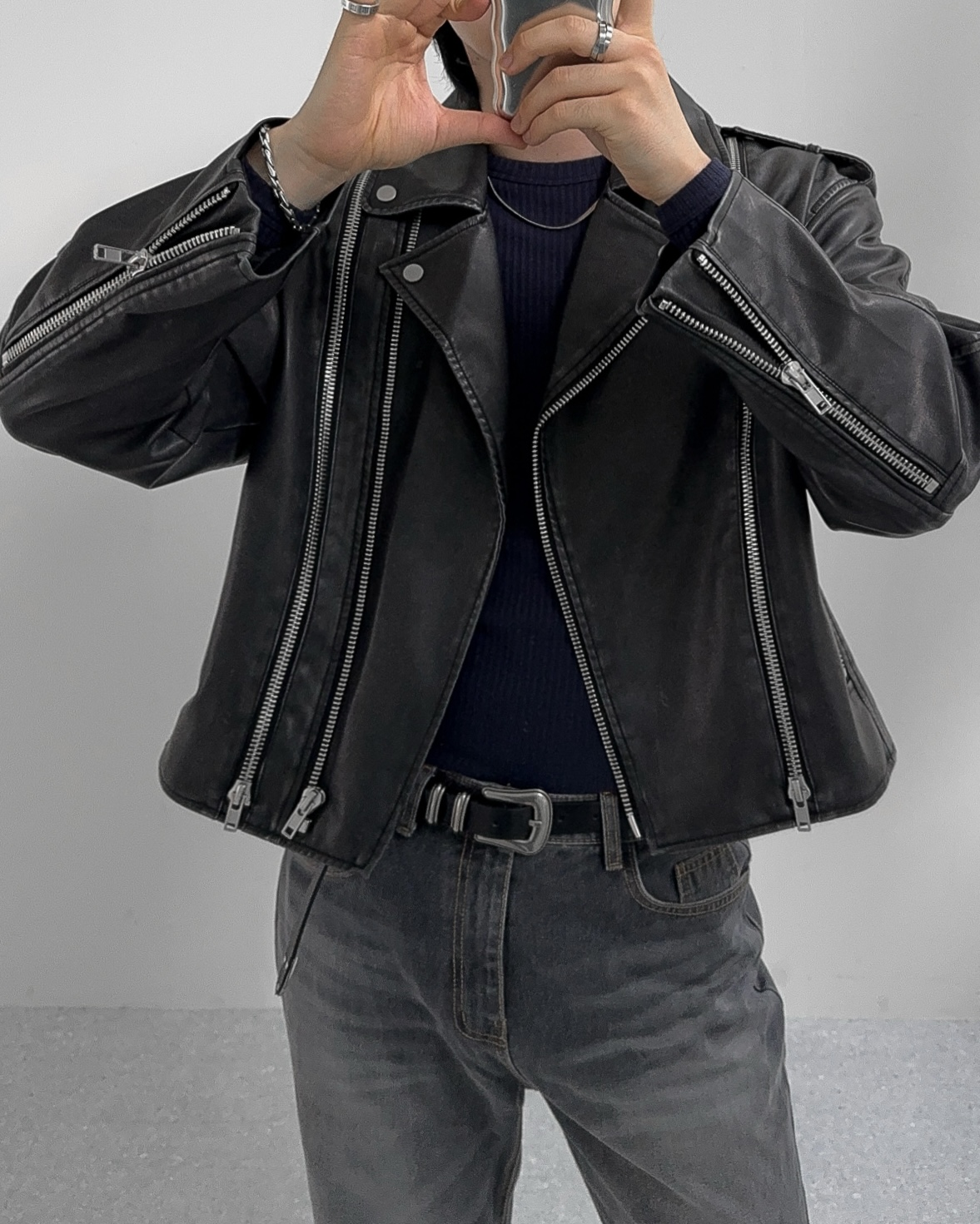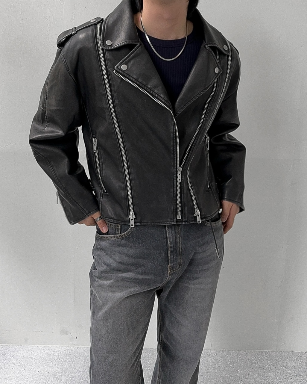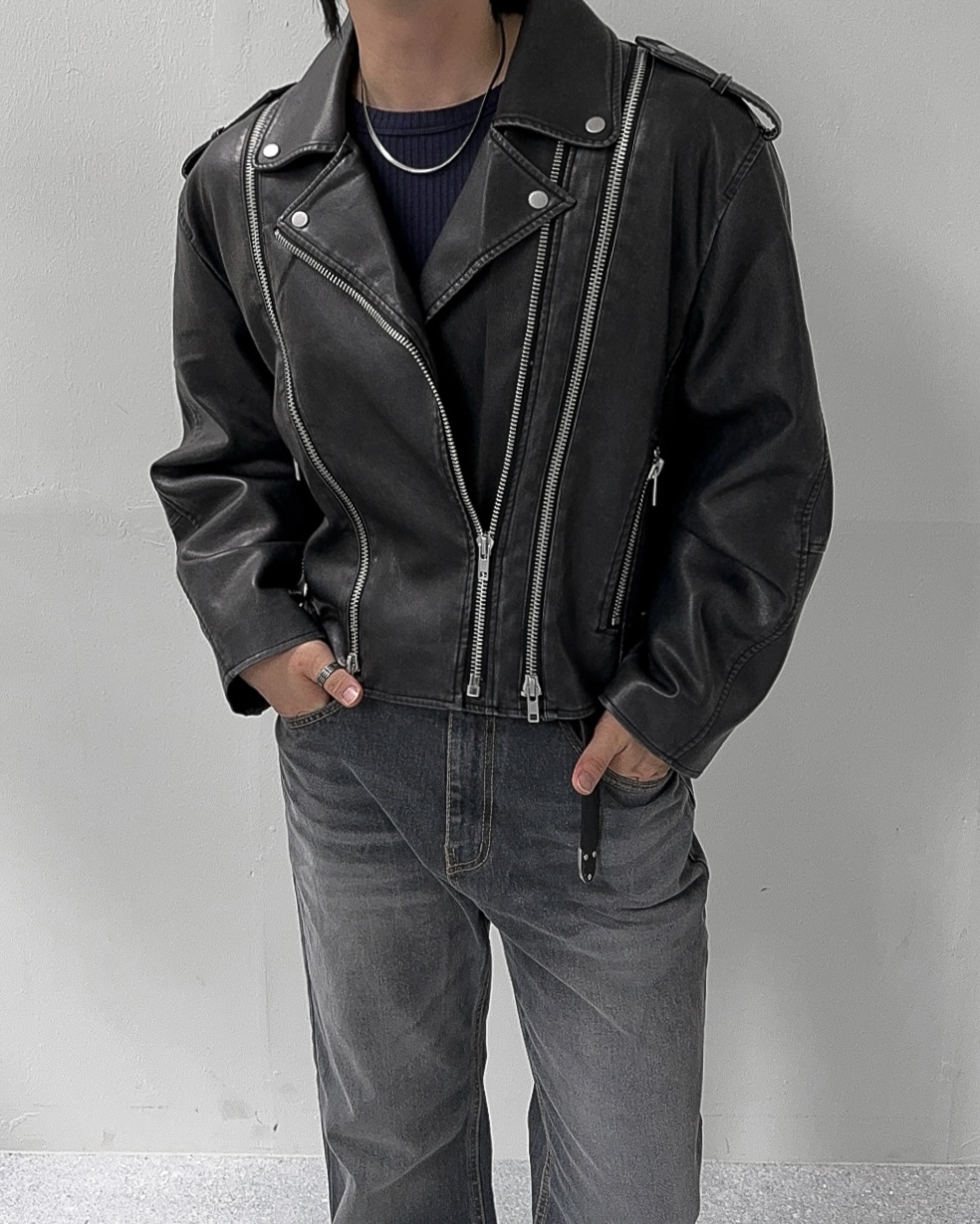 -프리미엄 레더 원단으로 제작된 탄탄한 라이더 자켓