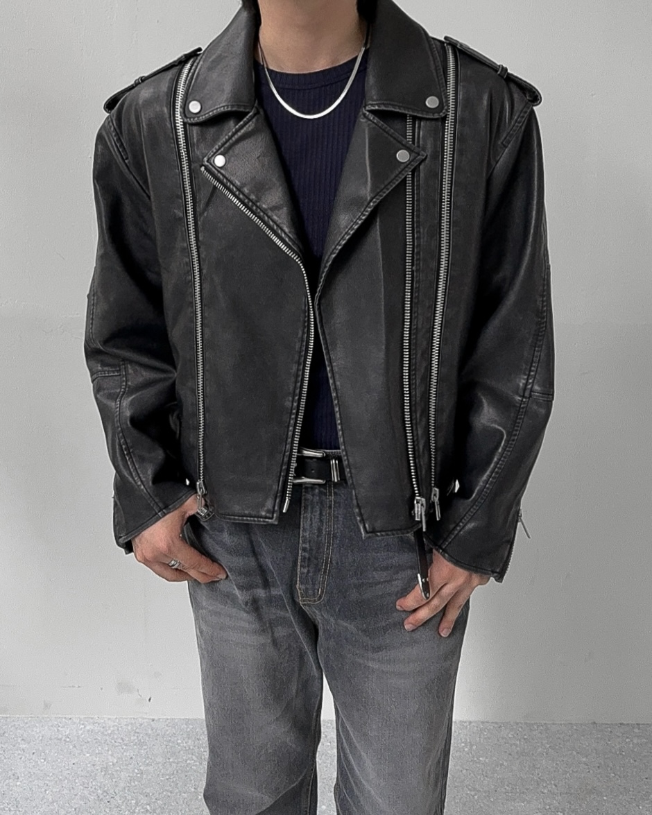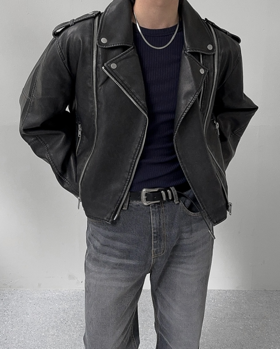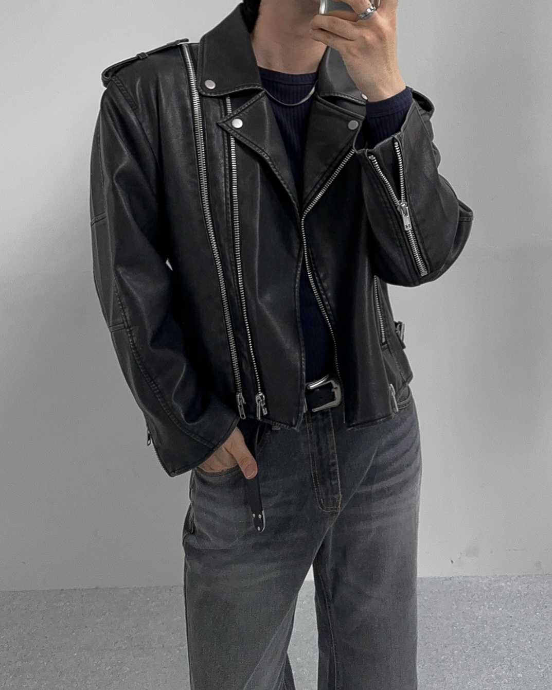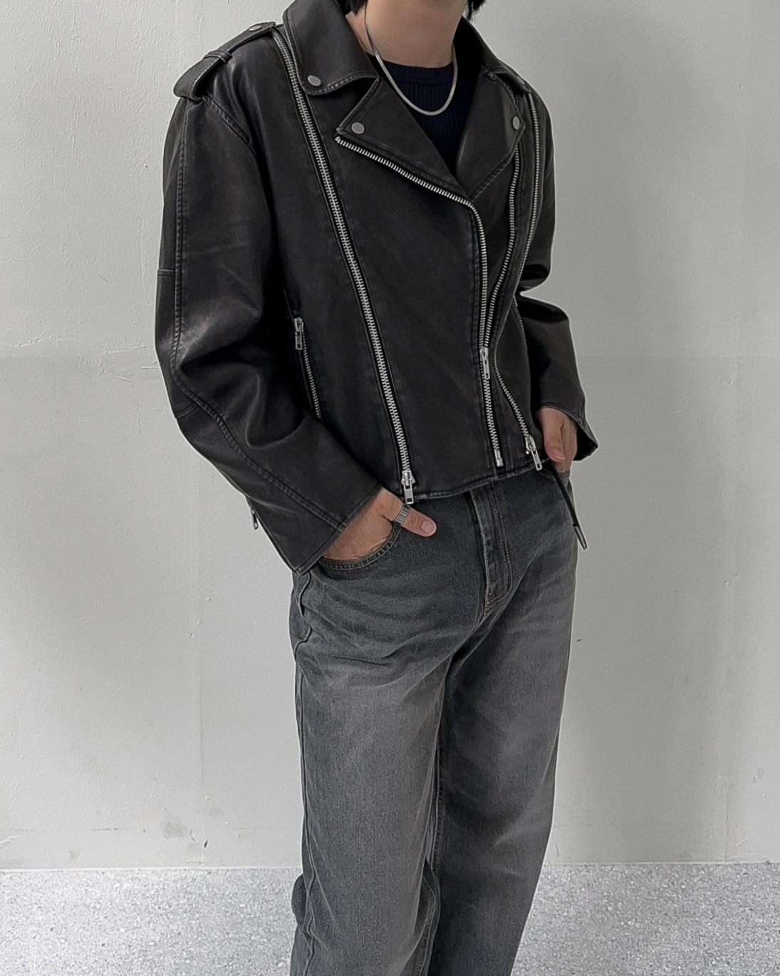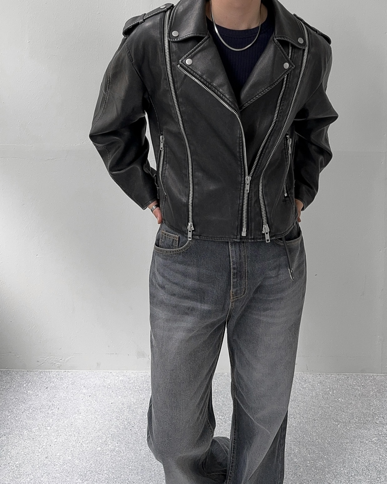 -프리미엄 레더 원단으로 제작된 탄탄한 라이더 자켓