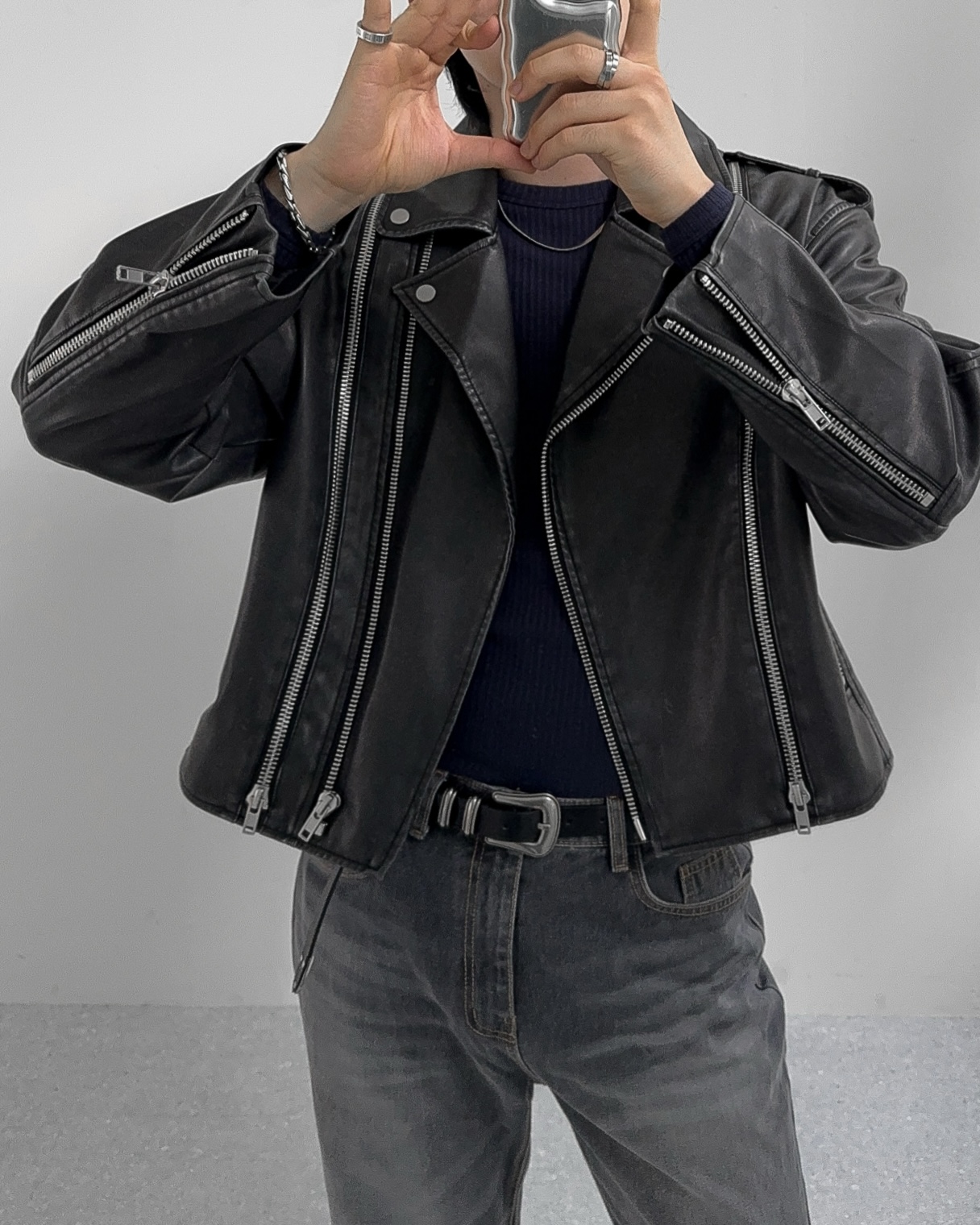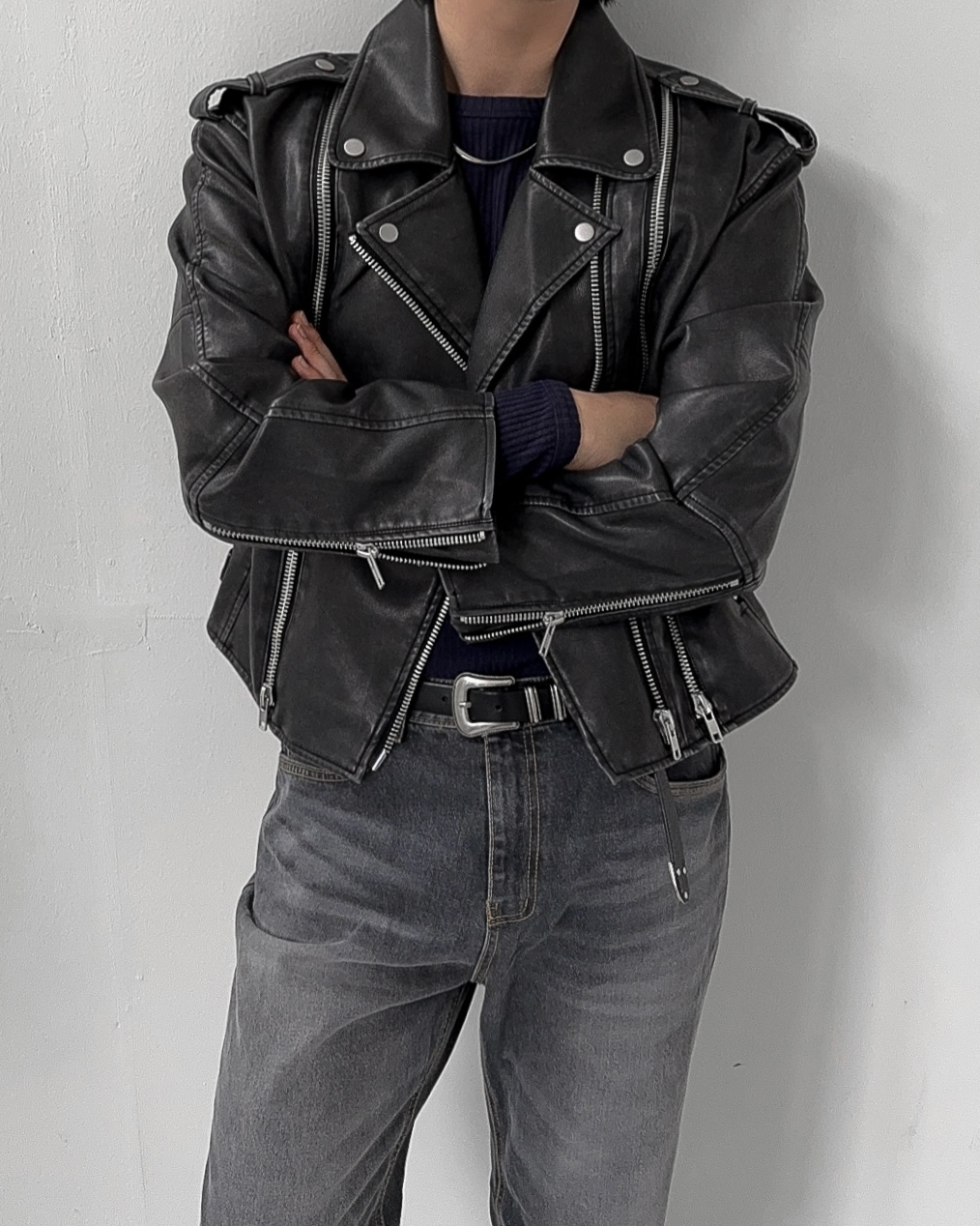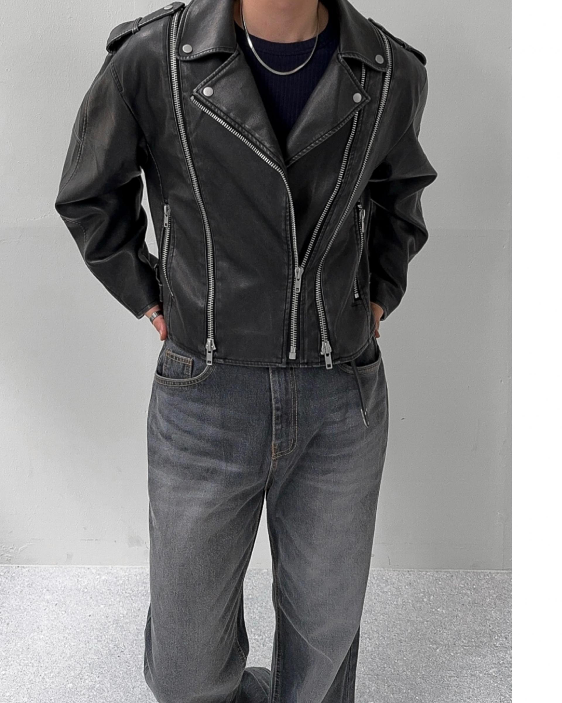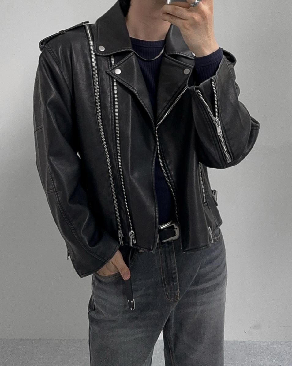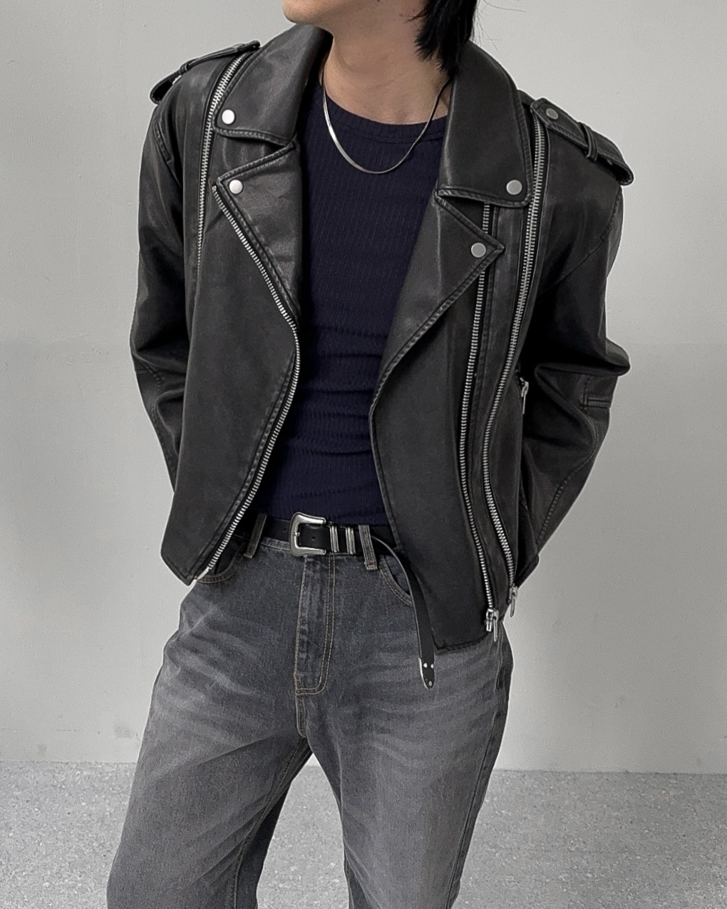 -프리미엄 레더 원단으로 제작된 탄탄한 라이더 자켓