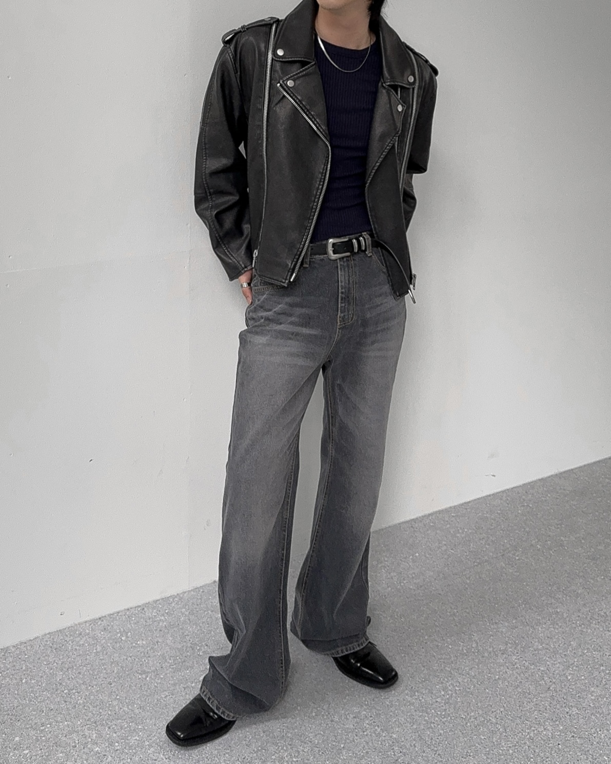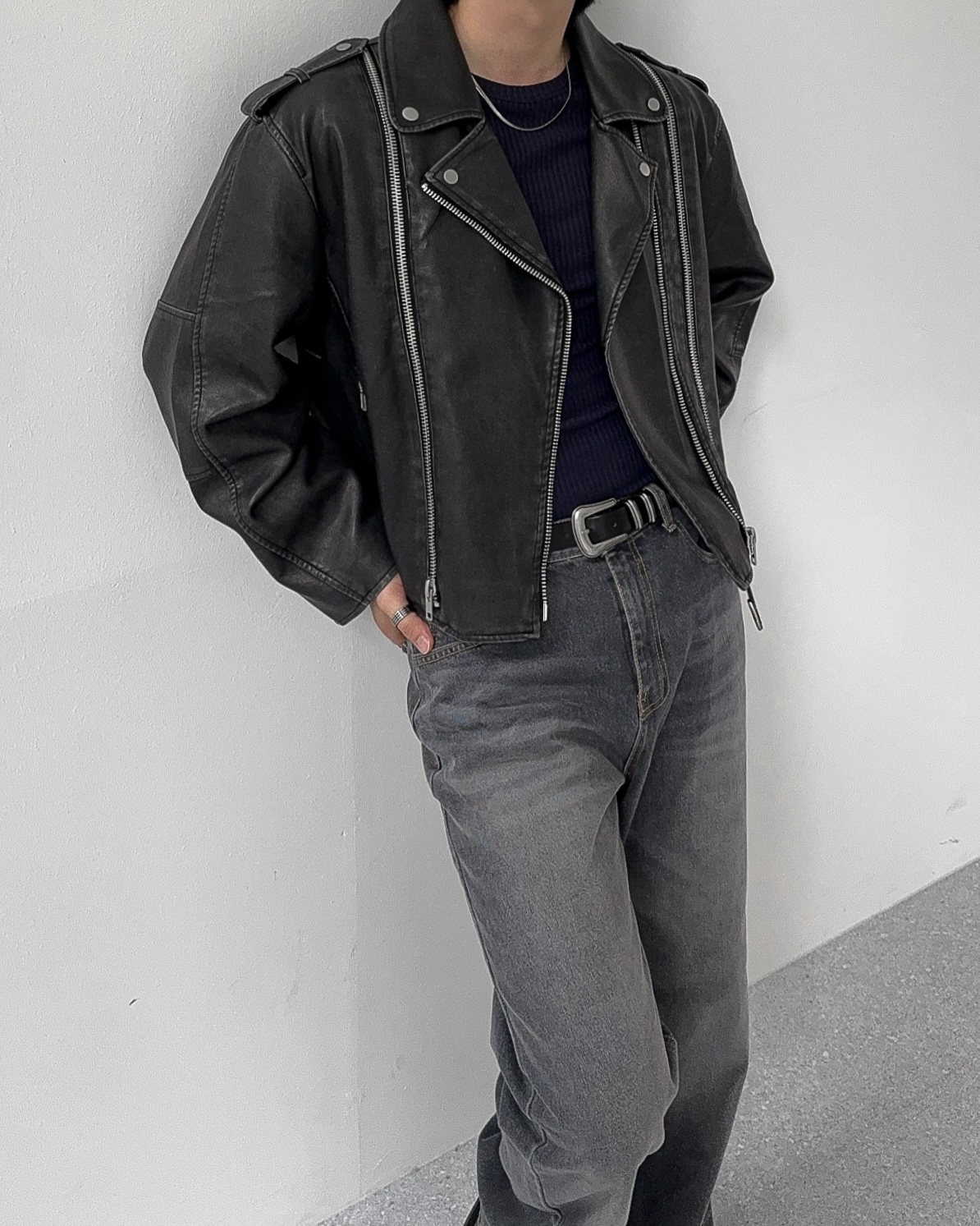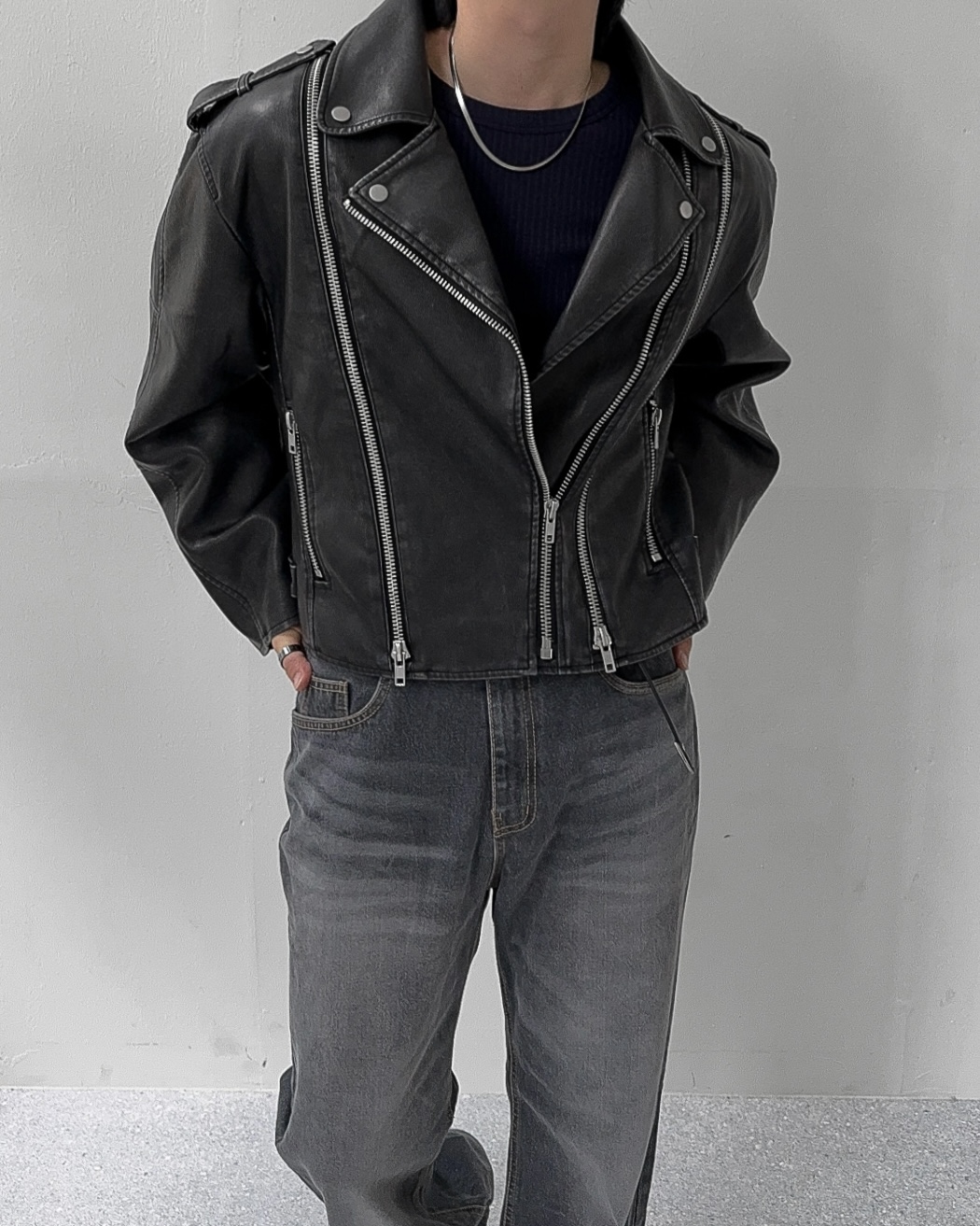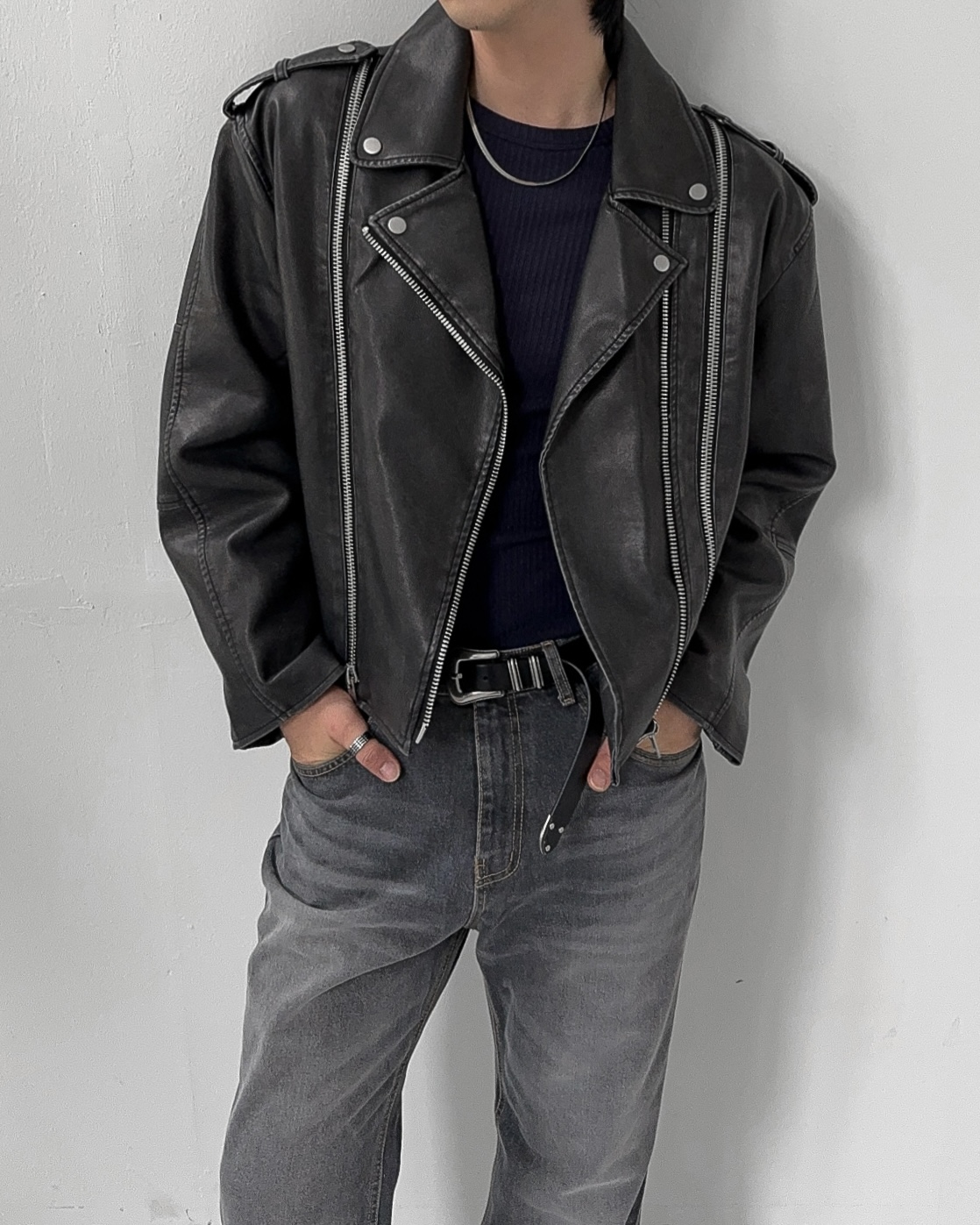 -프리미엄 레더 원단으로 제작된 탄탄한 라이더 자켓