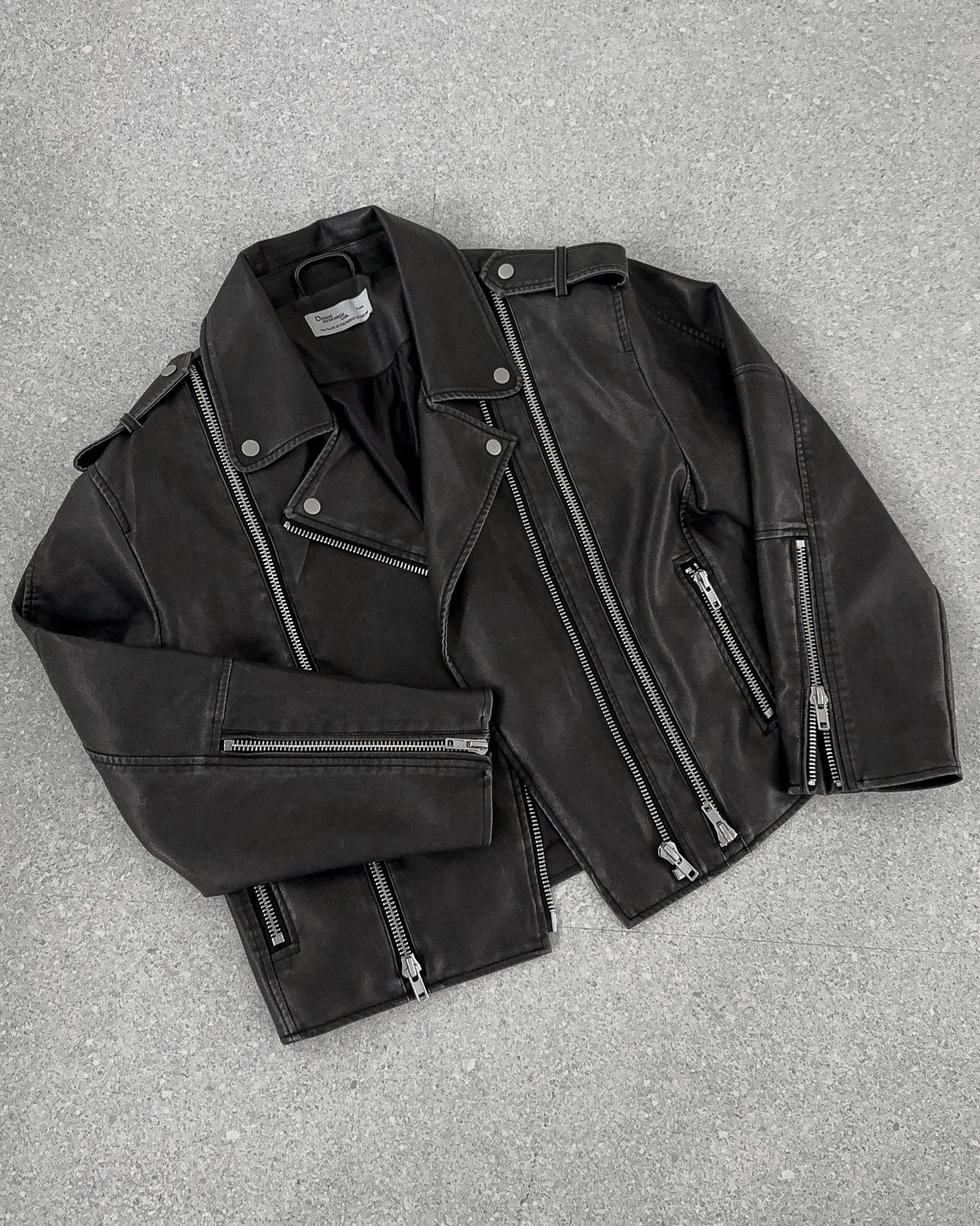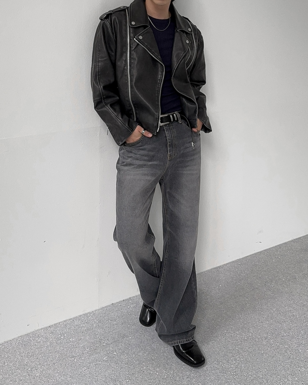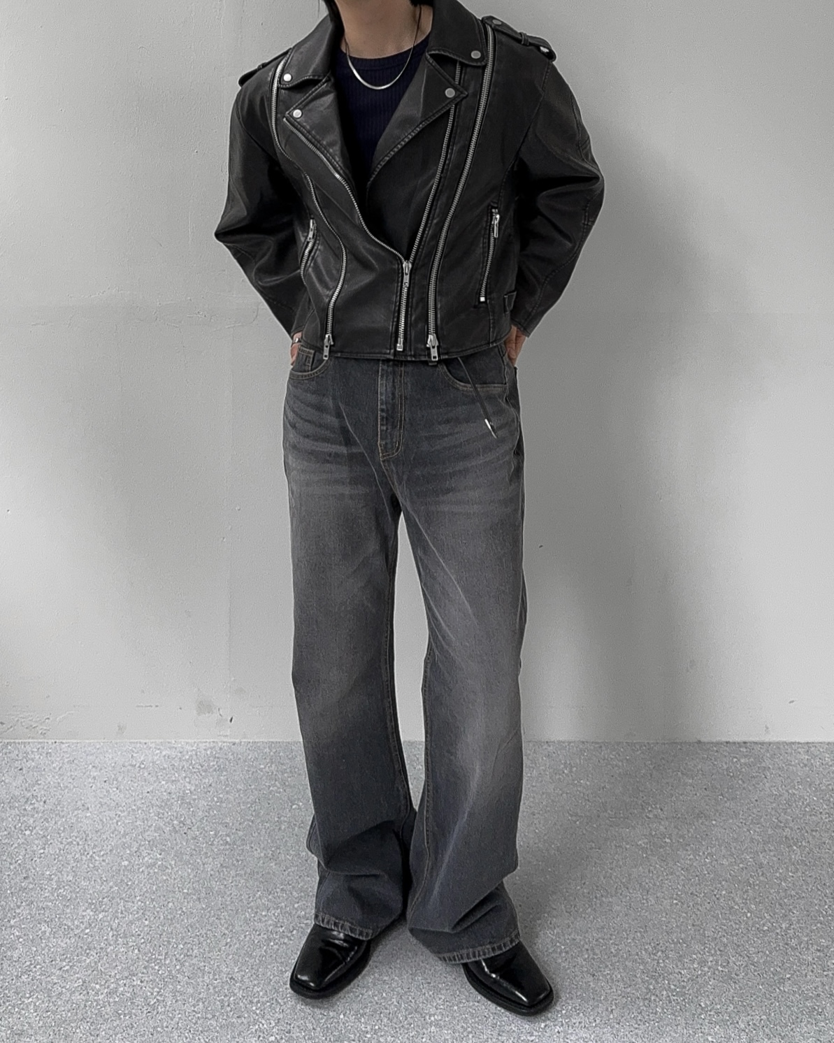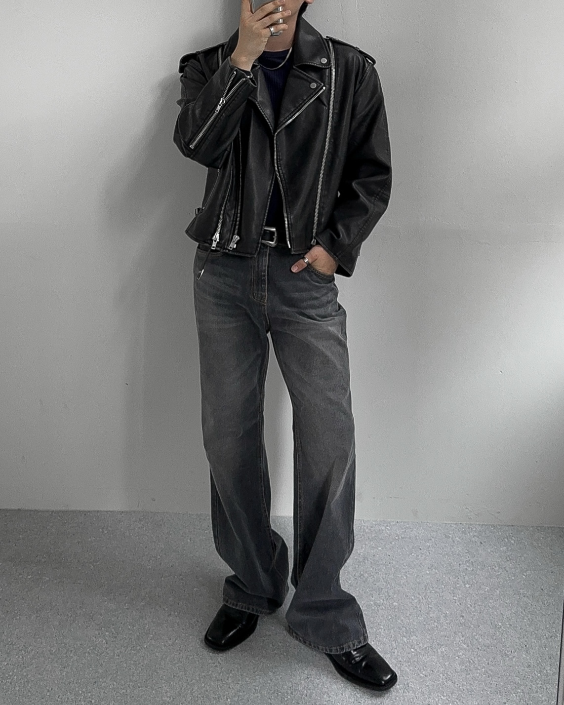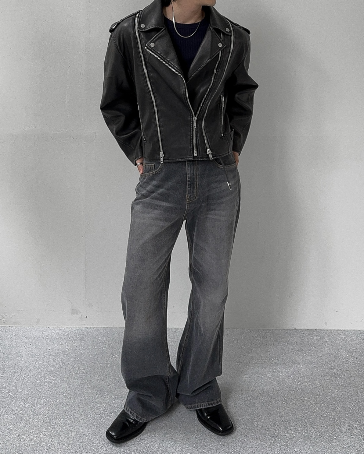 -시크한 워싱감이 더해진 크랙 블랙 컬러로 트랜디한 텍스처