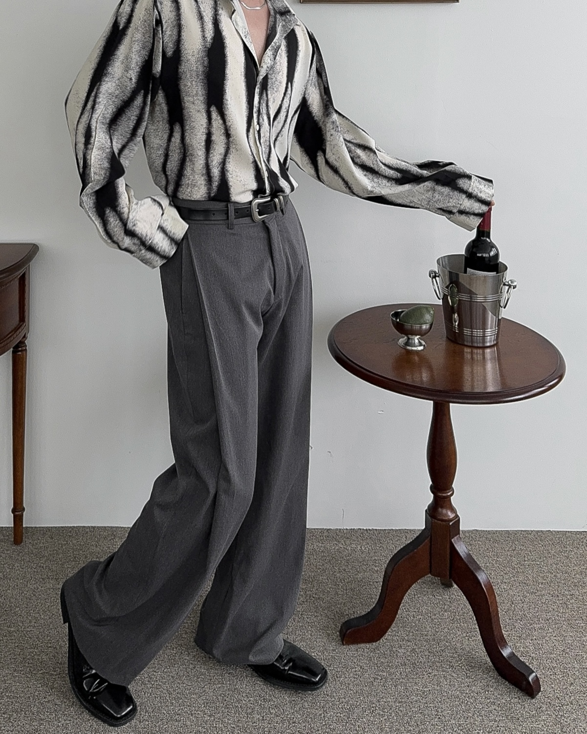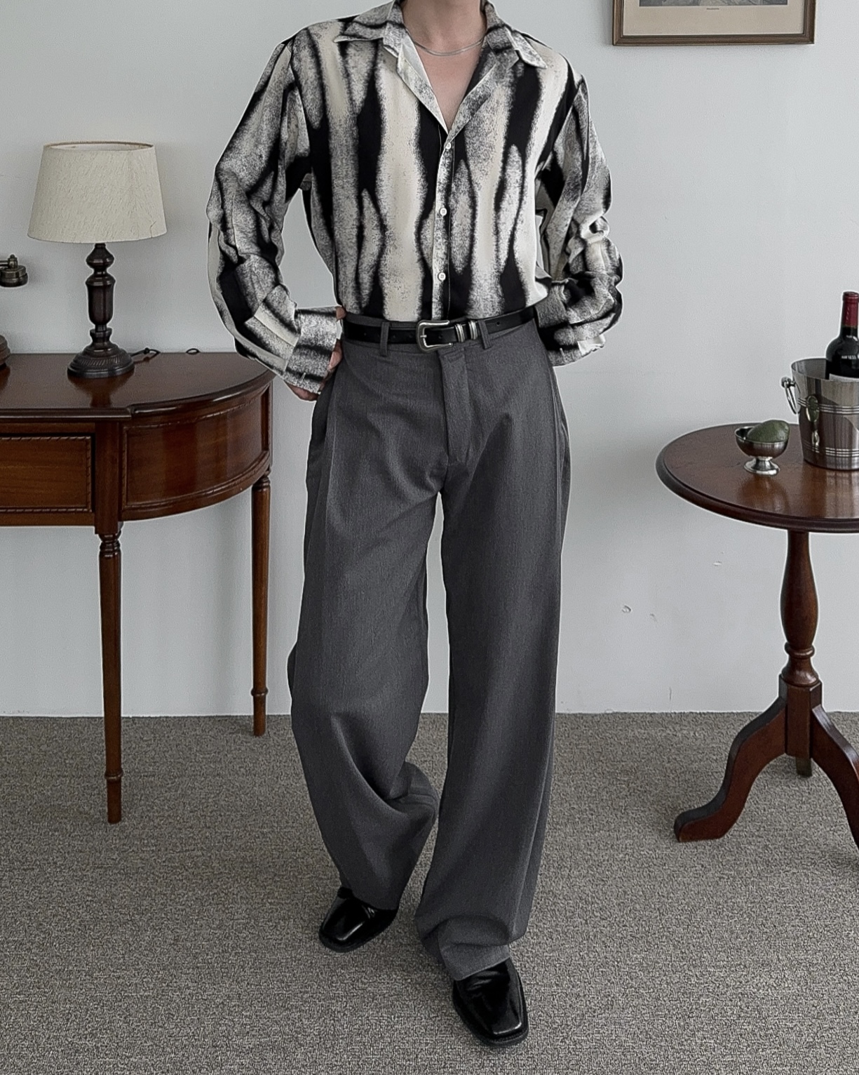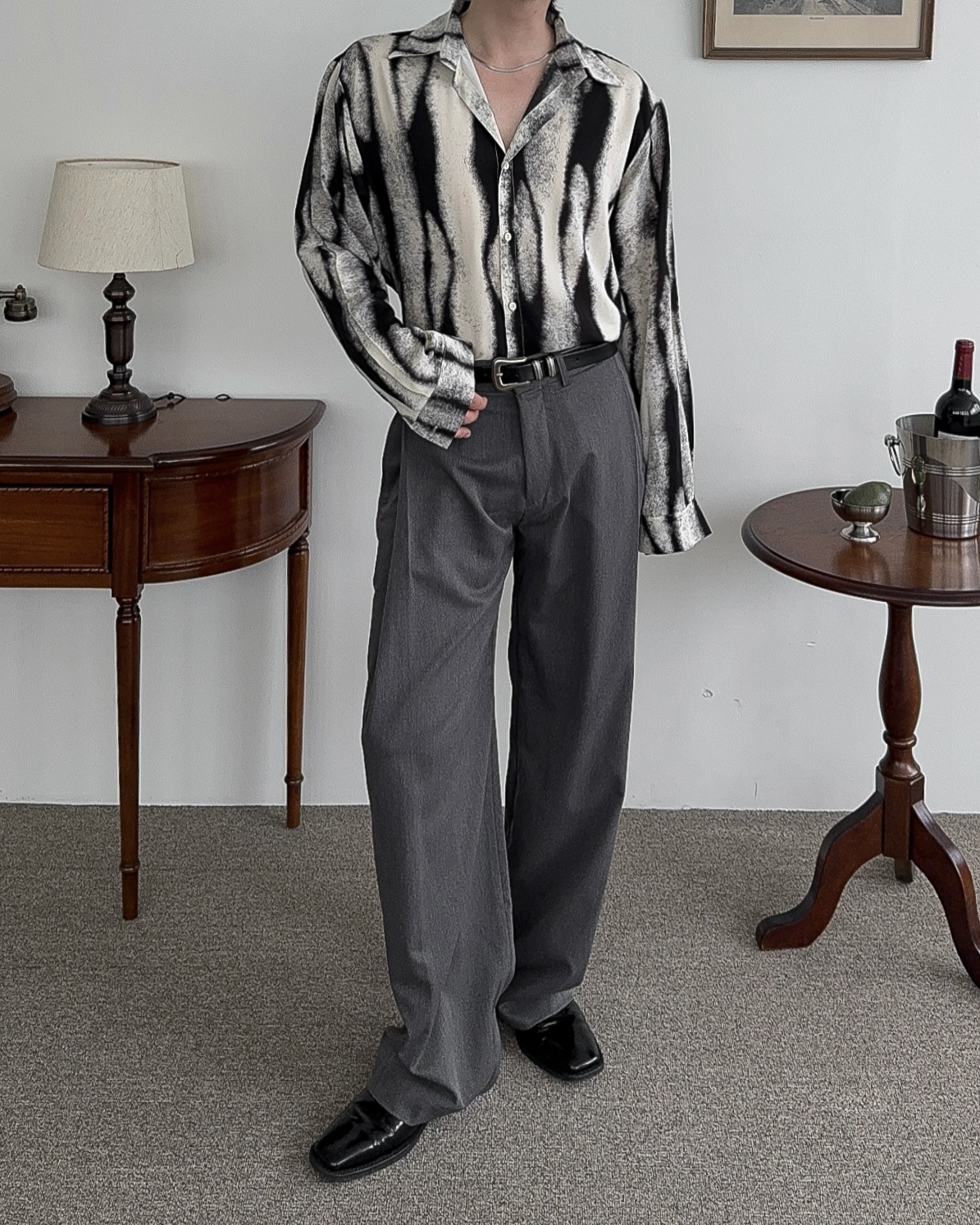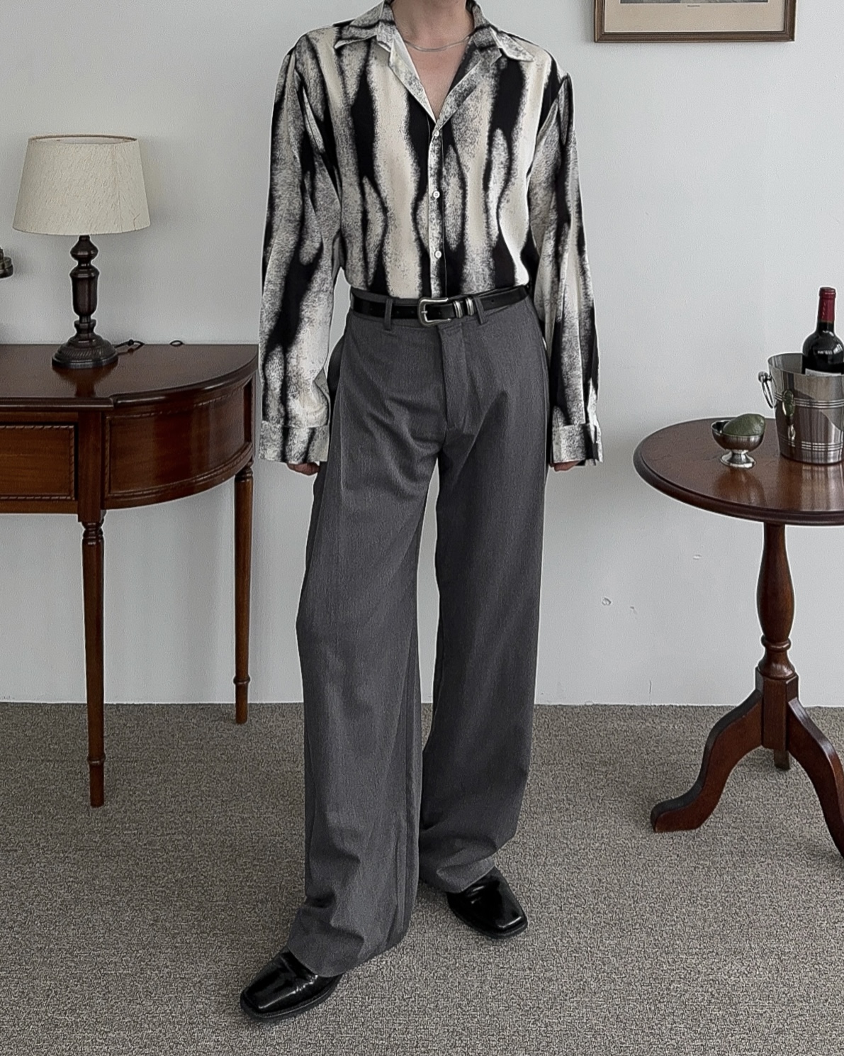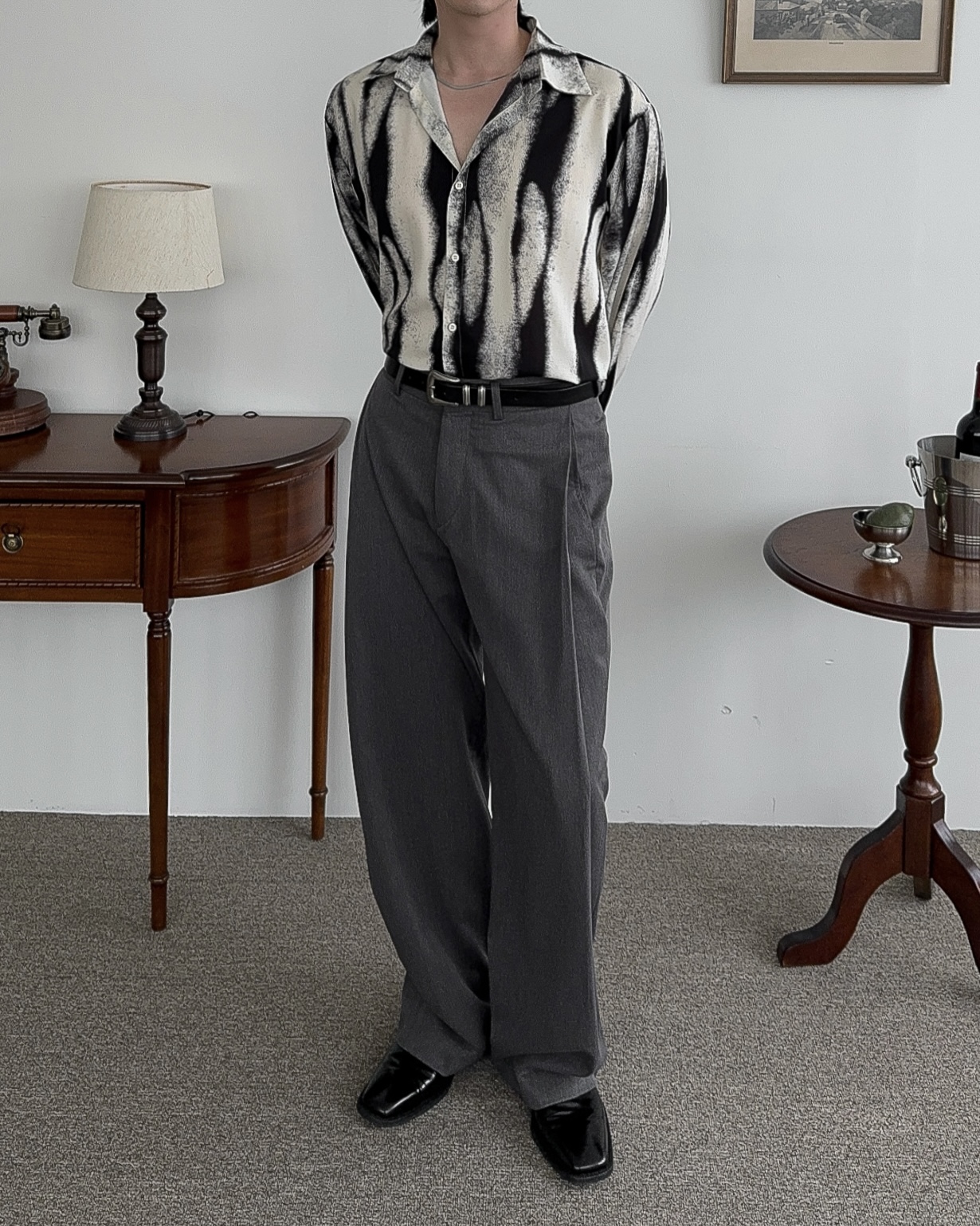 -레이온 혼방으로 무게감을 잡아주어 촤르르 떨어지는 핏감을 더해주는 원단