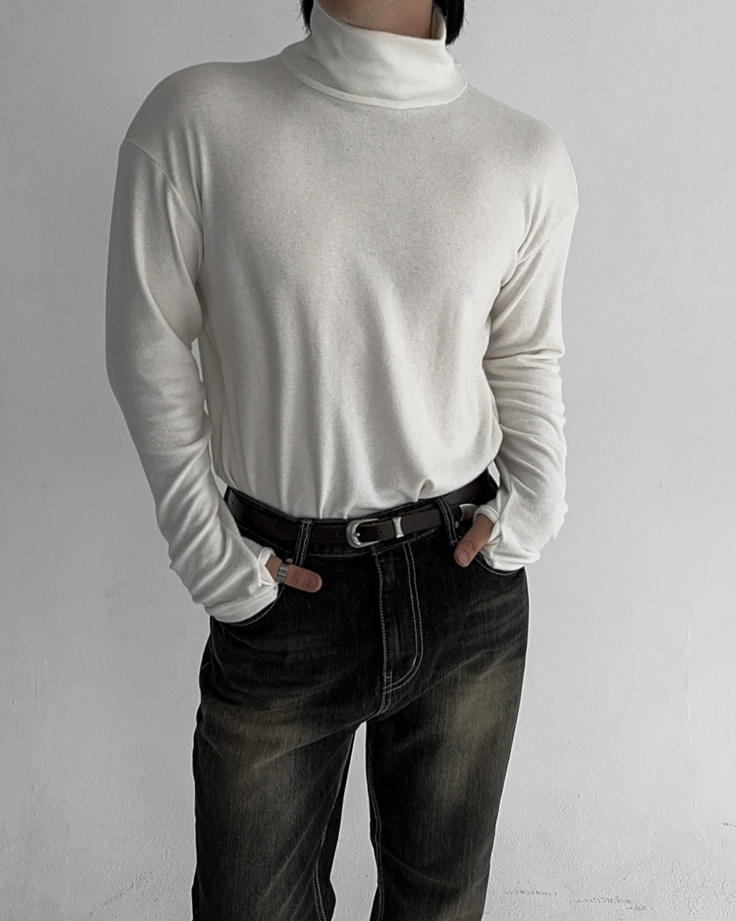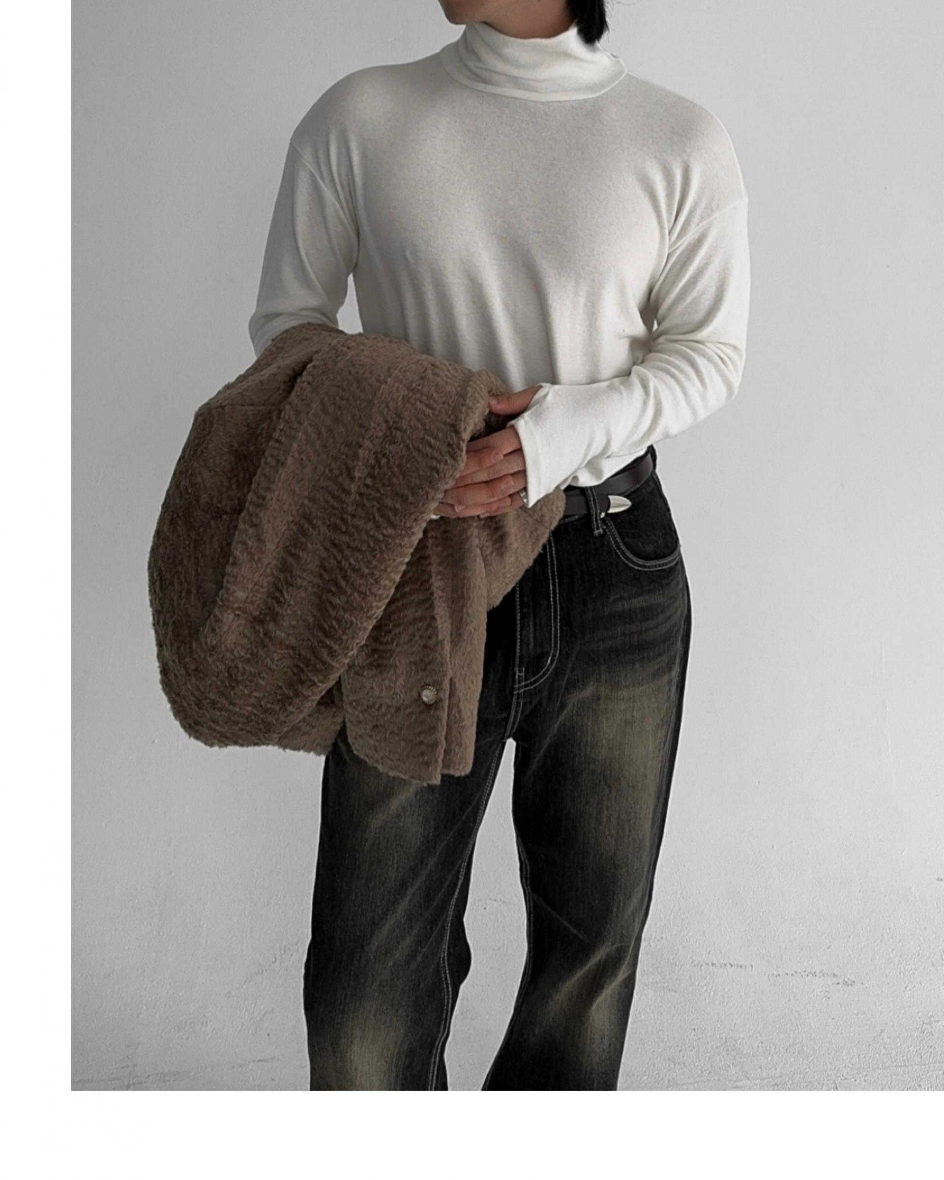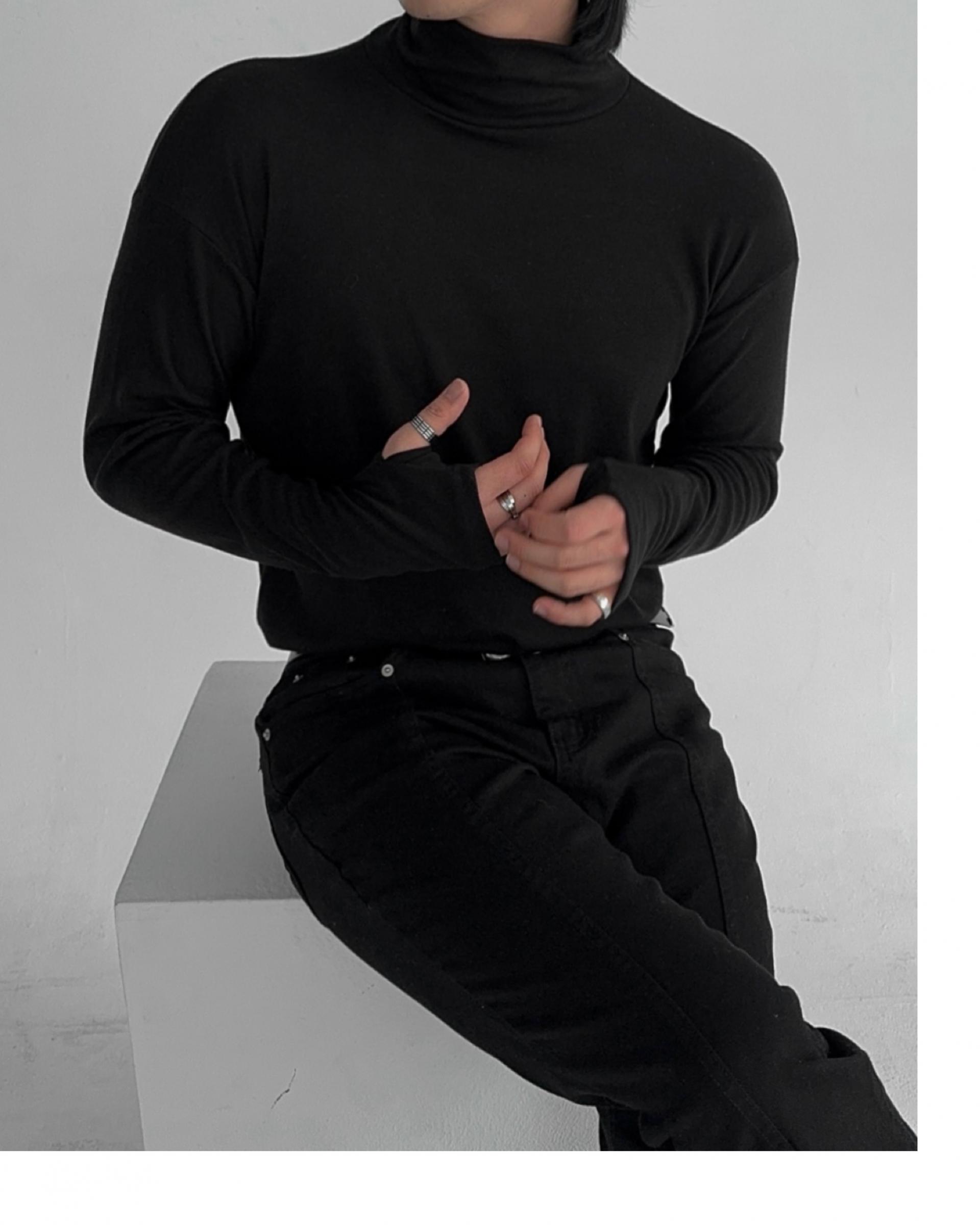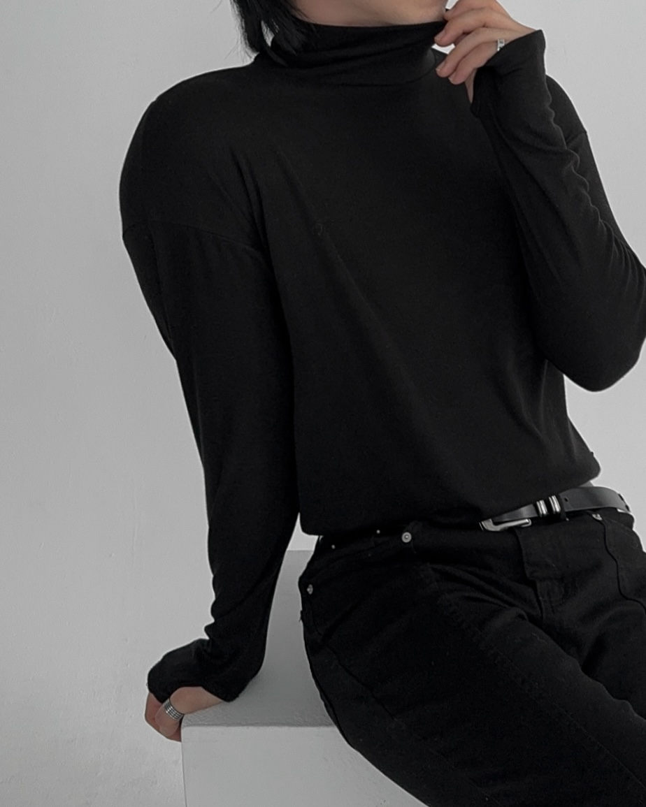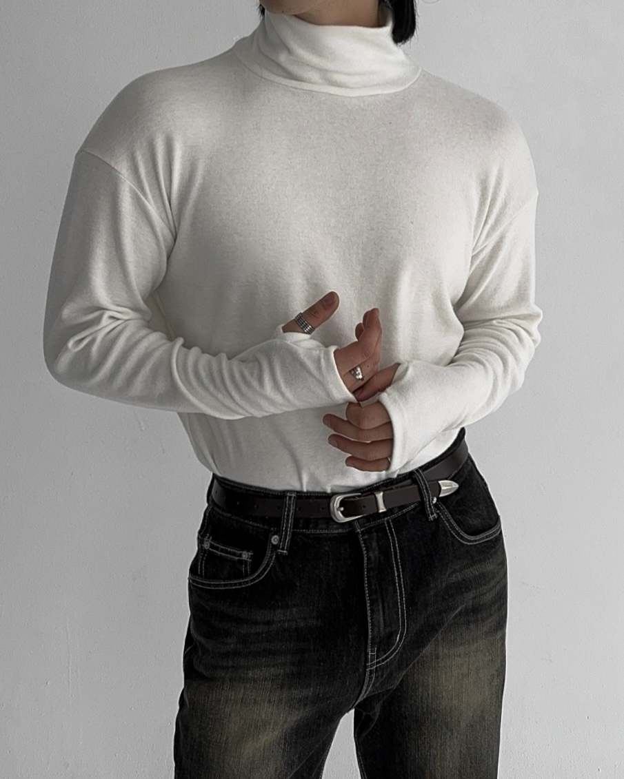 -부드러운 핸드워머 목폴라 티셔츠