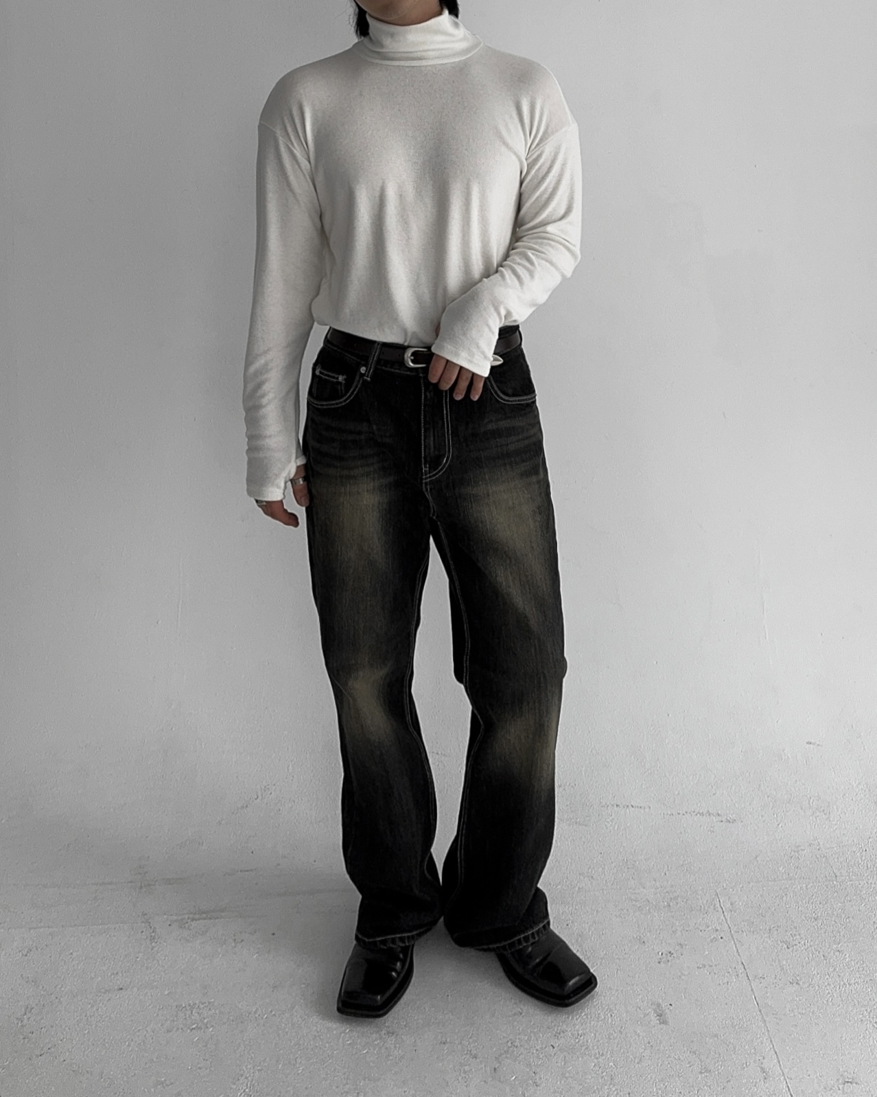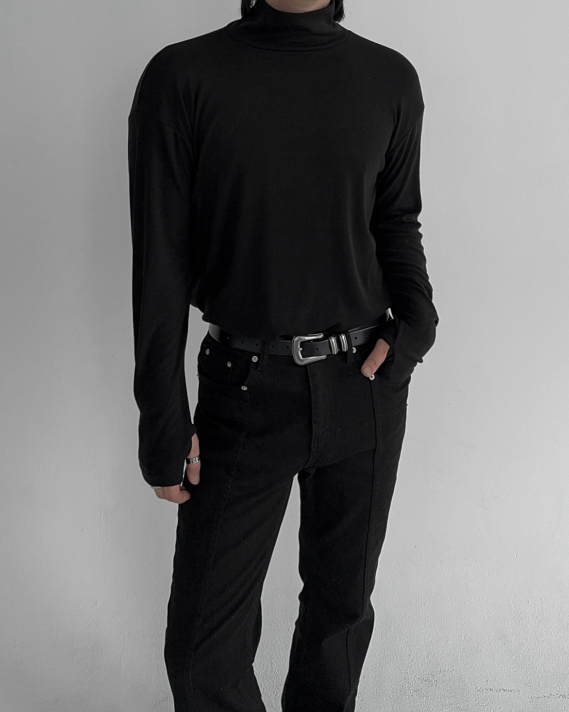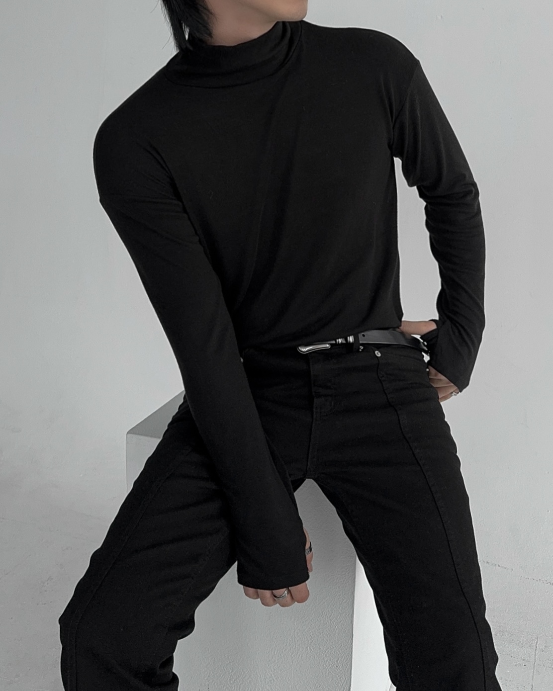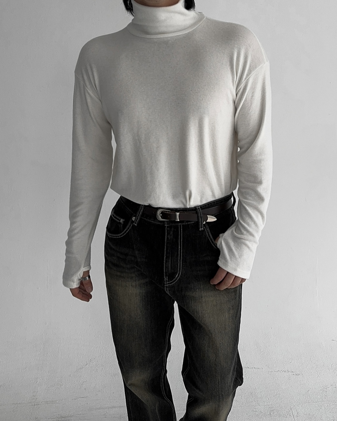 -부드러운 핸드워머 목폴라 티셔츠