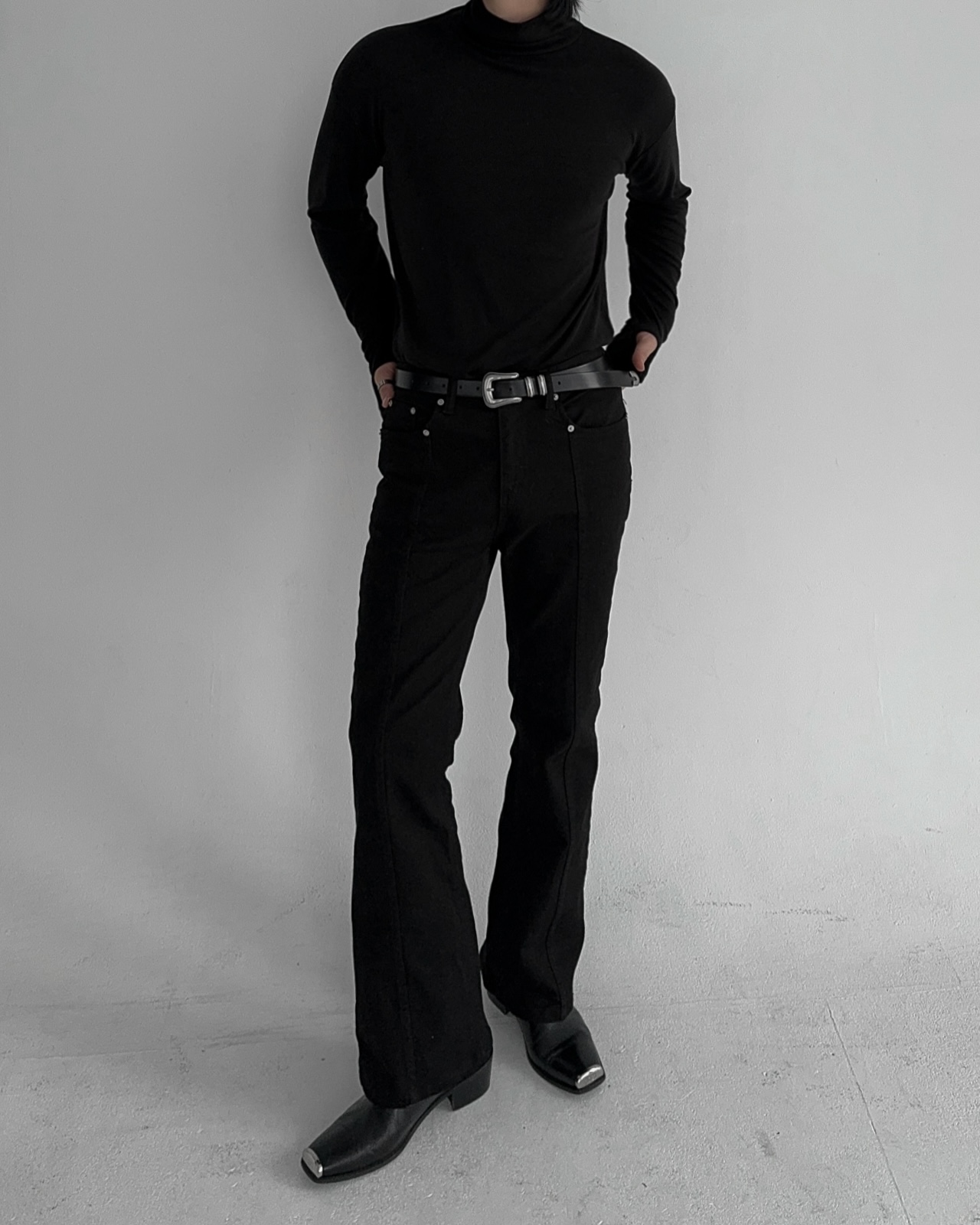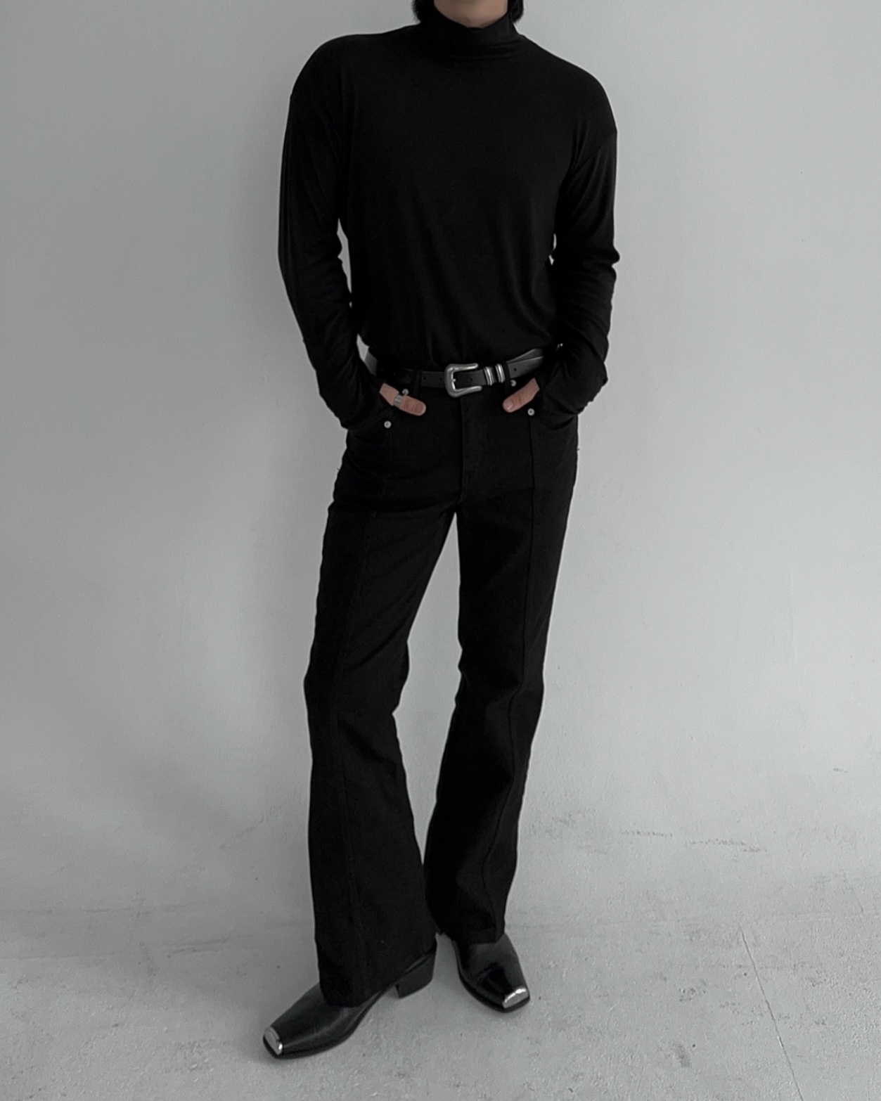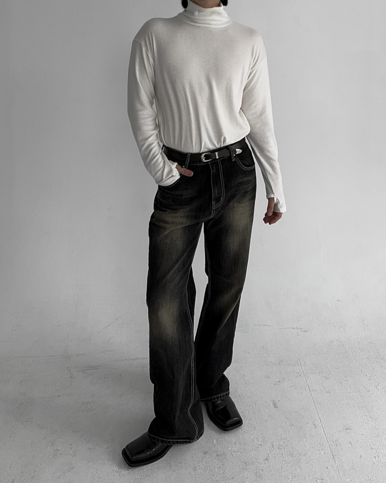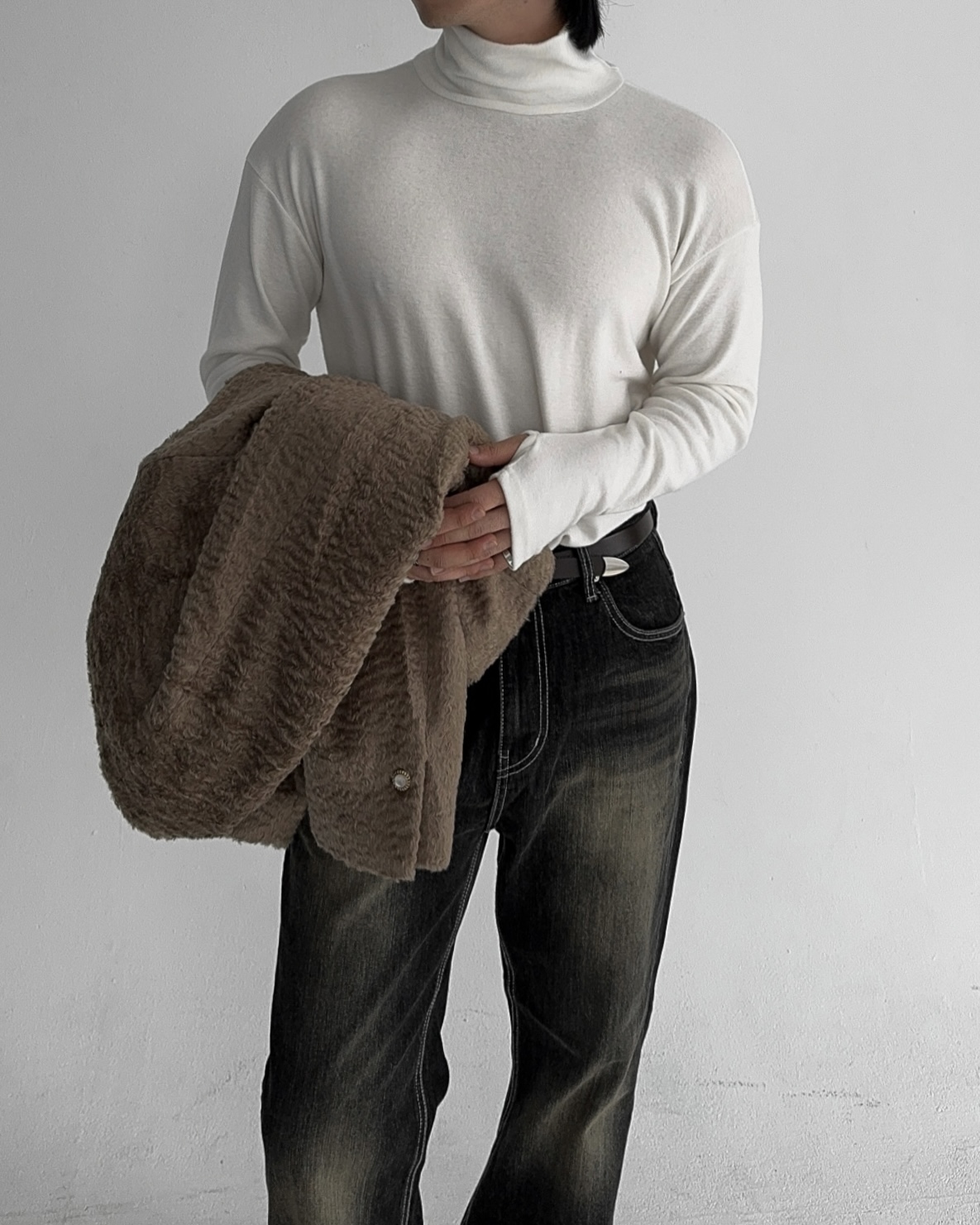 -부드러운 핸드워머 목폴라 티셔츠