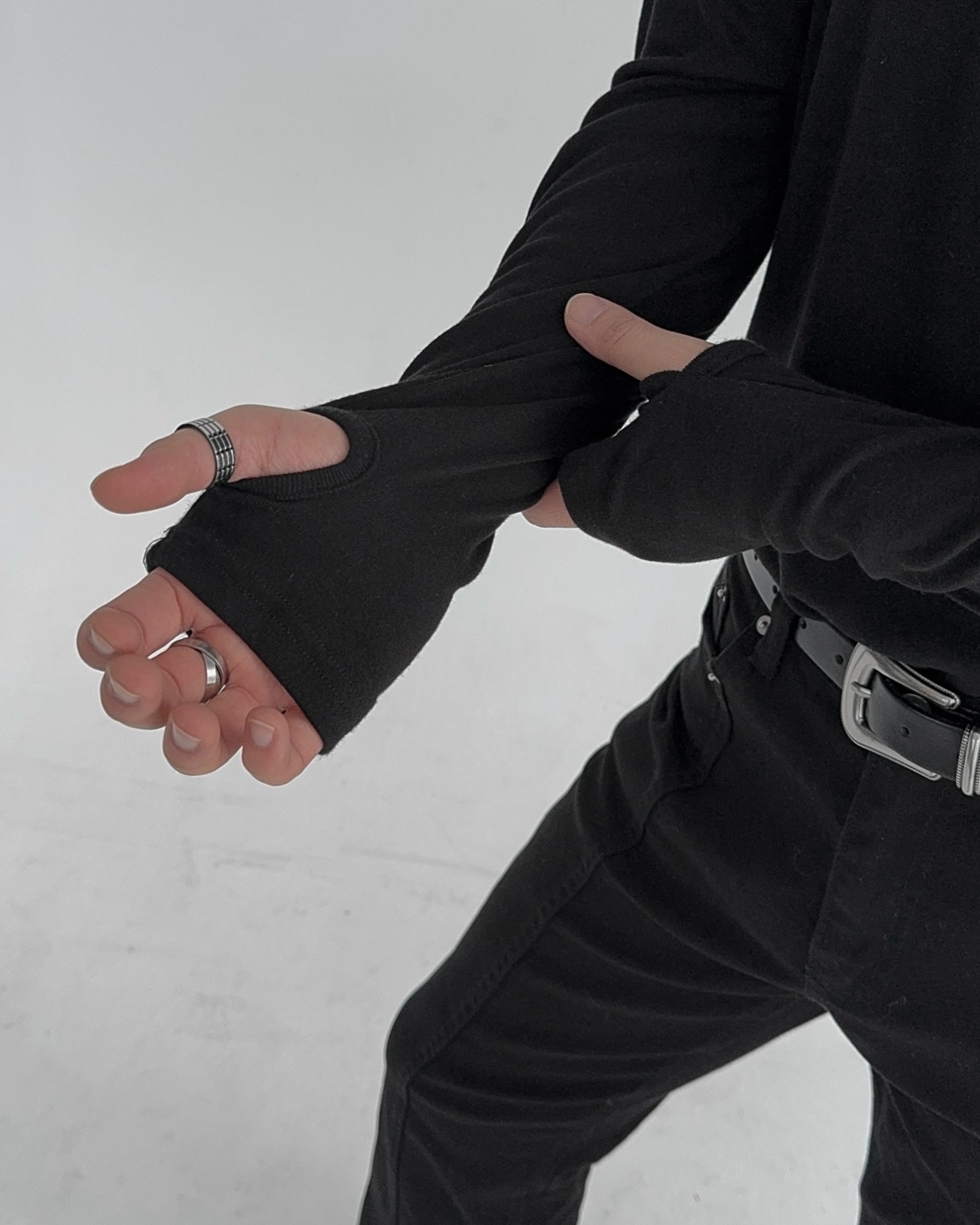 -핸드워머 디자인으로 슬리브한 아웃핏