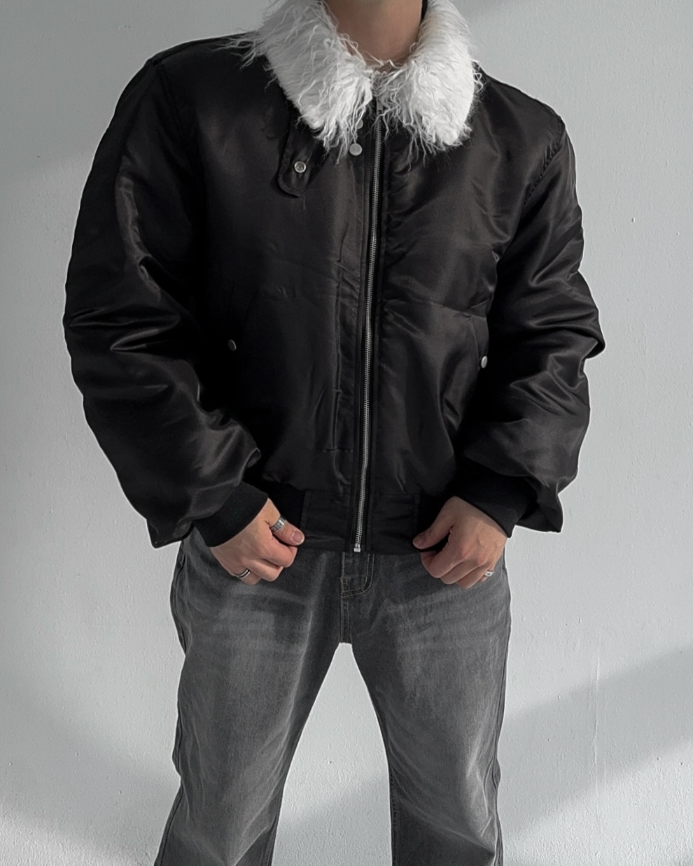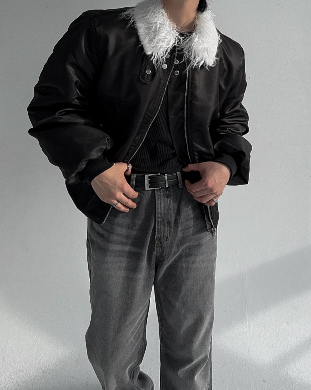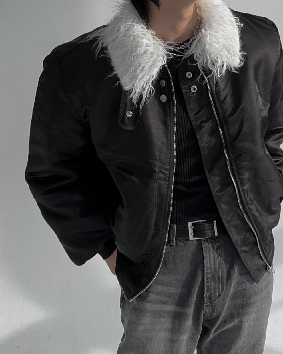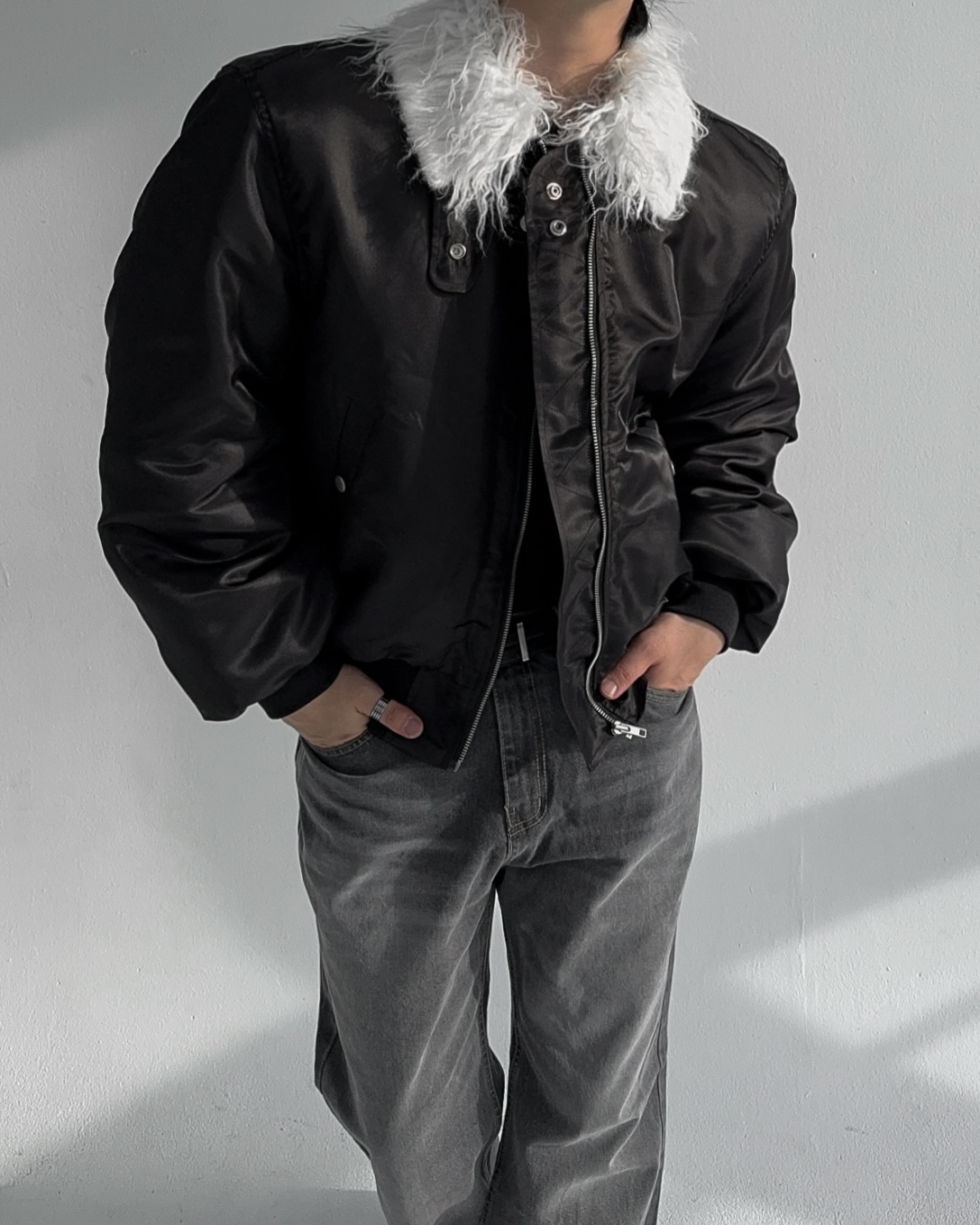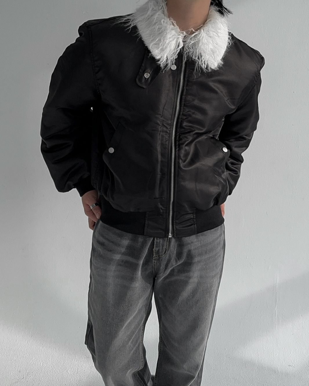 -패딩 대신 스타일링 하기 좋은 헤어리 봄버 점퍼