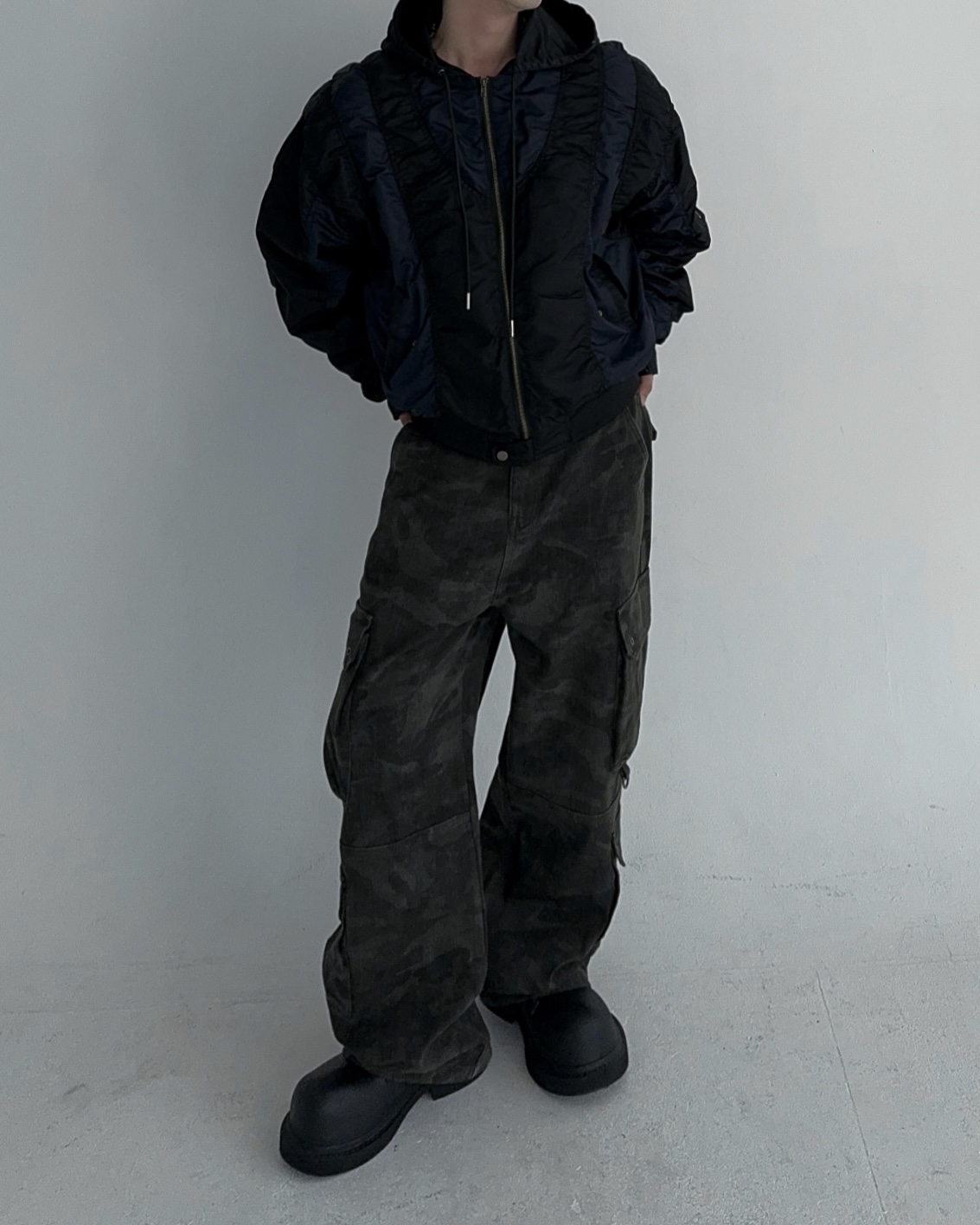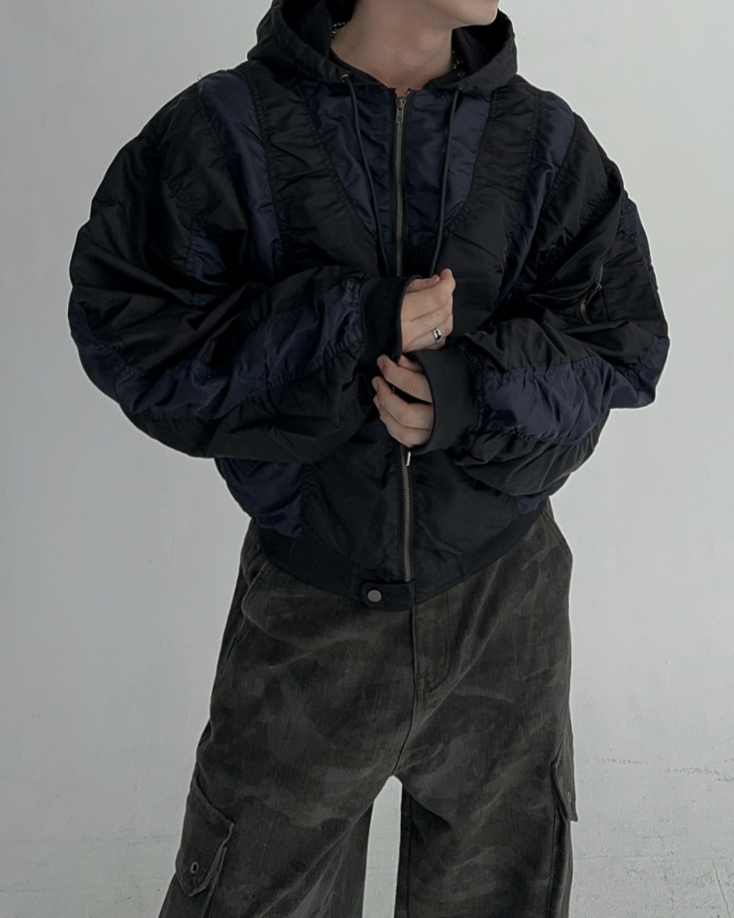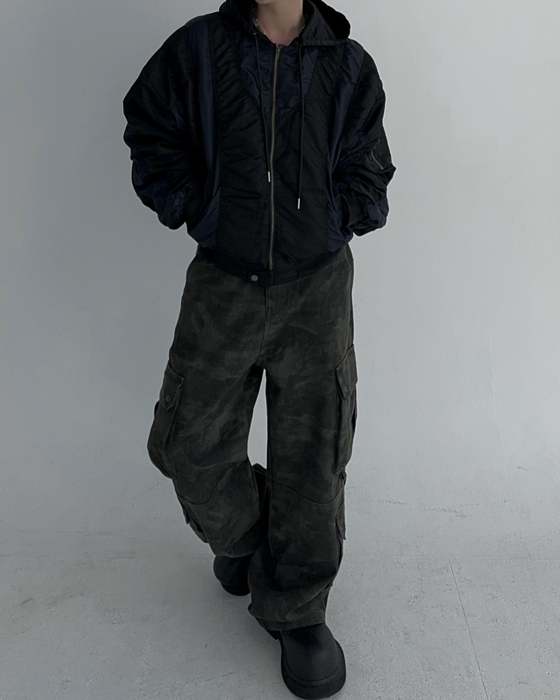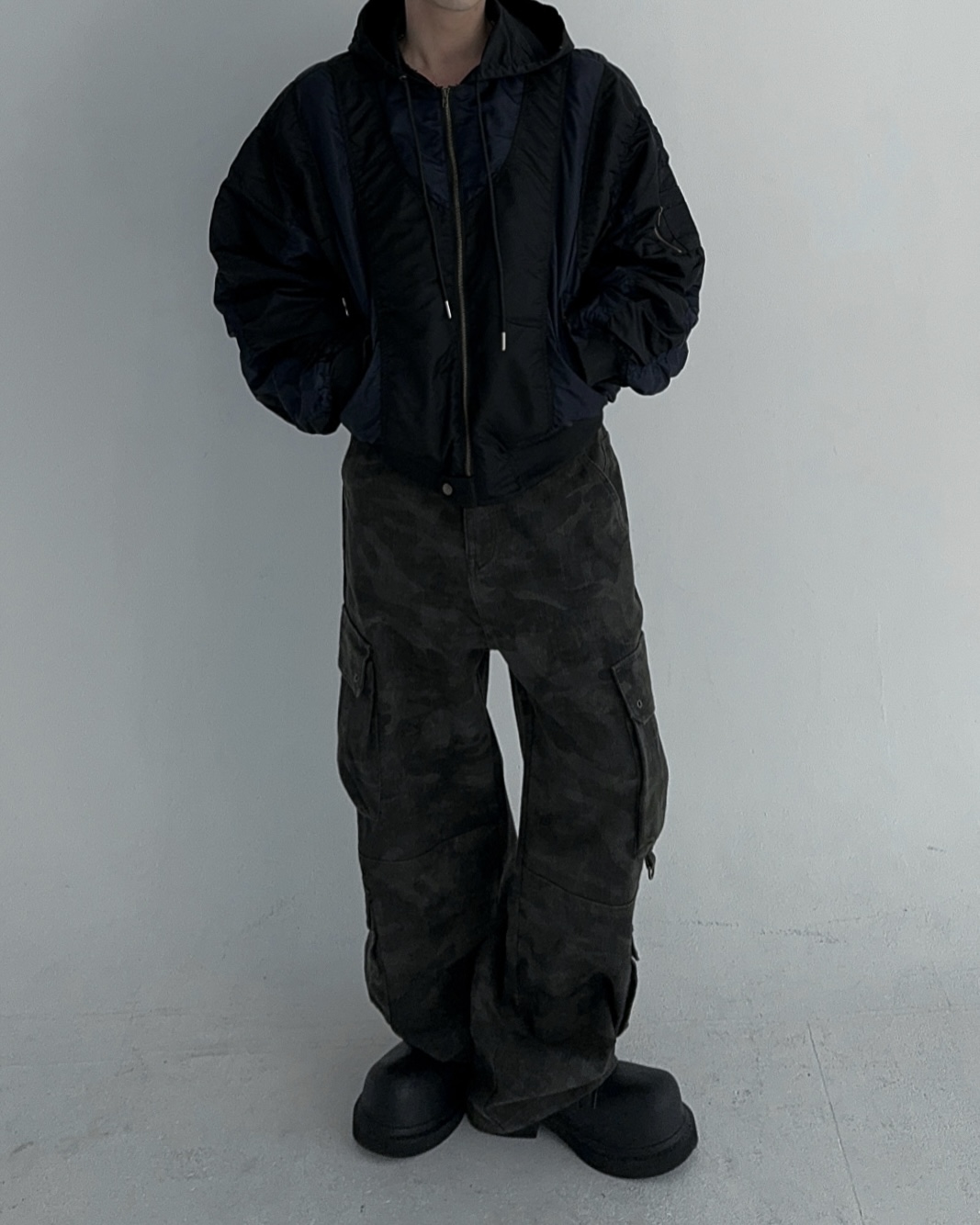 height 176cm weight 73kg / free 사이즈 착용 , 네이비 피팅