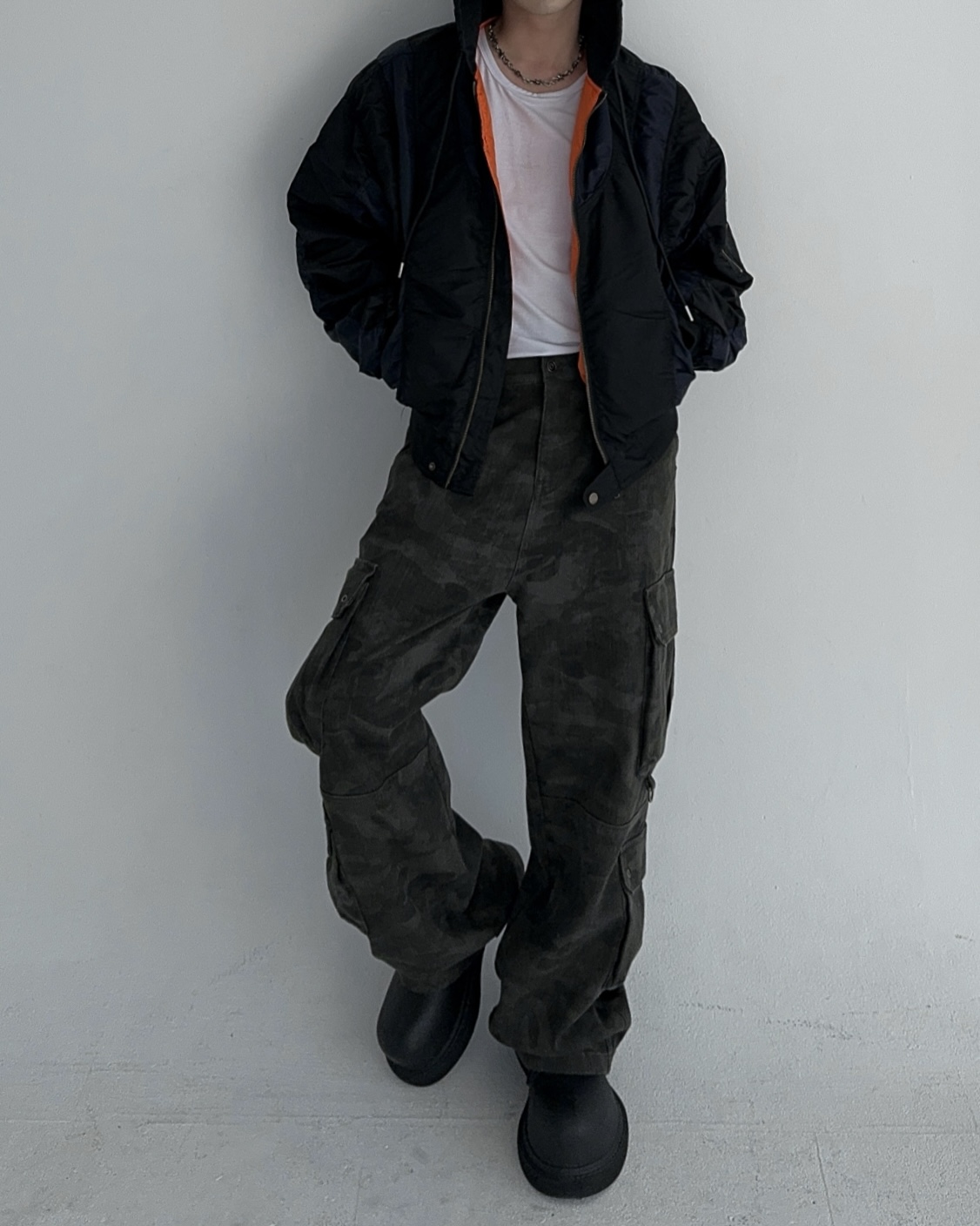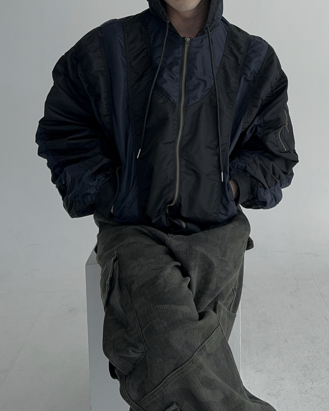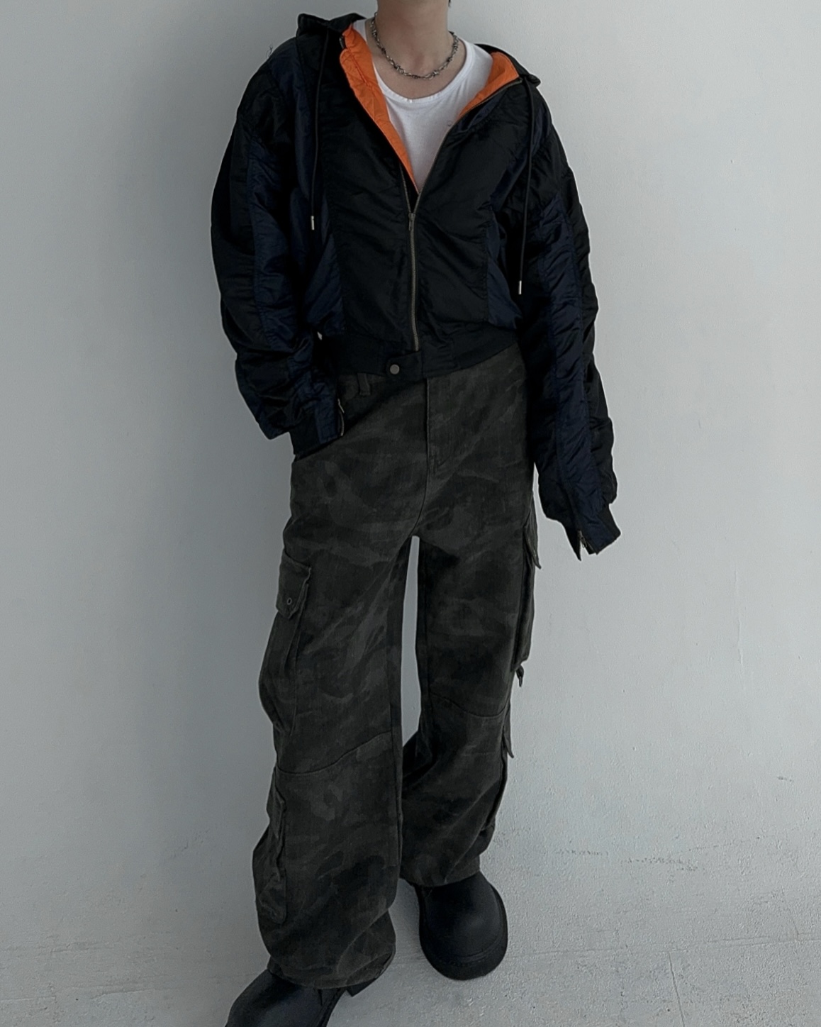 height 176cm weight 73kg / free 사이즈 착용 , 네이비 피팅