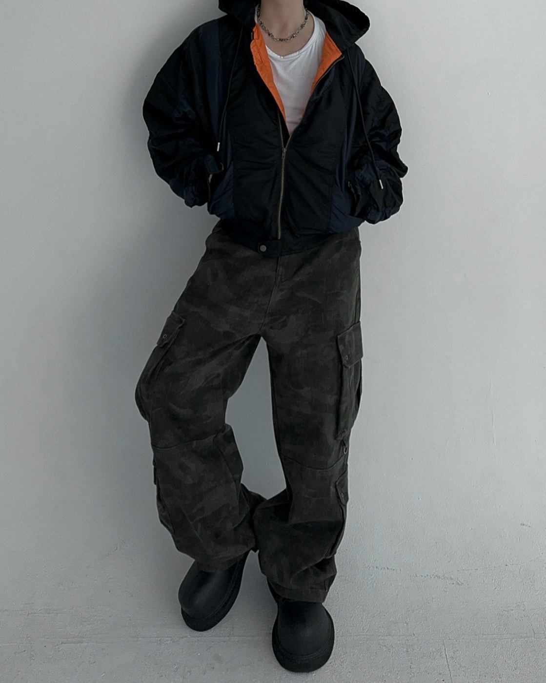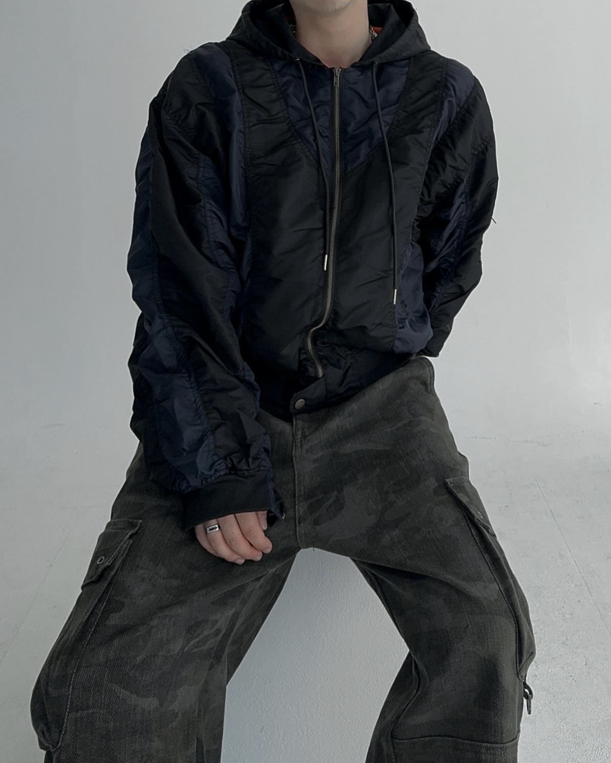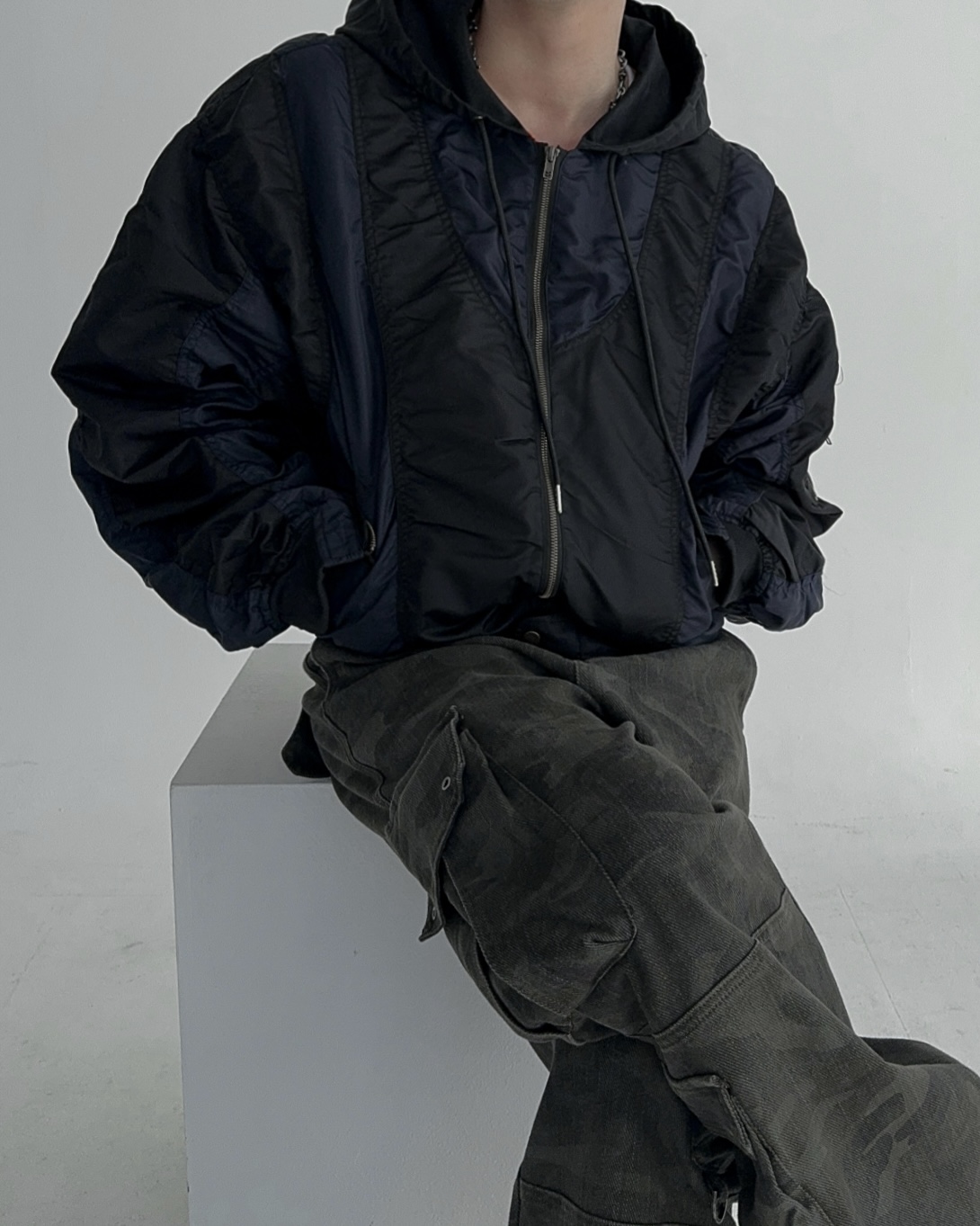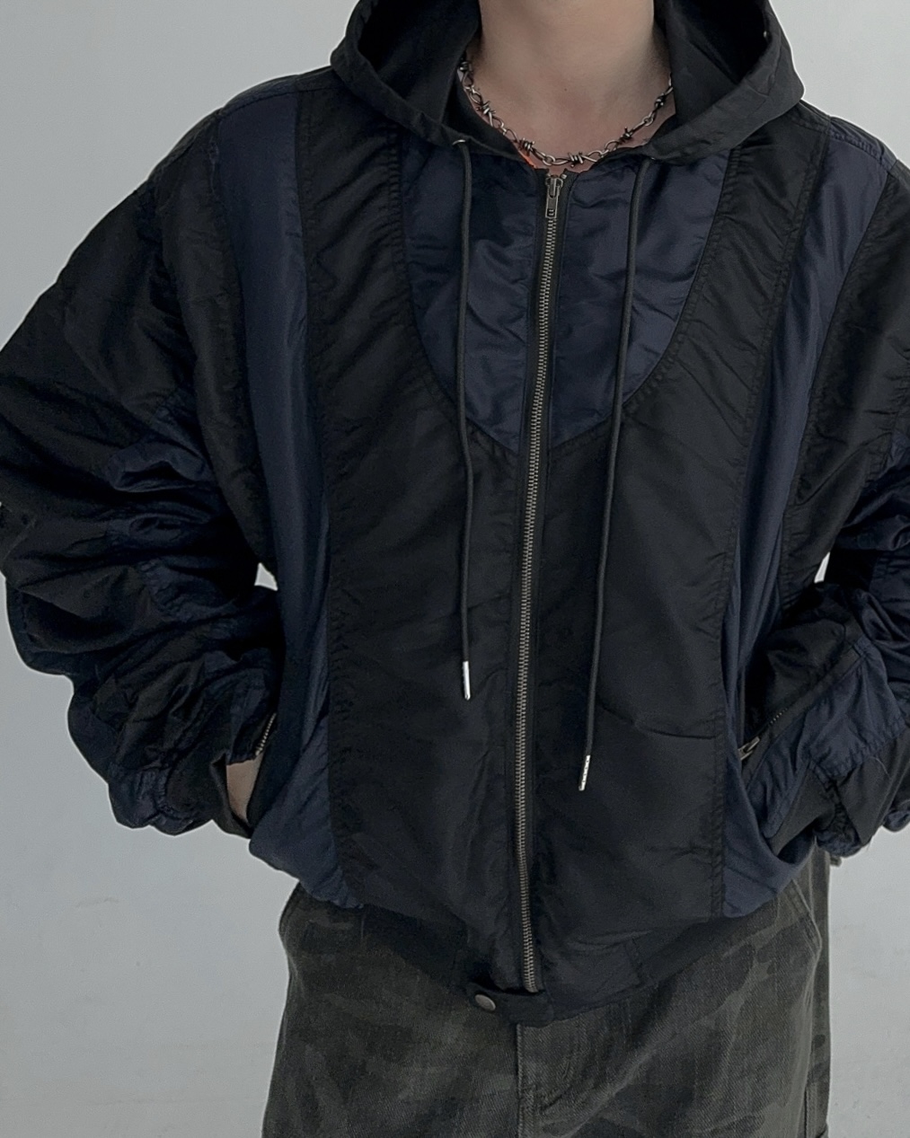 height 176cm weight 73kg / free 사이즈 착용 , 네이비 피팅
