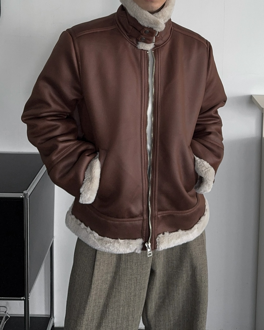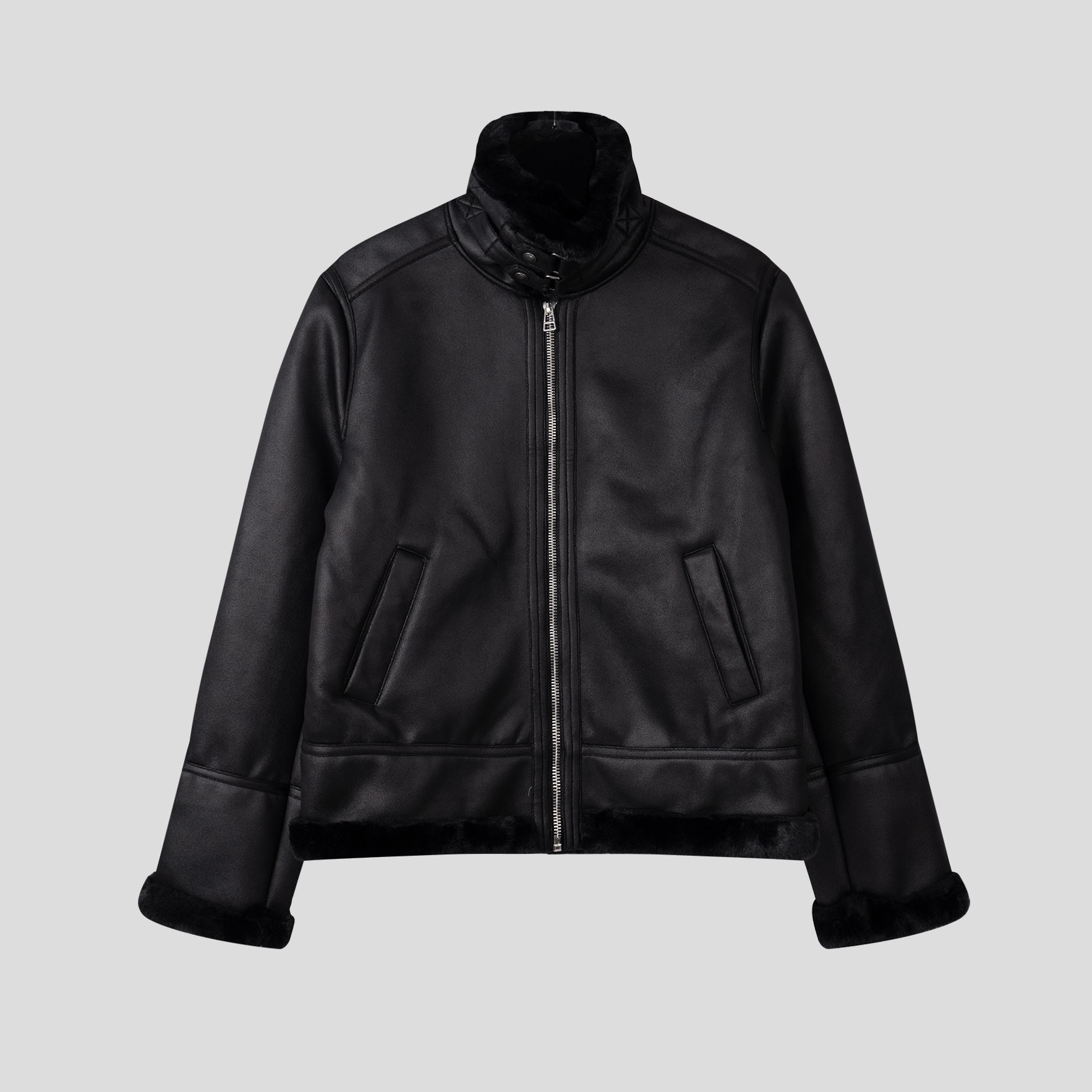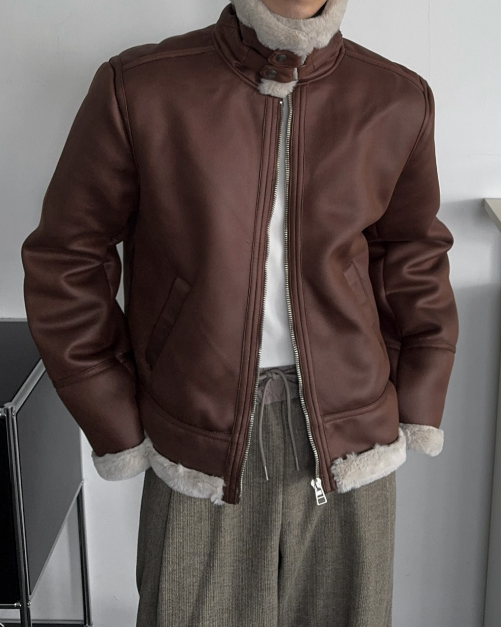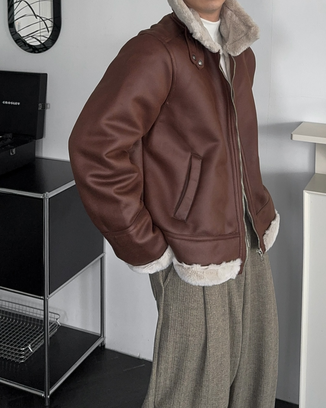 -부드러운 레더 소재로 제작된 무스탕 점퍼