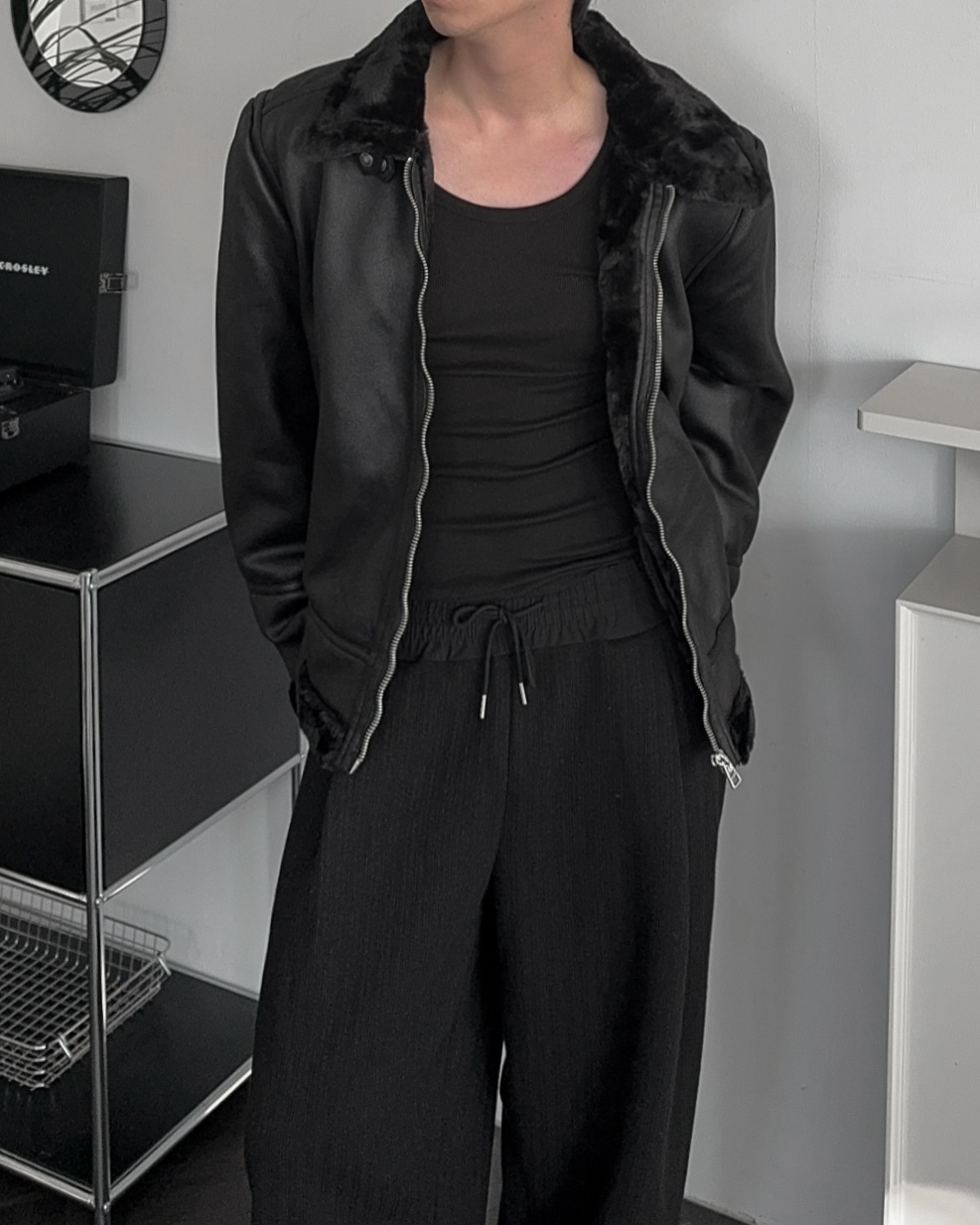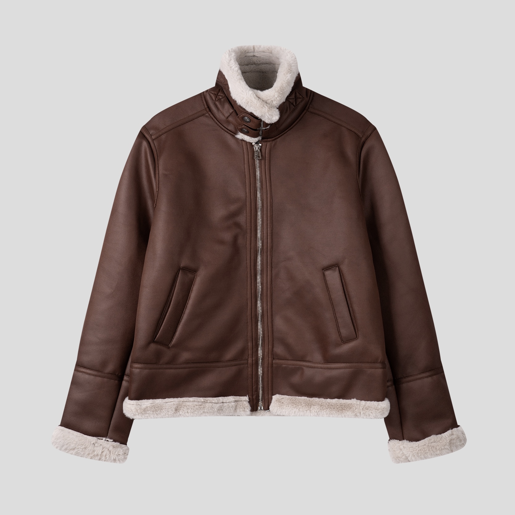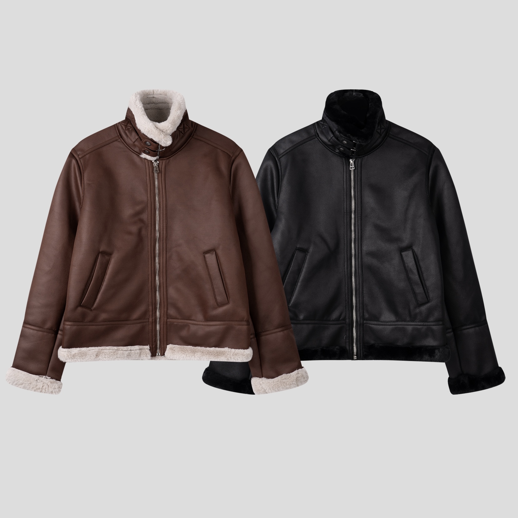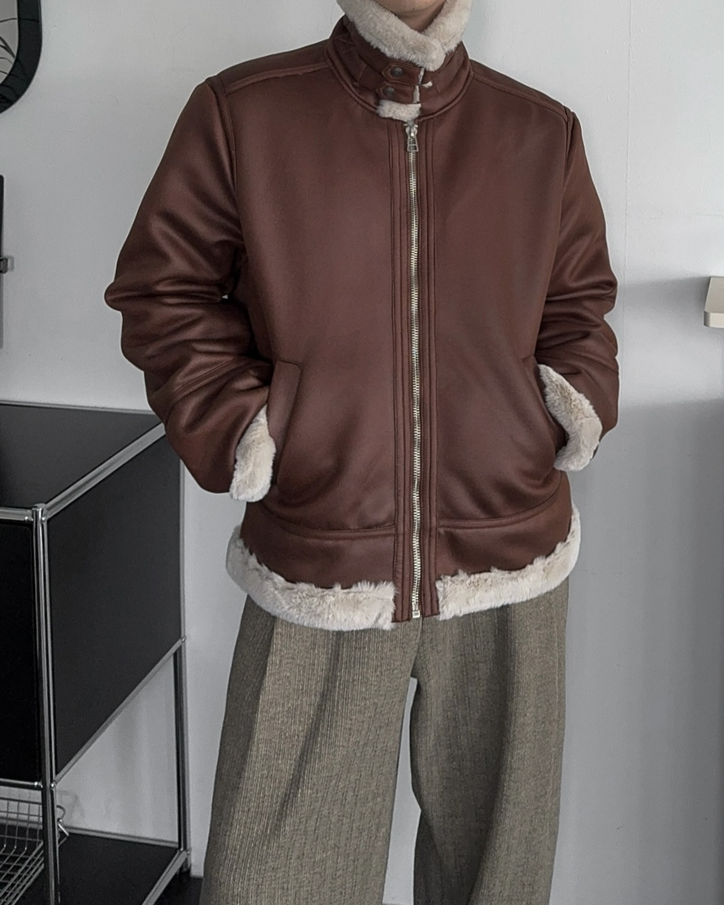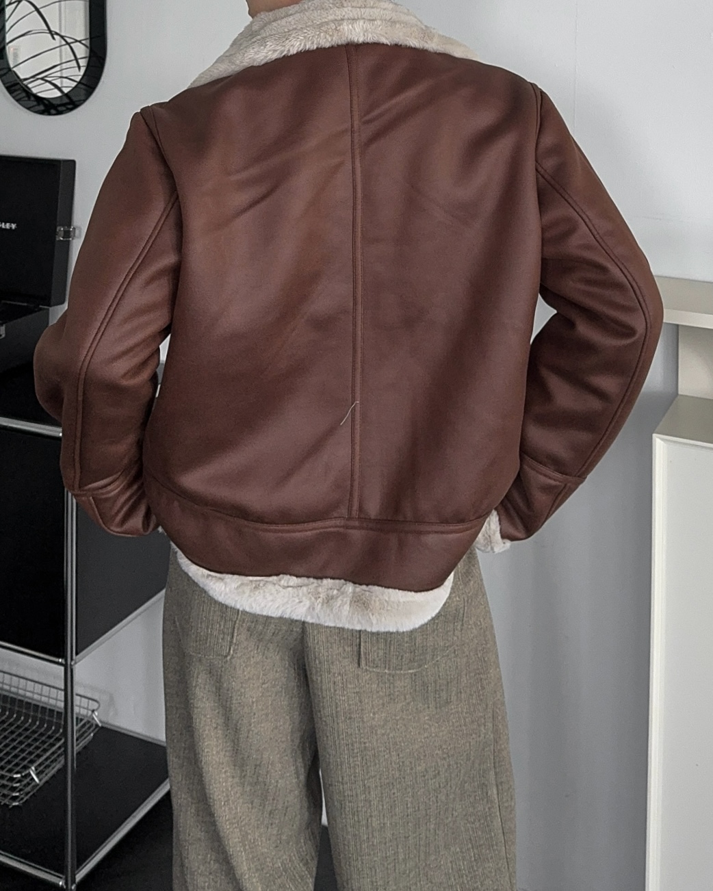 -부드러운 레더 소재로 제작된 무스탕 점퍼