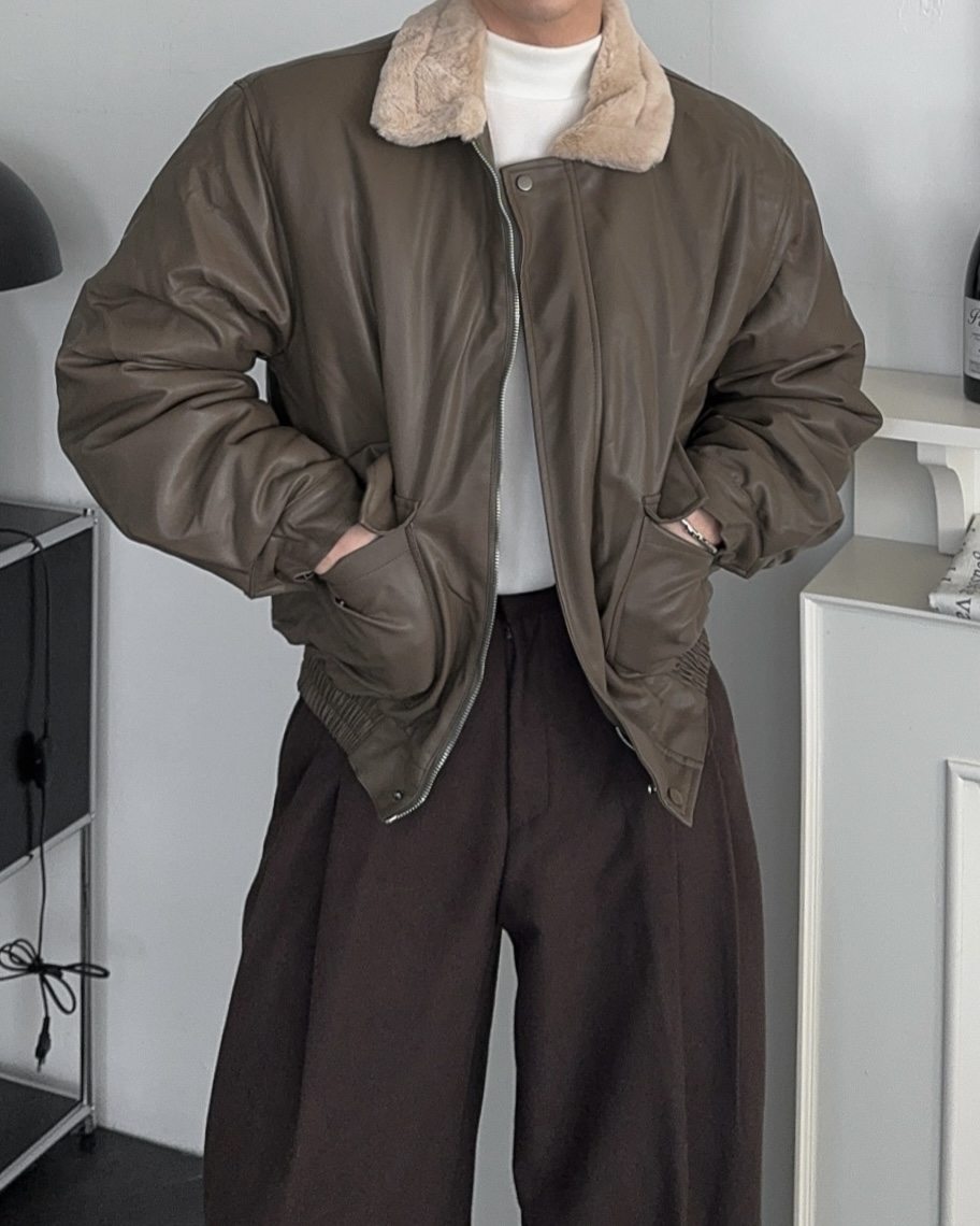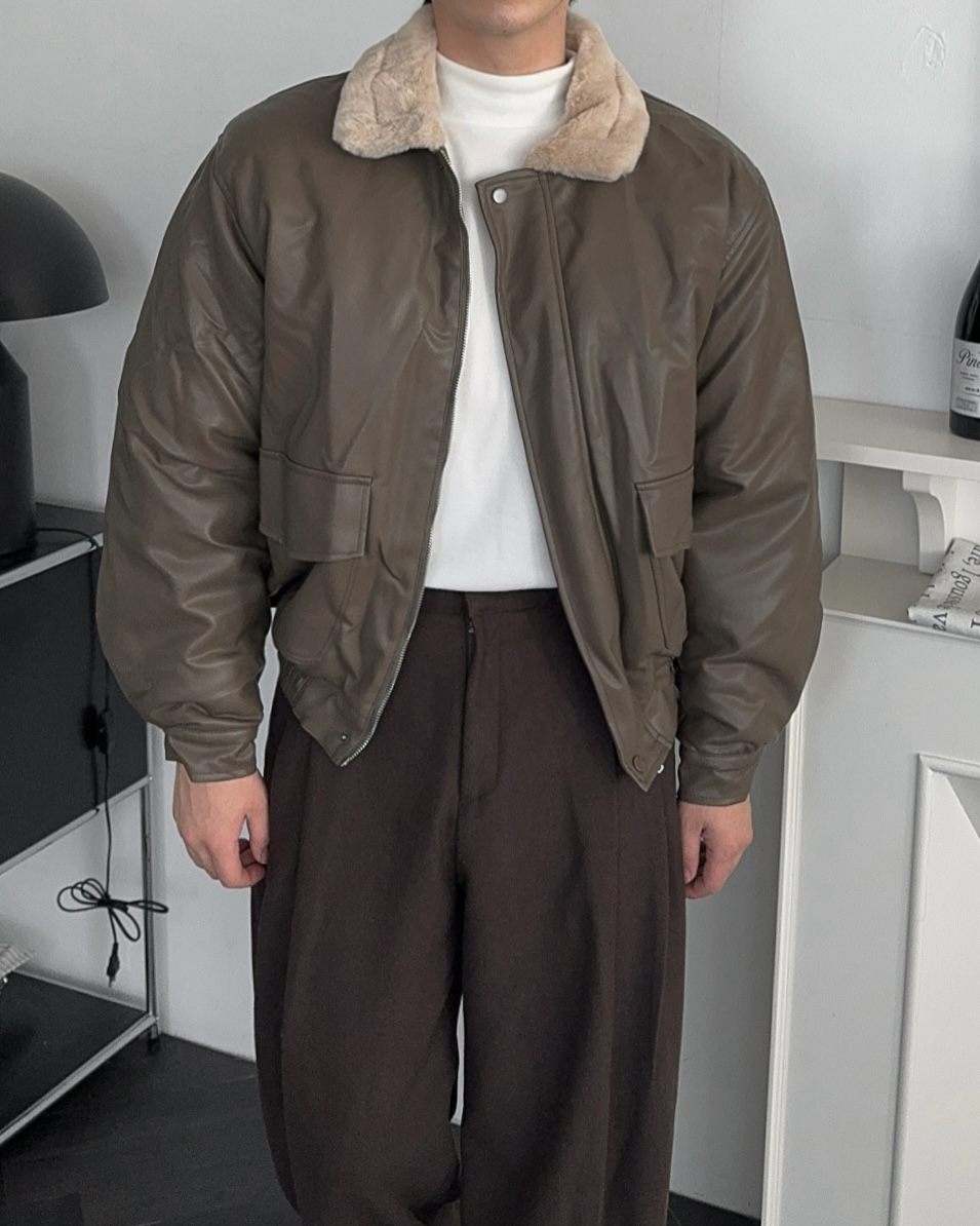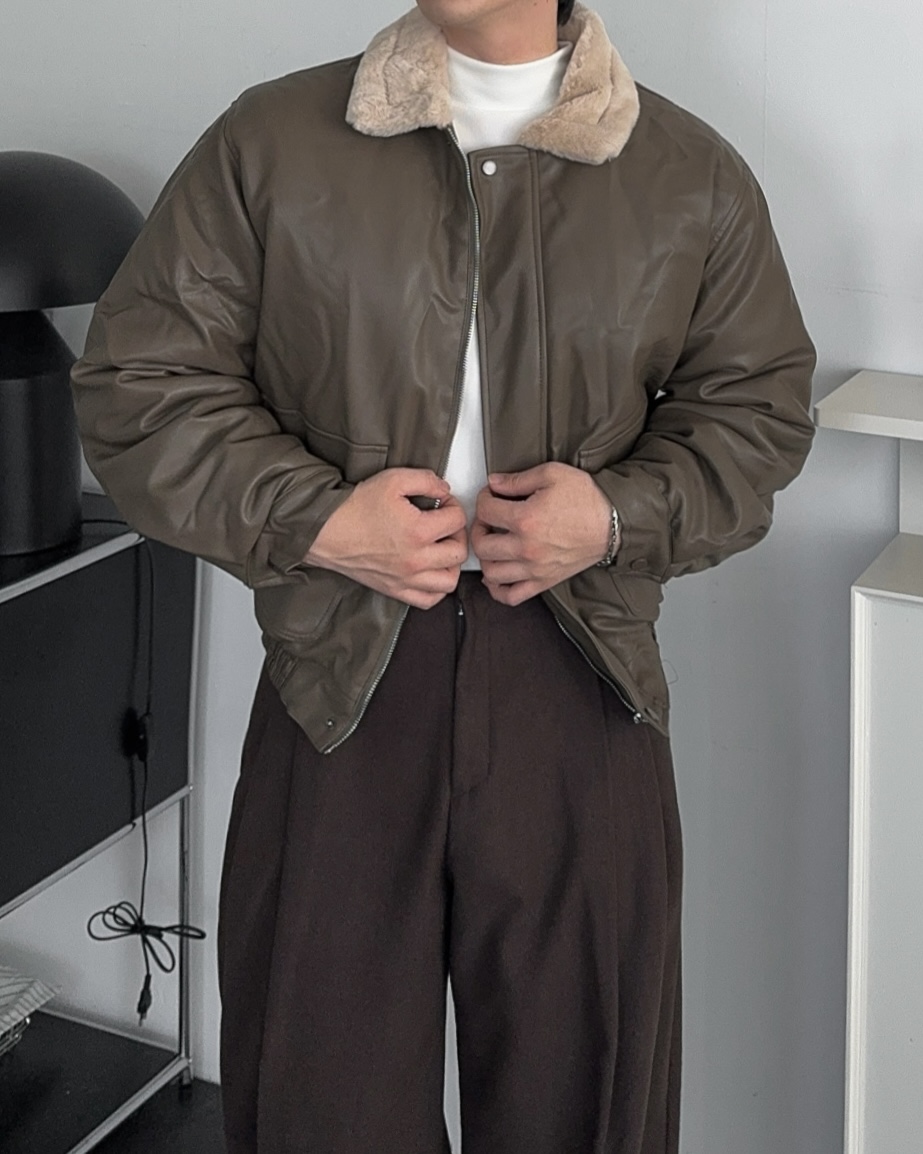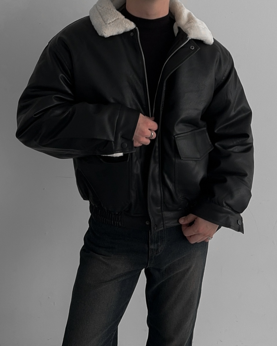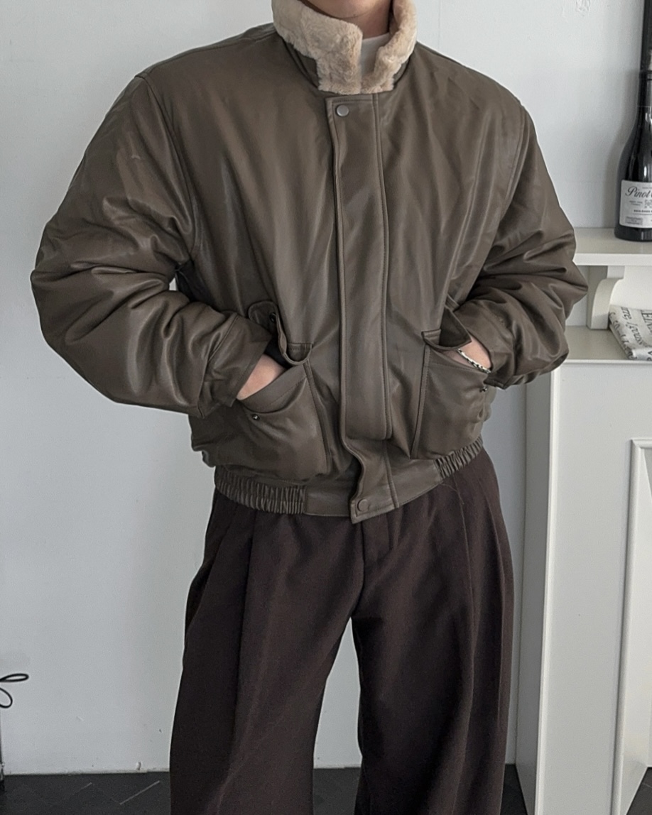 -무스탕 디자인의 밍크 블루종 점퍼