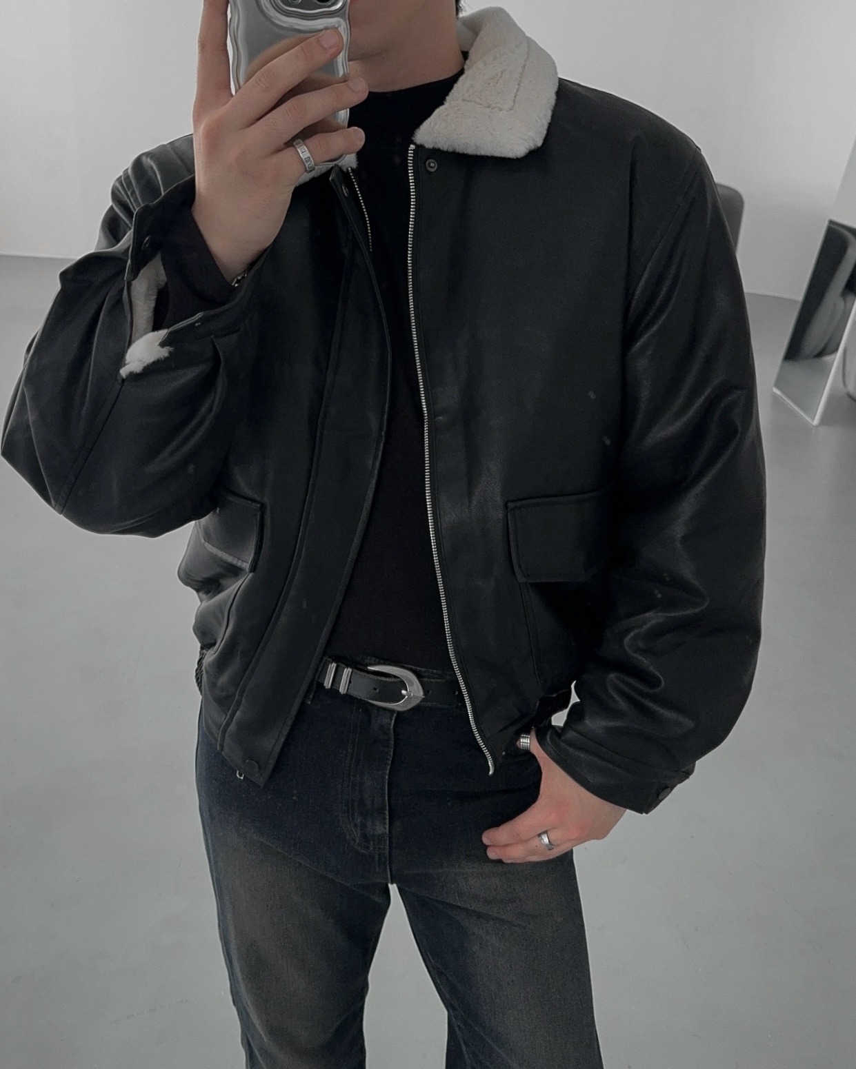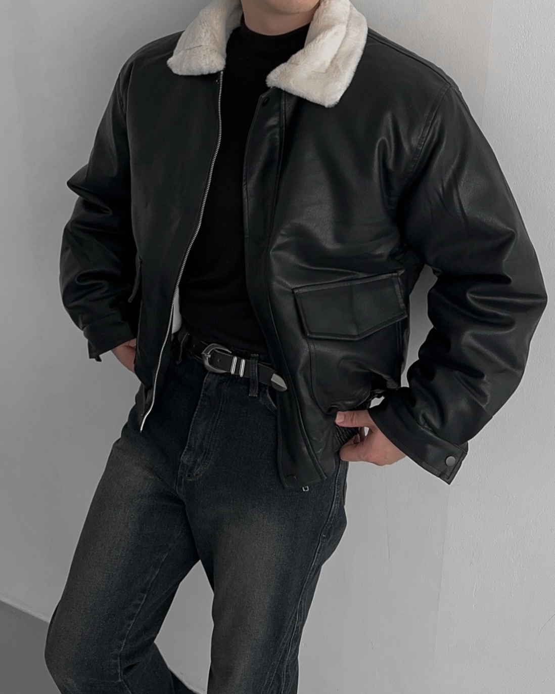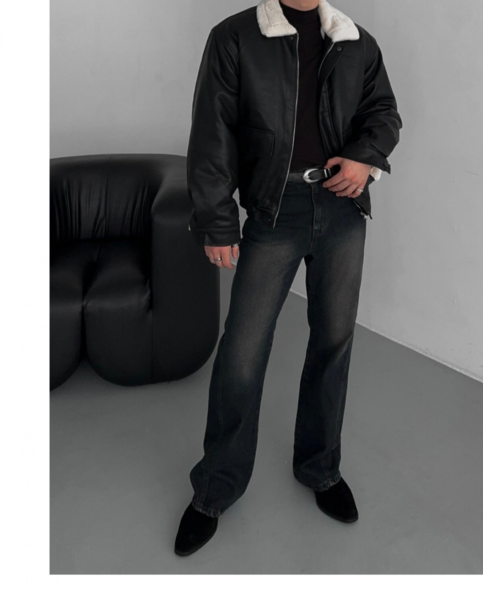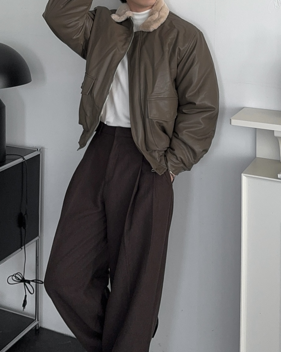 -무스탕 디자인의 밍크 블루종 점퍼