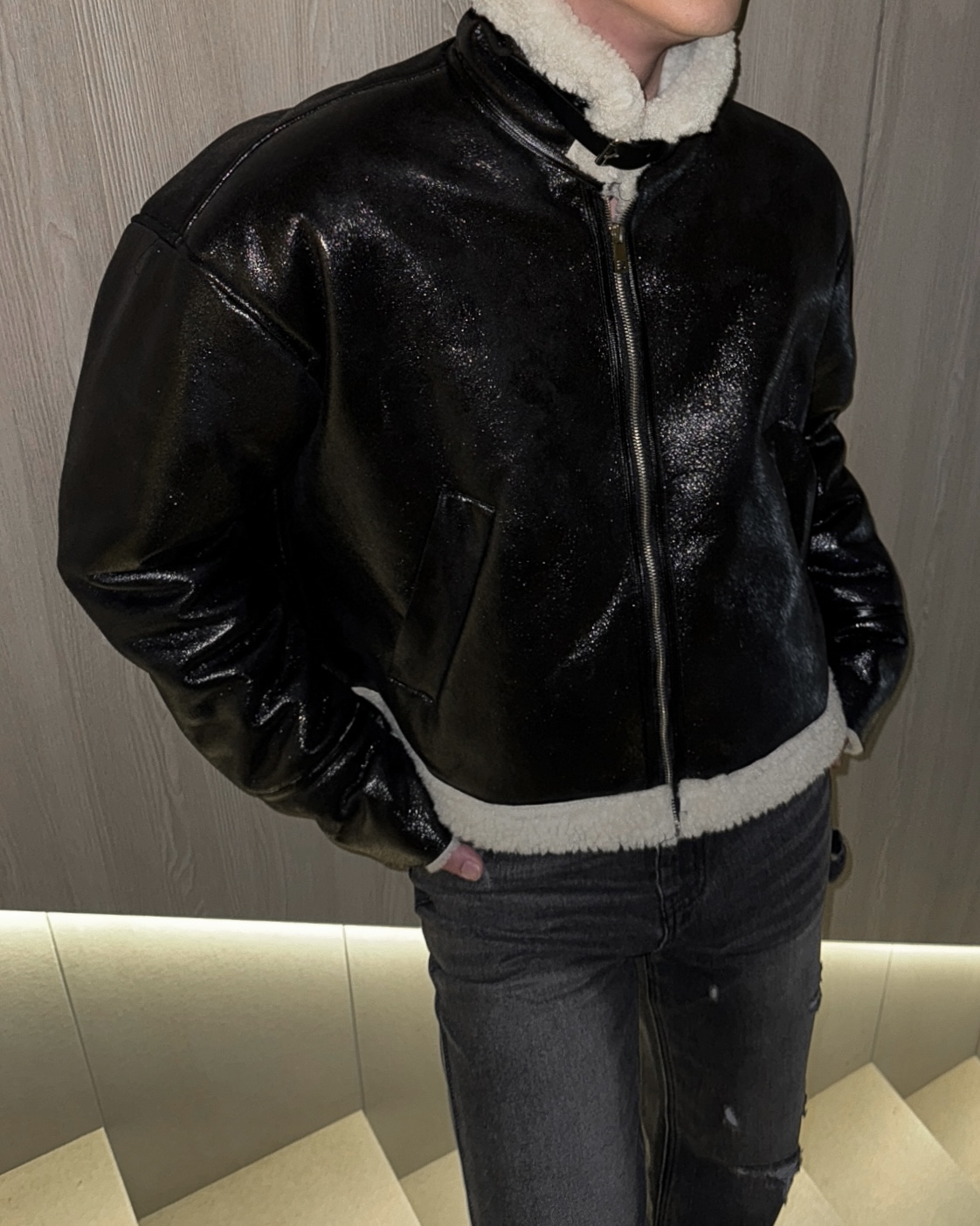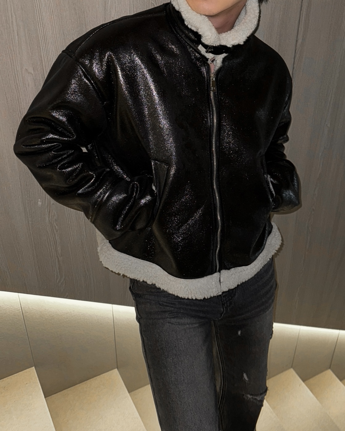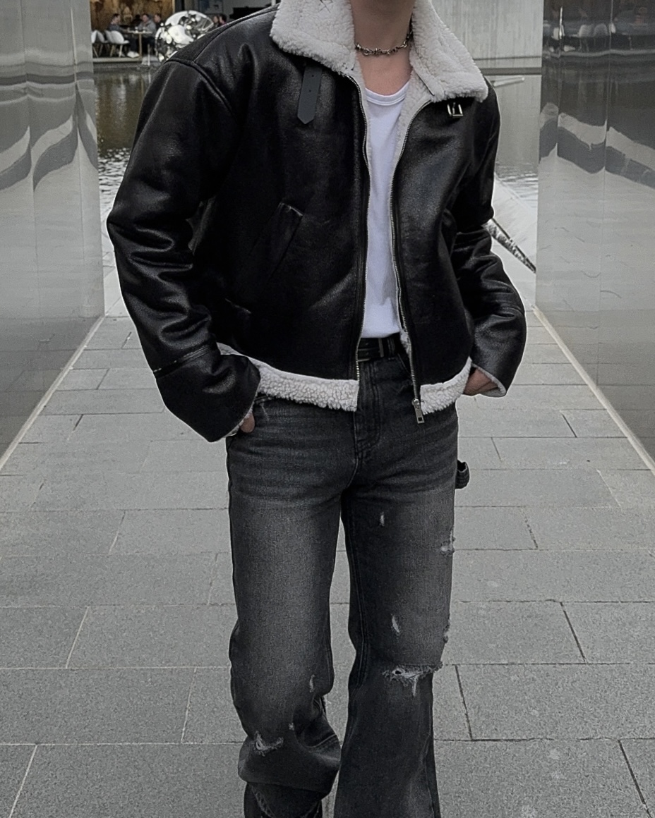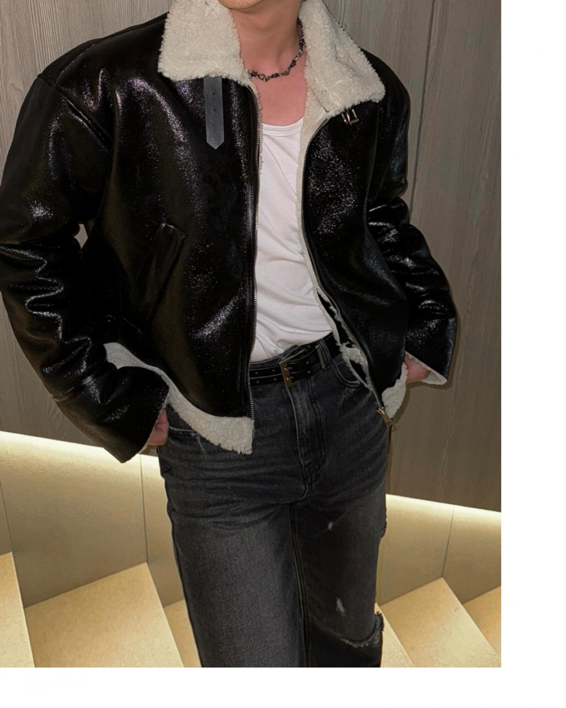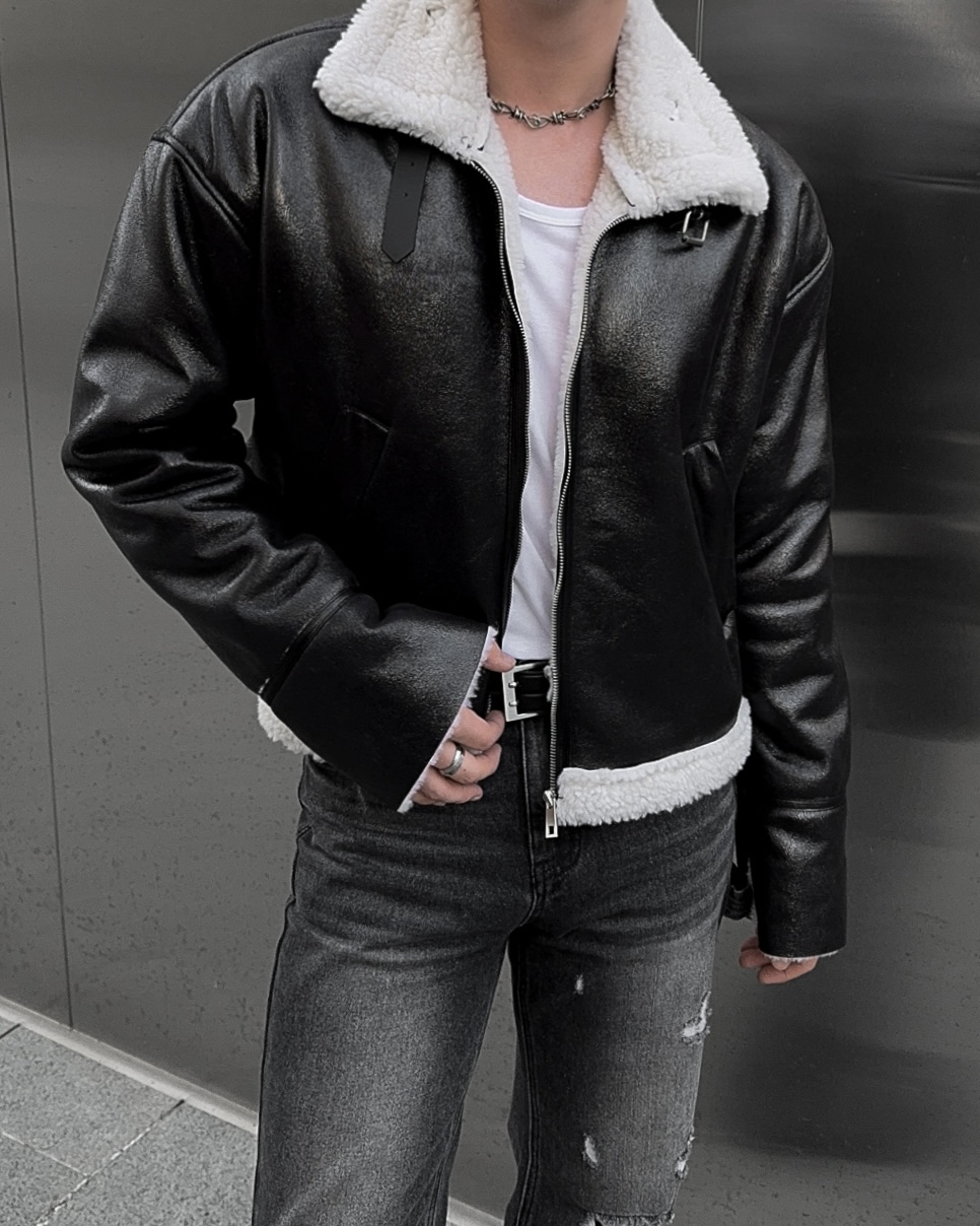 -씨어링 레더 소재로 제작된 무스탕