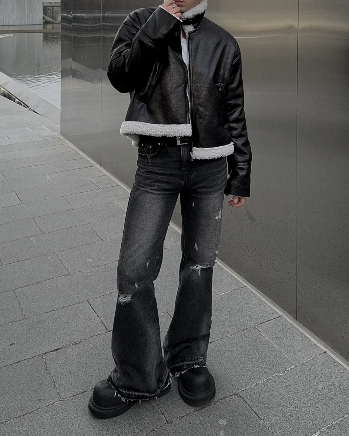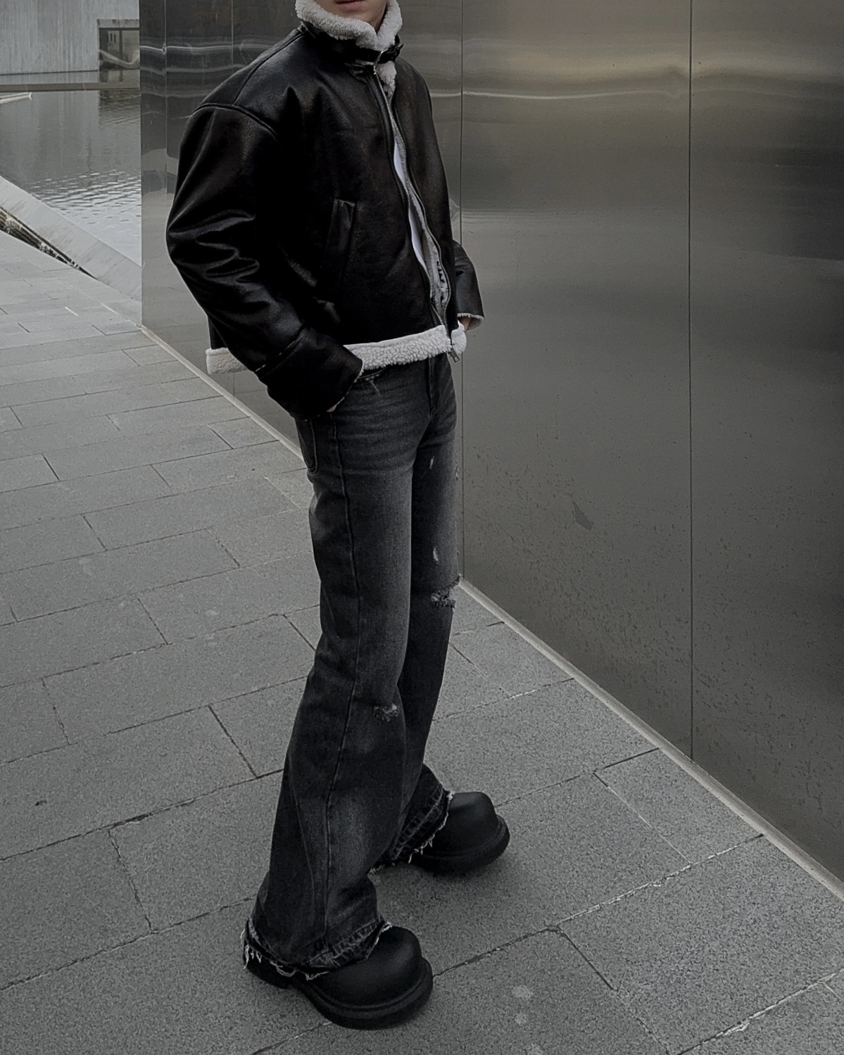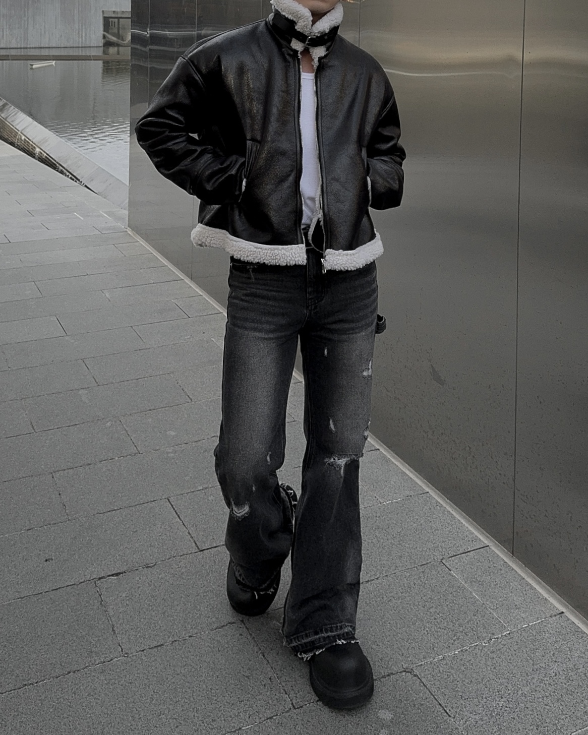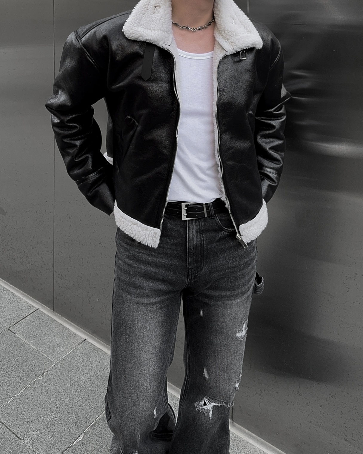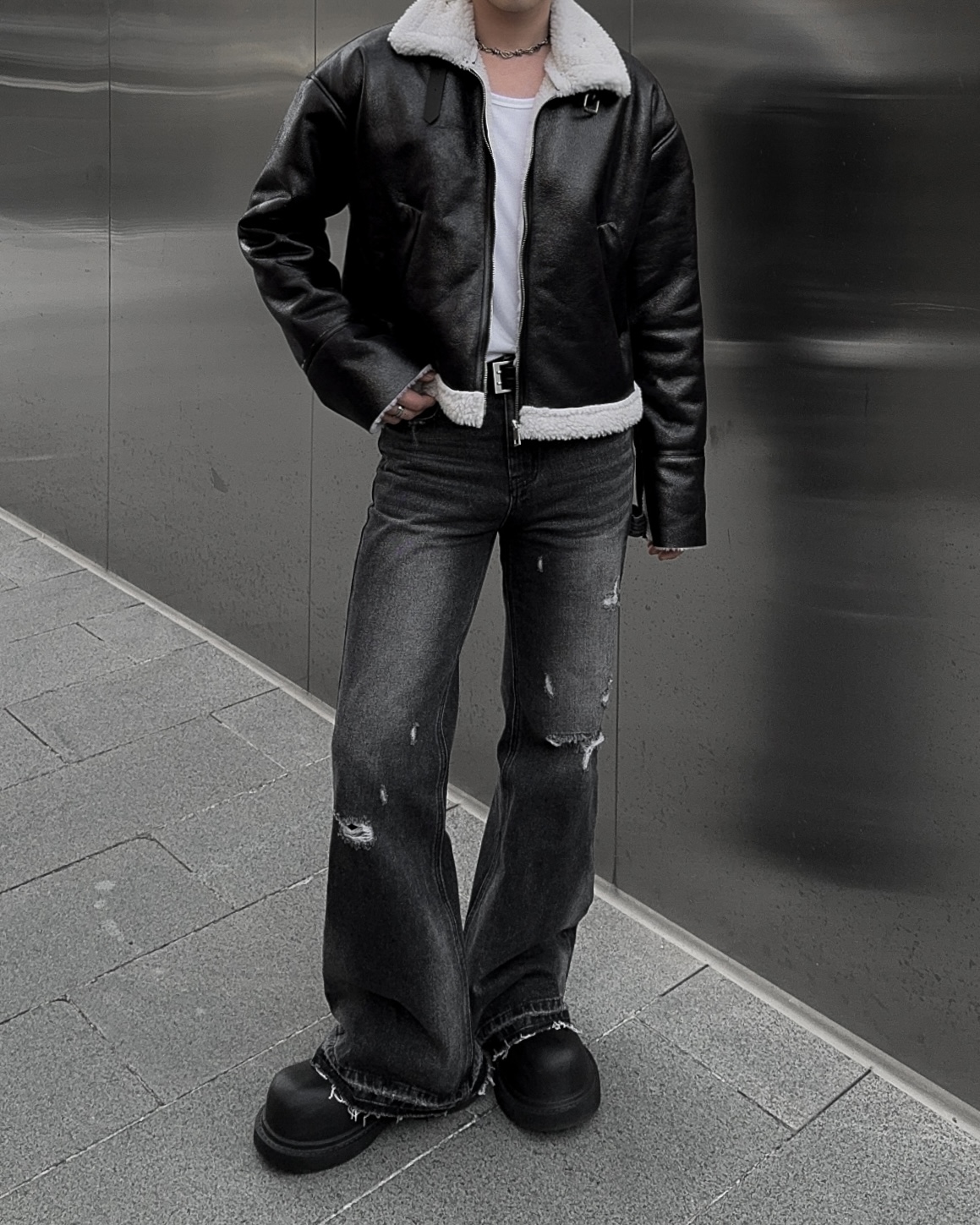 -씨어링 레더 소재로 제작된 무스탕
